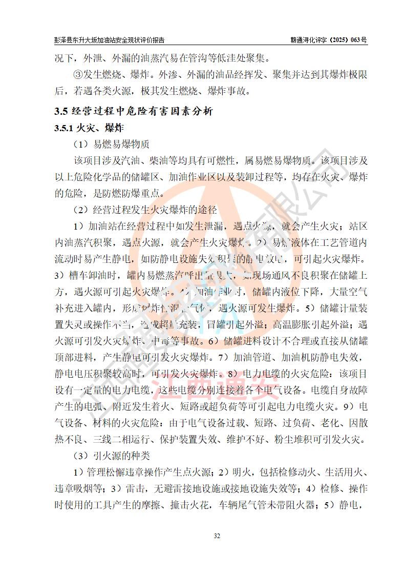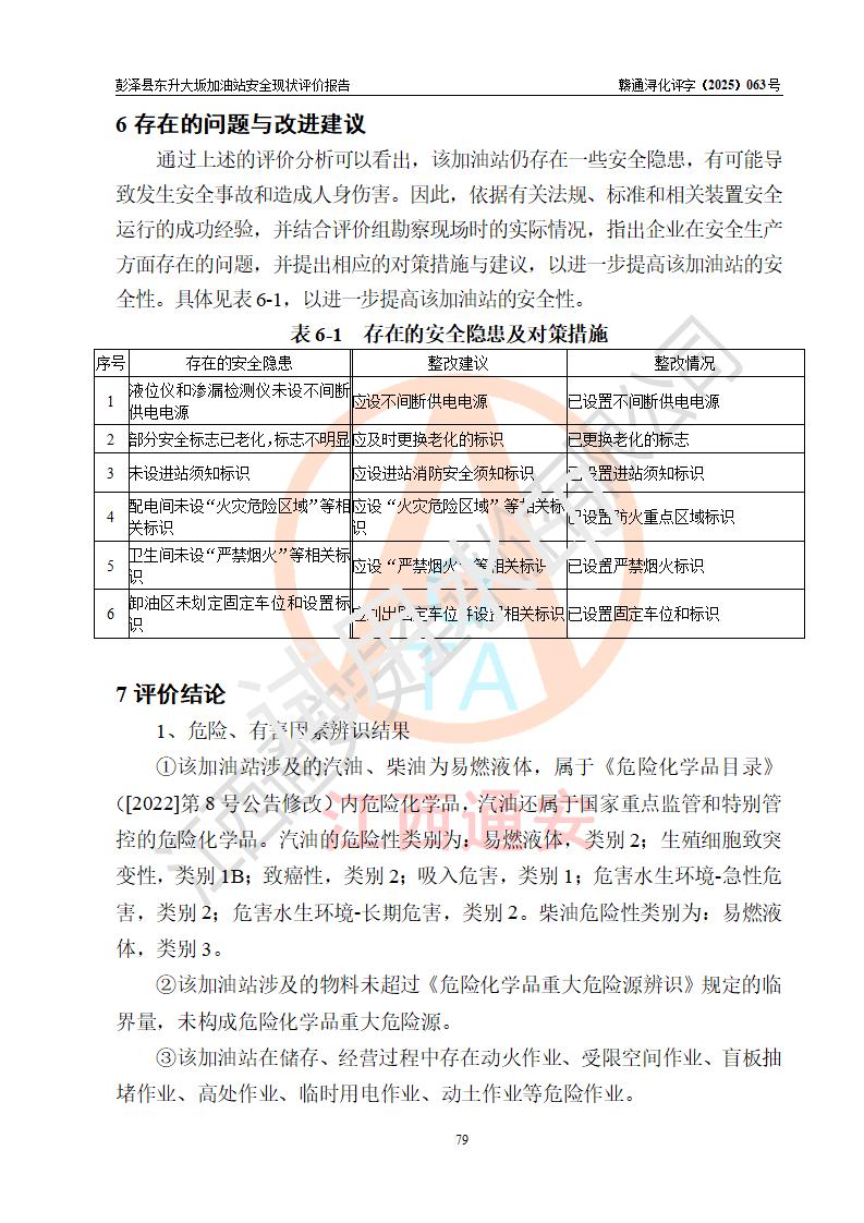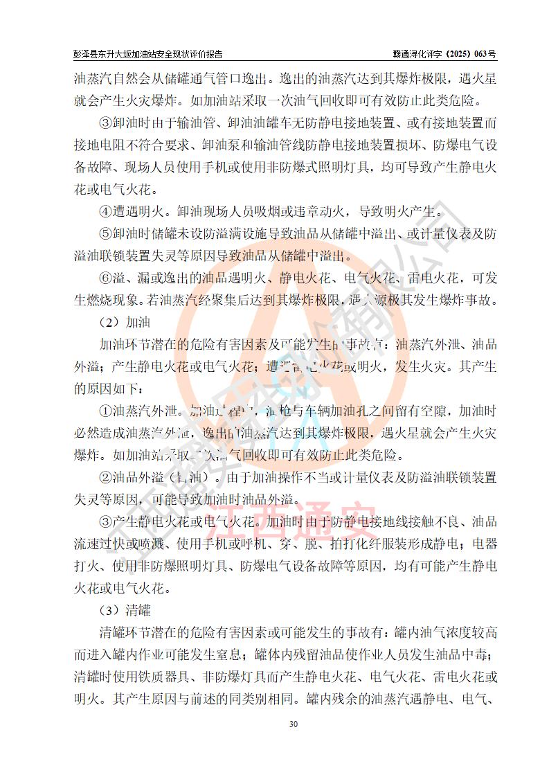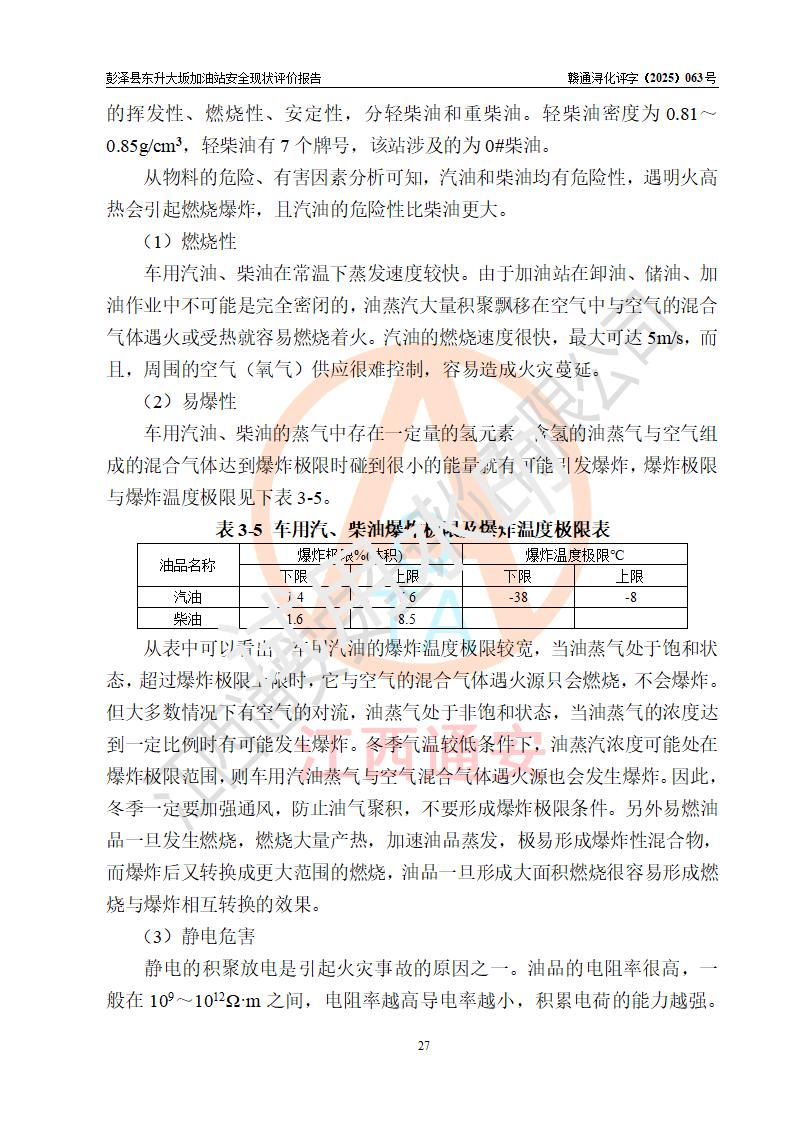 评价报告名称 | 彭泽县东升大坂加油站安全现状评价报告 | |||