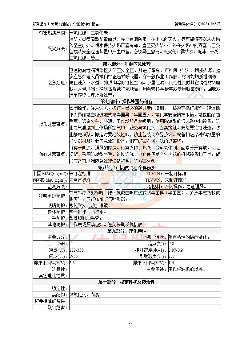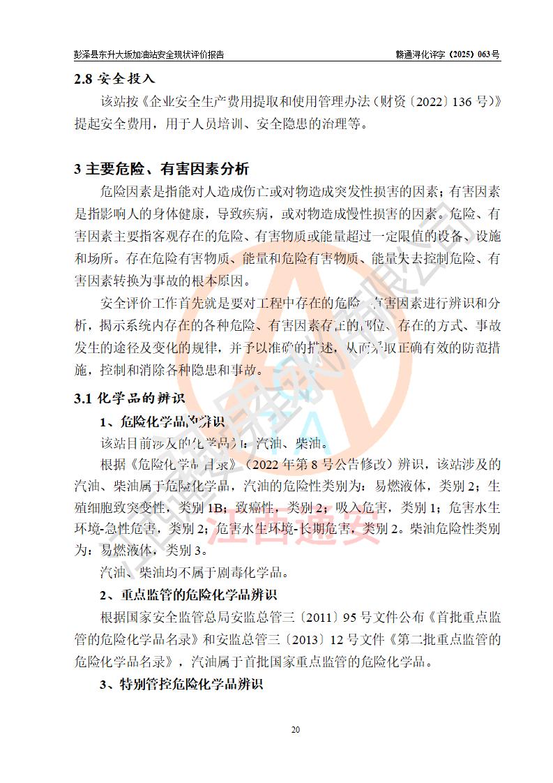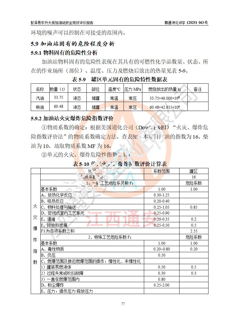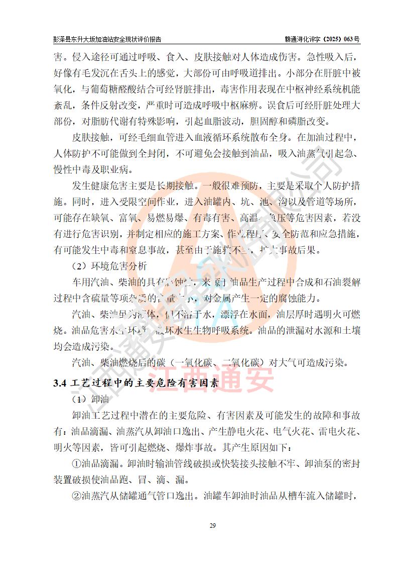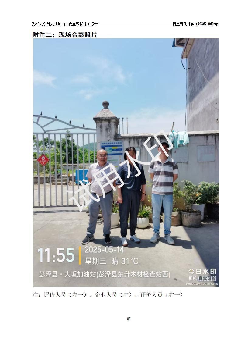 评价报告名称 | 彭泽县东升大坂加油站安全现状评价报告 | |||