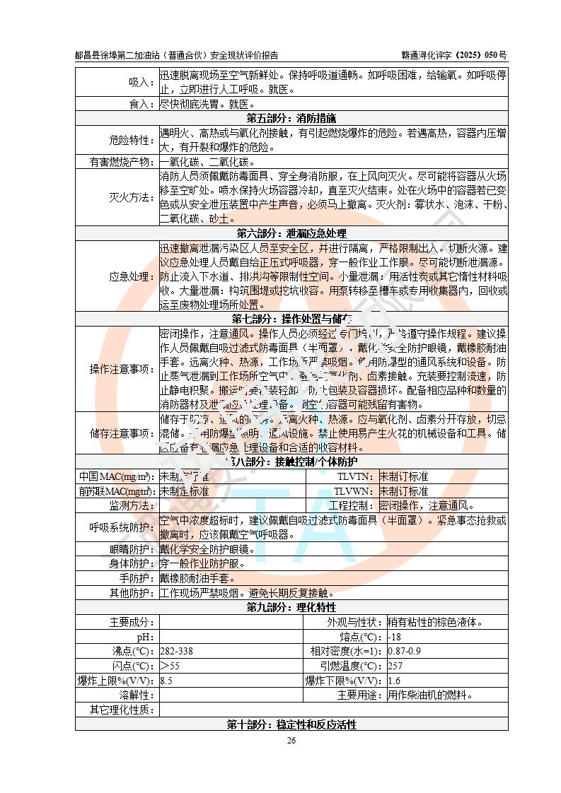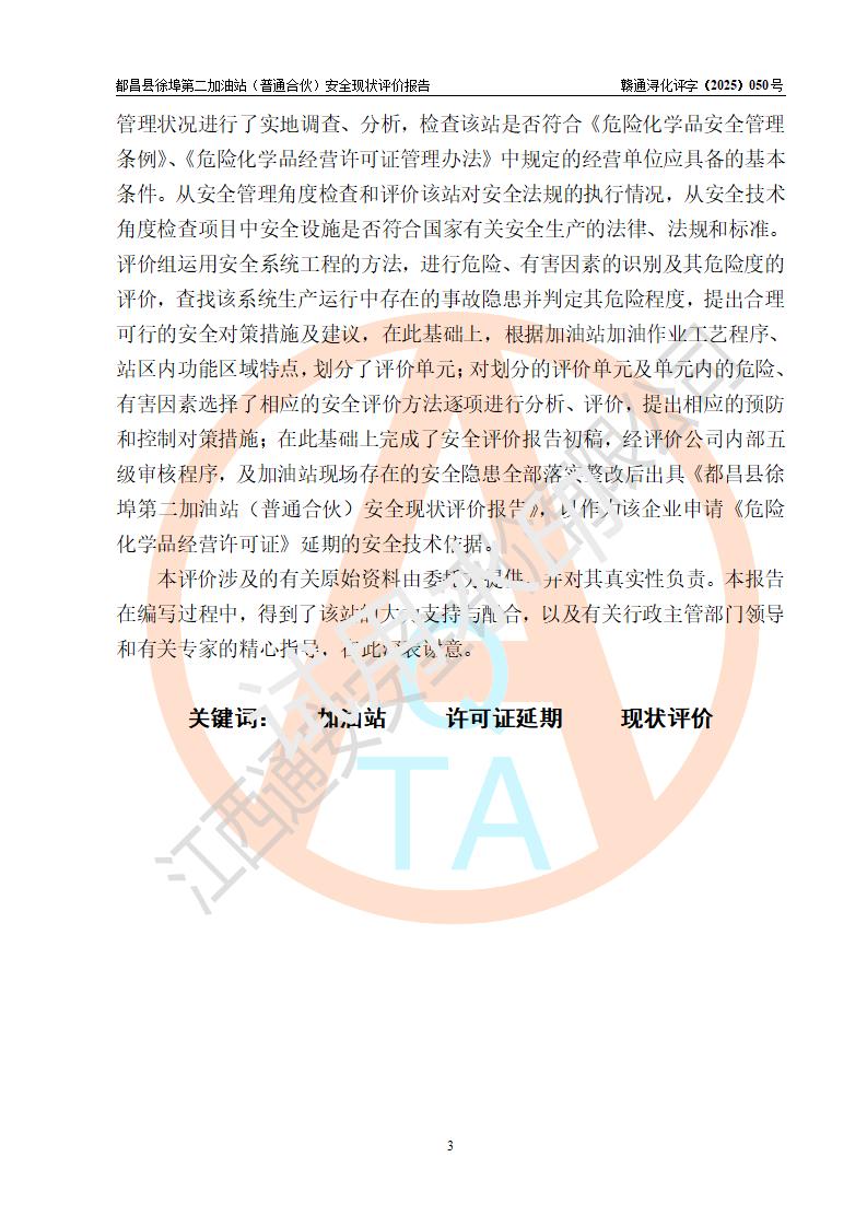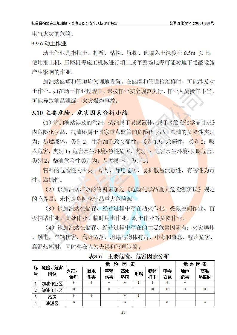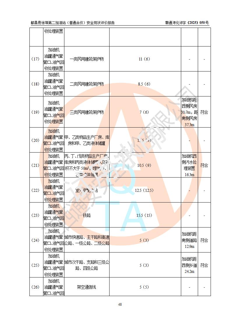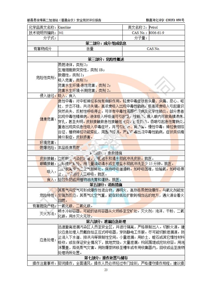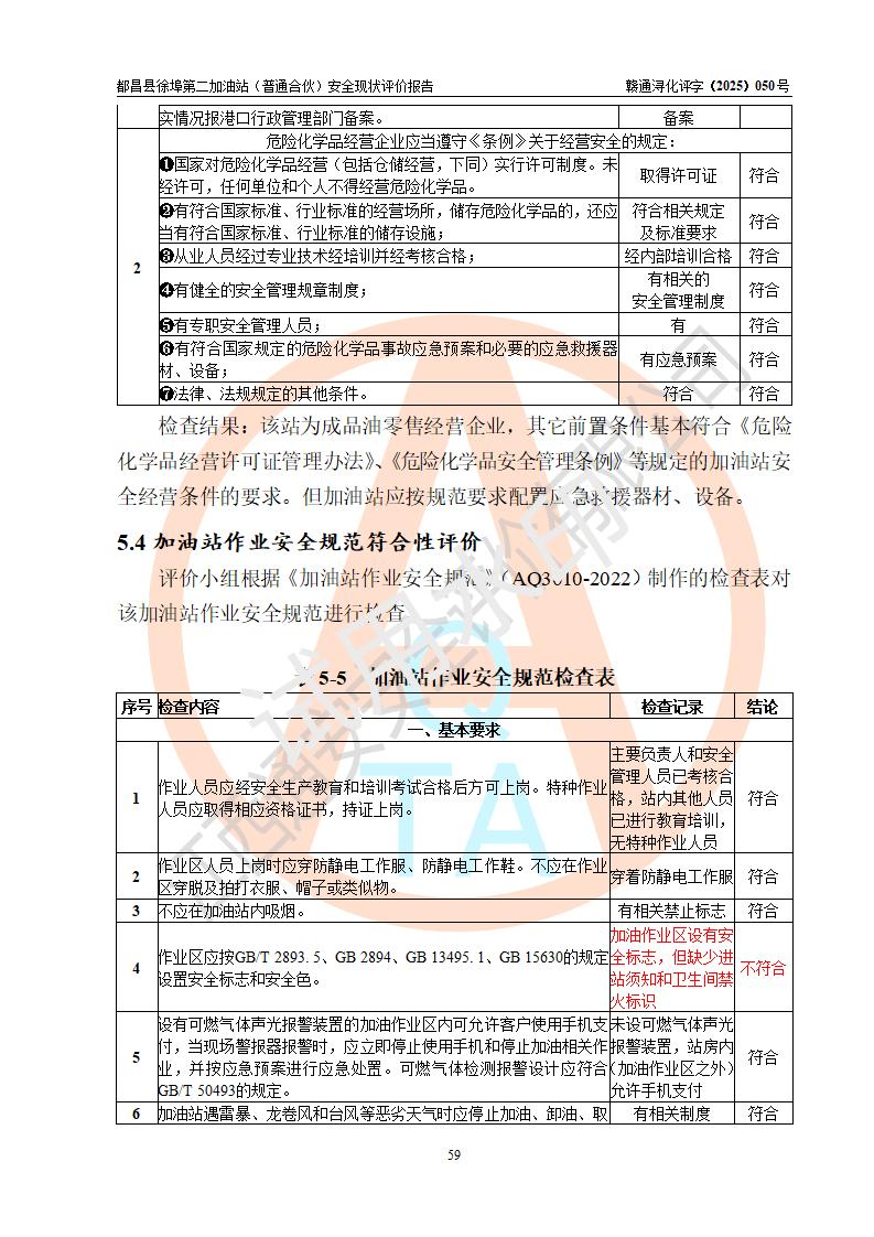 都昌县徐埠第二加油站(普通合伙)是一家专门从事成品油零售经营的普通合伙企业,执行事务合伙人:曹建平,经营场所位于江西省九江市都昌县徐埠镇徐埠村委会上街七组。该加油站现有从业人员6人,其中安全管理人员1人,主要负责人方锦英。 该加油站站区占地面积2100m2,站区内设置有3台双枪程控燃油加油机、1台单枪程控燃油加油机及配套的工艺管线、30m3双层0#柴油储罐1台、30m3双层92#汽油储罐2台、30m3双层95#汽油储罐1台,油品储罐总容积为120m3(折算成汽油为105m3)。按现行《汽车加油加气加氢站技术标准》对加油站的等级划分原则,该站属于二级加油站。 该站由九江市行政审批局换发《危险化学品经营许可证》(证号:赣九行审经(甲)字[2022]000171号),**期限2022年10月18日至2025年10月17日。 |