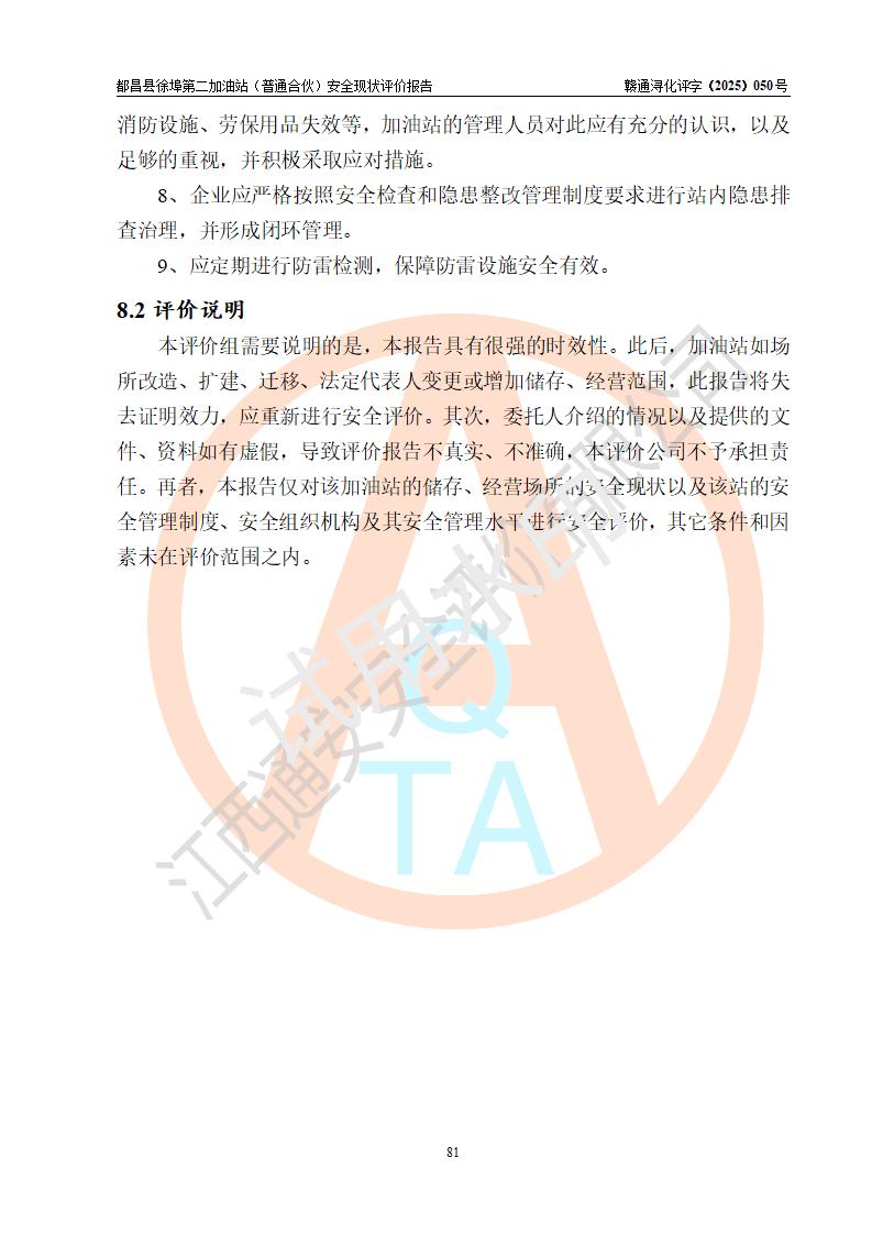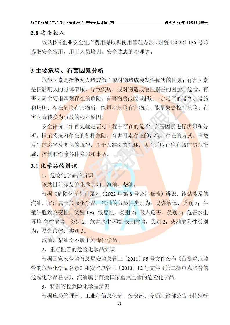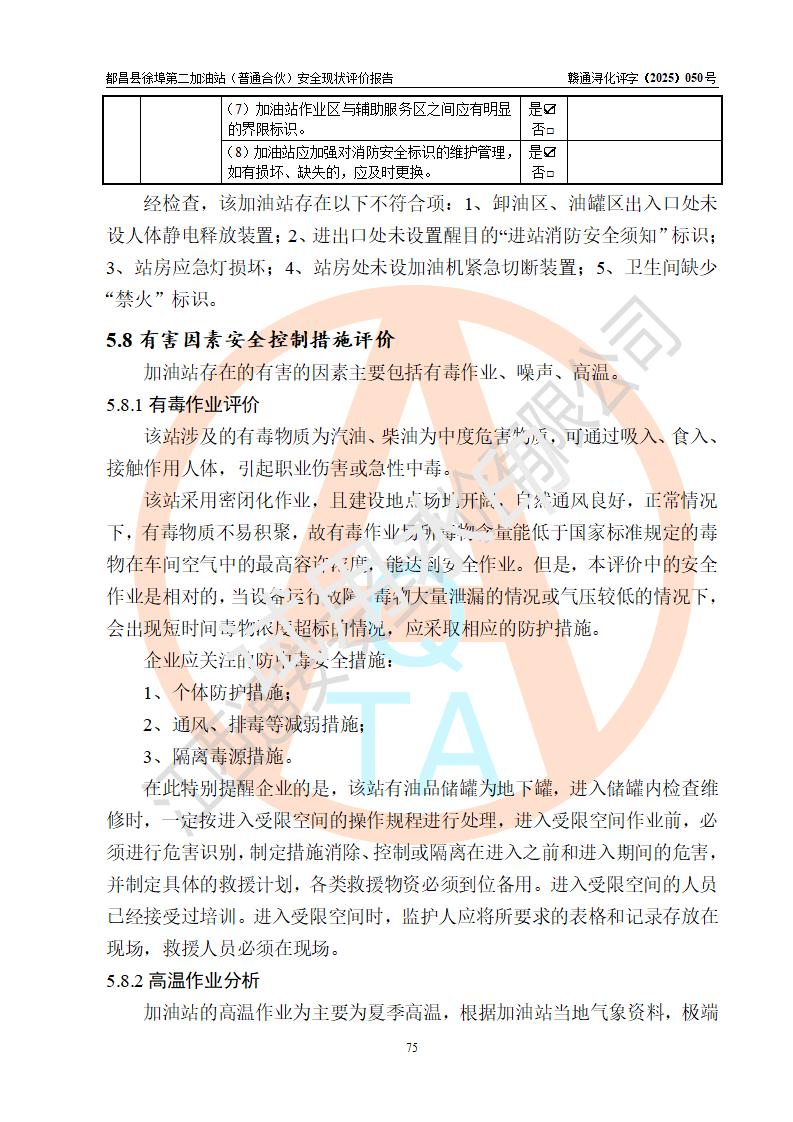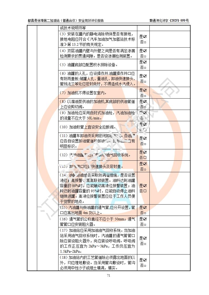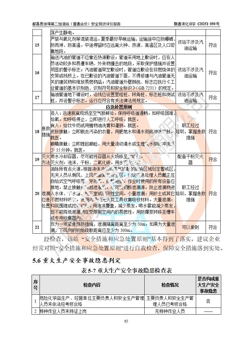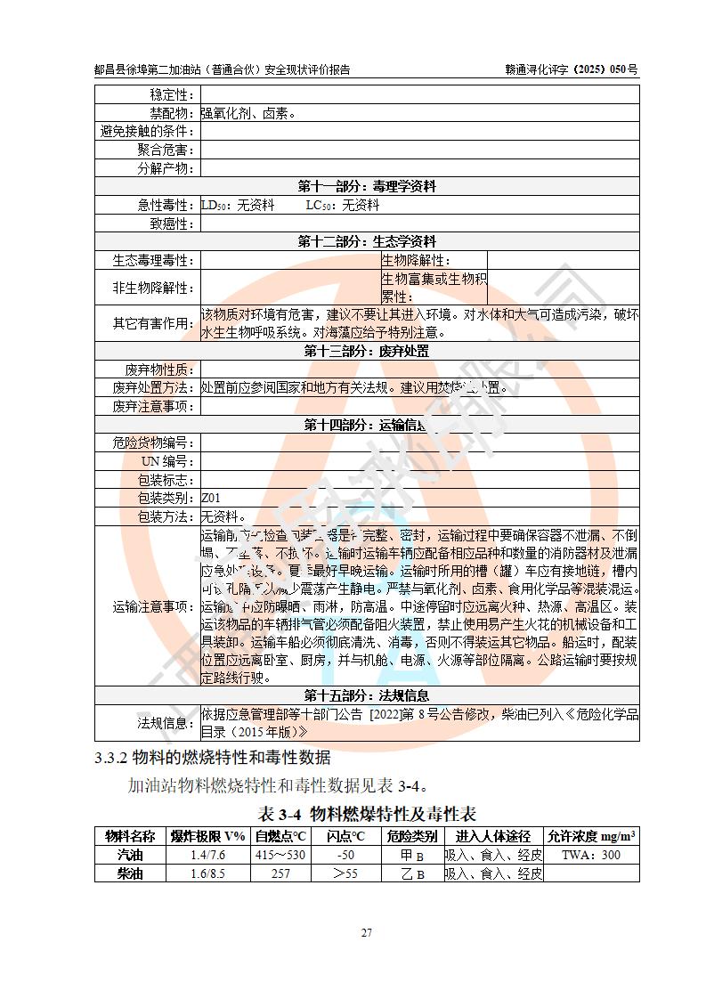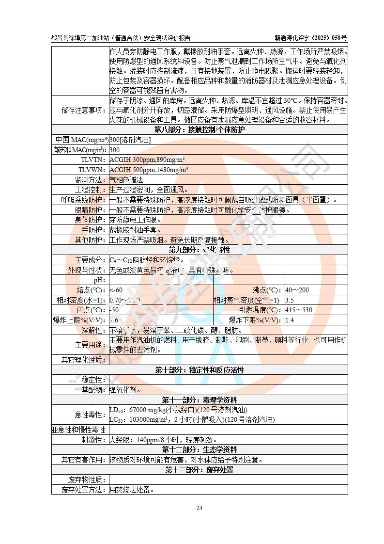 都昌县徐埠第二加油站(普通合伙)是一家专门从事成品油零售经营的普通合伙企业,执行事务合伙人:曹建平,经营场所位于江西省九江市都昌县徐埠镇徐埠村委会上街七组。该加油站现有从业人员6人,其中安全管理人员1人,主要负责人方锦英。 该加油站站区占地面积2100m2,站区内设置有3台双枪程控燃油加油机、1台单枪程控燃油加油机及配套的工艺管线、30m3双层0#柴油储罐1台、30m3双层92#汽油储罐2台、30m3双层95#汽油储罐1台,油品储罐总容积为120m3(折算成汽油为105m3)。按现行《汽车加油加气加氢站技术标准》对加油站的等级划分原则,该站属于二级加油站。 该站由九江市行政审批局换发《危险化学品经营许可证》(证号:赣九行审经(甲)字[2022]000171号),**期限2022年10月18日至2025年10月17日。 |