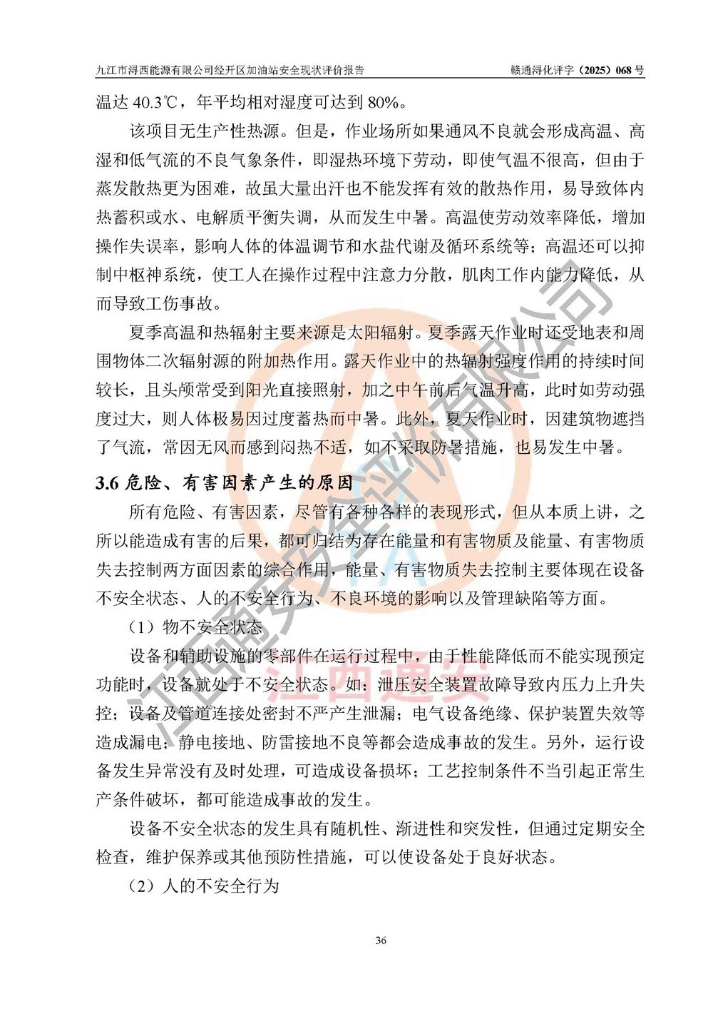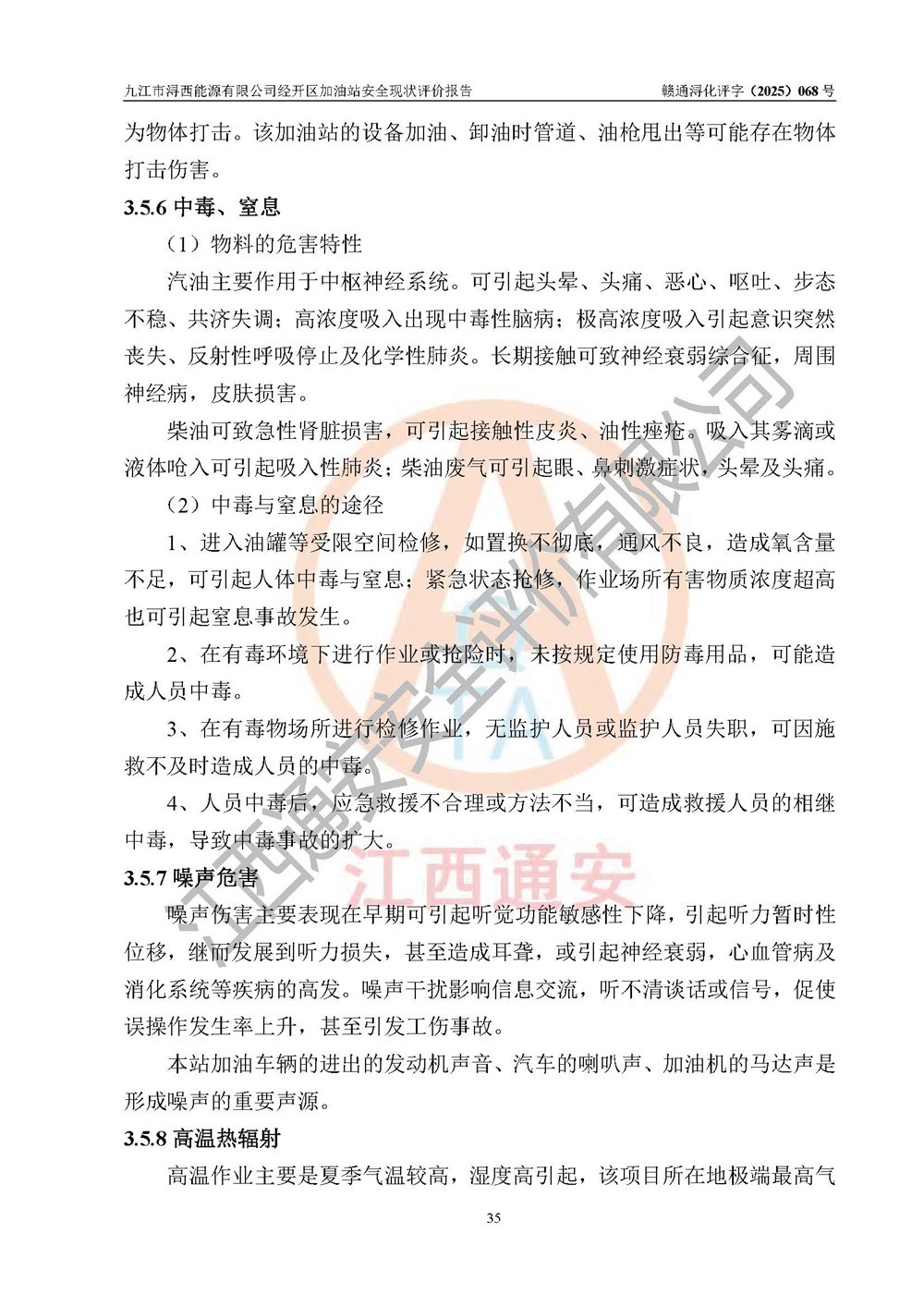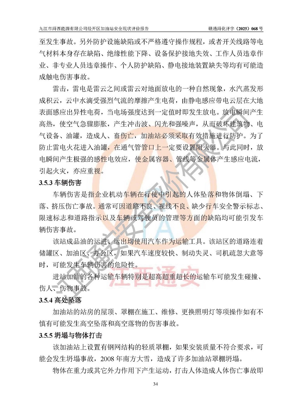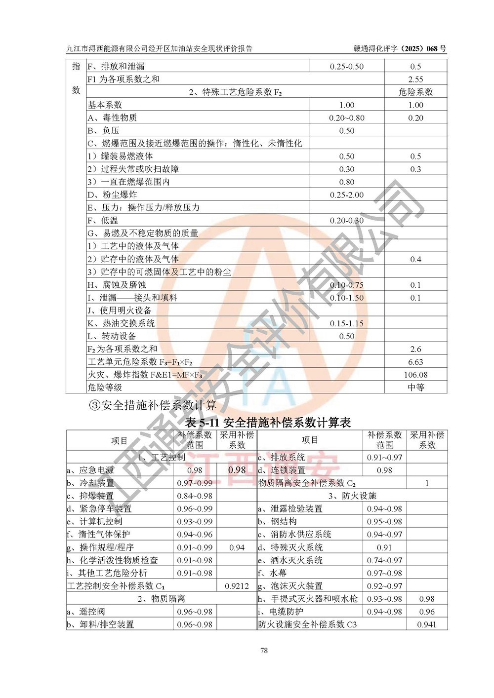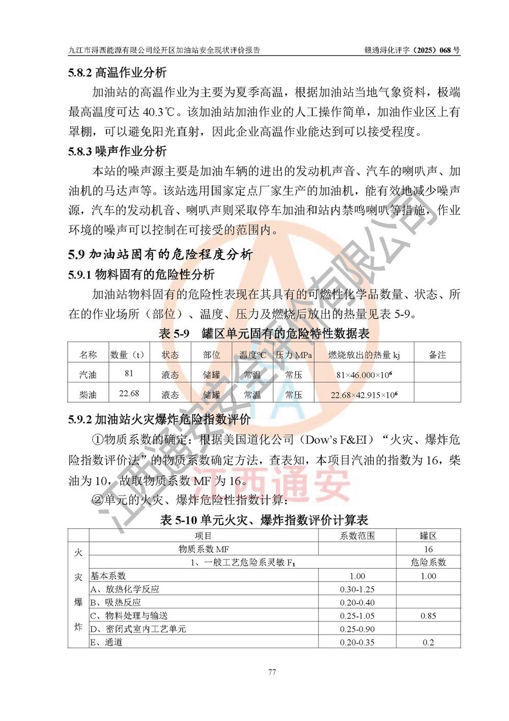 评价结论 | 九江市浔西能源有限公司经开区加油站涉及的安全条件、安全经营条件、安全生产管理符合《危险化学品经营许可证管理办法》、《汽车加油加气加氢站技术标准》等**有关法规、标准、规范要求,能满足危险化学品经营安全条件。 | |||