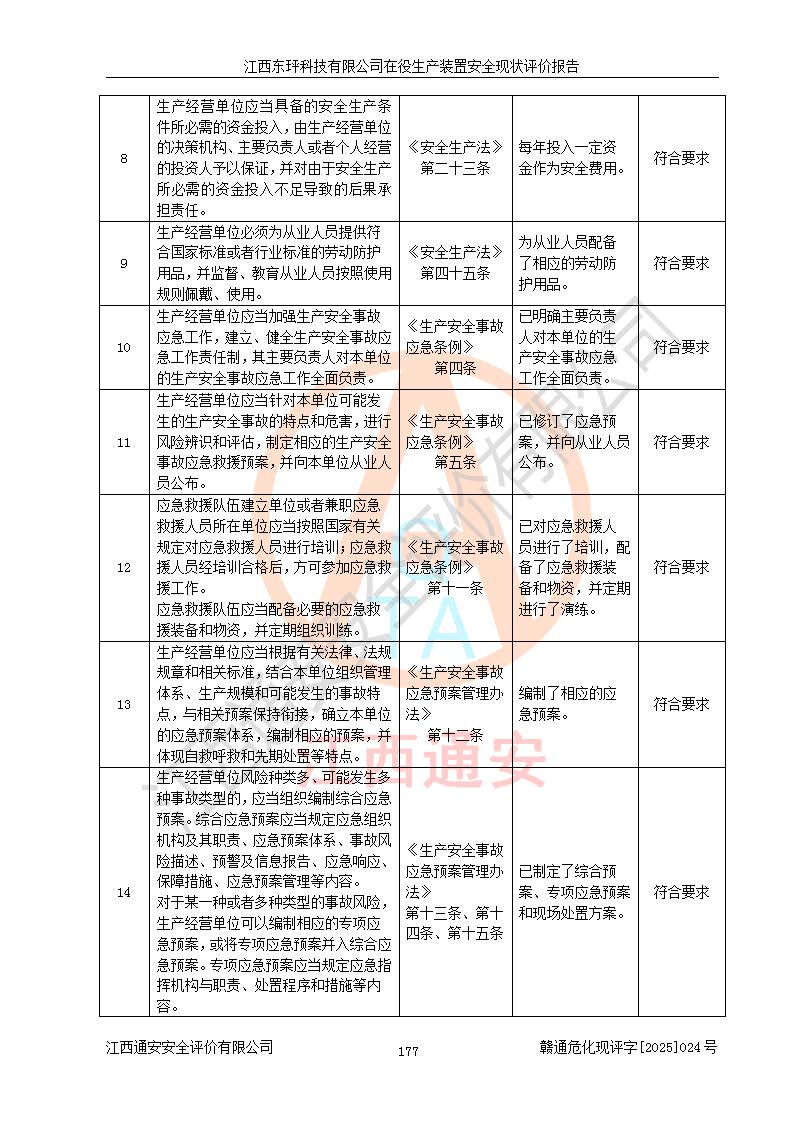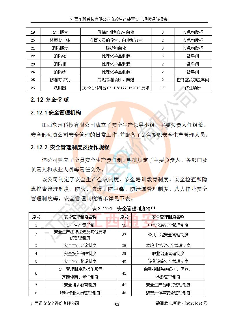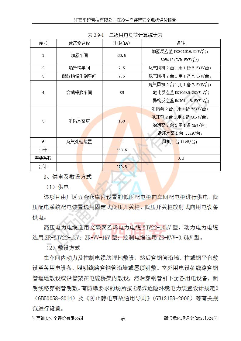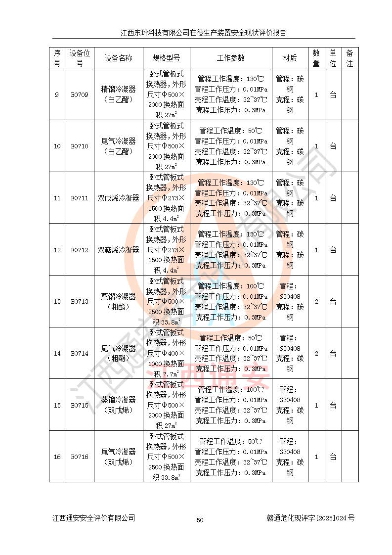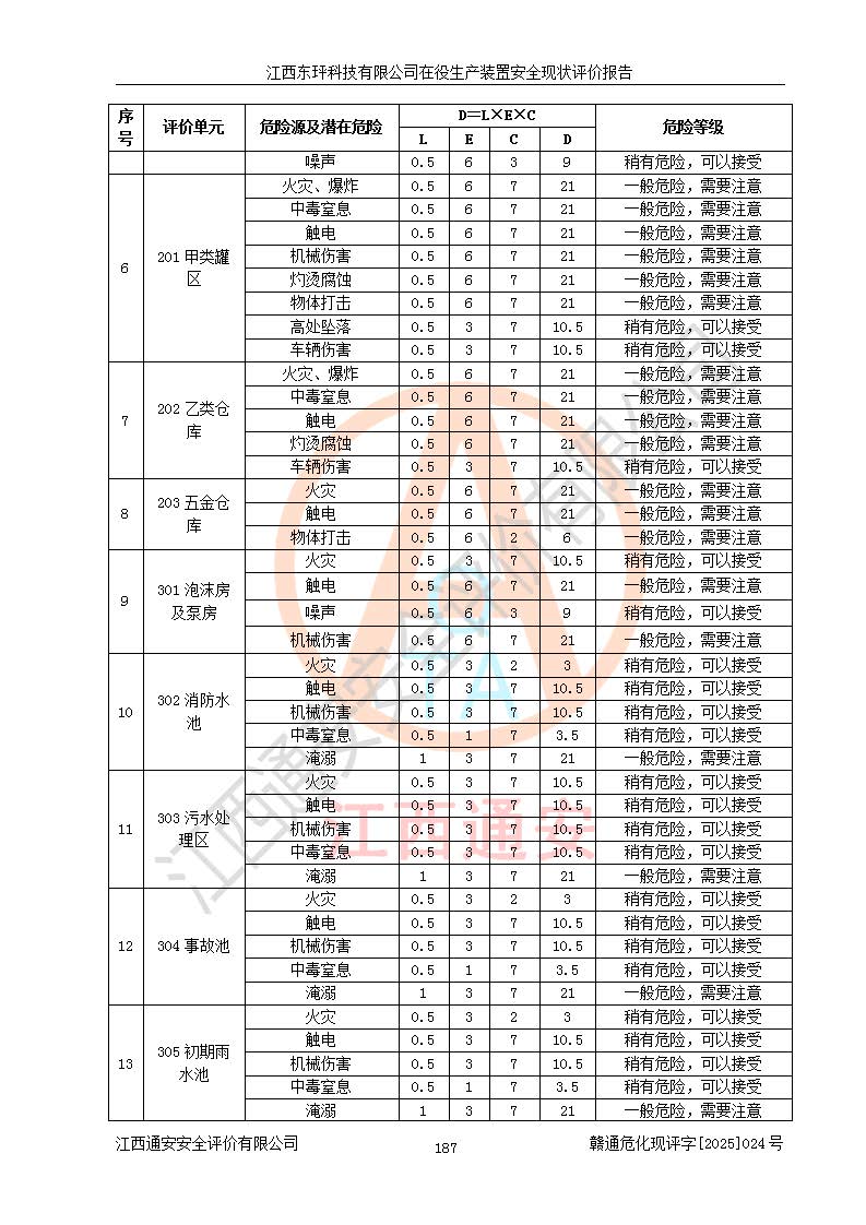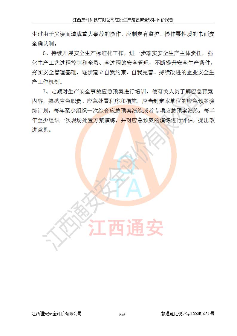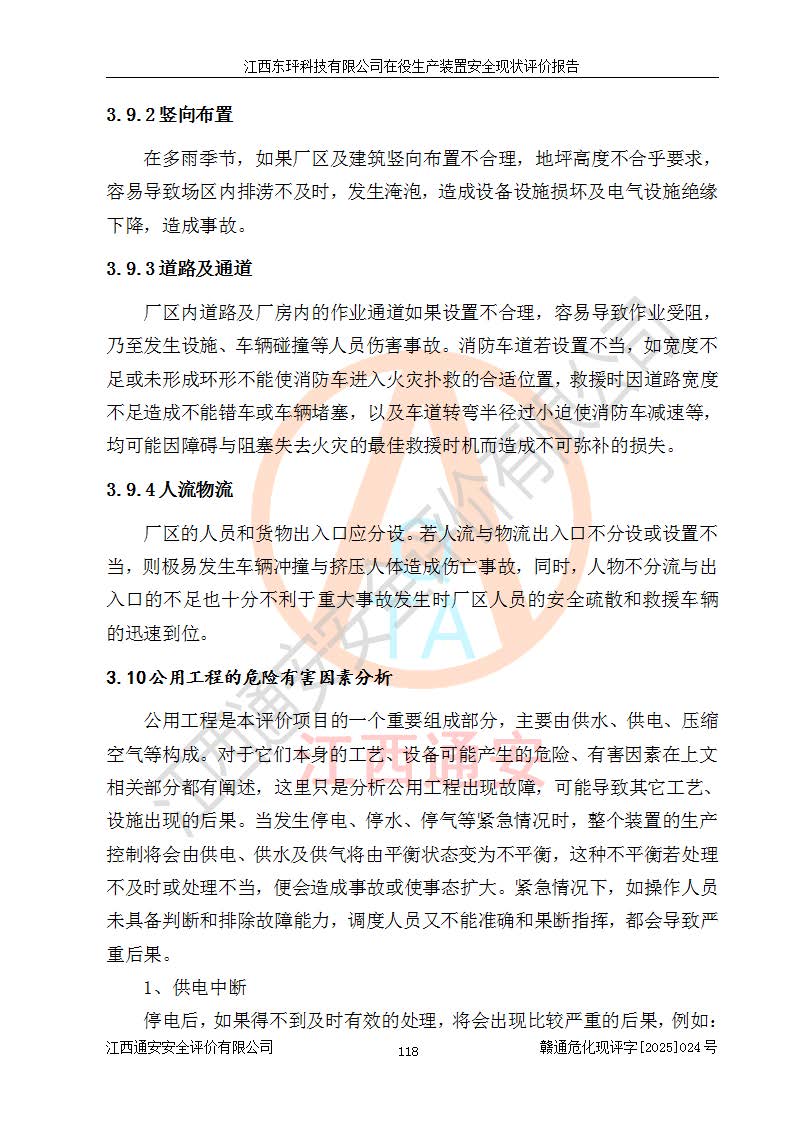 江西东玶科技有限公司位于江西省吉安市吉水县城西工业园区,法定**人为徐东,成立于2018年04月08日,注册资本叁仟贰佰叁拾万元整,经营范围为合成樟脑、α-蒎烯、β-蒎烯、二氢月桂烯(含月桂烯)、莰烯、双戊烯、氢气(中间产品)的制造加工(凭**批准证书经营);白乙酯、双萜烯等合成香料的制造加工等。 江西东玶科技有限公司2022年08月01日取得了《安全生产许可证》,许可证编号:(赣)WH安许证字[2022]1160号,许可范围为合成樟脑(2000t/a)、二氢月桂烯(1000t/a)、月桂烯(3200t/a)、莰烯(1000t/a)、双戊烯(810t/a)、双萜烯(1070t/a)、α-蒎烯(7500t/a)、β-蒎烯(3200t/a)、白乙酯(500t/a),**期为2022年08月01日至2025年07月31日。该公司2023年5月29日取得了三级安全生产标准化证书,证书编号:赣AQBWHⅢ202300036,**期至2026年5月。该公司现有员工53人,其中专职安全生产管理人员2人。 因生产经营需要,江西东玶科技有限公司实施了年产12000吨松节油深加工系列产品项目(二期),并将二氢月桂烯的设计生产规模2000t/a变更为1500t/a,减少中间产品蒎烷的消耗量,剩余的蒎烷(720t/a)作为产品销售。江西东玶科技有限公司委托深圳天阳工程设计有限公司进行了设计变更,按程序要求进行了试生产,委托评价公司编制了安全验收评价报告,并于2025年1月16日组织专家组和相关单位进行了验收。验收完成后,江西东玶科技有限公司2025年06月04日对《安全生产许可证》进行了变更,许可范围变更为合成樟脑(2000t/a)、二氢月桂烯(1500t/a)、月桂烯(3200t/a)、莰烯(1000t/a)、双戊烯(902.5t/a)、双萜烯(1200.7t/a)、α-蒎烯(7500t/a)、β-蒎烯(3200t/a)、白乙酯(500t/a)、蒎烷(中间产品,720t/a)。 江西东玶科技有限公司在役生产装置生产过程中涉及的主要原辅材料为松节油、乙酸、液碱、甲醇、碳酸钠、二甲苯、偏钛酸、甲酸、硫酸铜、雷尼镍、离子膜、天然气、氮气,中间产品为氢气、α-蒎烯、β-蒎烯、蒎烷,产品为合成樟脑、二氢月桂烯、月桂烯、莰烯、双戊烯、白乙酯、双萜烯,副产品为醋酸钠。根据《危险化学品目录》,该在役生产装置涉及的松节油、乙酸、液碱、甲醇、二甲苯、甲酸、雷尼镍、天然气(燃料)、氮气(压缩的)、柴油,中间产品α-蒎烯、β-蒎烯、氢气、蒎烷和产品中合成樟脑、二氢月桂烯、月桂烯、莰烯、双戊烯属于危险化学品。经辨识,甲醇、氢气和天然气(燃料)属于重点监管的危险化学品,甲醇属于特别管控的危险化学品,不涉及监控化学品、易制毒化学品、易制爆危险化学品、剧毒化学品和高毒物品,生产、储存单元不构成危险化学品重大危险源,涉及的加氢工艺属于重点监管的危险化工工艺。根据生产工艺特点及物料的理化特性可知,该在役生产装置生产过程中存在火灾与爆炸、中毒与窒息、触电、机械伤害、灼烫等危险有害因素。 该公司自2022年08月01日取得安全生产许可证以来,生产运行正常,未发生一般及以上生产安全事故。 |