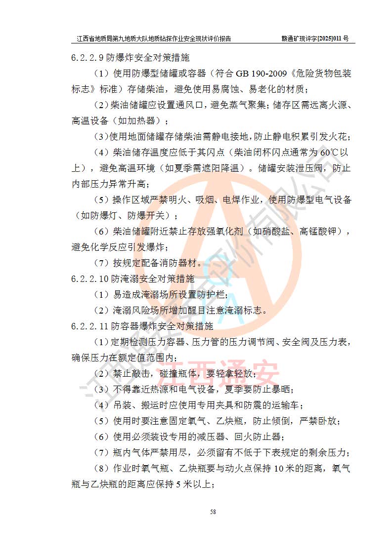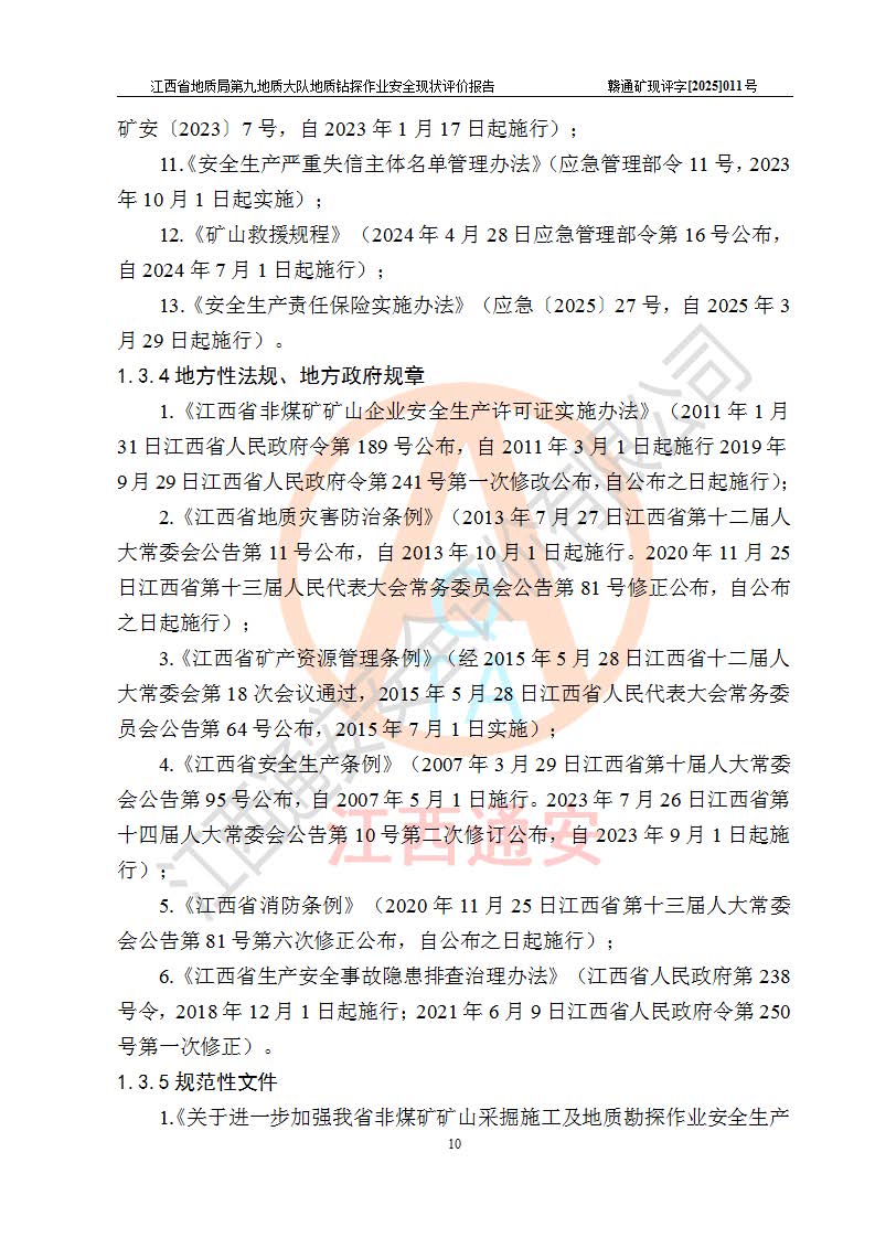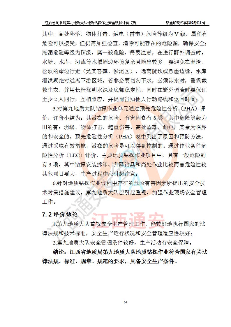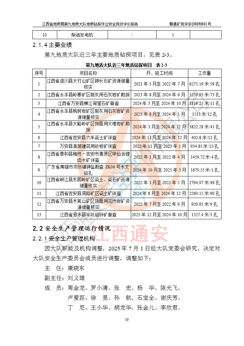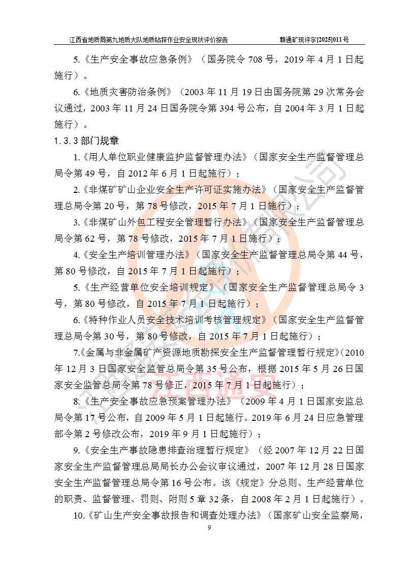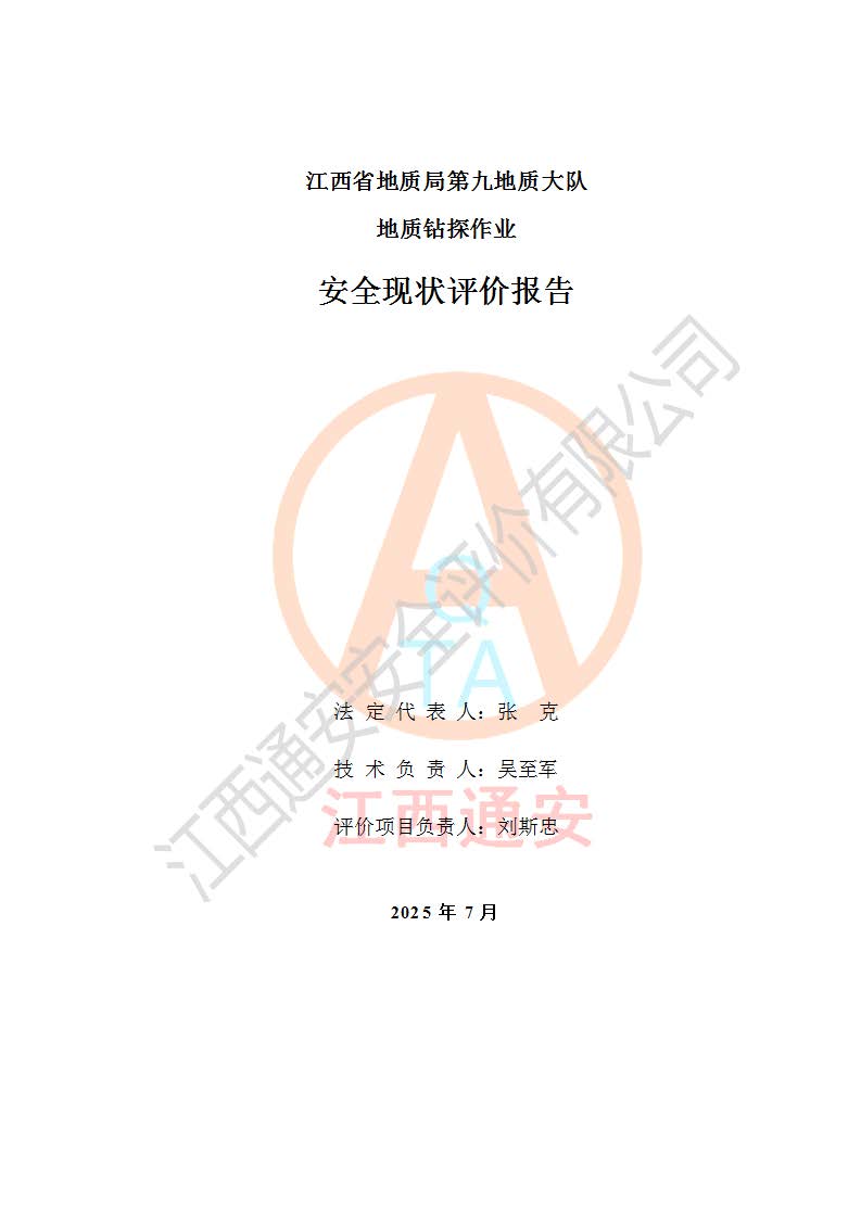报告名称 | 江西省地质局第九地质大队地质钻探作业安全现状评价报告 | |||||