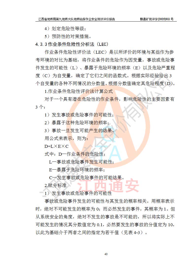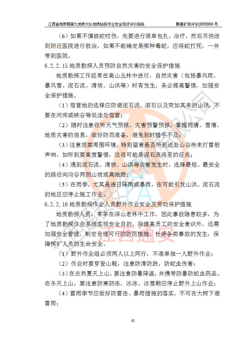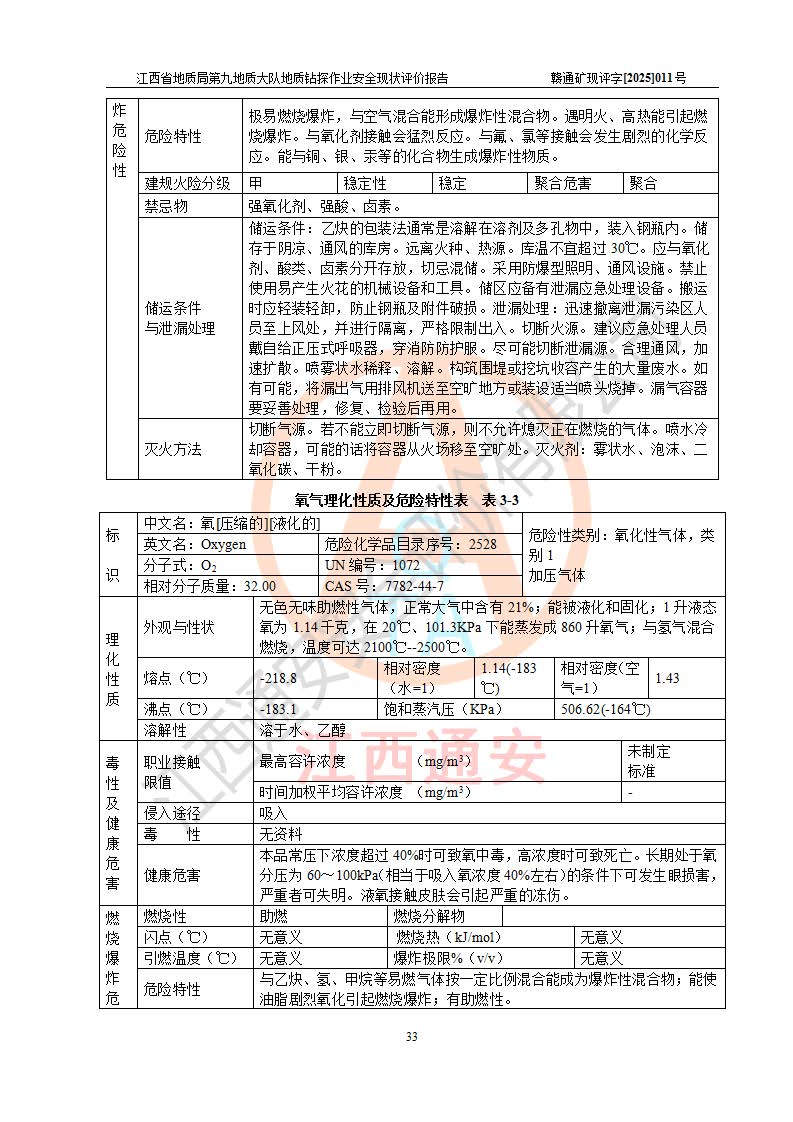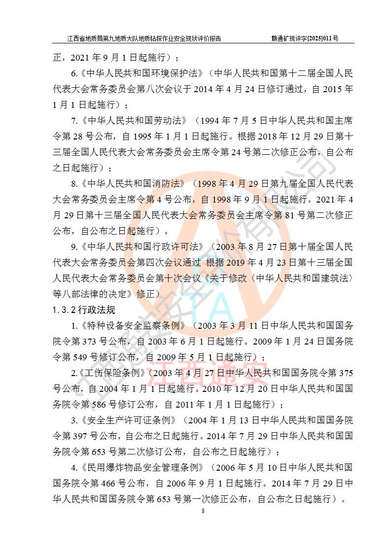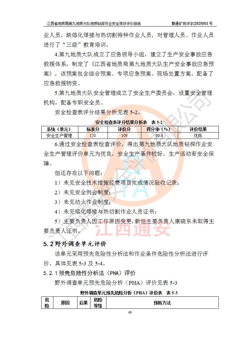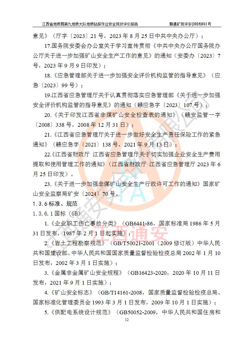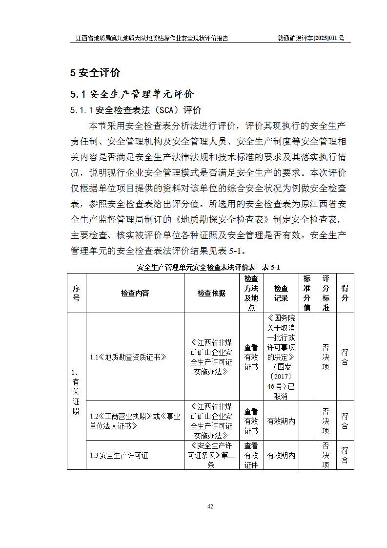 报告名称 | 江西省地质局第九地质大队地质钻探作业安全现状评价报告 | |||||