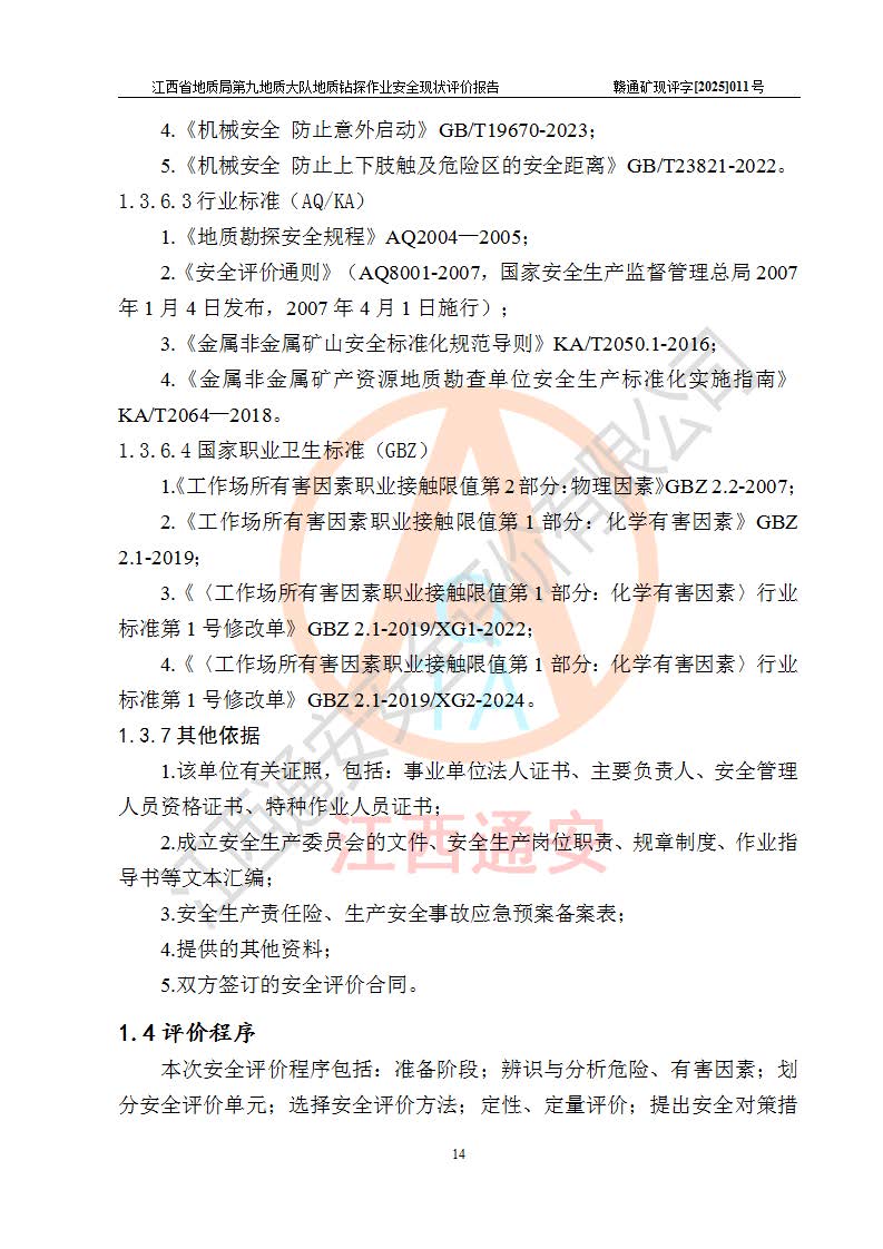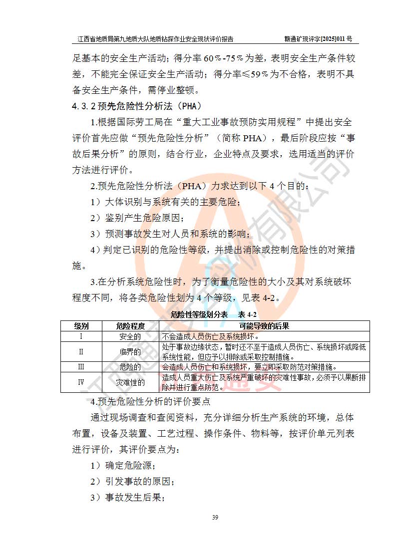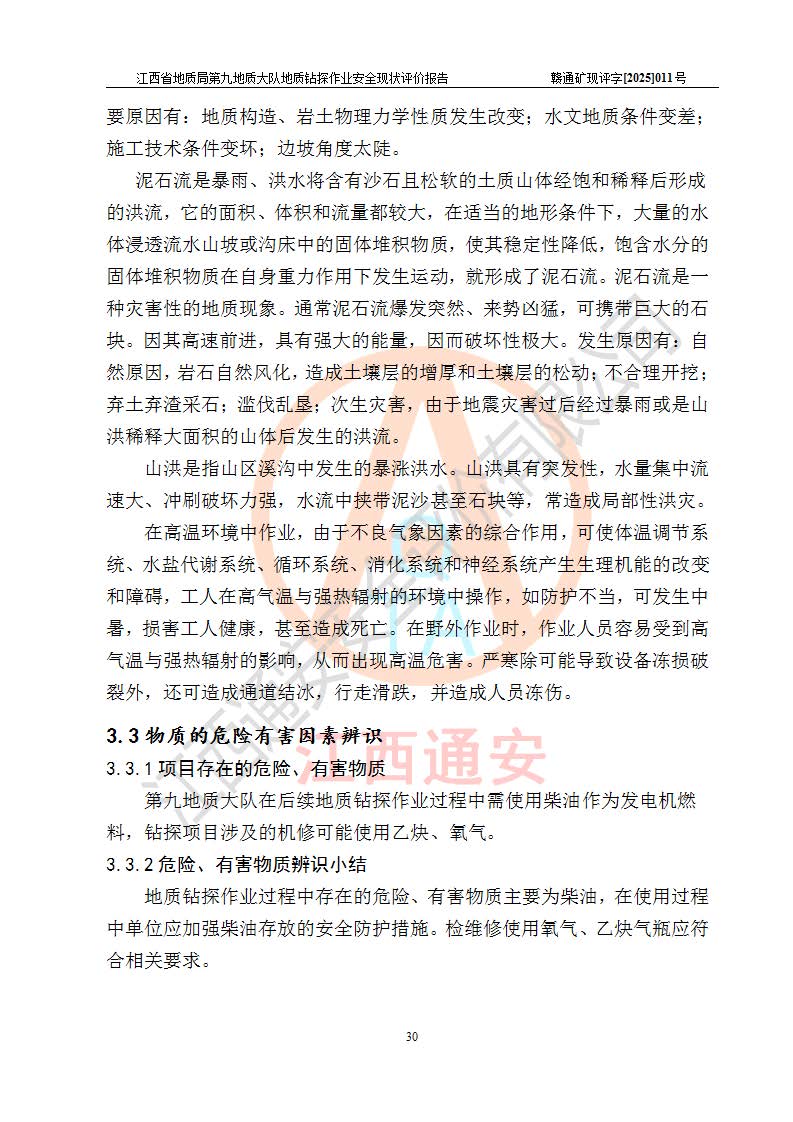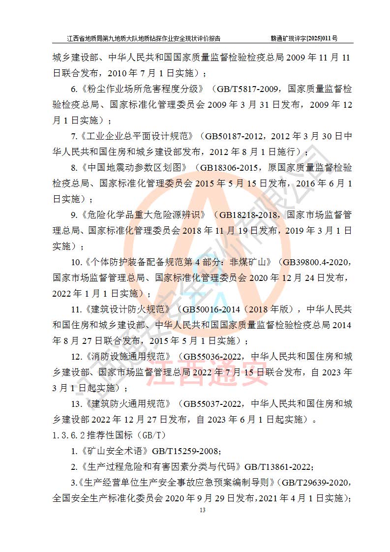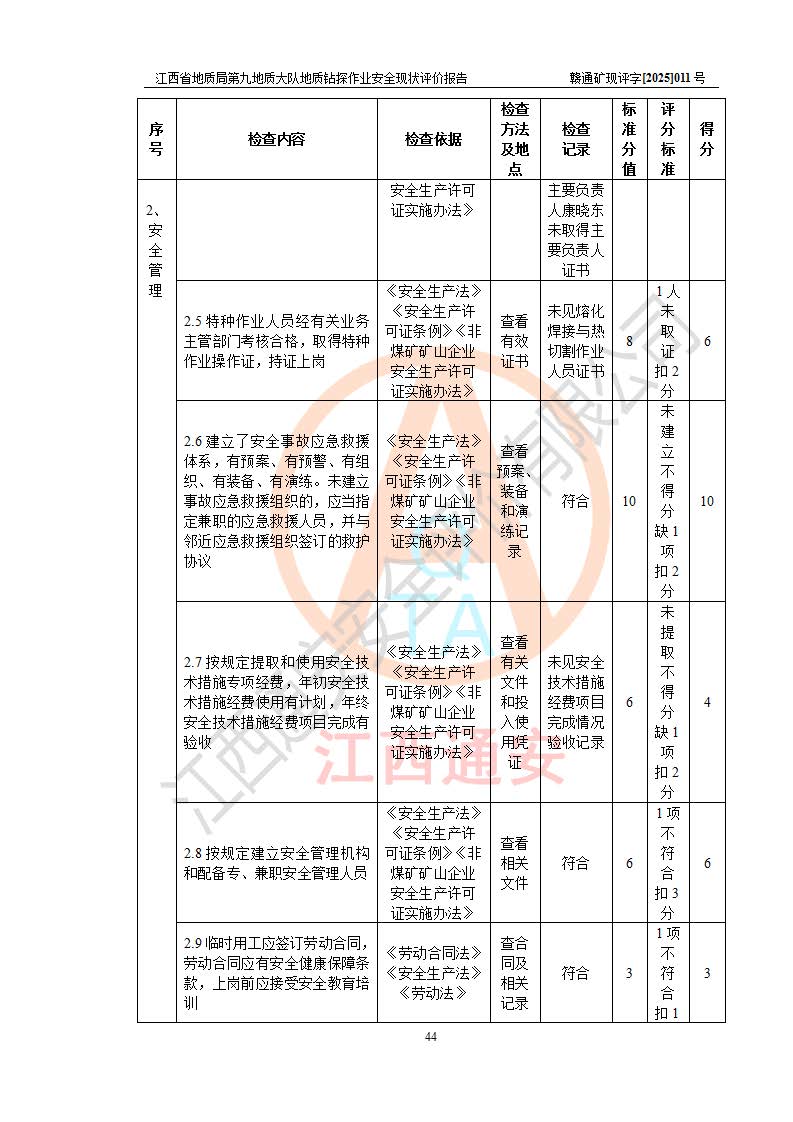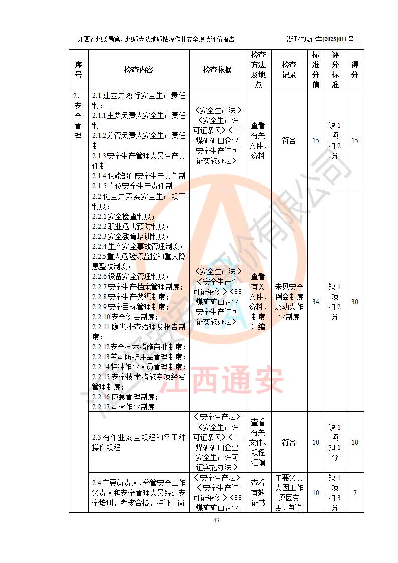 报告名称 | 江西省地质局第九地质大队地质钻探作业安全现状评价报告 | |||||