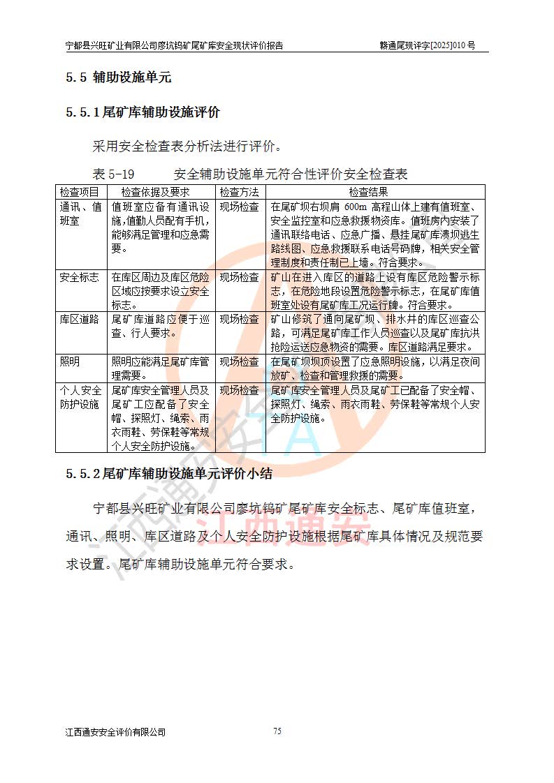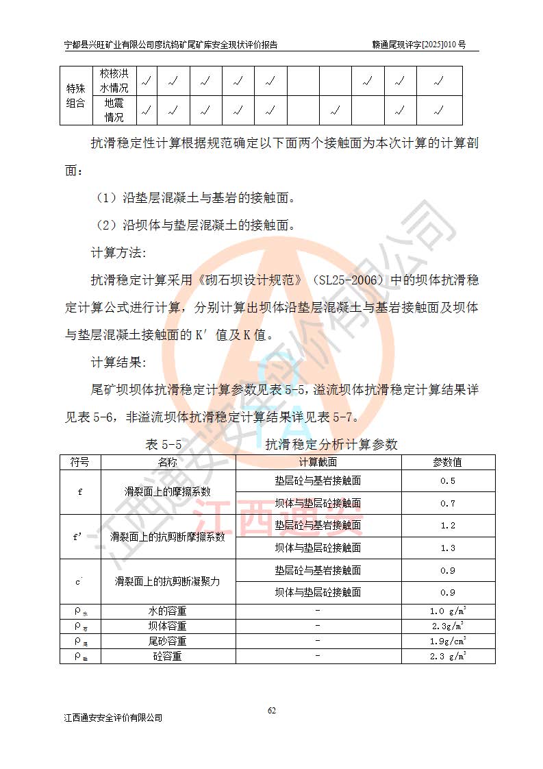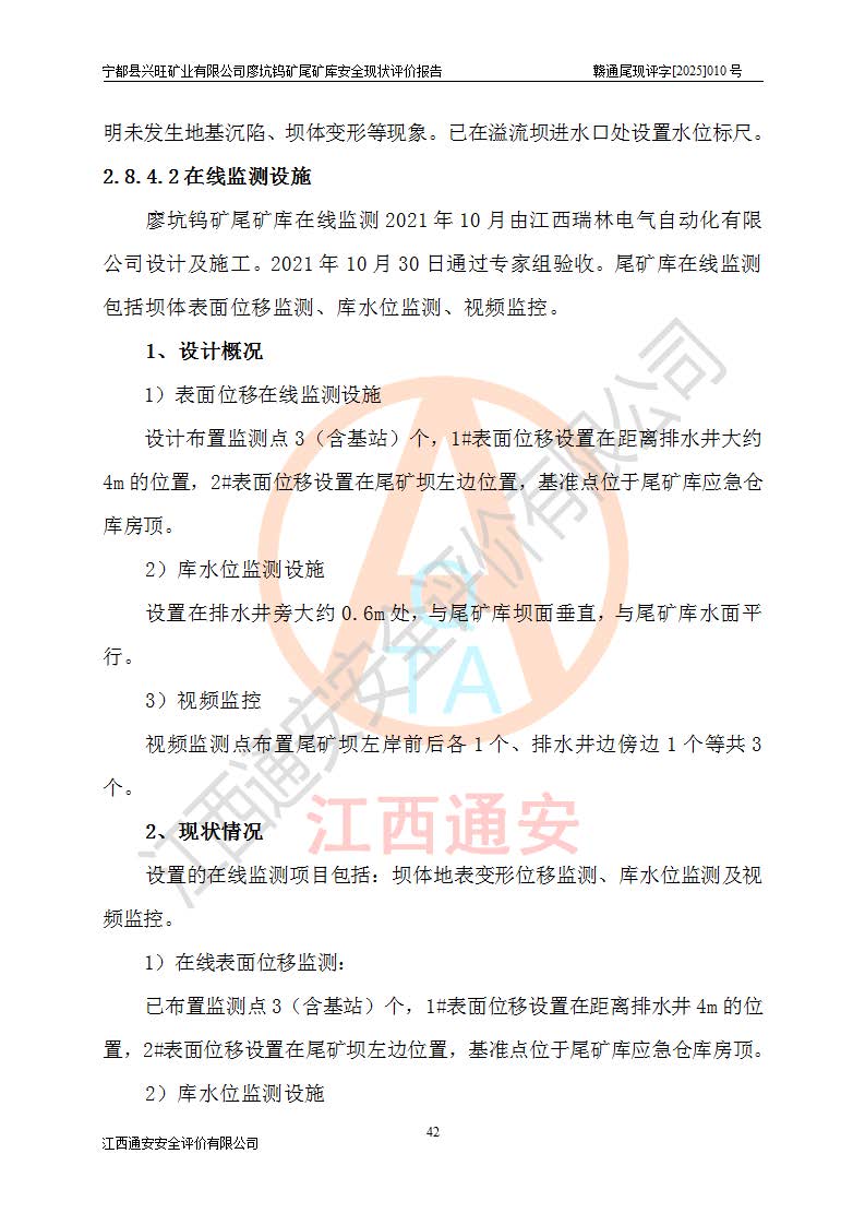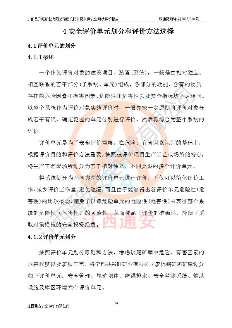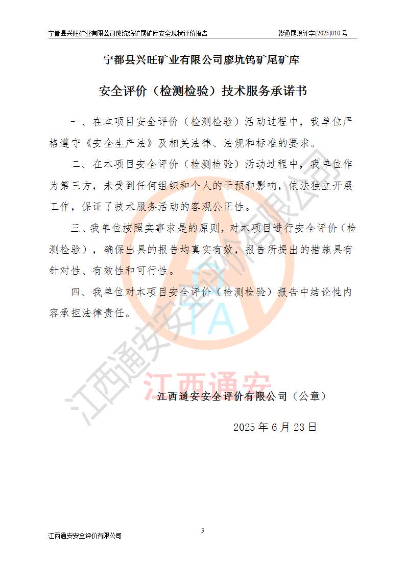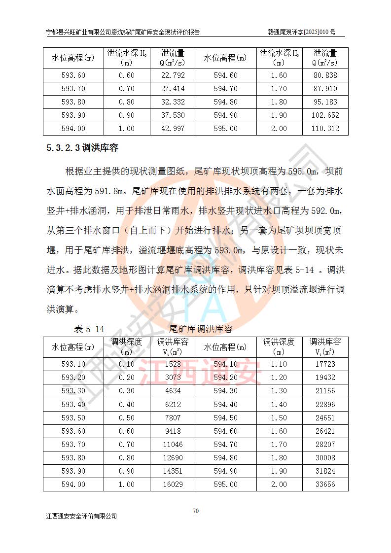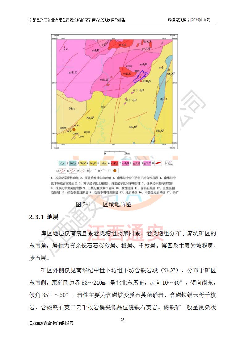 宁都县兴旺矿业有限公司廖坑钨矿位于宁都县县城北西直距约15km处的安福乡西甲村,地理坐标:东经115°50′48″;北纬26°32′1″。宁都县兴旺矿业有限公司成立于2006年03月29日,统一社会信用代码为91360730787253633E,企业类型为有限责任公司(自然人投资或控股),企业注册地位于江西省赣州市宁都县安福乡西甲村,法定**人为曾德强,注册资本为1915万元人民币,所属行业为有色金属矿采选业,经营范围包括钨砂开采及废砂石加工、销售。 廖坑钨矿尾矿库位于宁都县安福乡西甲村、选矿厂东面约1.17Km的下游沟谷中,选矿厂年生产工作日300d,尾矿堆积干容重1.60 t/m3。尾矿库汇水面积1.927km2,尾矿坝为浆砌块石重力坝,坝顶高程595.0m,清基后坝底高程为571.0m,坝高24.0m,坝顶宽度2.7m,坝顶轴线长75.0m;上游坝坡1:0,下游坝坡1:1.0。尾矿从库尾进行排放,设计总库容8.5×104m3,服务年限10.9年。尾矿库总占地面积约21.0亩。为山谷型五等库。 该尾矿库于1982年11月由宁都县水电施工队建设施工,1983年11月投产,2007年1月由江西省冶金设计院编制了《宁都县兴旺矿业有限公司廖坑钨矿尾矿库整改方案设计》,2008年4月2日取得江西省安全生产监督管理局颁发的安全生产许可证,证书编号(赣)FM安许证字[2008]M1268号。2022年江西通安安全评价有限公司编制了安全现状评价报告,2022年7月15日由赣州市行政审批局下发了安全生产许可证,证号(赣)FM安许证字[2022]B0081号,(赣市行审证(3)字[2022]第274号),**期至2025年7月14日。 依照《非煤矿矿山企业安全生产许可证延期换证工作》的通知,根据***《安全生产许可证条例》、《江西省安全生产条例》、《非煤矿山安全生产许可证实施办法》、《江西省非煤矿矿山企业安全生产许可证办法》规定及非煤矿山安全评价导则的要求,受宁都县兴旺矿业有限公司的委托,我公司承担廖坑钨矿尾矿库延期换证的安全现状评价工作。 |