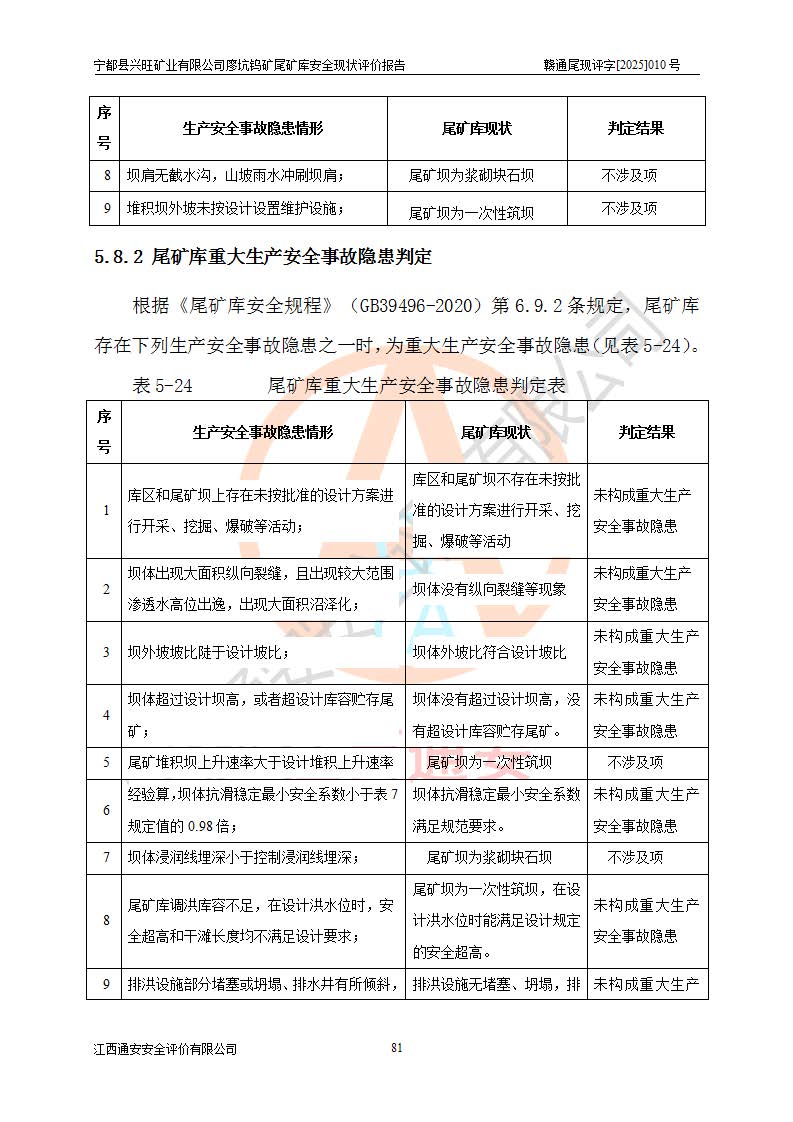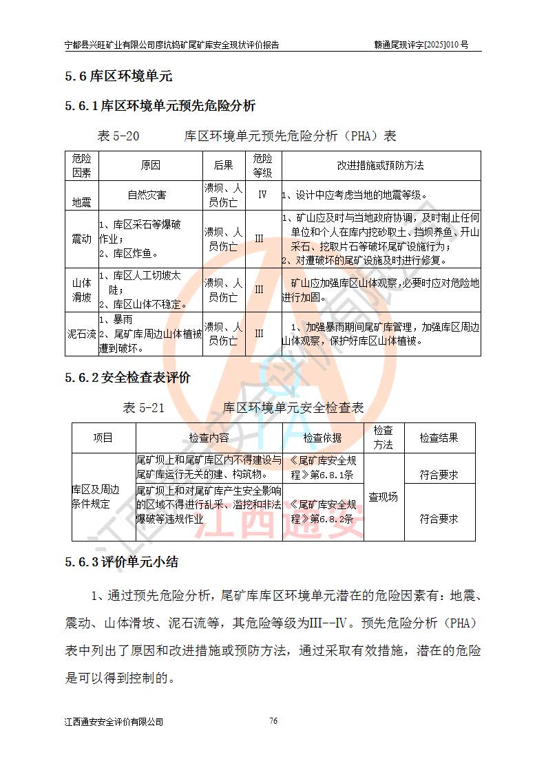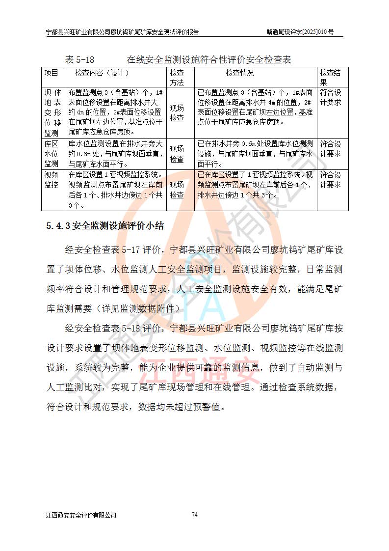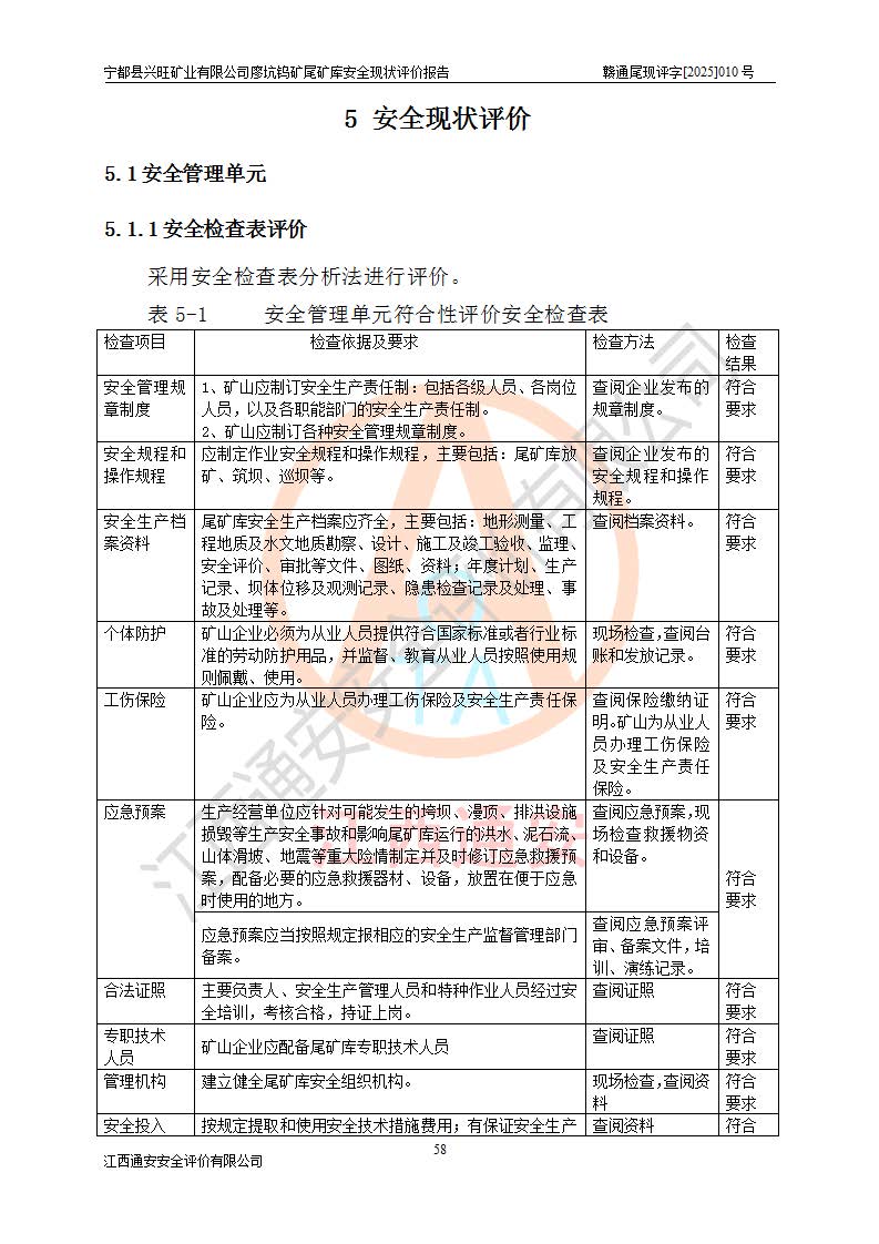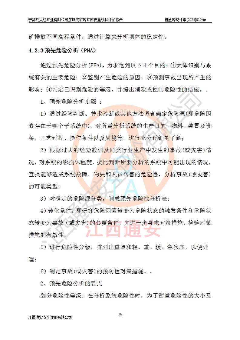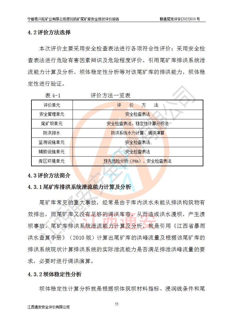 宁都县兴旺矿业有限公司廖坑钨矿位于宁都县县城北西直距约15km处的安福乡西甲村,地理坐标:东经115°50′48″;北纬26°32′1″。宁都县兴旺矿业有限公司成立于2006年03月29日,统一社会信用代码为91360730787253633E,企业类型为有限责任公司(自然人投资或控股),企业注册地位于江西省赣州市宁都县安福乡西甲村,法定**人为曾德强,注册资本为1915万元人民币,所属行业为有色金属矿采选业,经营范围包括钨砂开采及废砂石加工、销售。 廖坑钨矿尾矿库位于宁都县安福乡西甲村、选矿厂东面约1.17Km的下游沟谷中,选矿厂年生产工作日300d,尾矿堆积干容重1.60 t/m3。尾矿库汇水面积1.927km2,尾矿坝为浆砌块石重力坝,坝顶高程595.0m,清基后坝底高程为571.0m,坝高24.0m,坝顶宽度2.7m,坝顶轴线长75.0m;上游坝坡1:0,下游坝坡1:1.0。尾矿从库尾进行排放,设计总库容8.5×104m3,服务年限10.9年。尾矿库总占地面积约21.0亩。为山谷型五等库。 该尾矿库于1982年11月由宁都县水电施工队建设施工,1983年11月投产,2007年1月由江西省冶金设计院编制了《宁都县兴旺矿业有限公司廖坑钨矿尾矿库整改方案设计》,2008年4月2日取得江西省安全生产监督管理局颁发的安全生产许可证,证书编号(赣)FM安许证字[2008]M1268号。2022年江西通安安全评价有限公司编制了安全现状评价报告,2022年7月15日由赣州市行政审批局下发了安全生产许可证,证号(赣)FM安许证字[2022]B0081号,(赣市行审证(3)字[2022]第274号),**期至2025年7月14日。 依照《非煤矿矿山企业安全生产许可证延期换证工作》的通知,根据***《安全生产许可证条例》、《江西省安全生产条例》、《非煤矿山安全生产许可证实施办法》、《江西省非煤矿矿山企业安全生产许可证办法》规定及非煤矿山安全评价导则的要求,受宁都县兴旺矿业有限公司的委托,我公司承担廖坑钨矿尾矿库延期换证的安全现状评价工作。 |