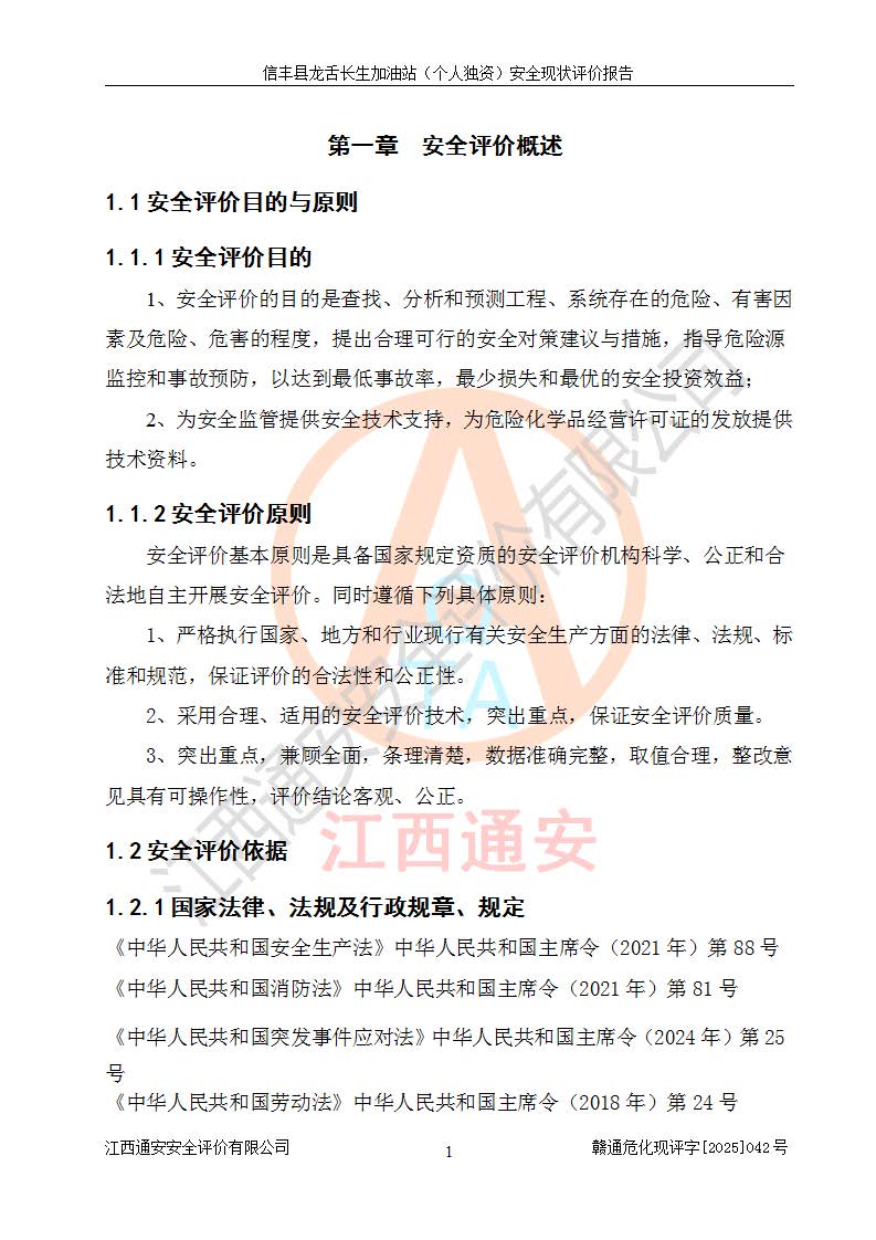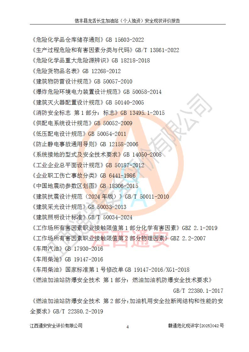 评价报告名称 | 信丰县龙舌长生加油站(个人独资)安全现状评价报告 | |||