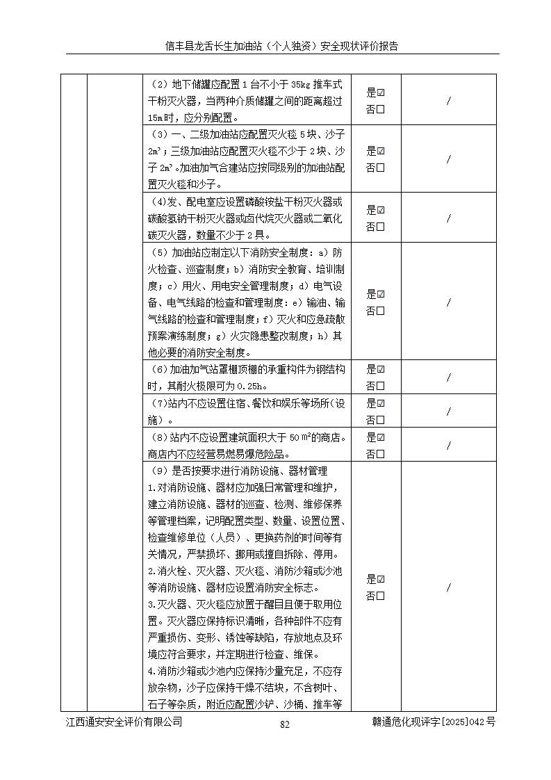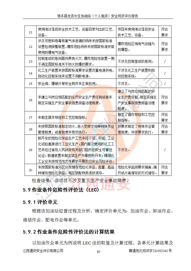 评价结论 | 信丰县龙舌长生加油站(个人独资)安全现状符合危险化学品经营安全条件。 | |||