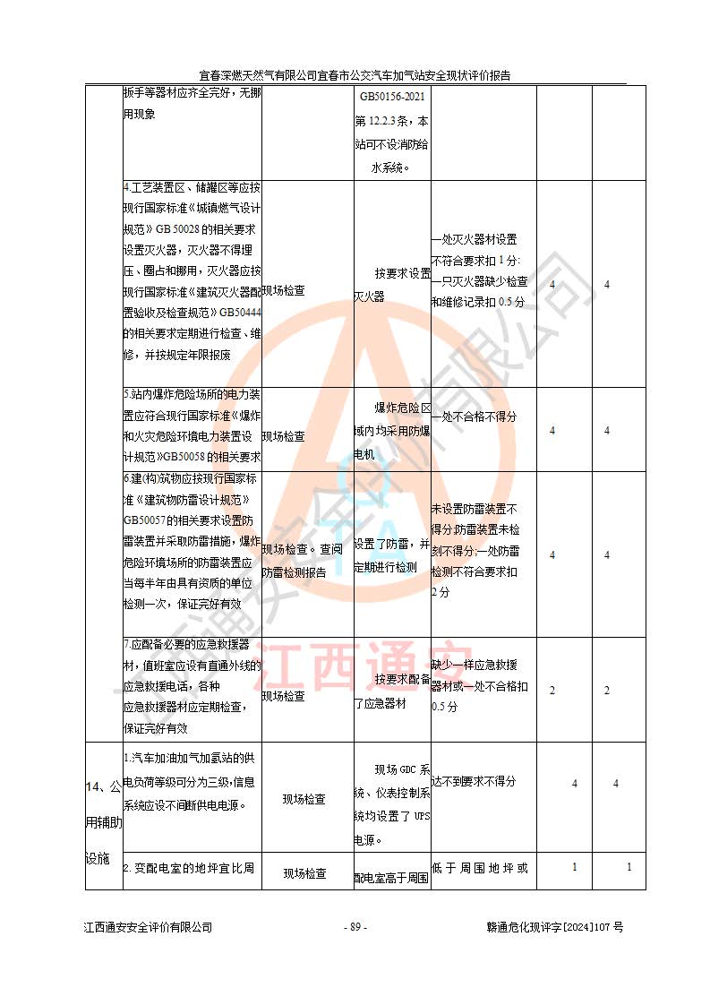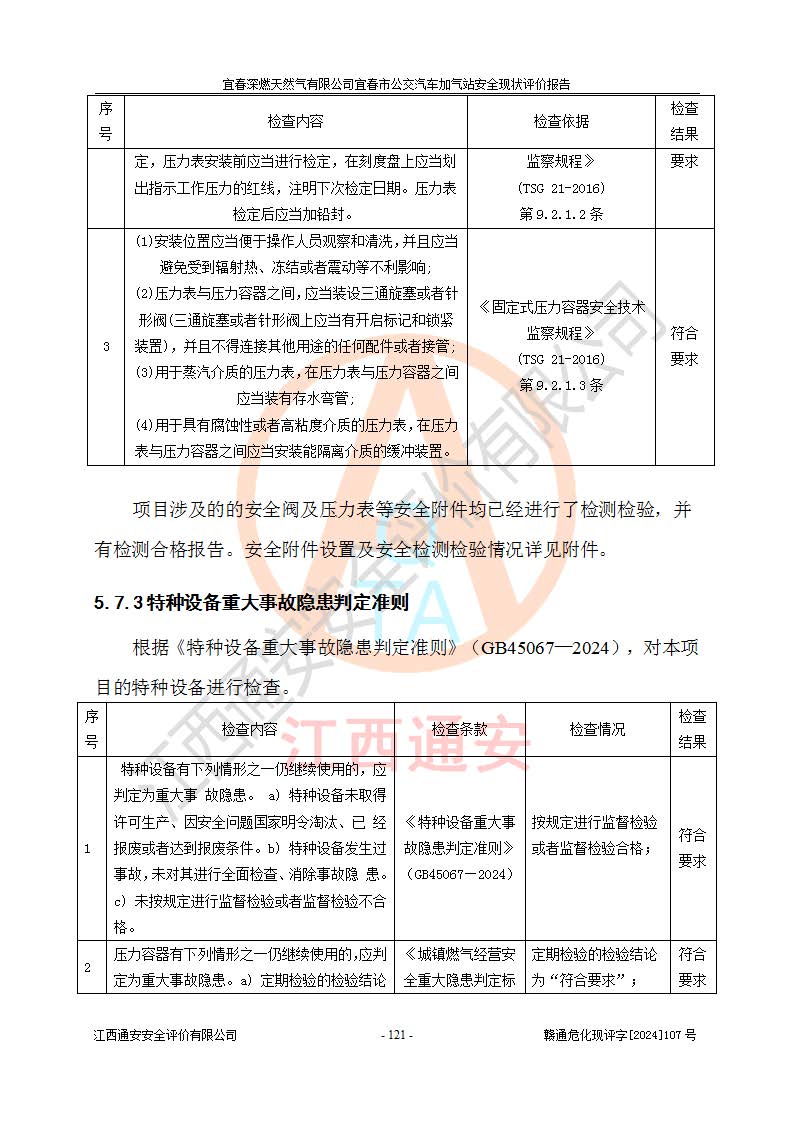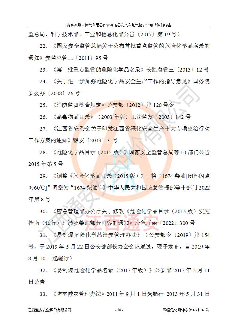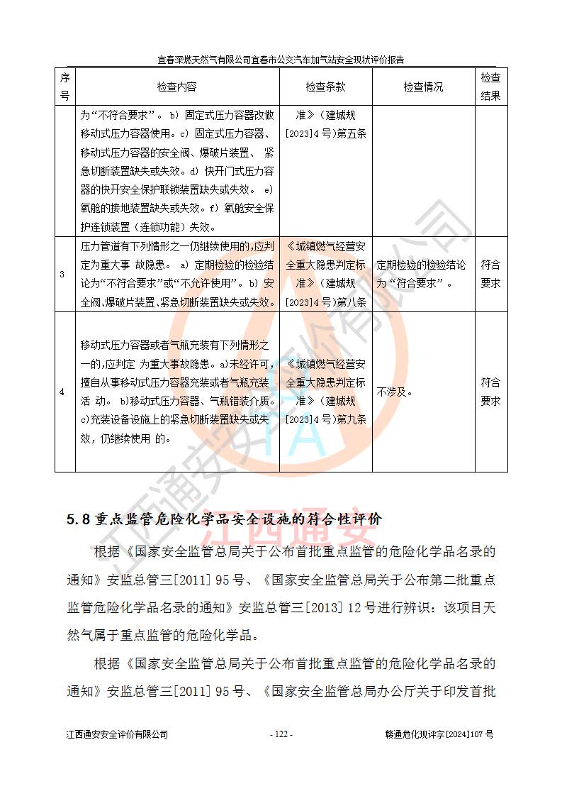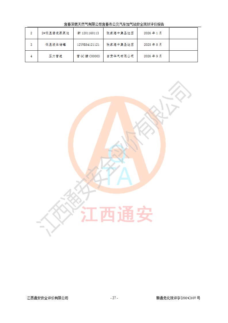 项目名称 | 宜春深燃天然气有限公司宜春市公交汽车加气站安全现状评价报告 | ||||