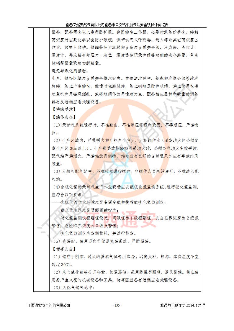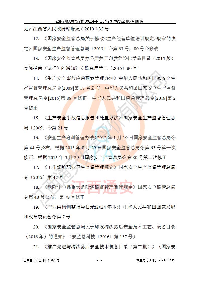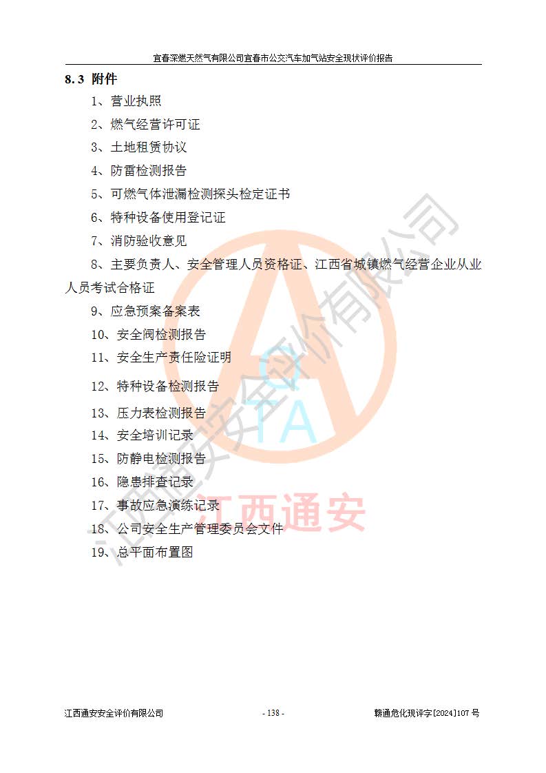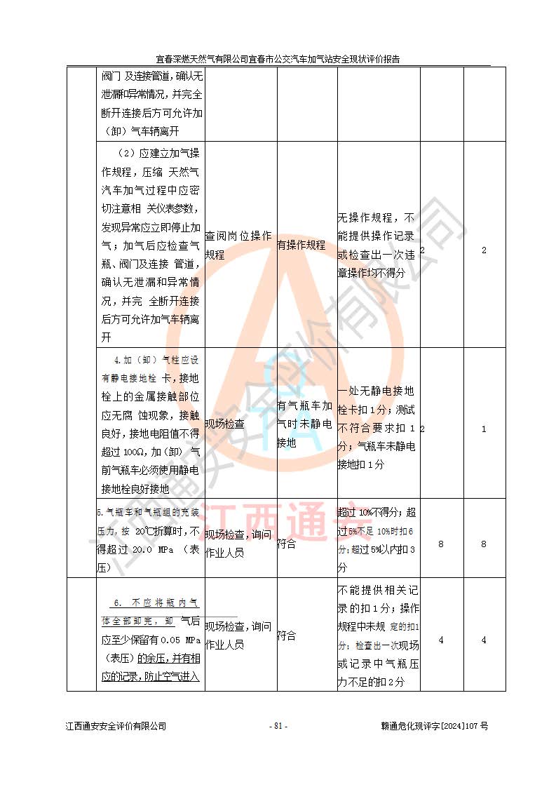 项目名称 | 宜春深燃天然气有限公司宜春市公交汽车加气站安全现状评价报告 | ||||
