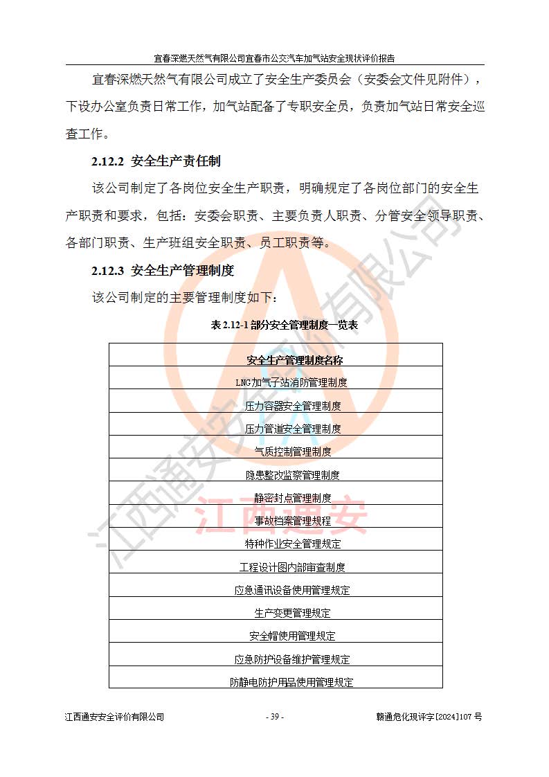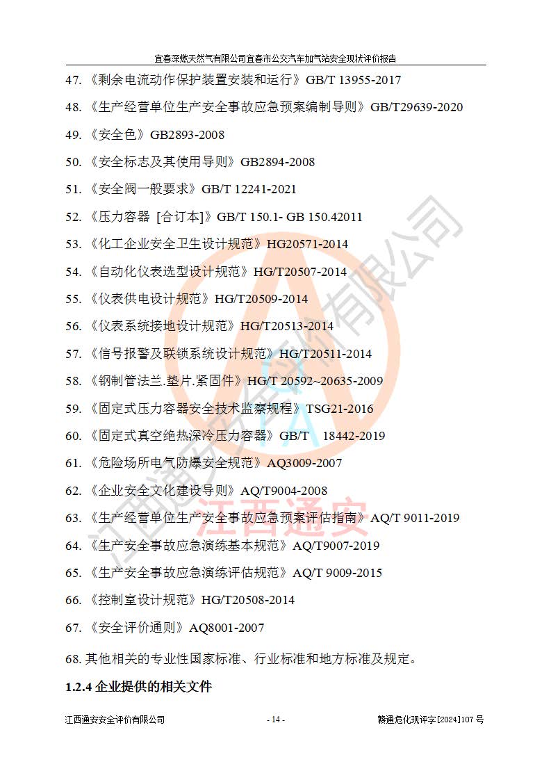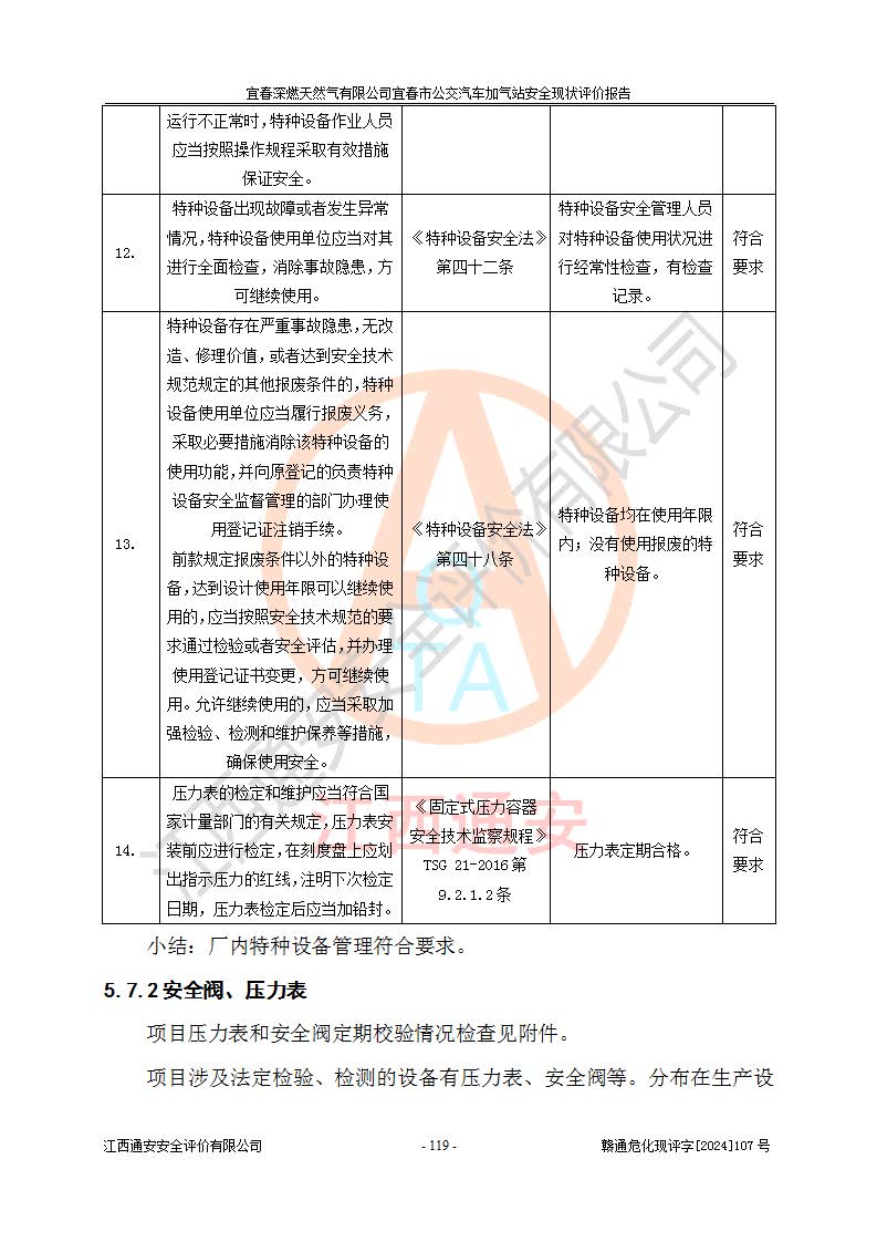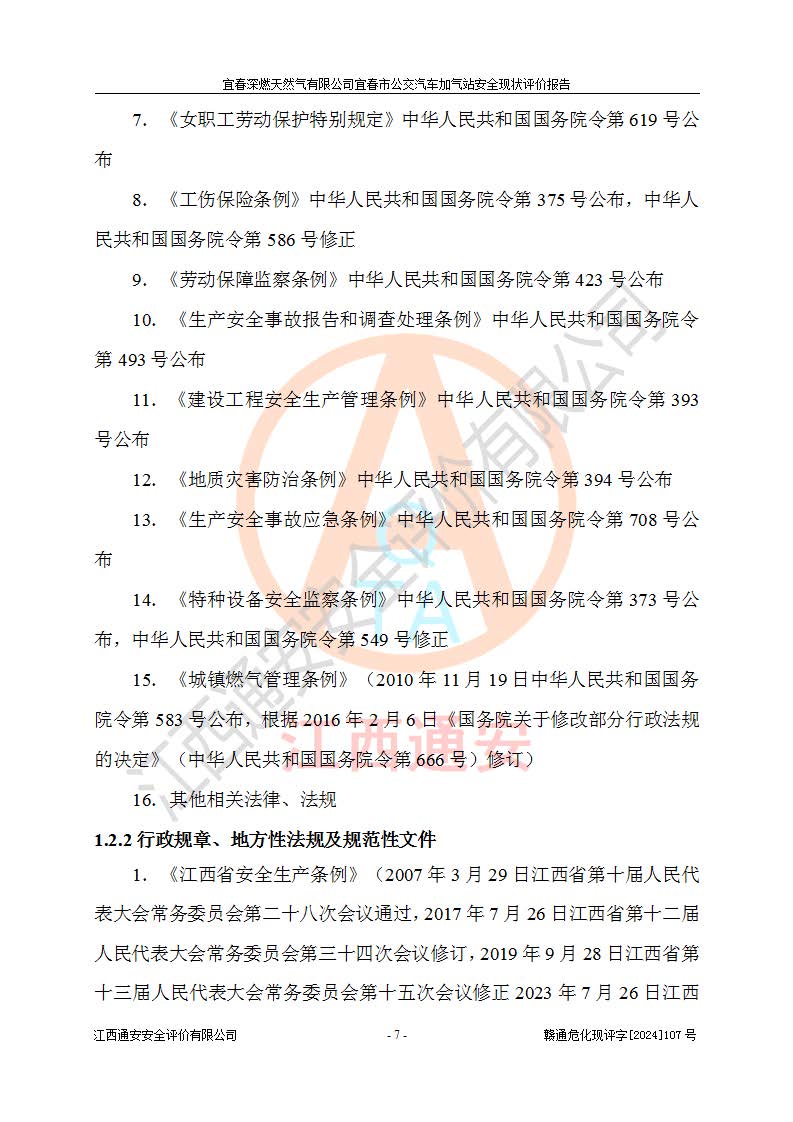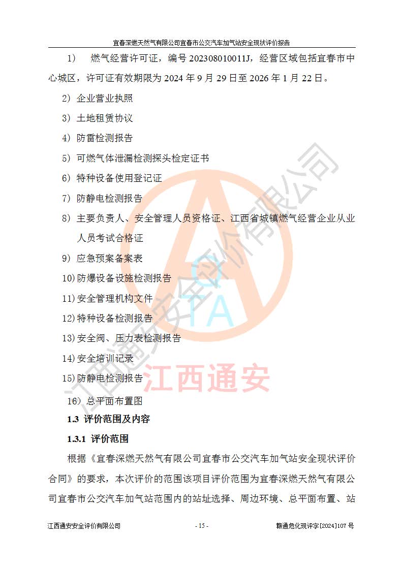 项目名称 | 宜春深燃天然气有限公司宜春市公交汽车加气站安全现状评价报告 | ||||