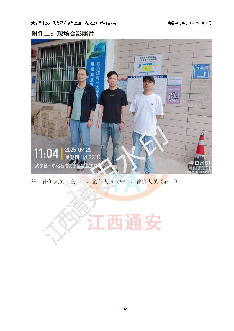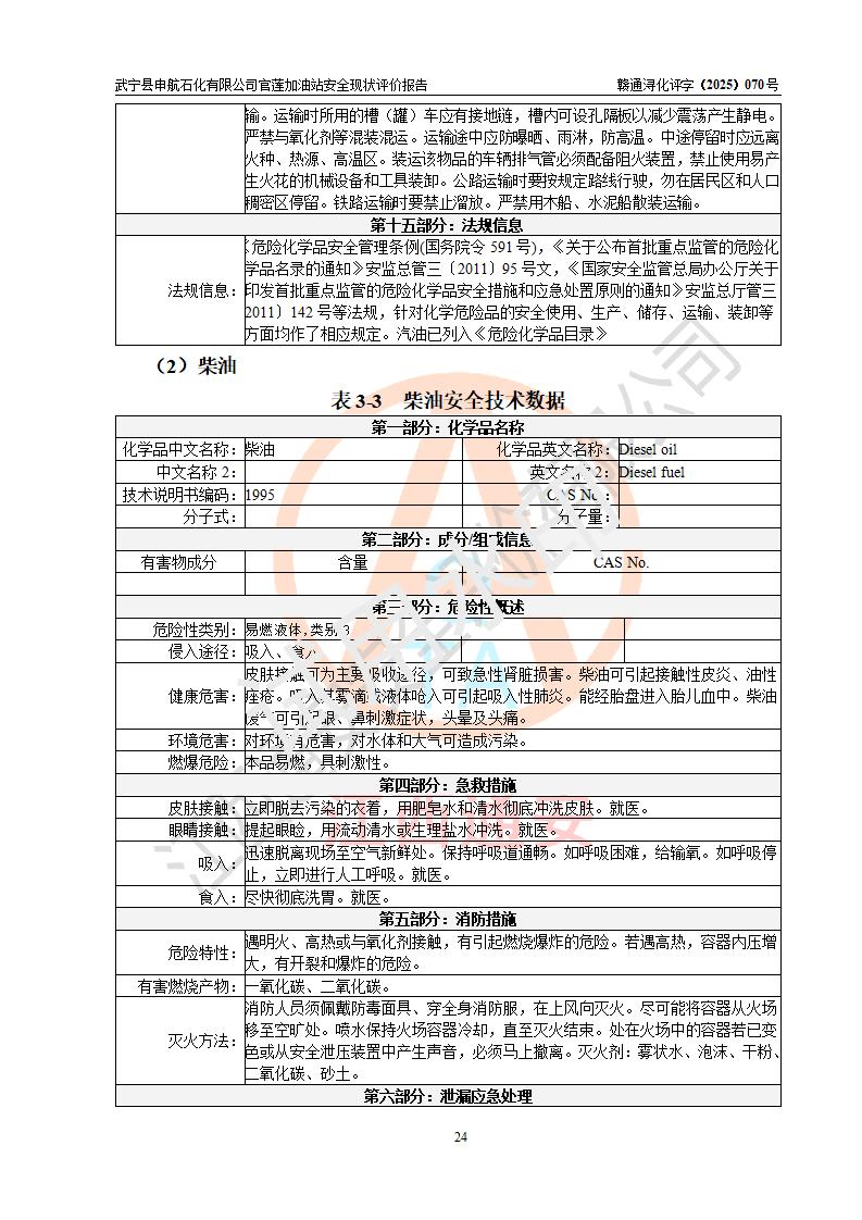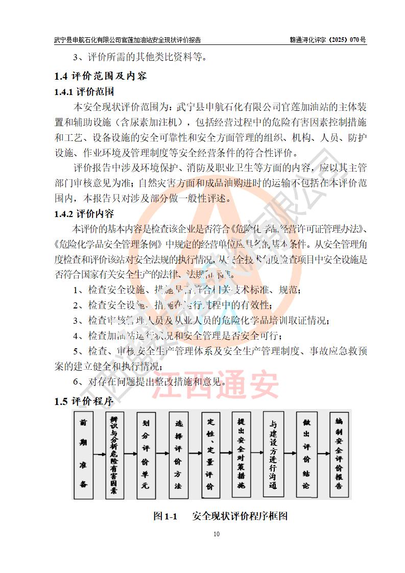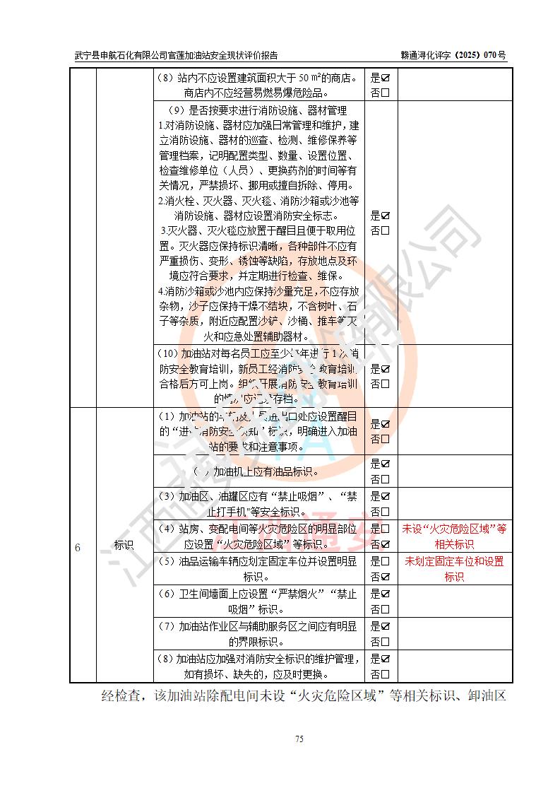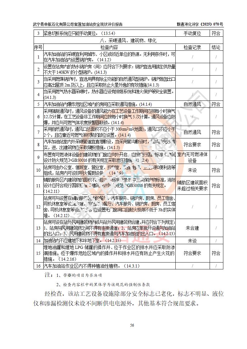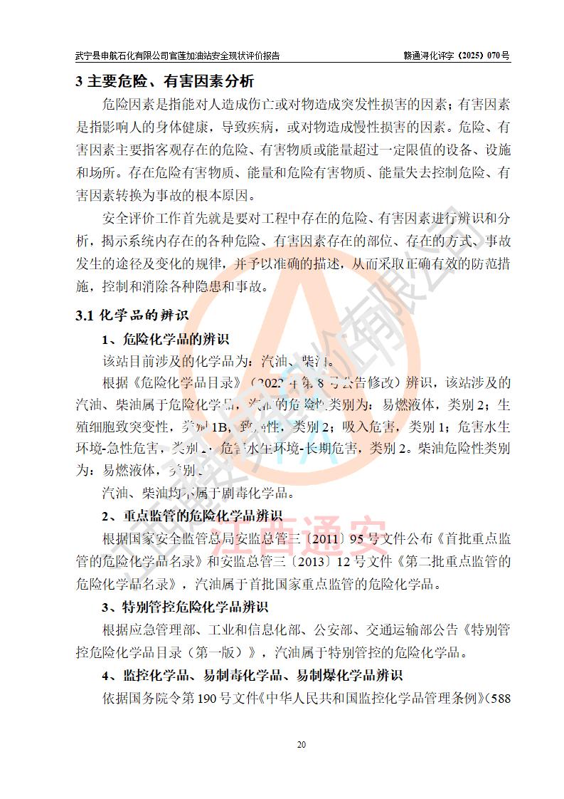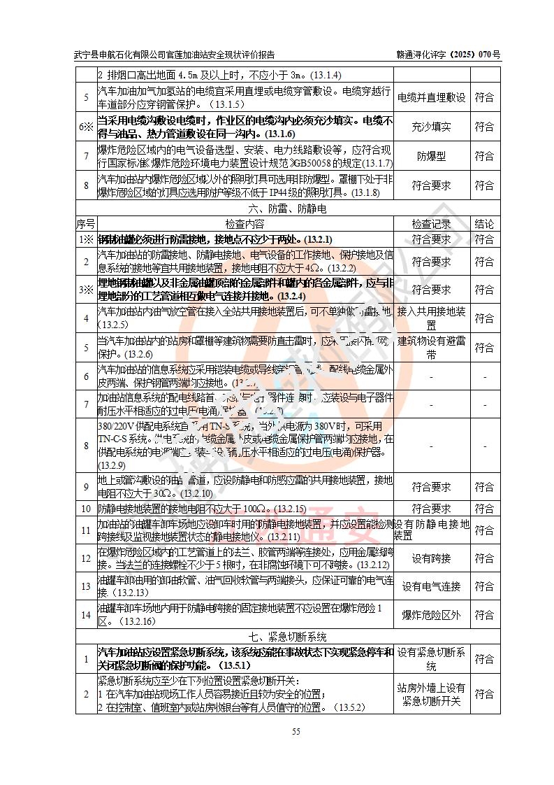 评价结论 | 武宁县申航石化有限公司官莲加油站涉及的安全条件、安全经营条件、安全生产管理符合《危险化学品经营许可证管理办法》、《汽车加油加气加氢站技术标准》等**有关法规、标准、规范要求,能满足危险化学品经营安全条件。 | |||