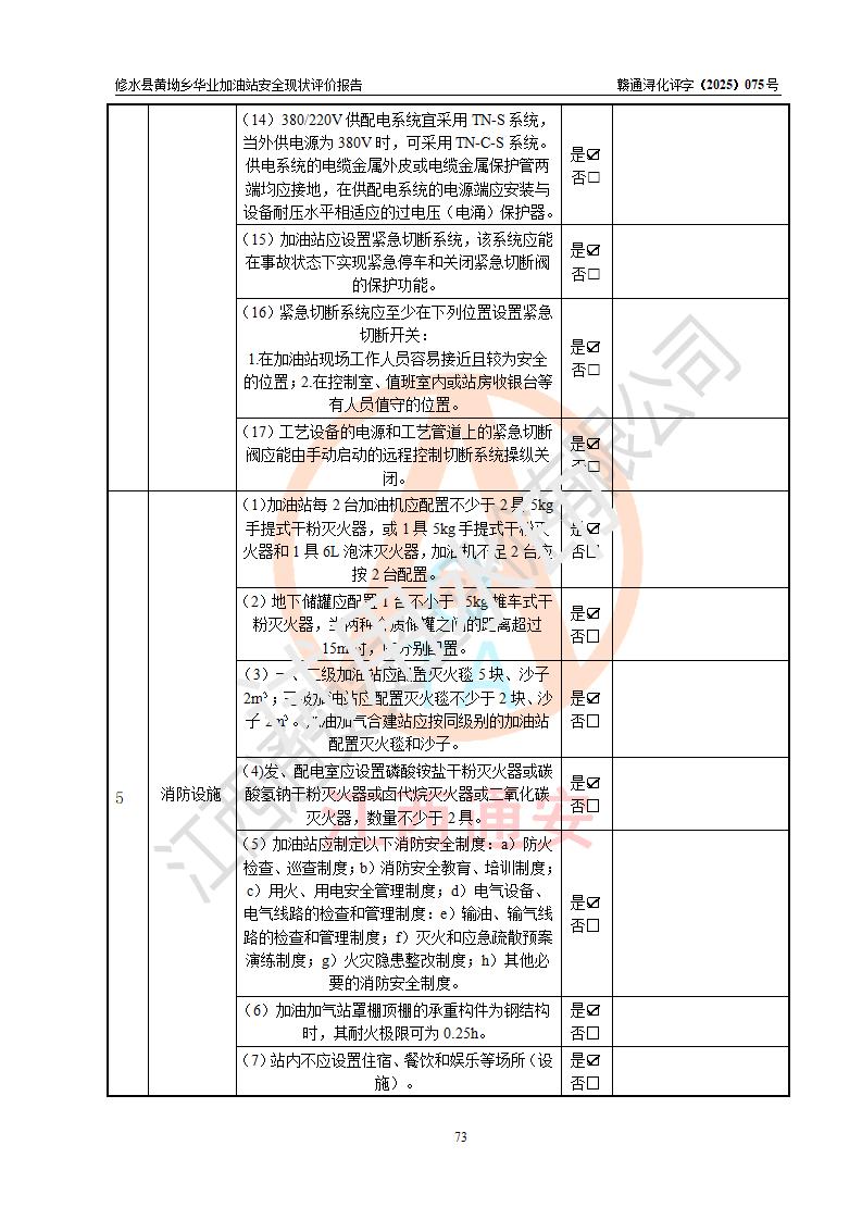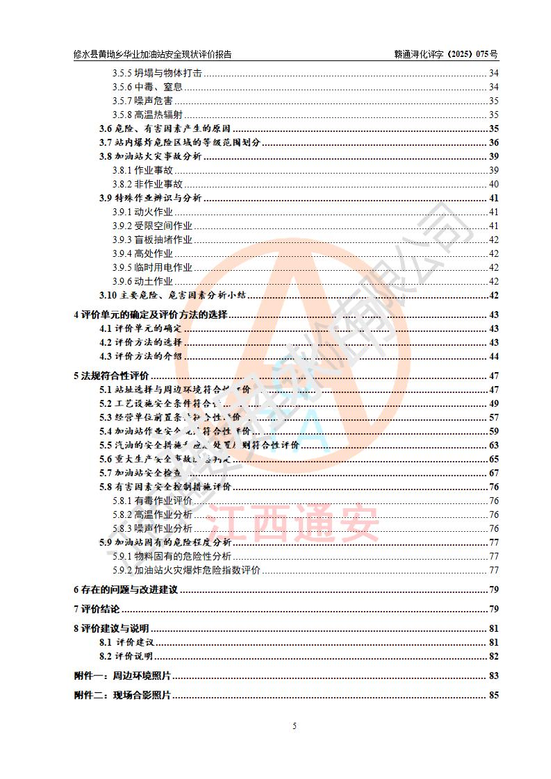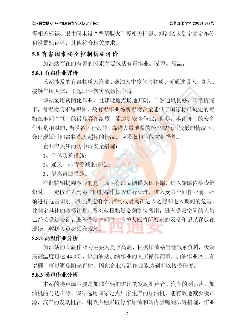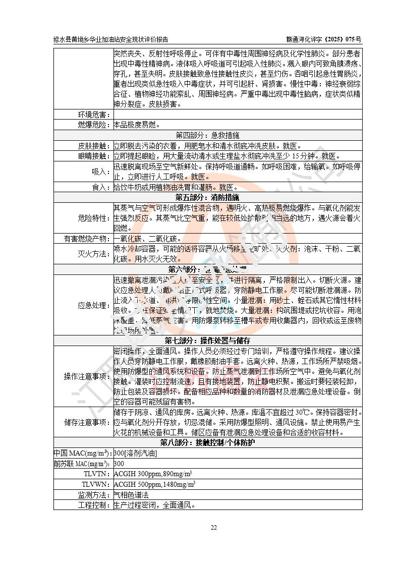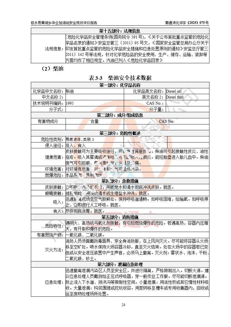 评价结论 | 修水县黄坳乡华业加油站涉及的安全条件、安全经营条件、安全生产管理符合《危险化学品经营许可证管理办法》、《汽车加油加气加氢站技术标准》等**有关法规、标准、规范要求,能满足危险化学品经营安全条件。 | |||