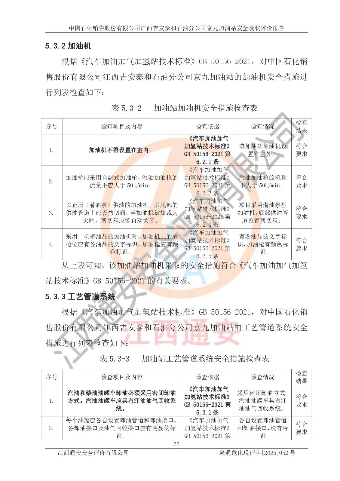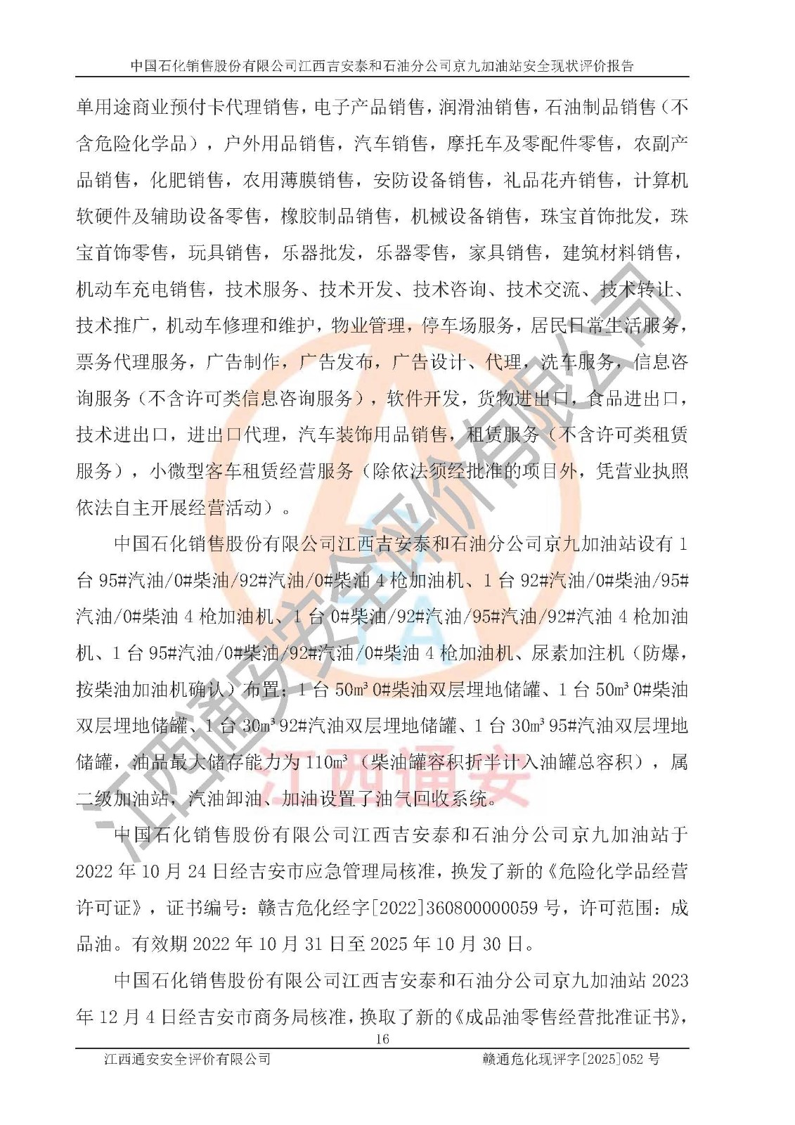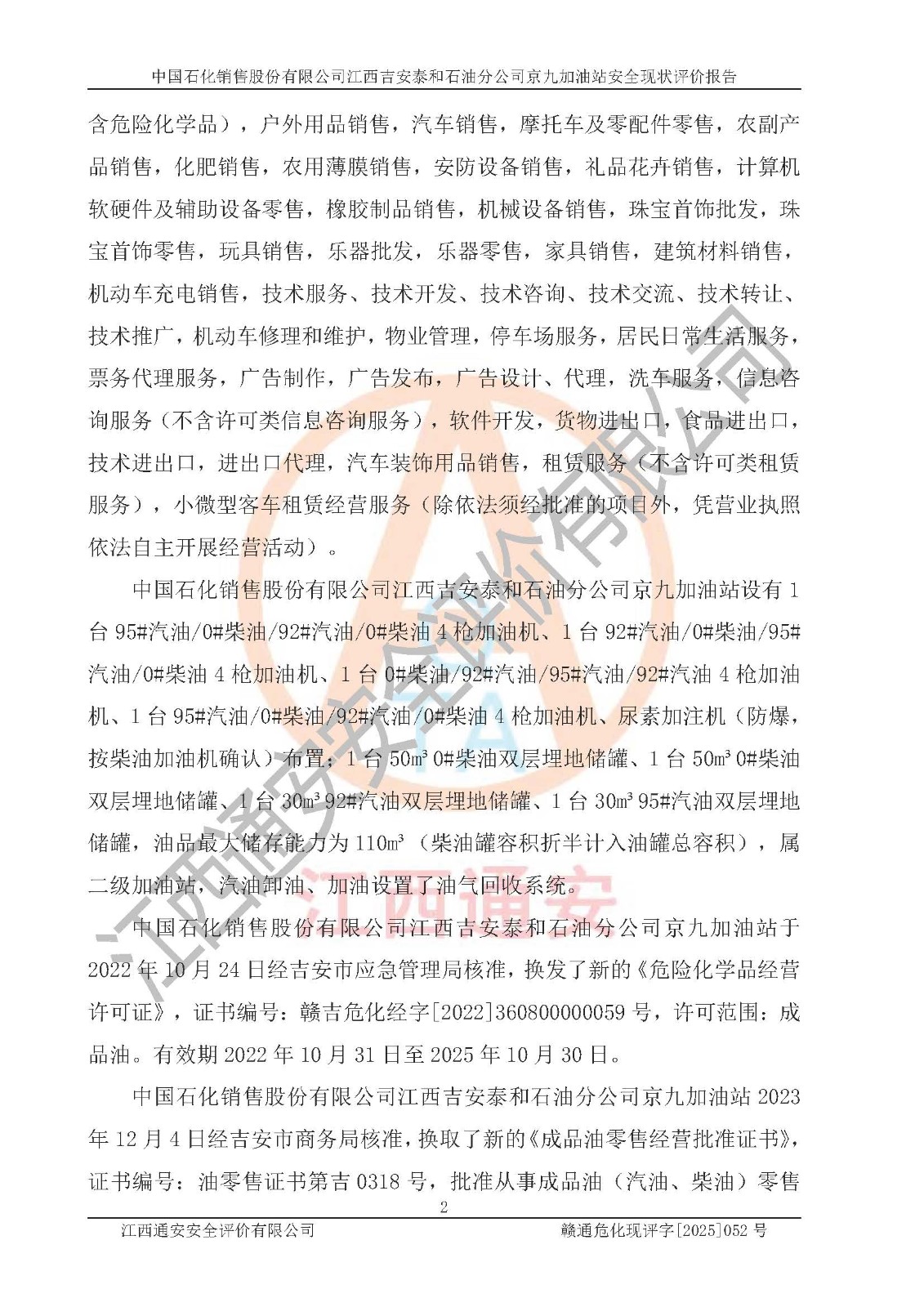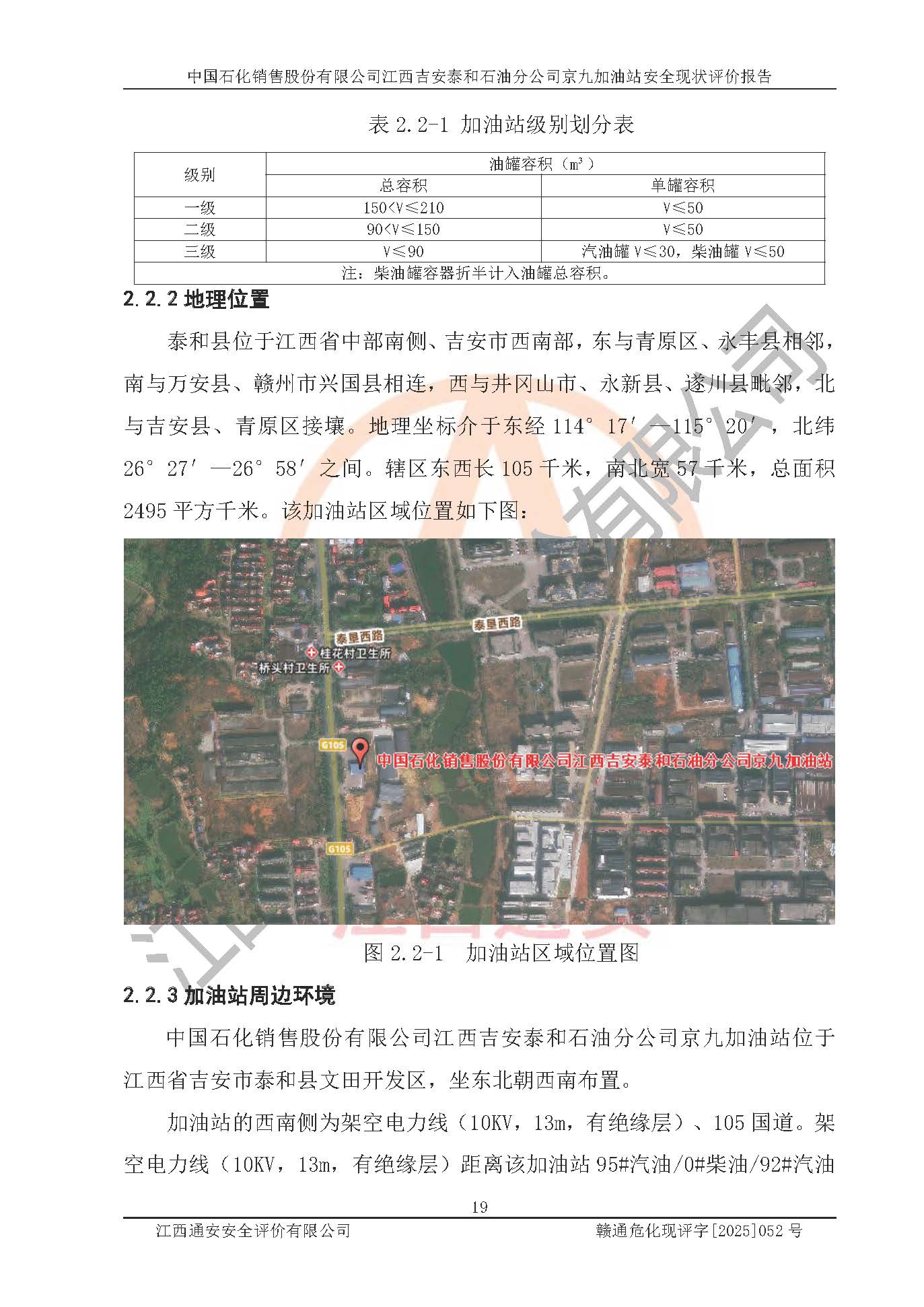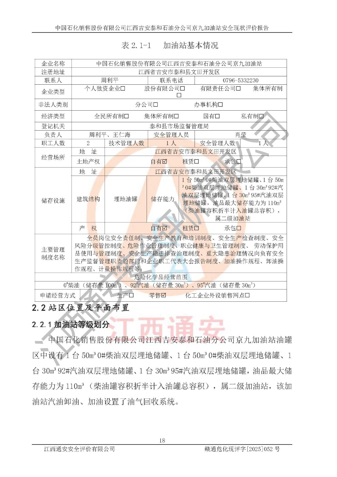 项目名称 | 中国石化销售股份有限公司江西吉安泰和石油分公司京九加油站 安全现状评价报告 | ||||