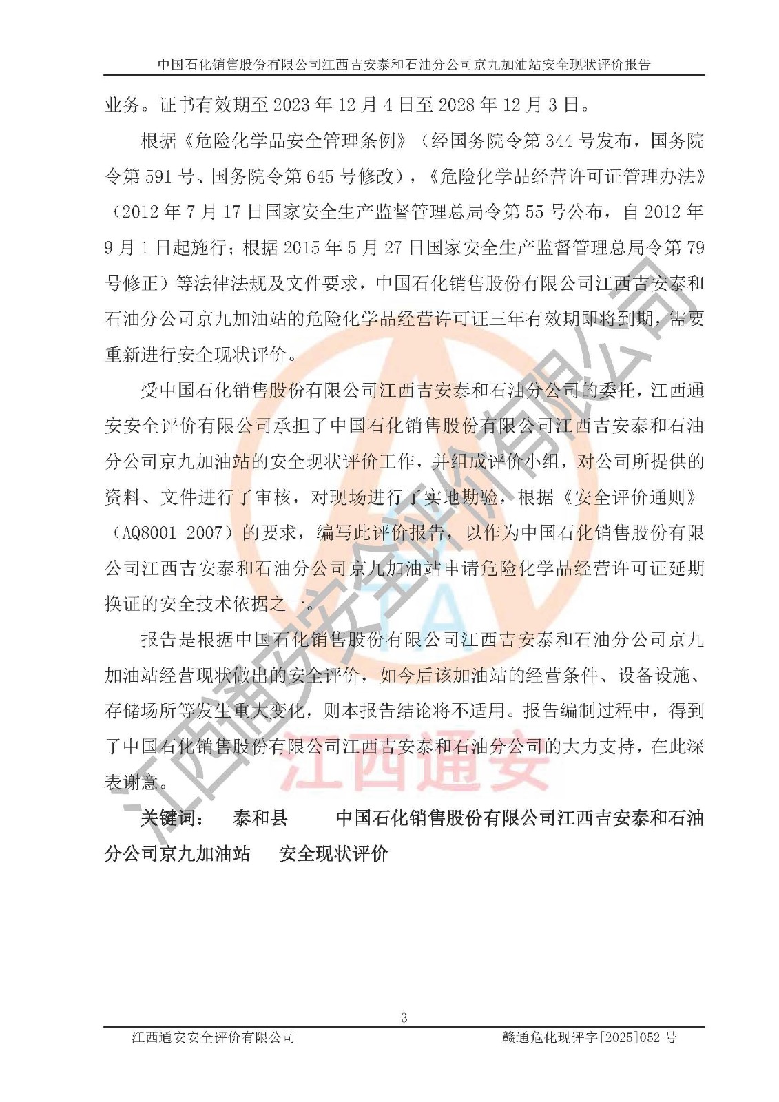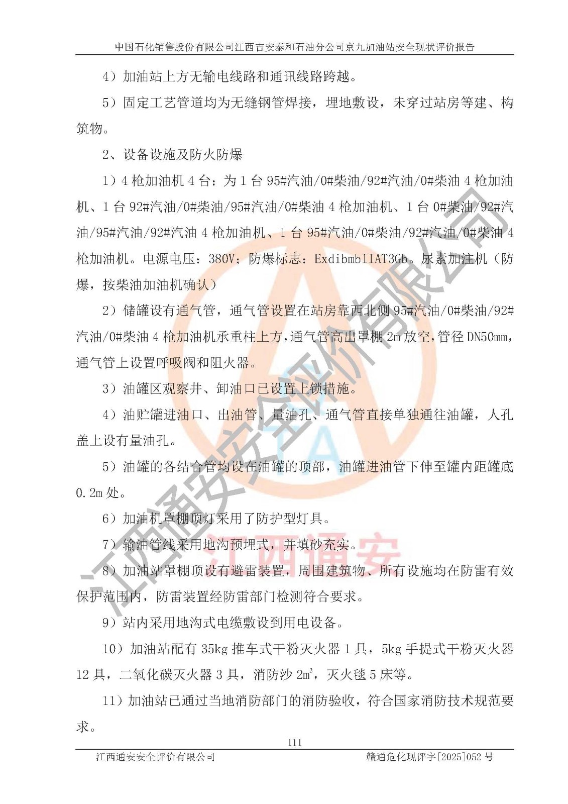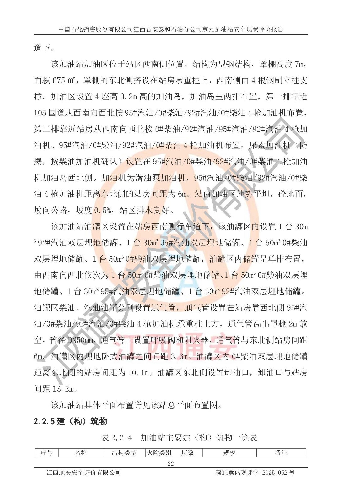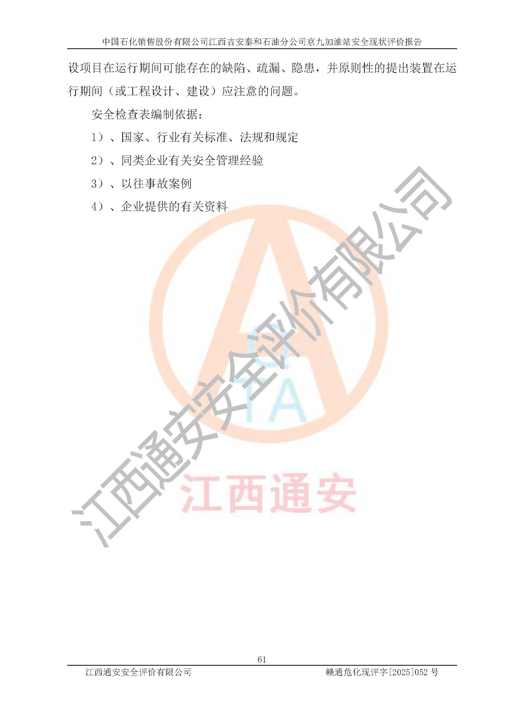 项目名称 | 中国石化销售股份有限公司江西吉安泰和石油分公司京九加油站 安全现状评价报告 | ||||