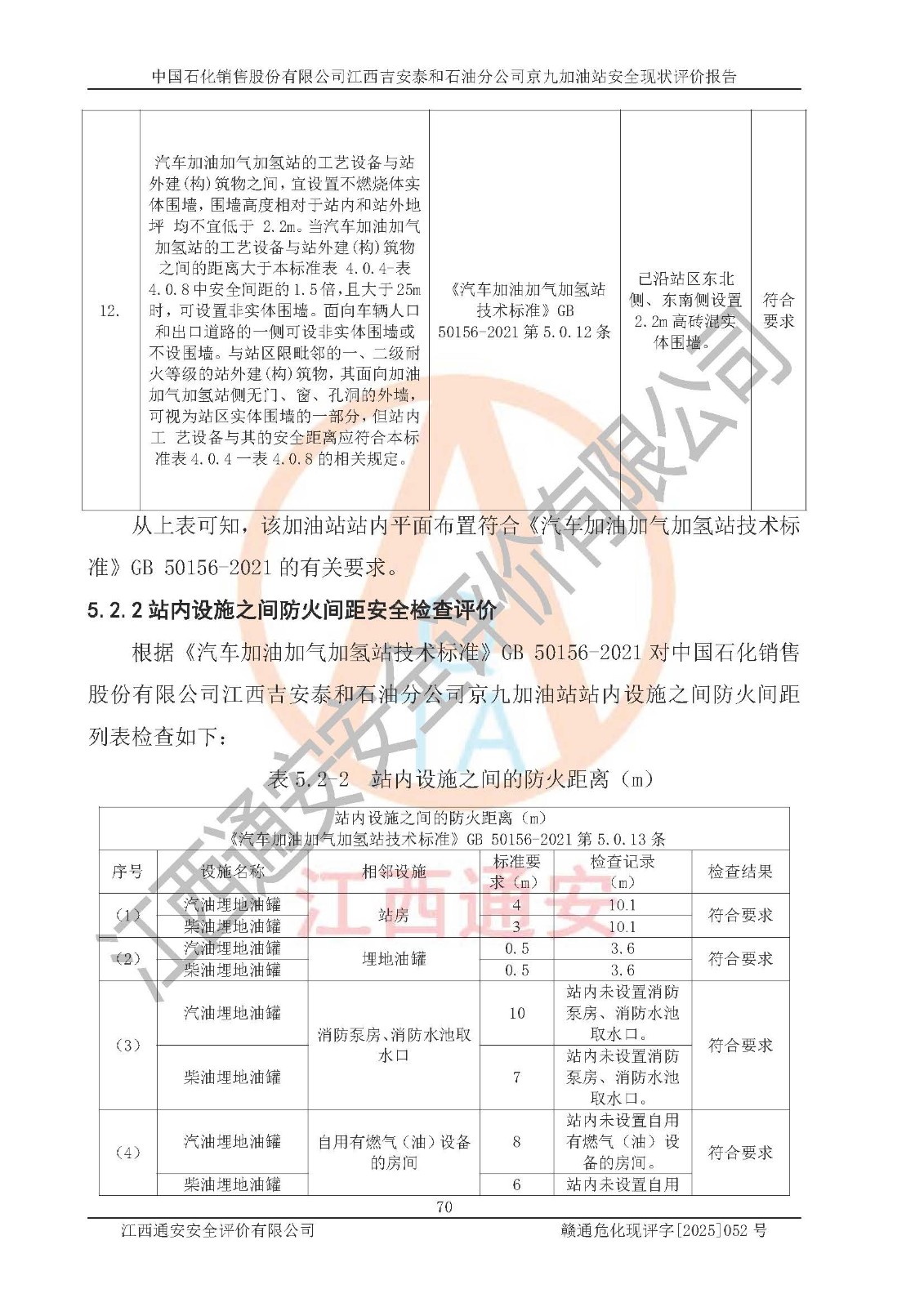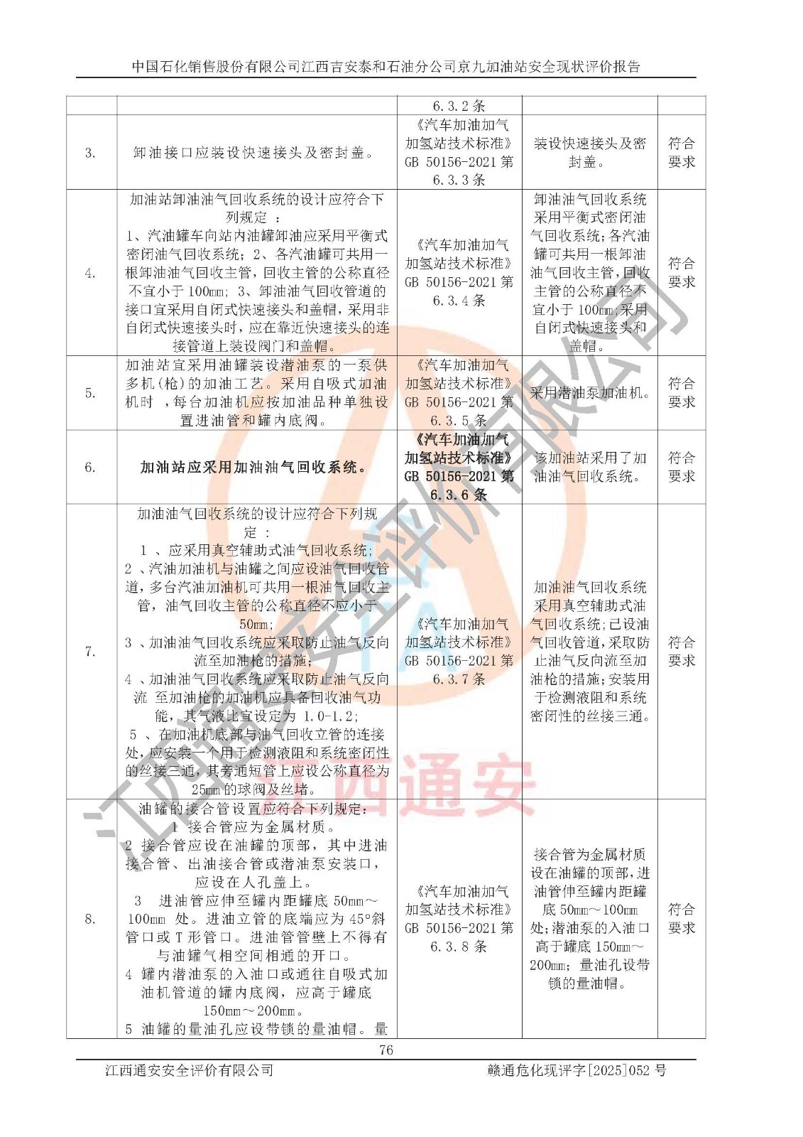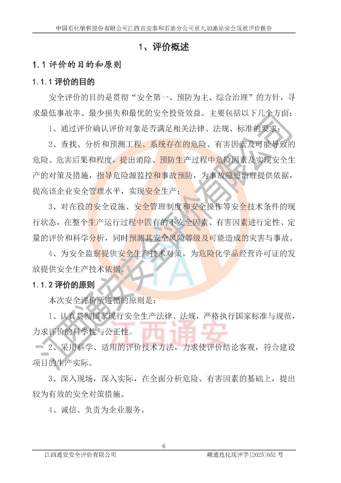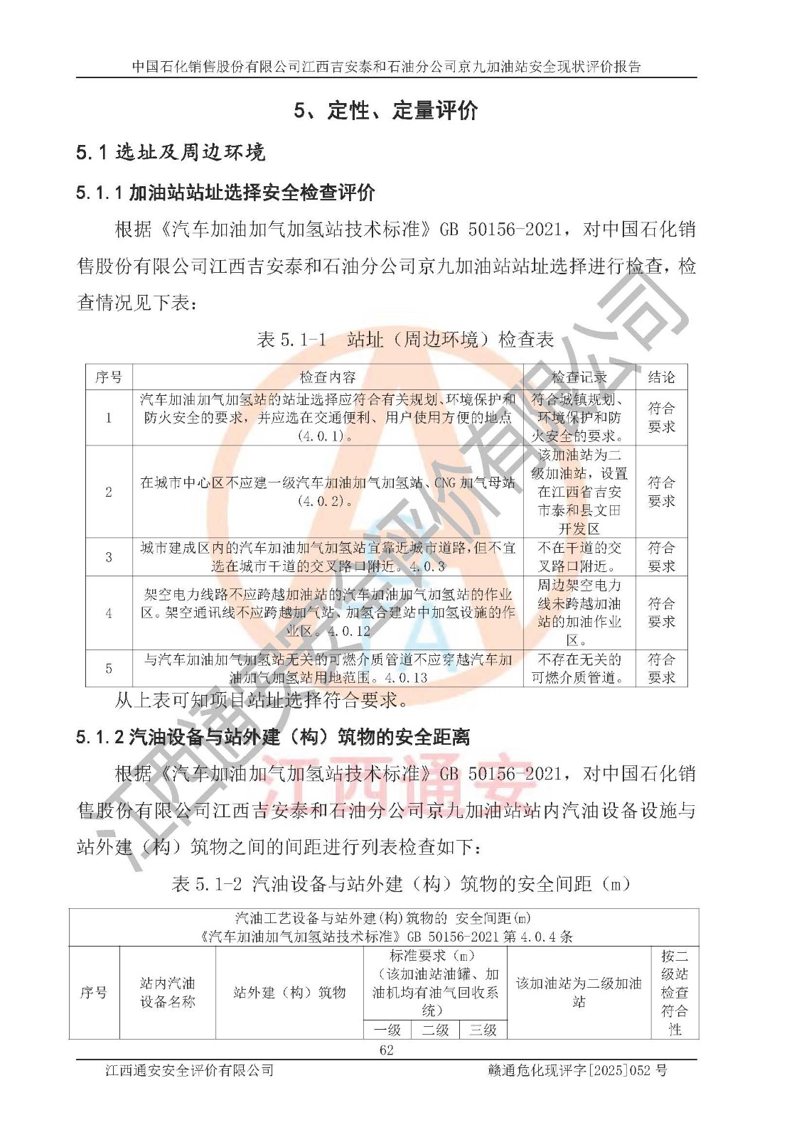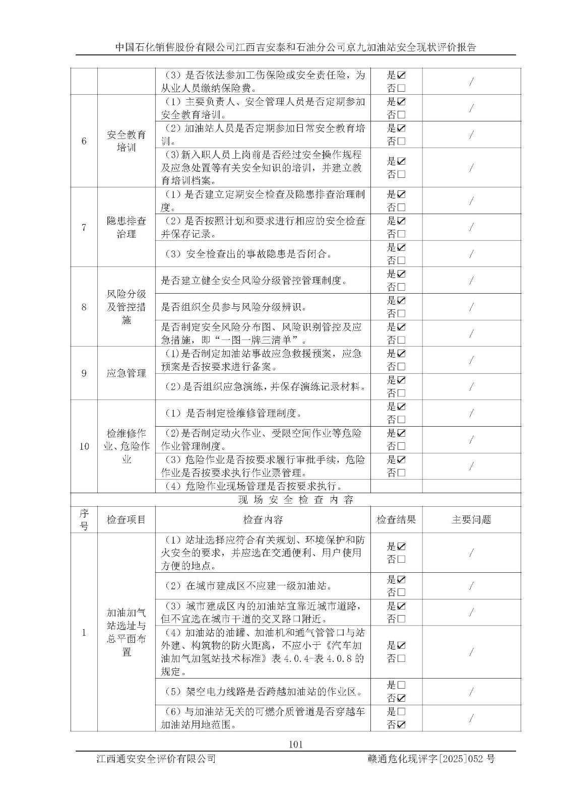 项目名称 | 中国石化销售股份有限公司江西吉安泰和石油分公司京九加油站 安全现状评价报告 | ||||