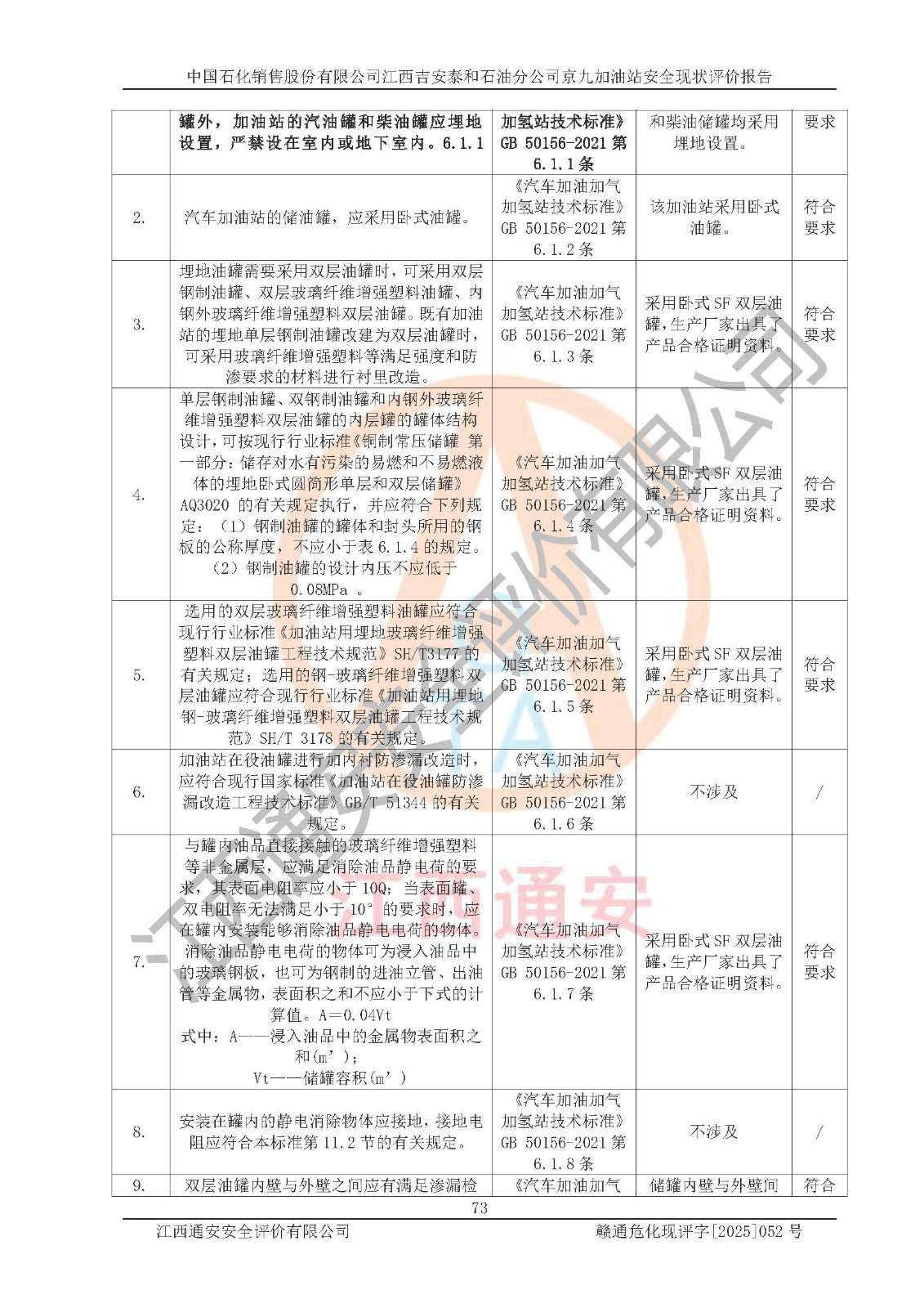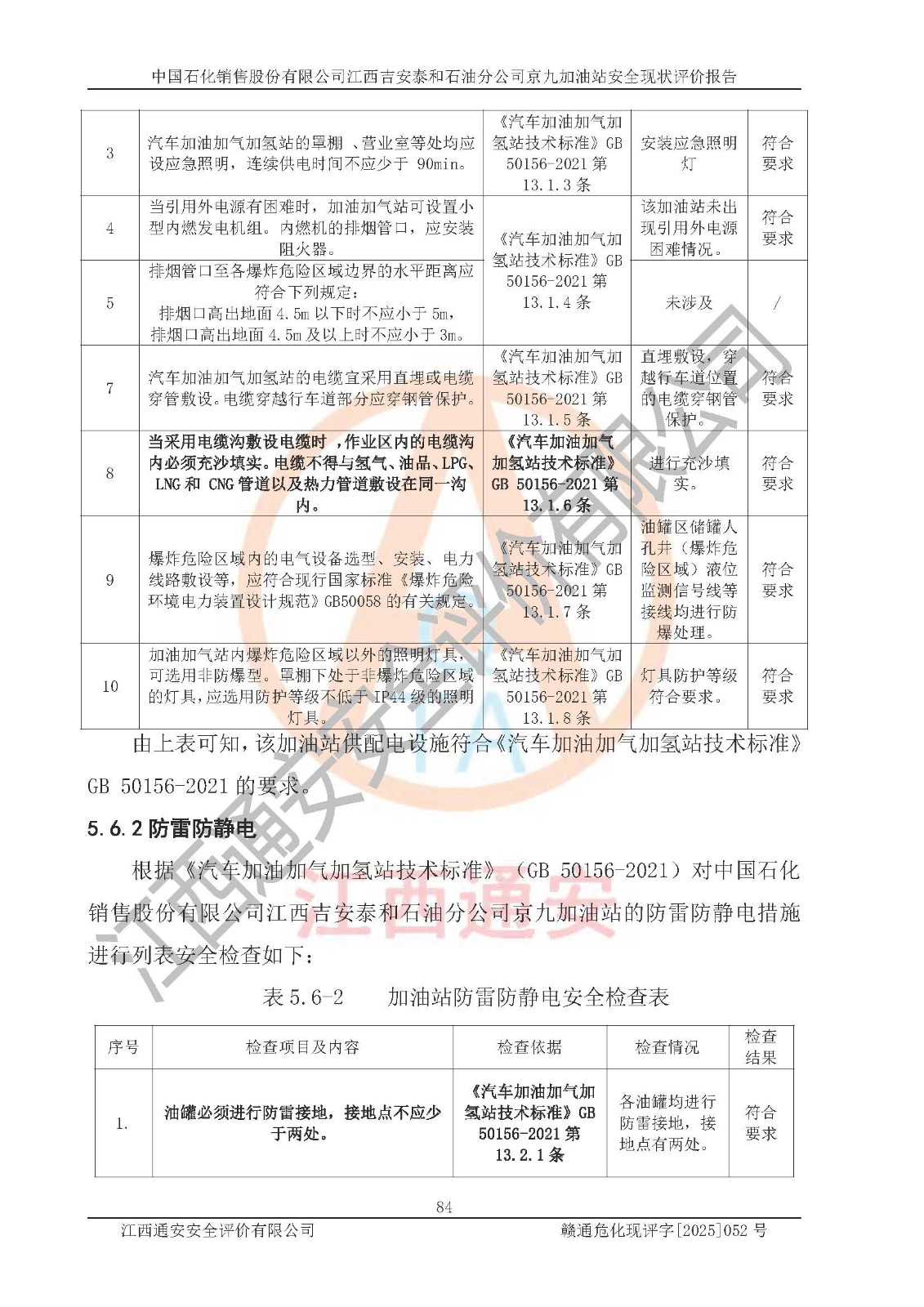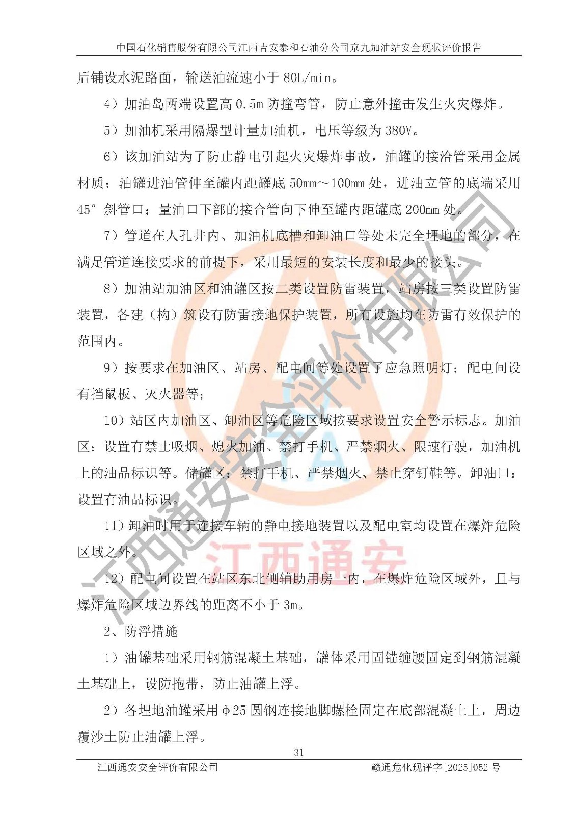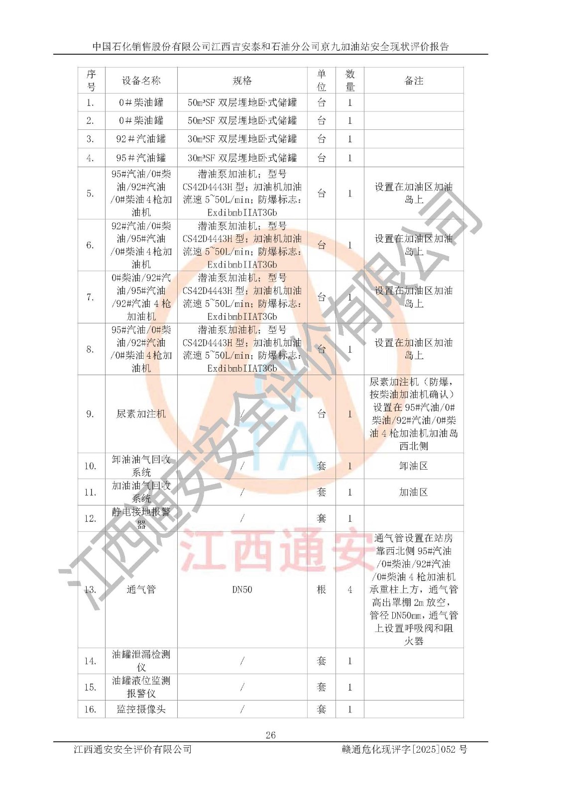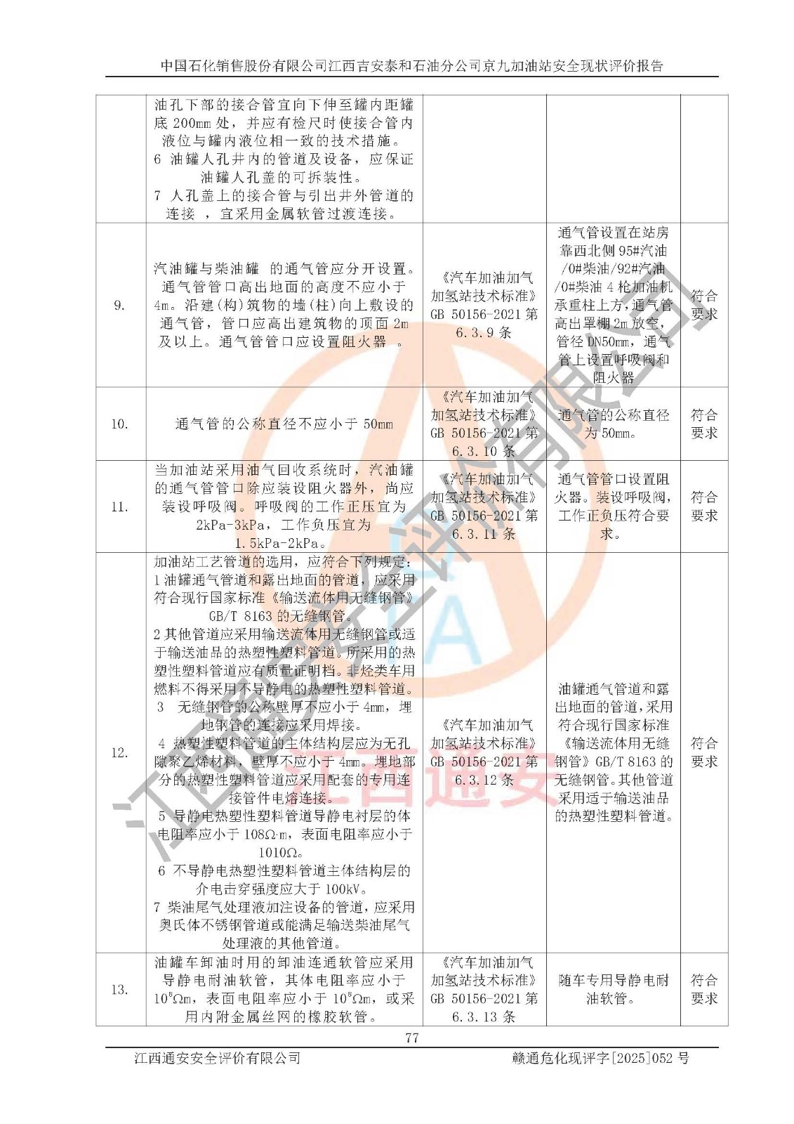 项目名称 | 中国石化销售股份有限公司江西吉安泰和石油分公司京九加油站 安全现状评价报告 | ||||