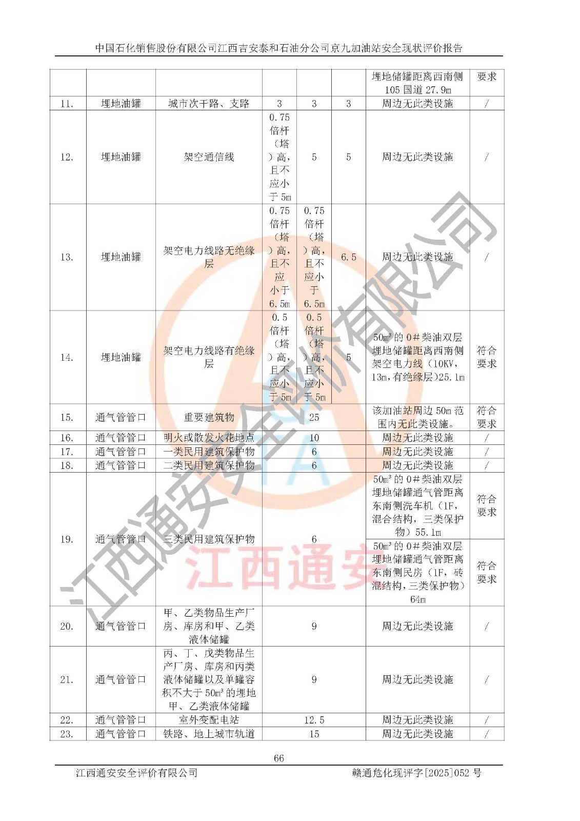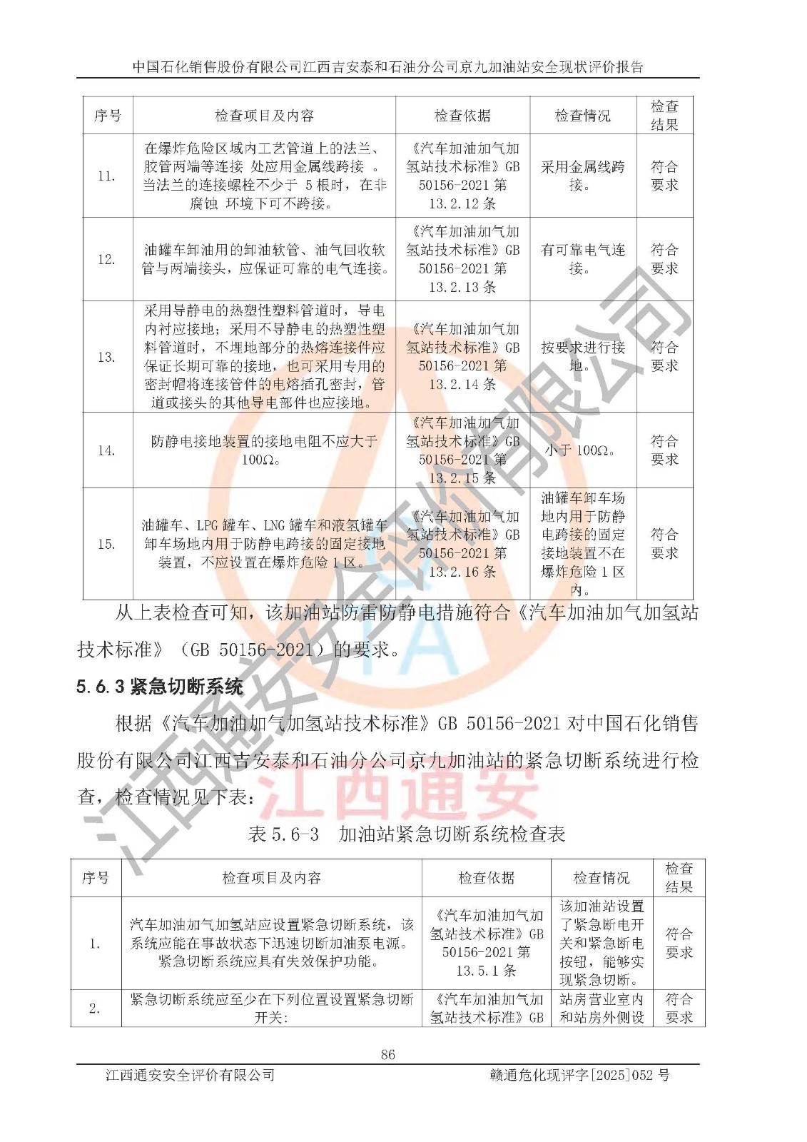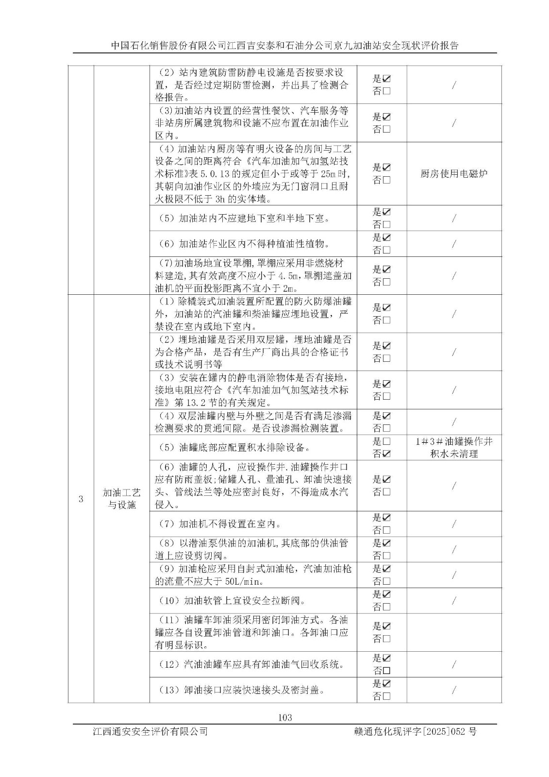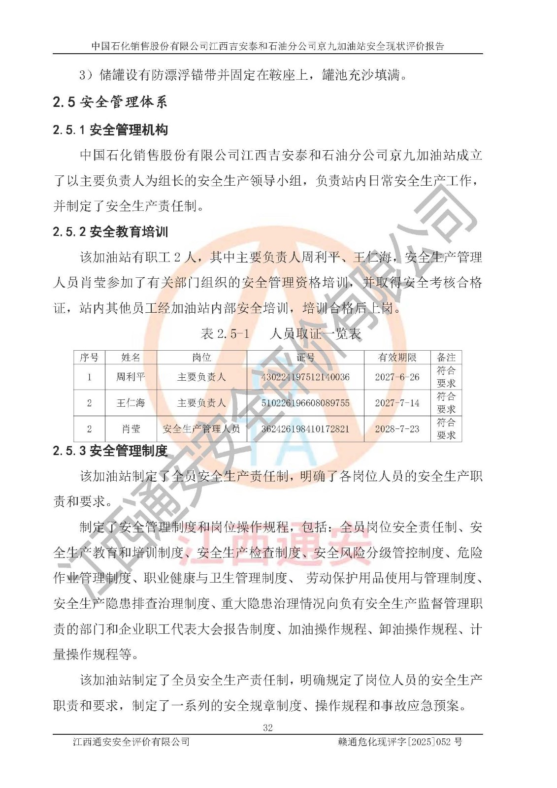 项目名称 | 中国石化销售股份有限公司江西吉安泰和石油分公司京九加油站 安全现状评价报告 | ||||