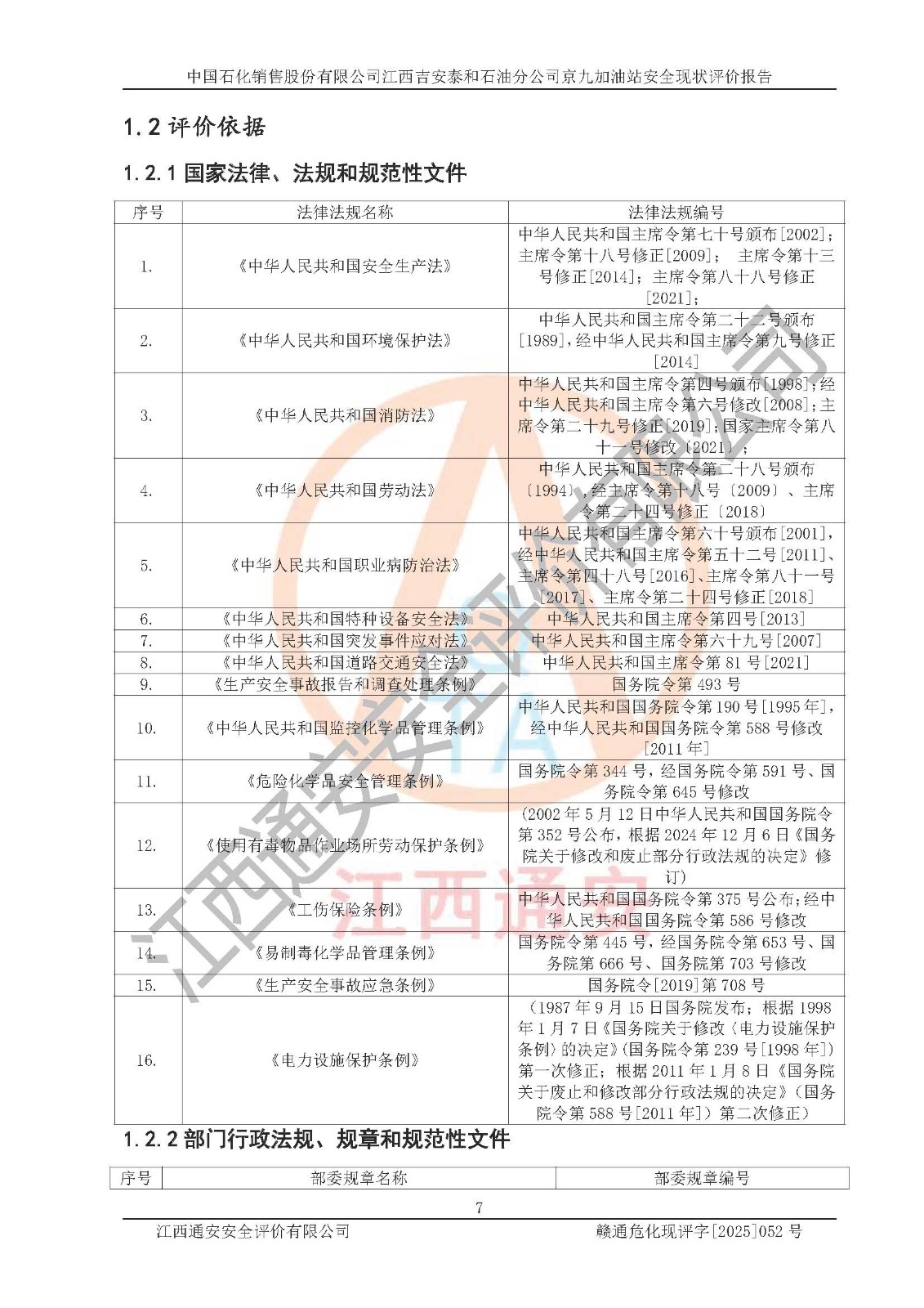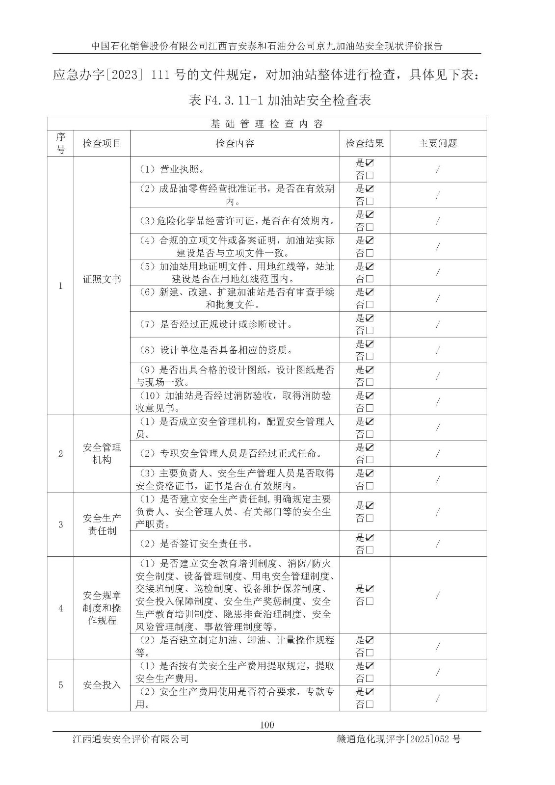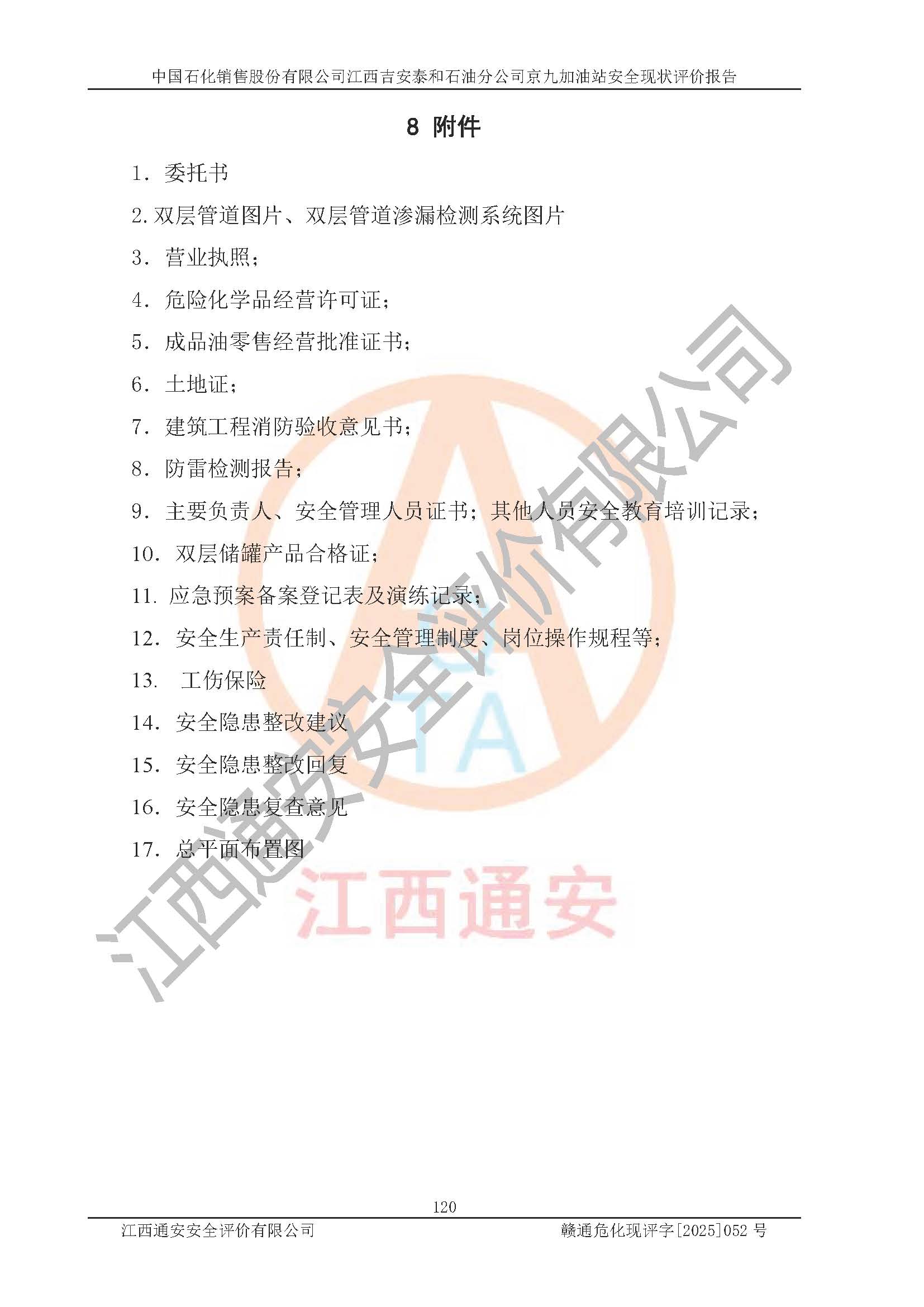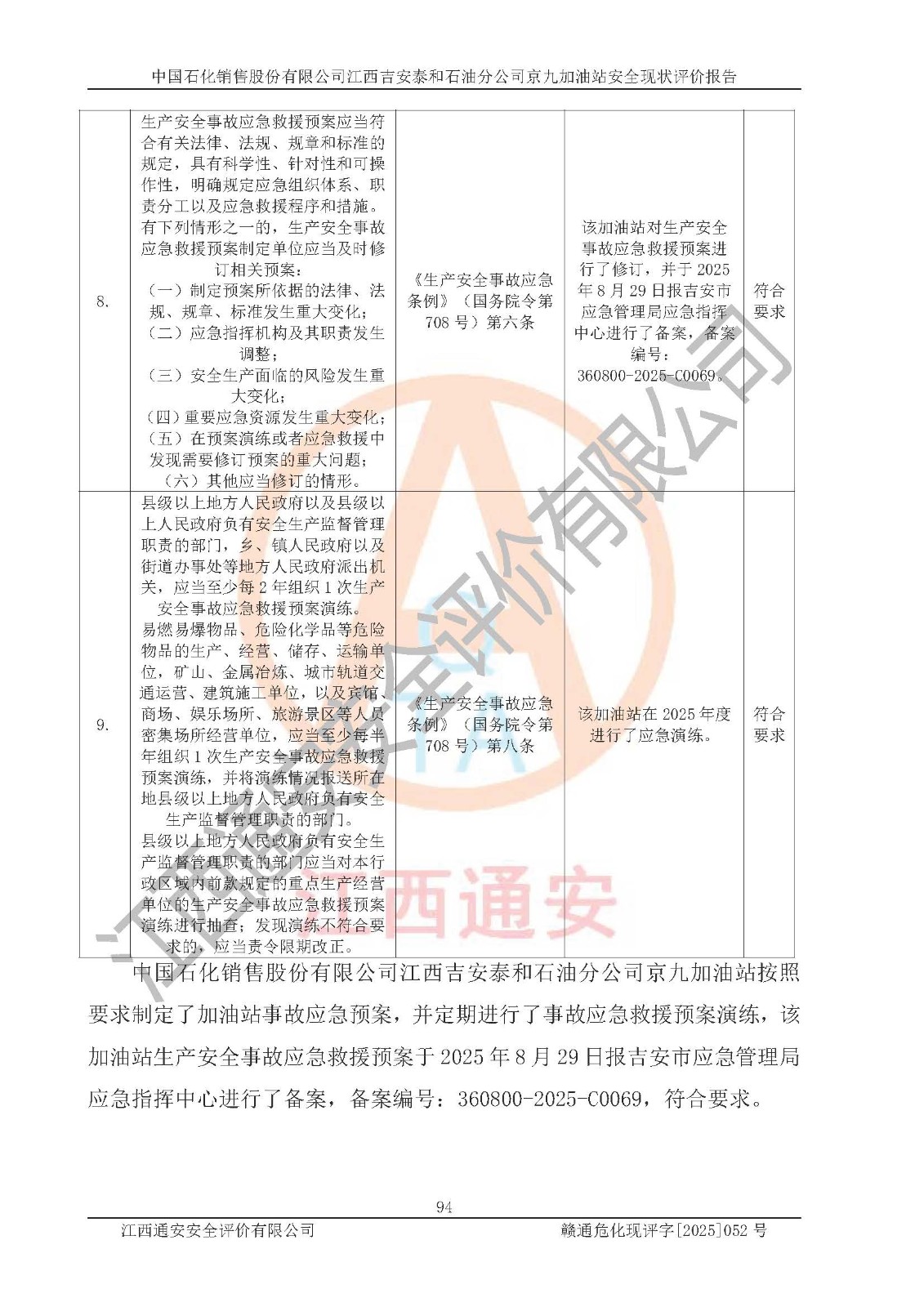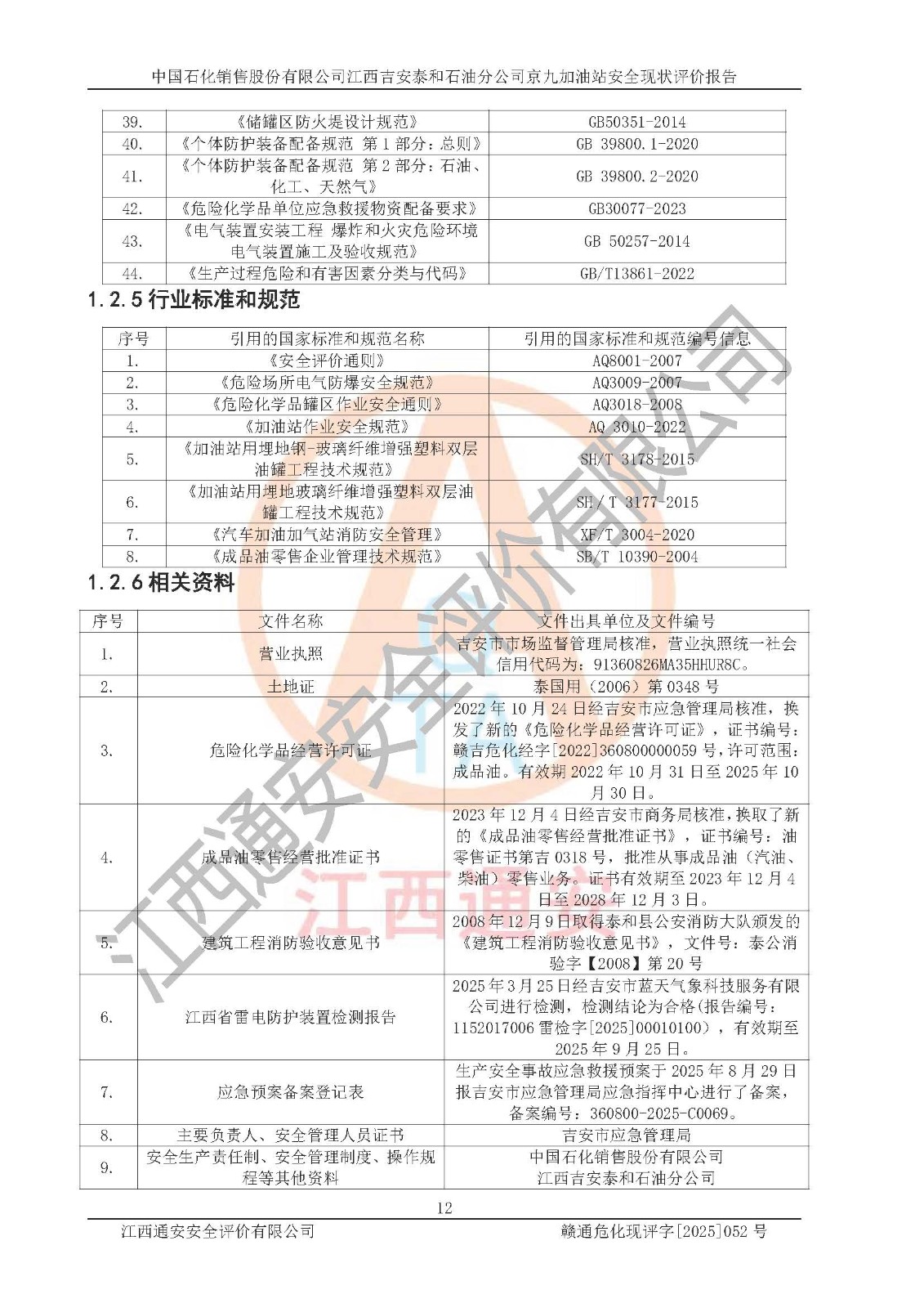 项目名称 | 中国石化销售股份有限公司江西吉安泰和石油分公司京九加油站 安全现状评价报告 | ||||