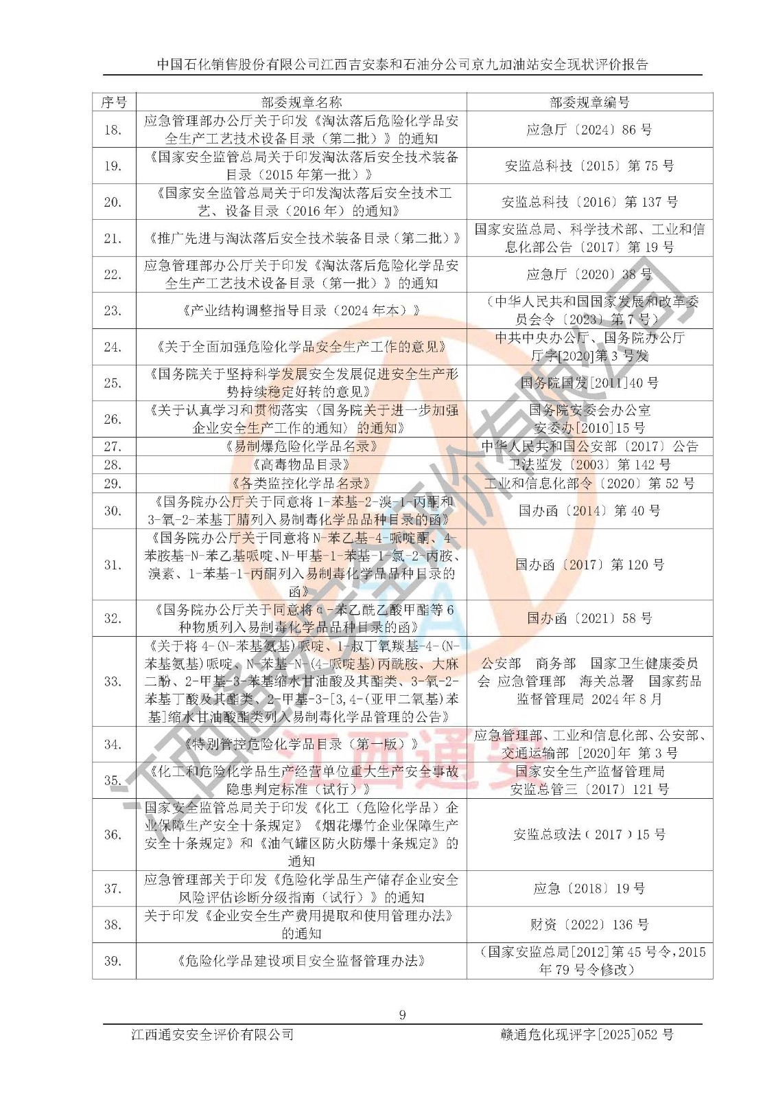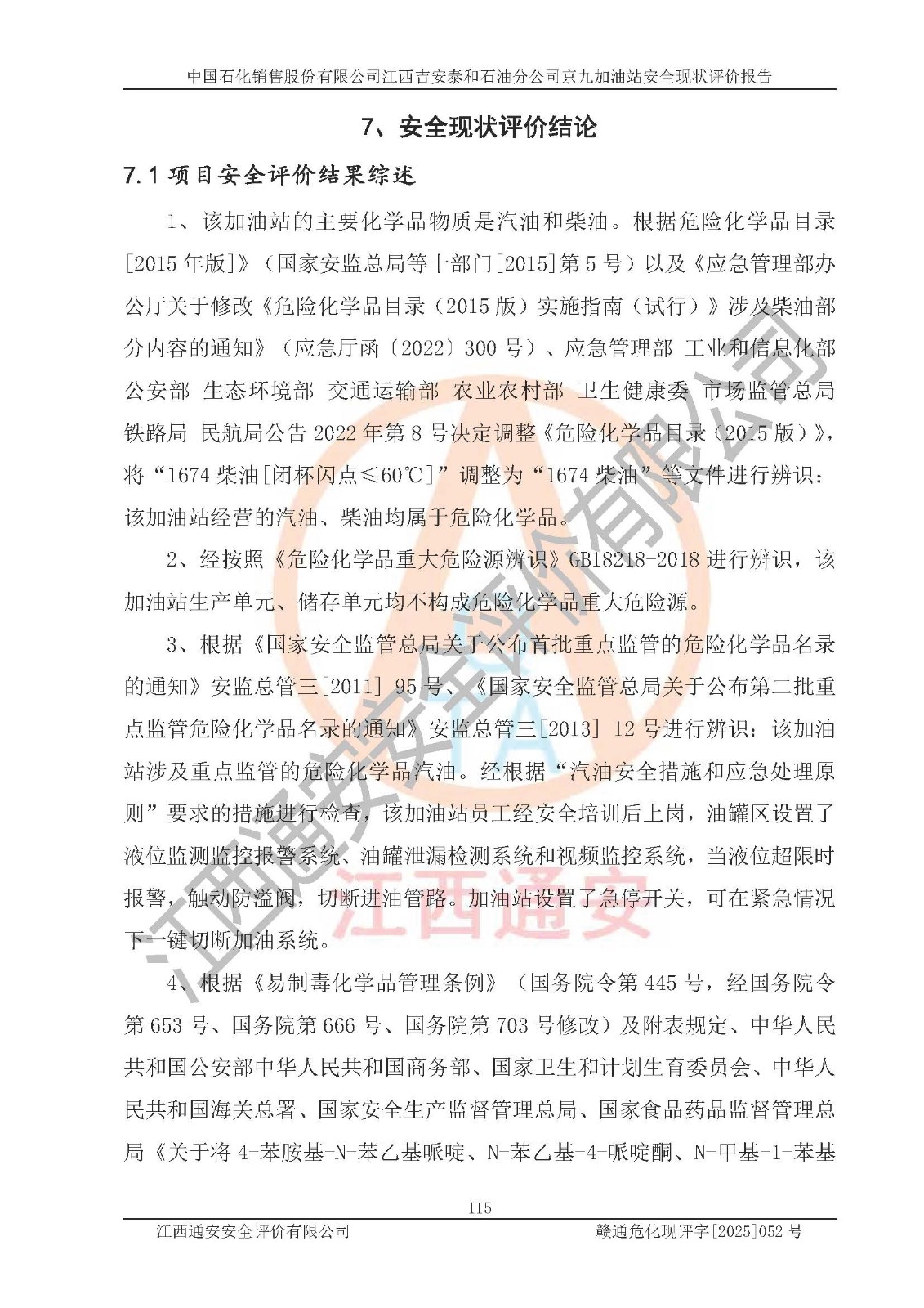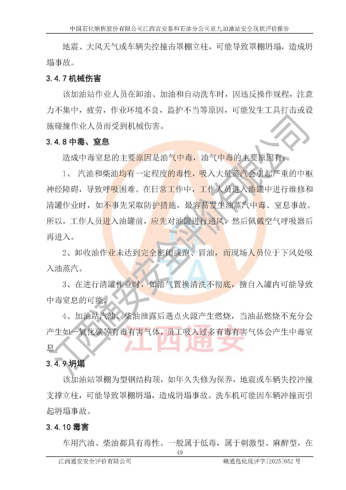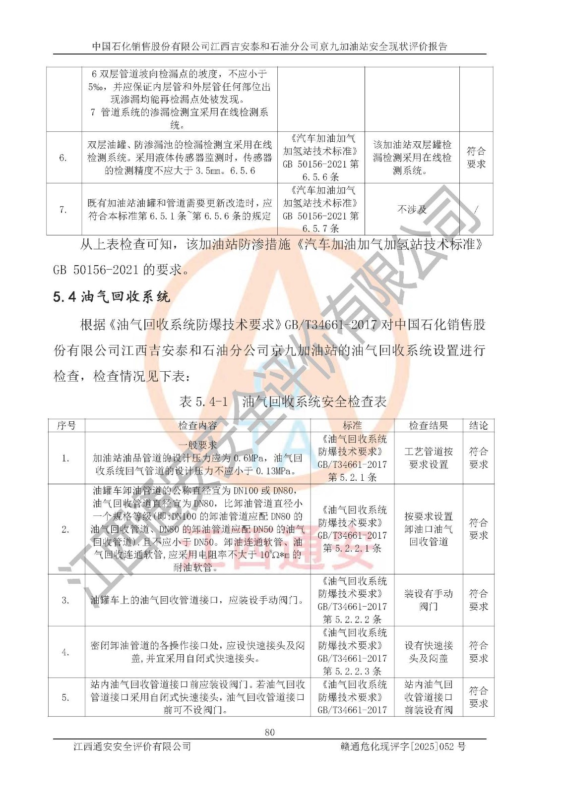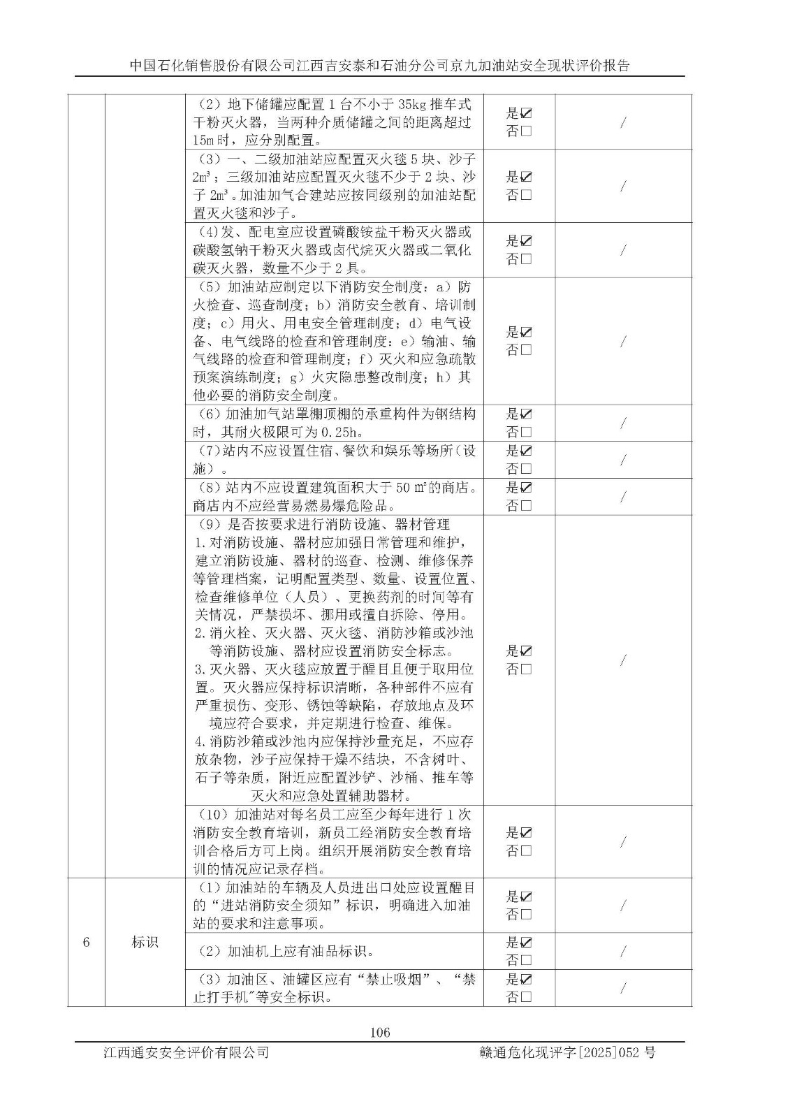 项目名称 | 中国石化销售股份有限公司江西吉安泰和石油分公司京九加油站 安全现状评价报告 | ||||