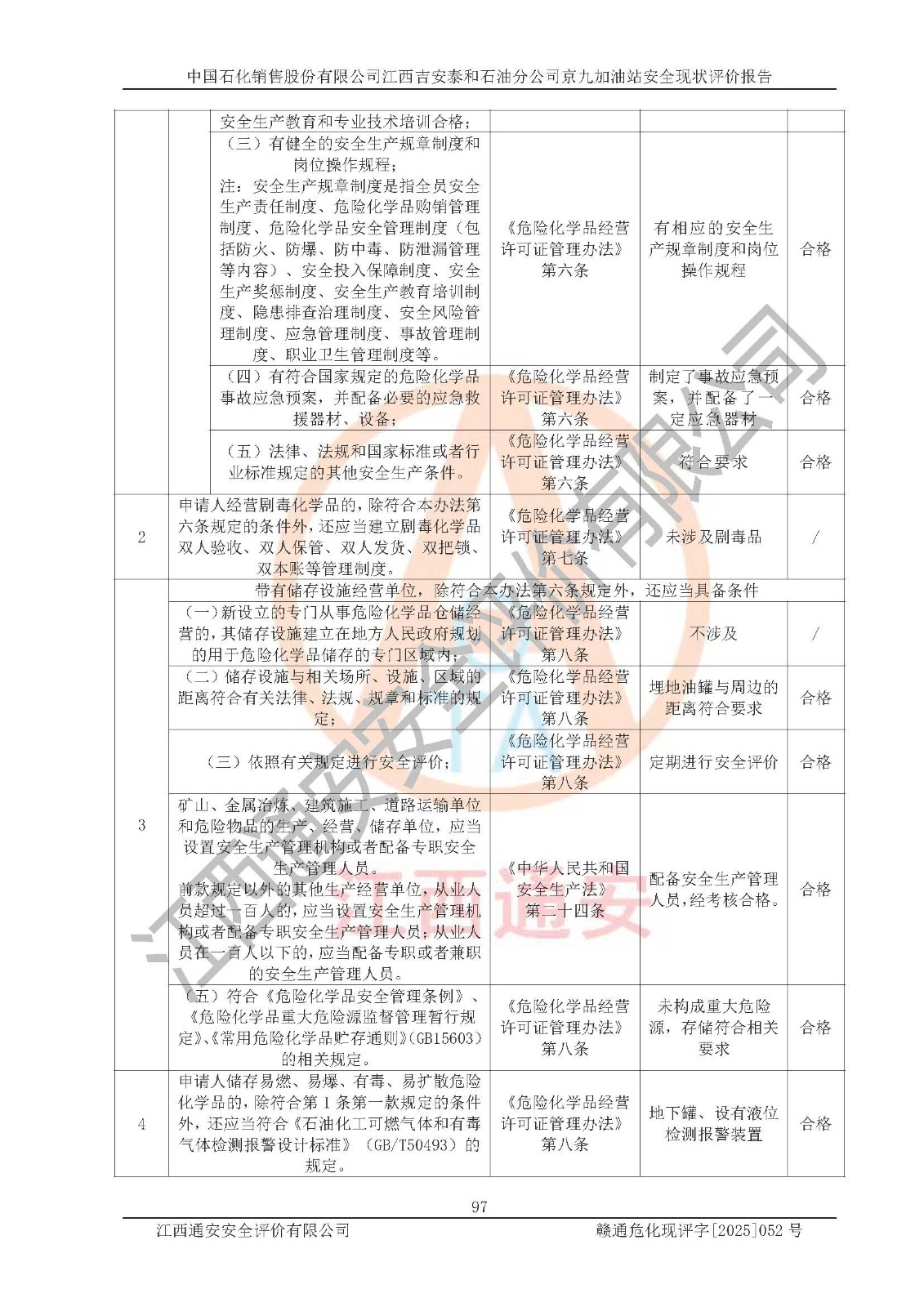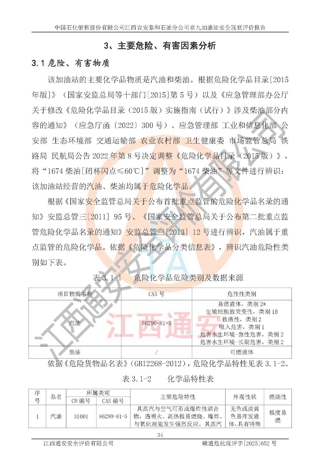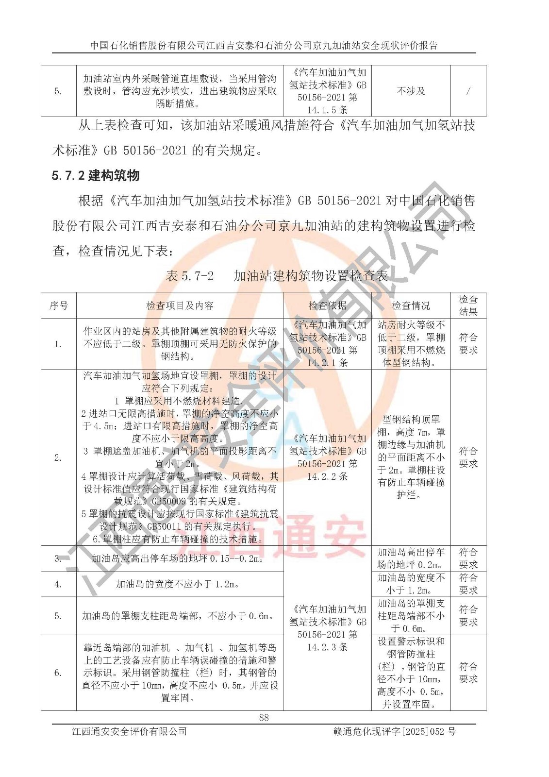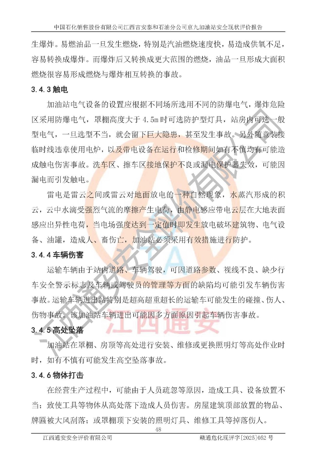 项目名称 | 中国石化销售股份有限公司江西吉安泰和石油分公司京九加油站 安全现状评价报告 | ||||