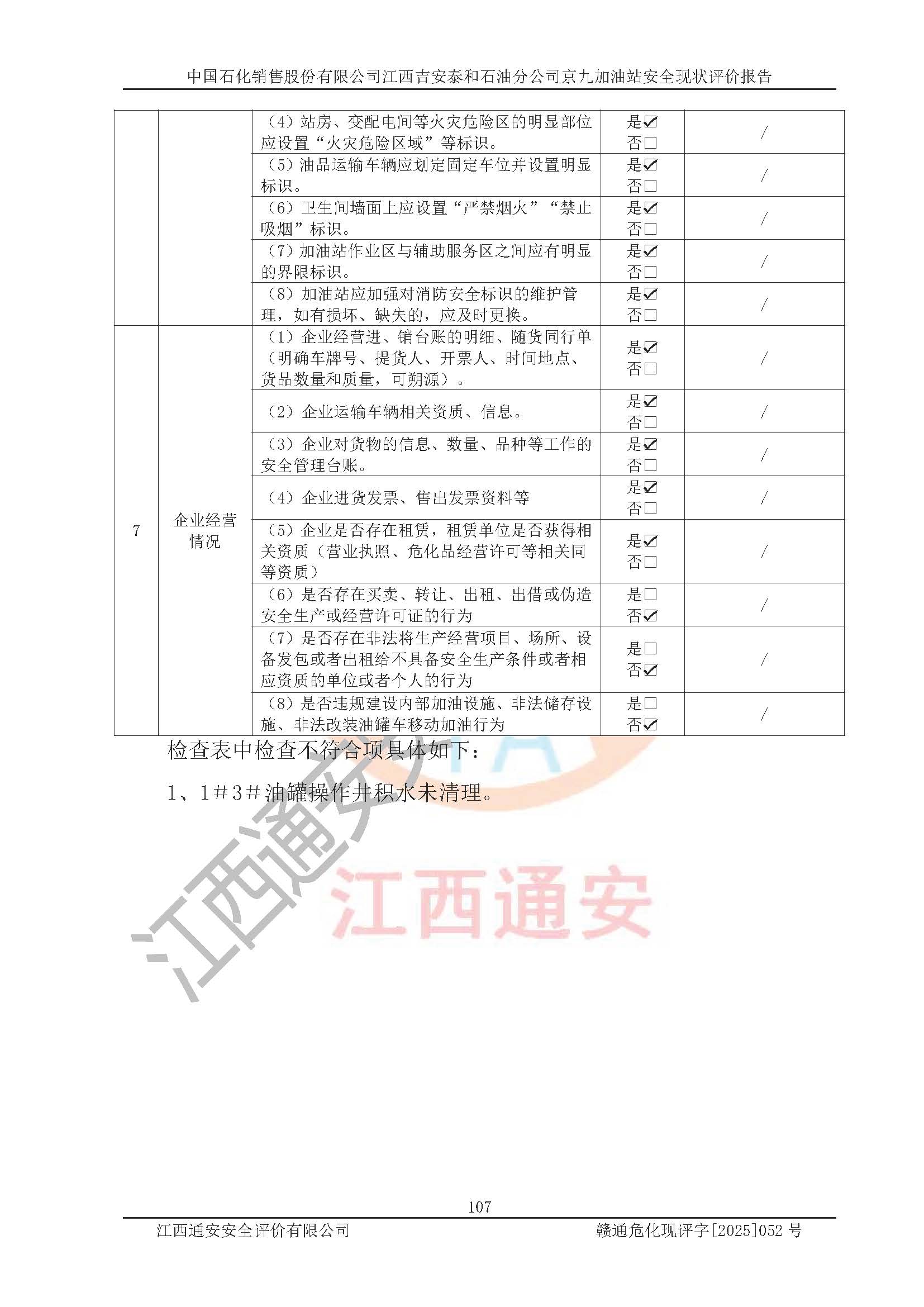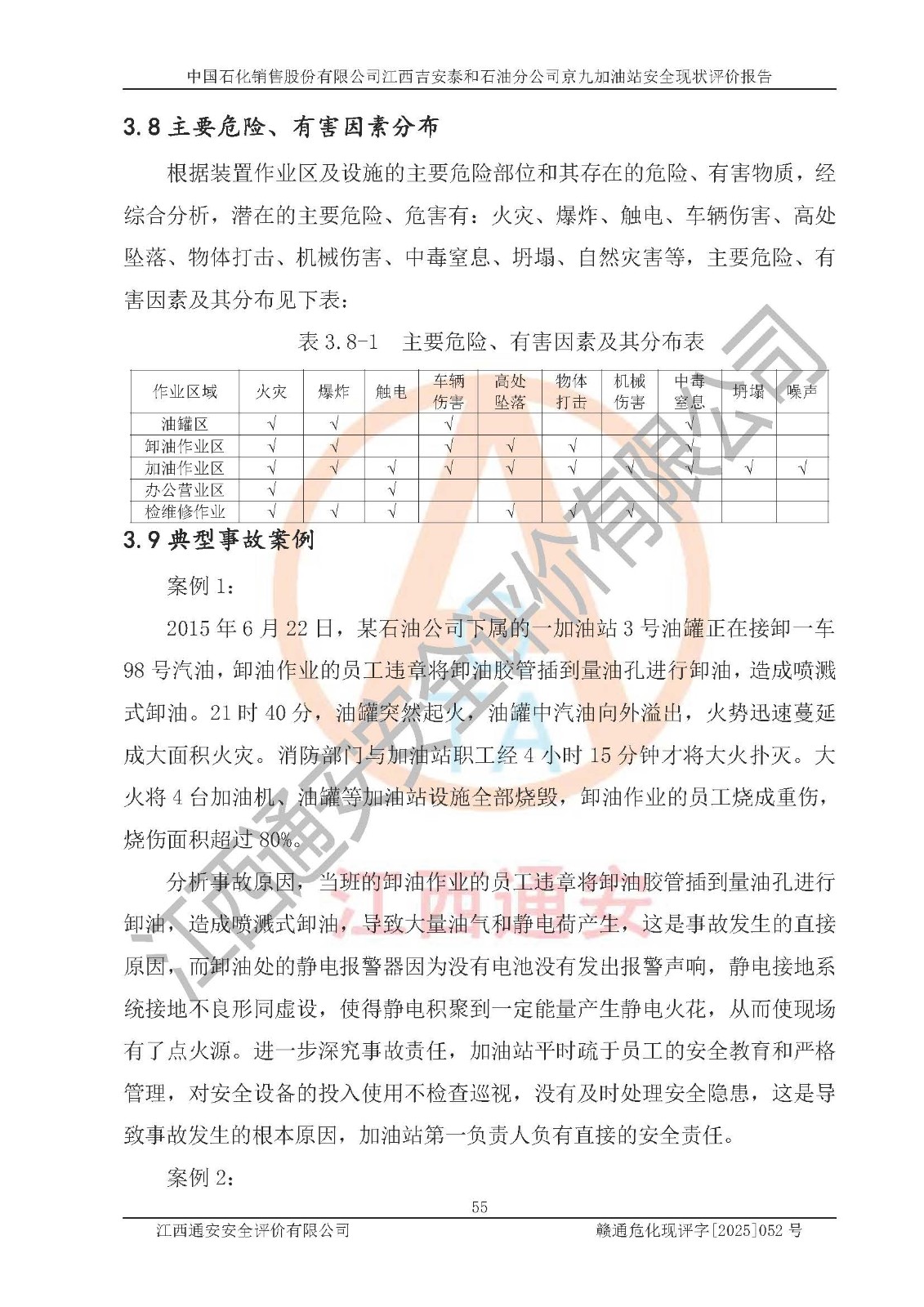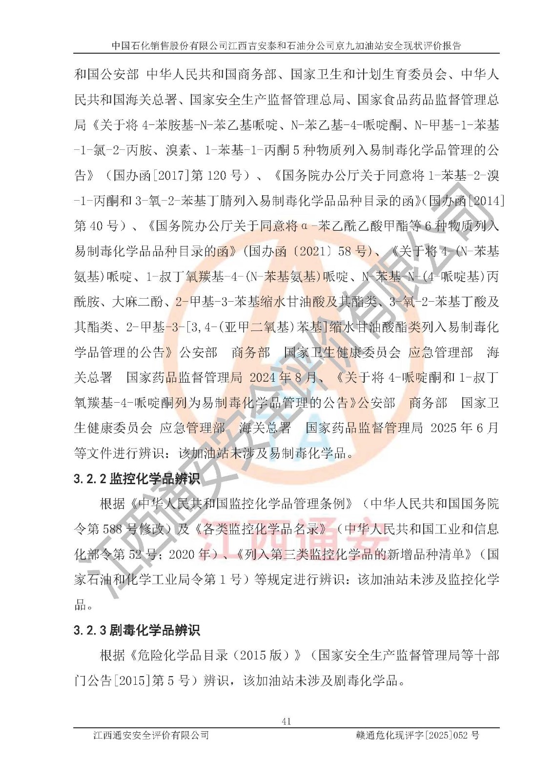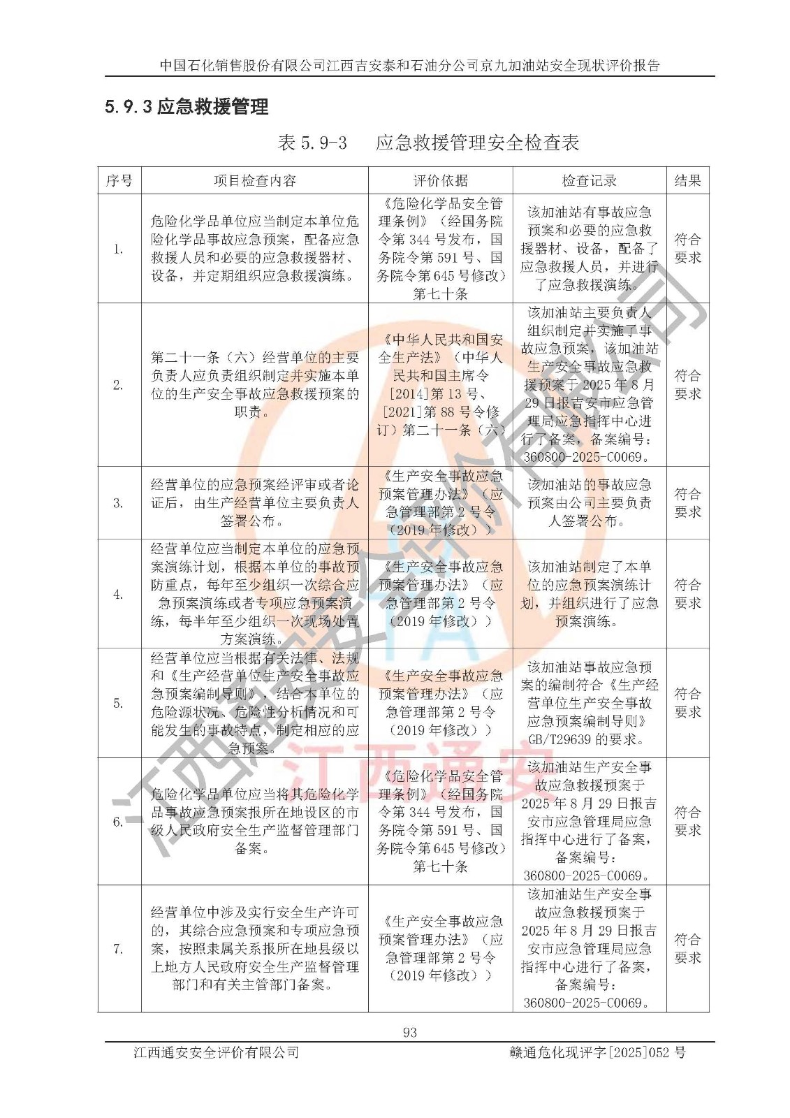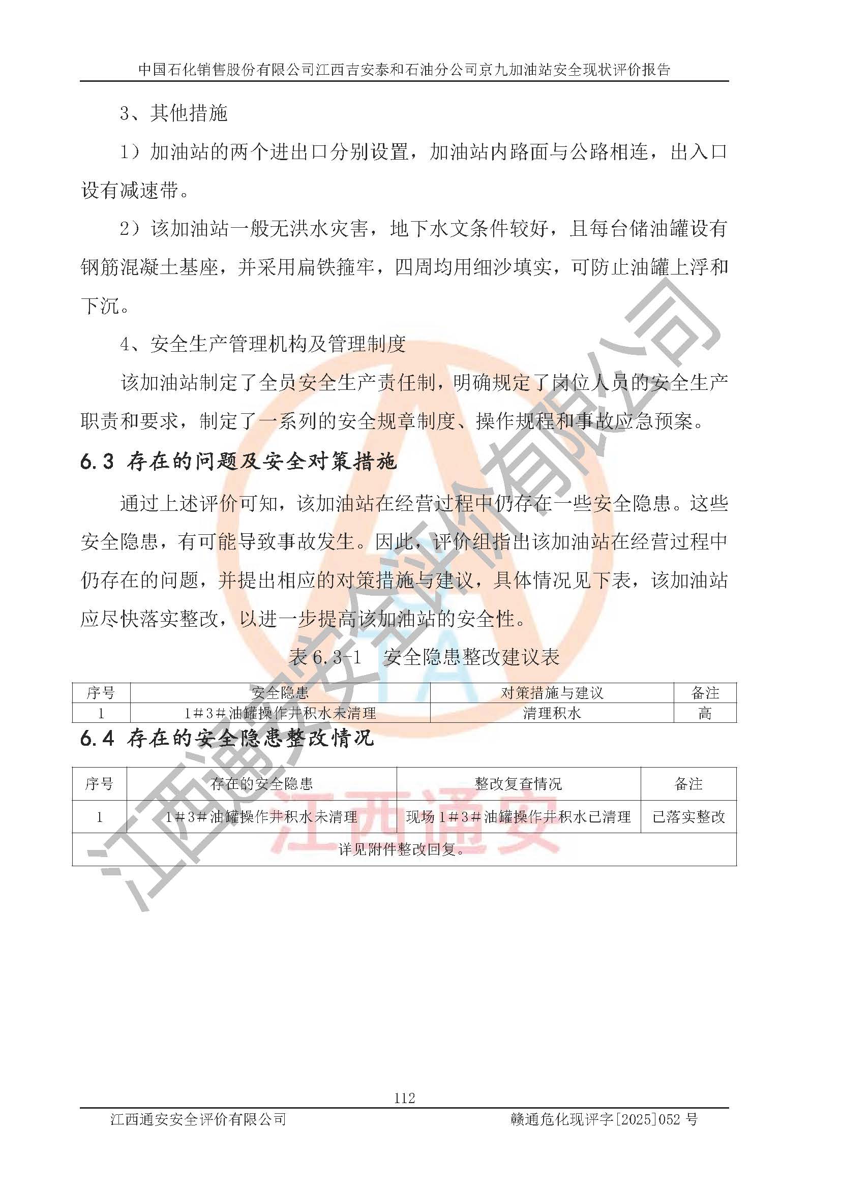 项目名称 | 中国石化销售股份有限公司江西吉安泰和石油分公司京九加油站 安全现状评价报告 | ||||