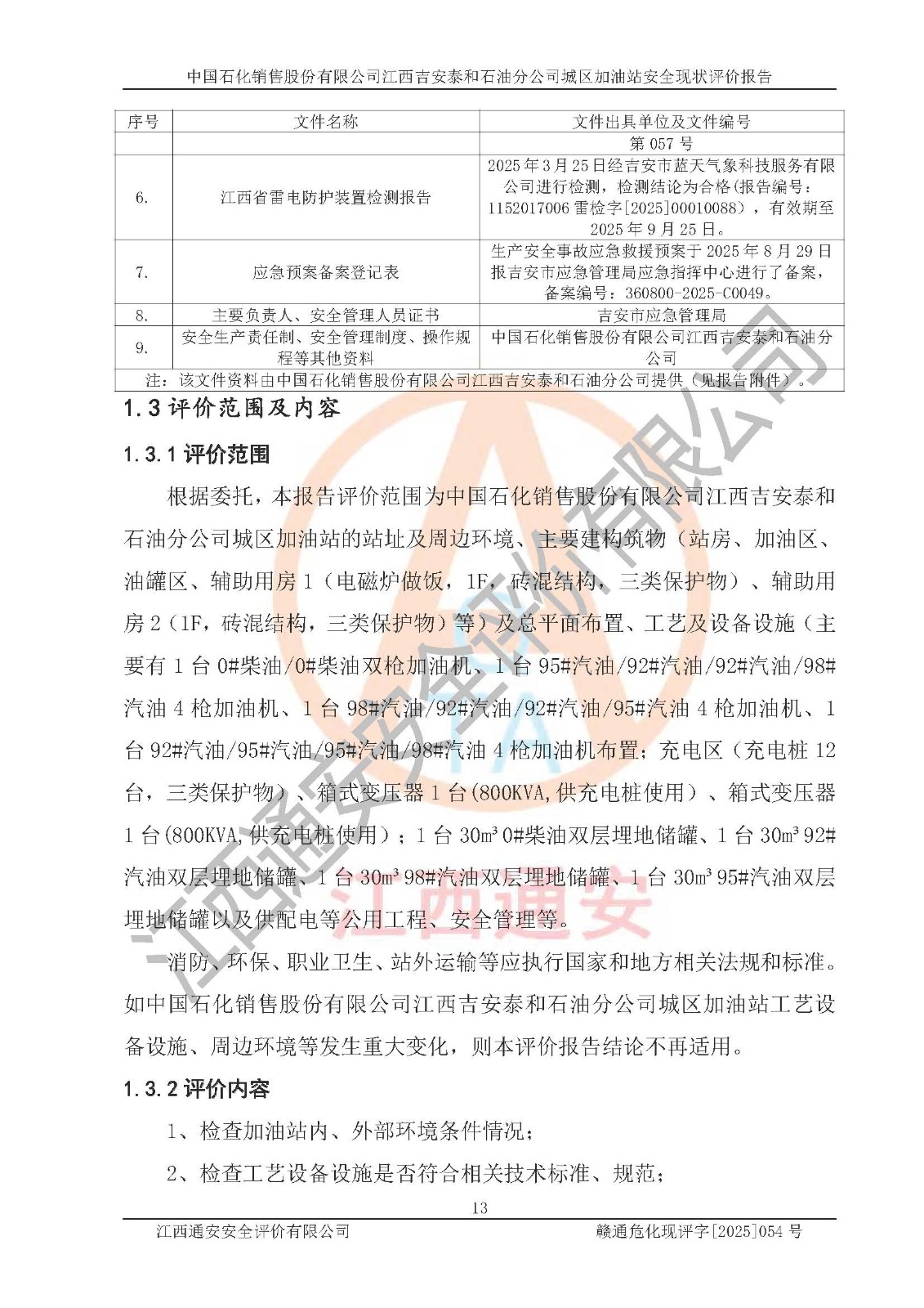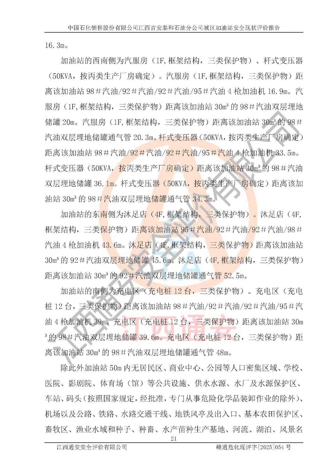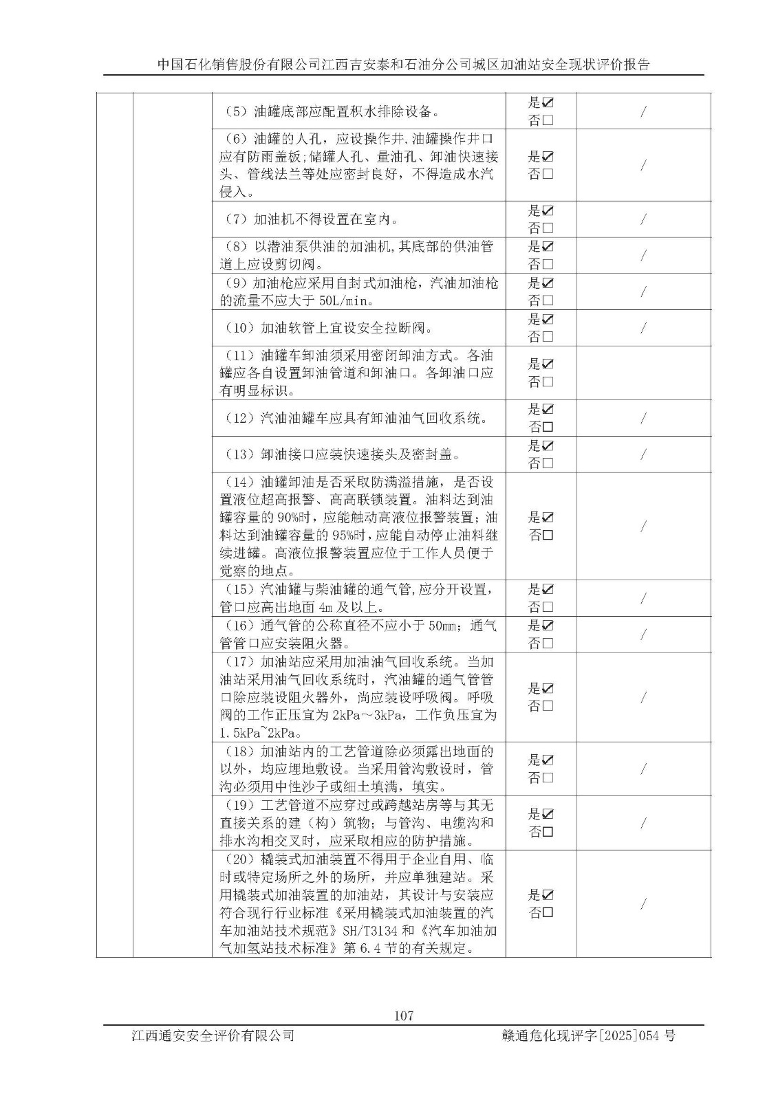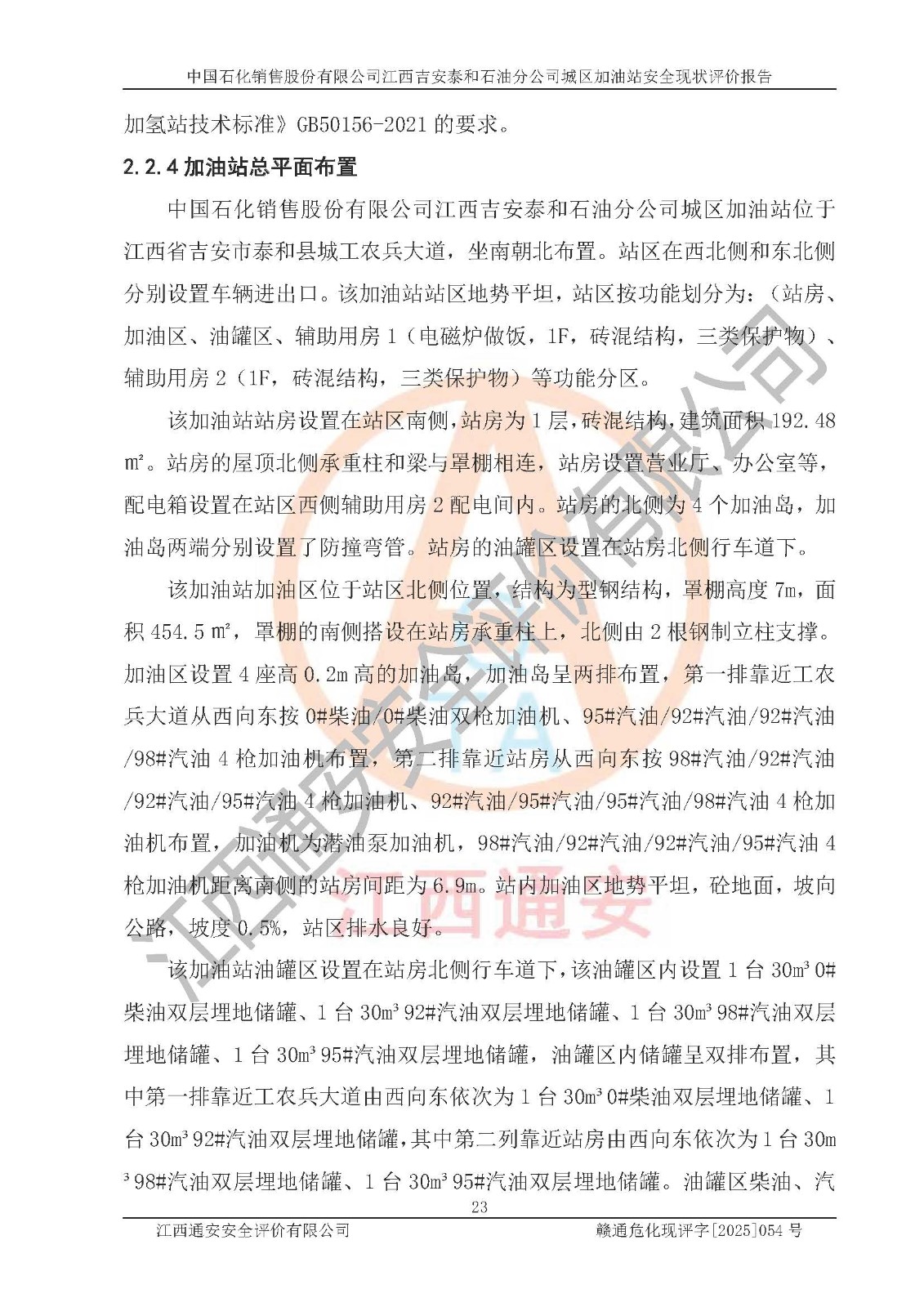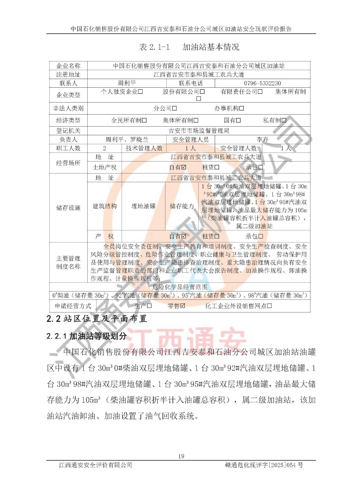 项目名称 | 中国石化销售股份有限公司江西吉安泰和石油分公司城区加油站 安全现状评价报告 | ||||