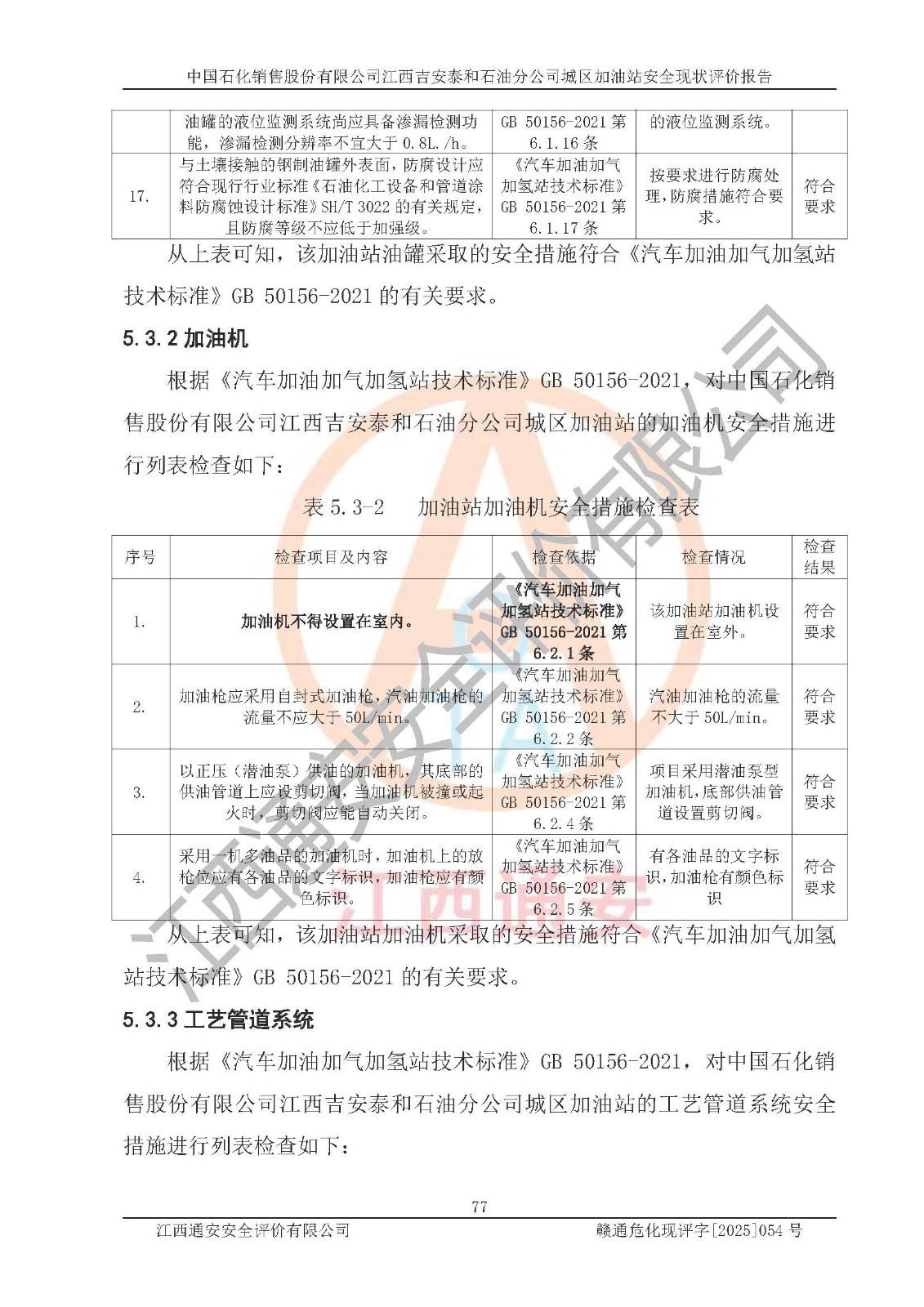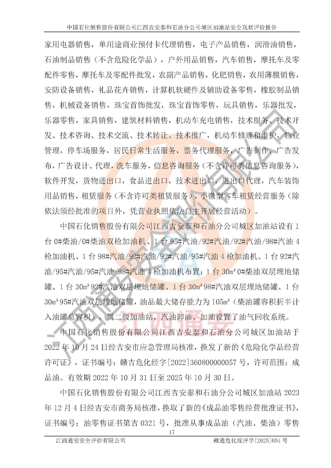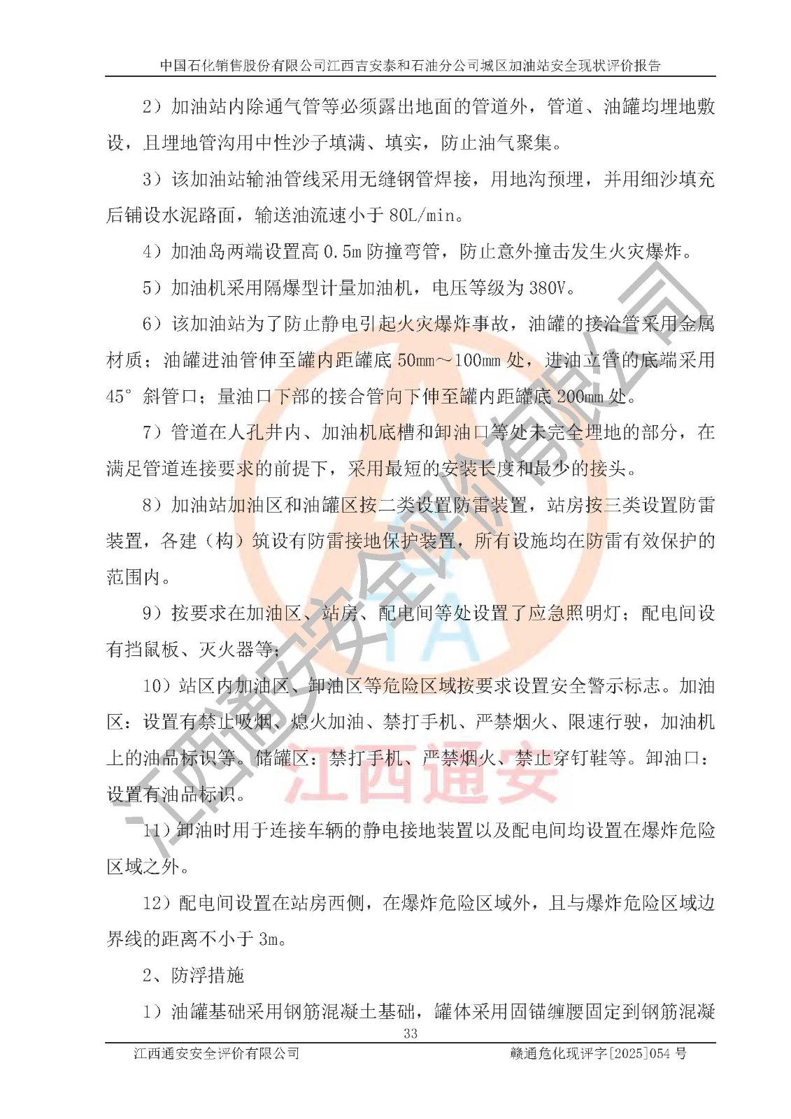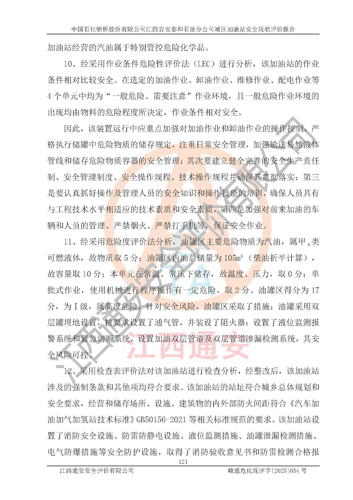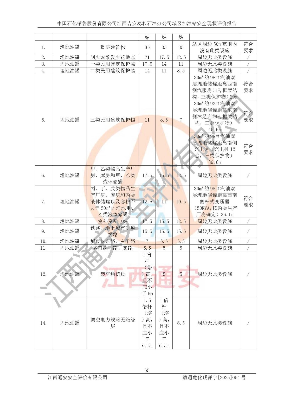 项目名称 | 中国石化销售股份有限公司江西吉安泰和石油分公司城区加油站 安全现状评价报告 | ||||