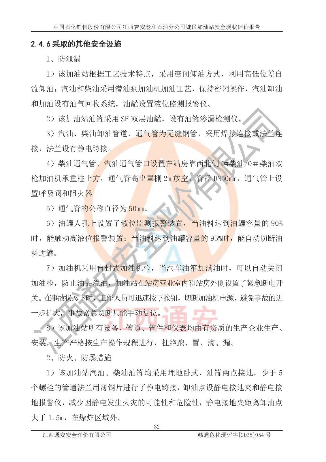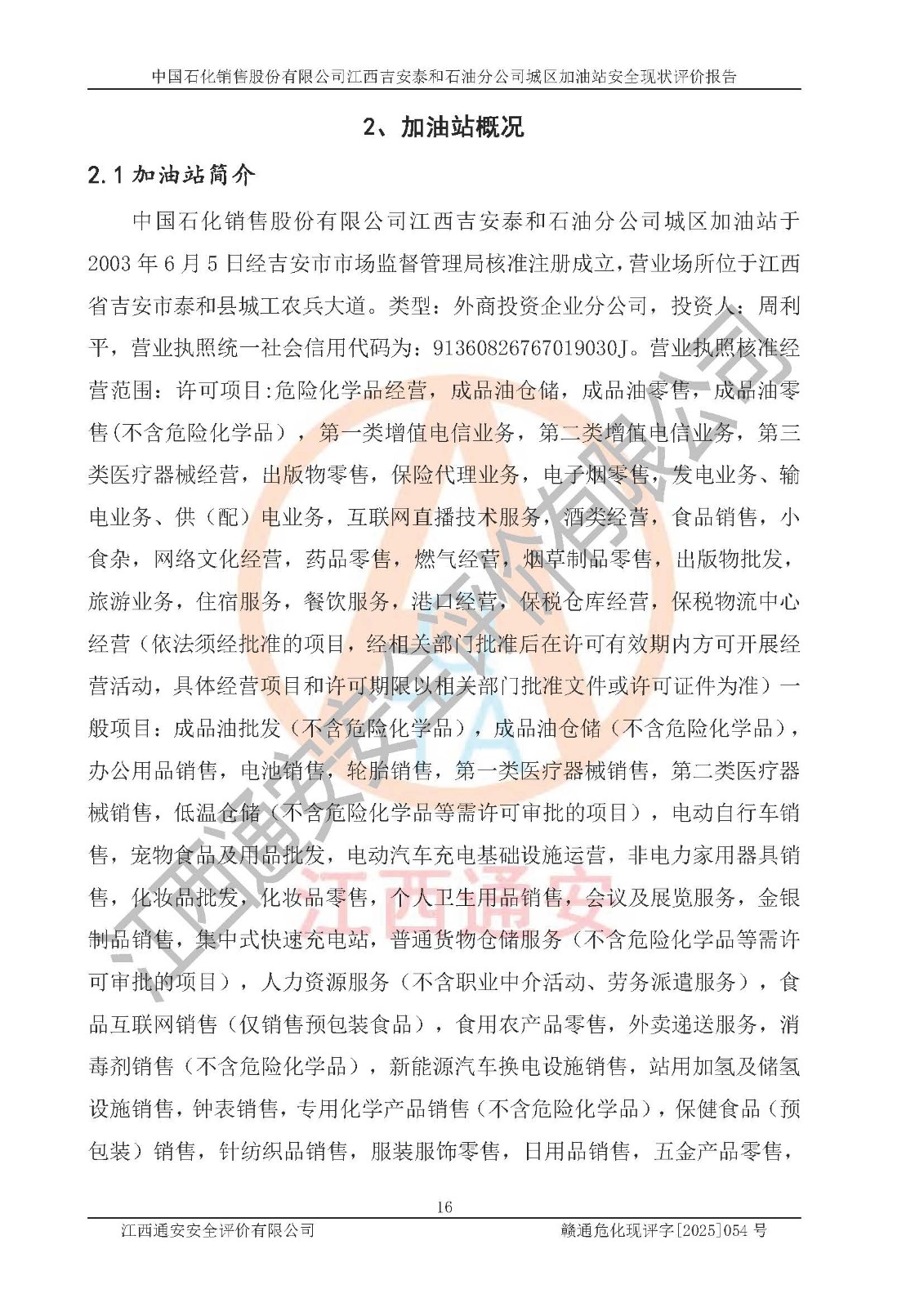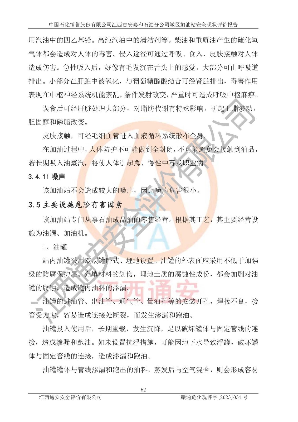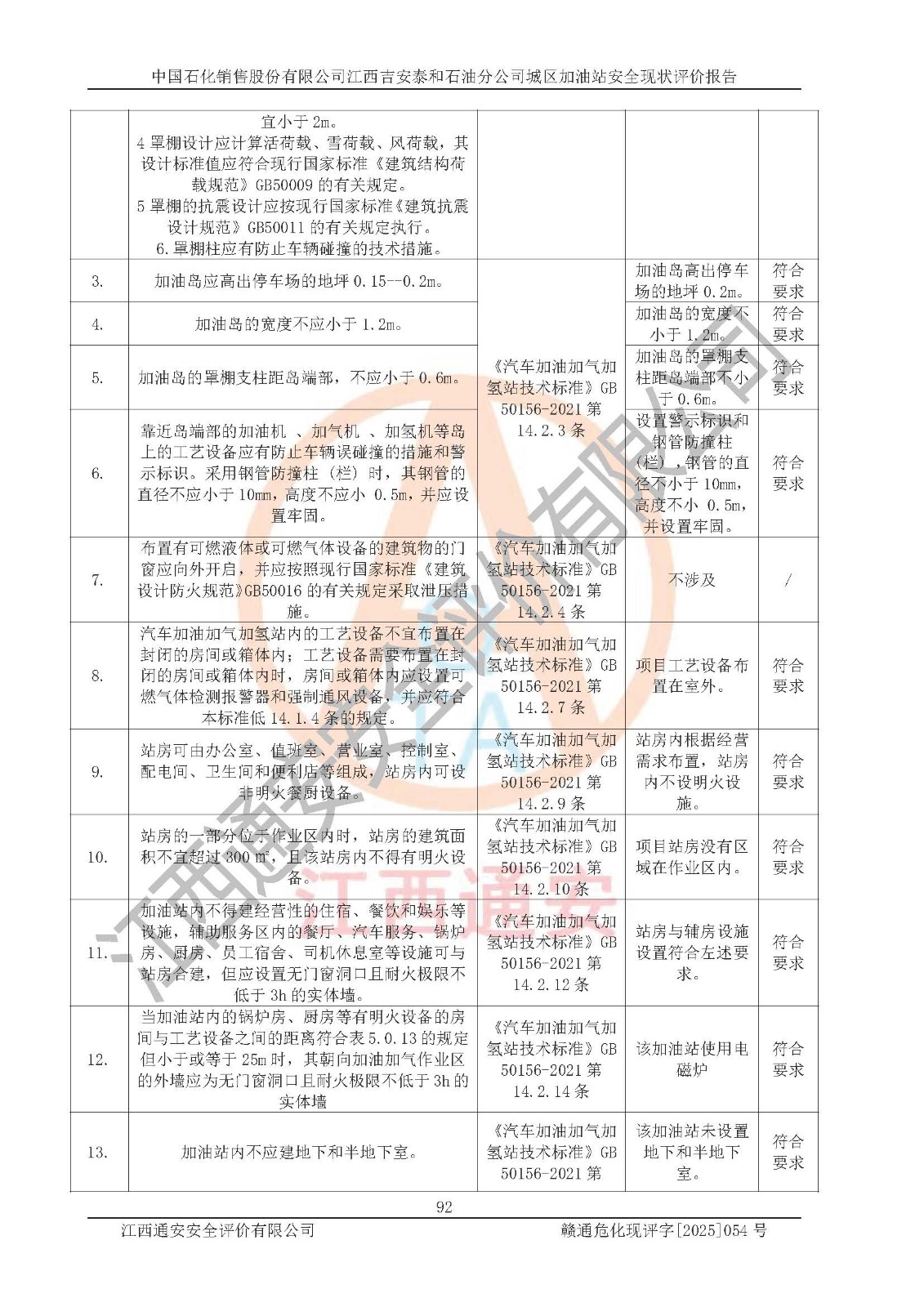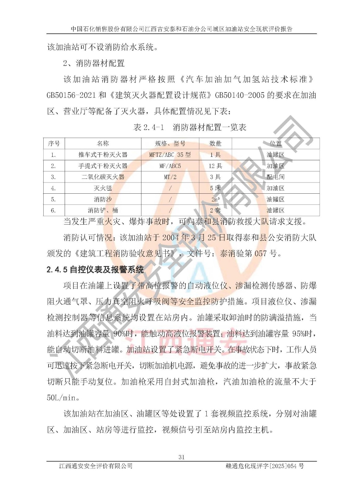 项目名称 | 中国石化销售股份有限公司江西吉安泰和石油分公司城区加油站 安全现状评价报告 | ||||