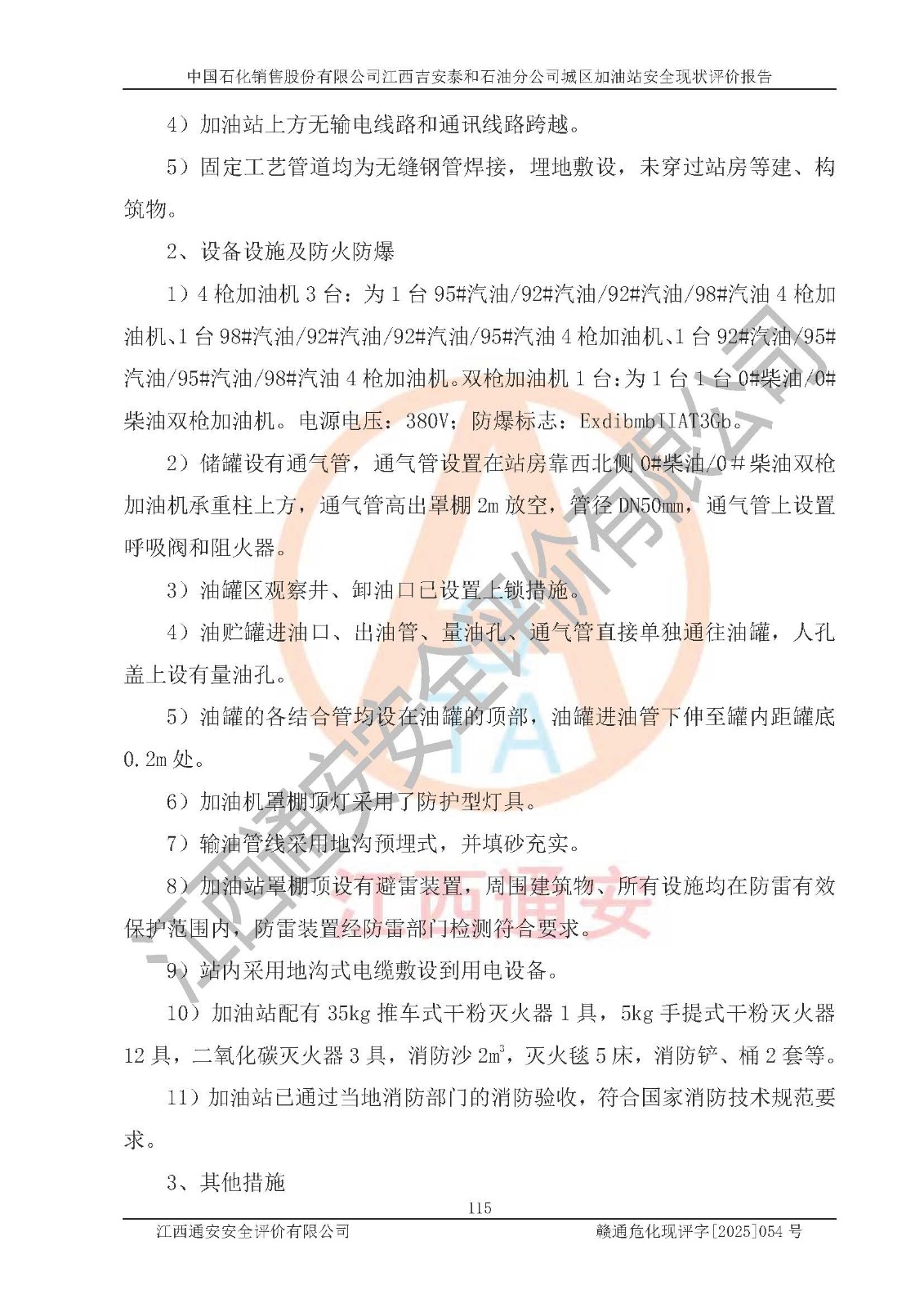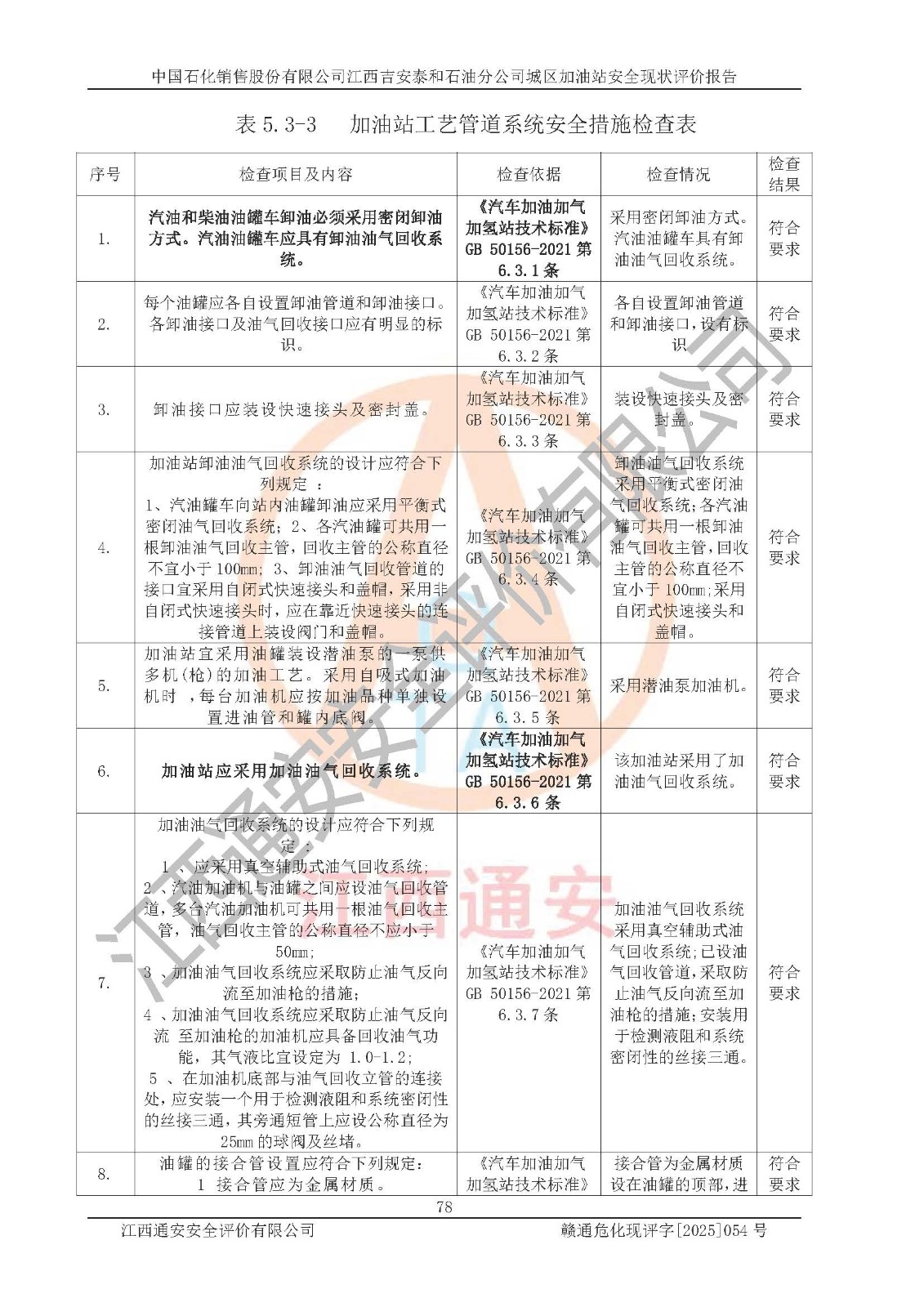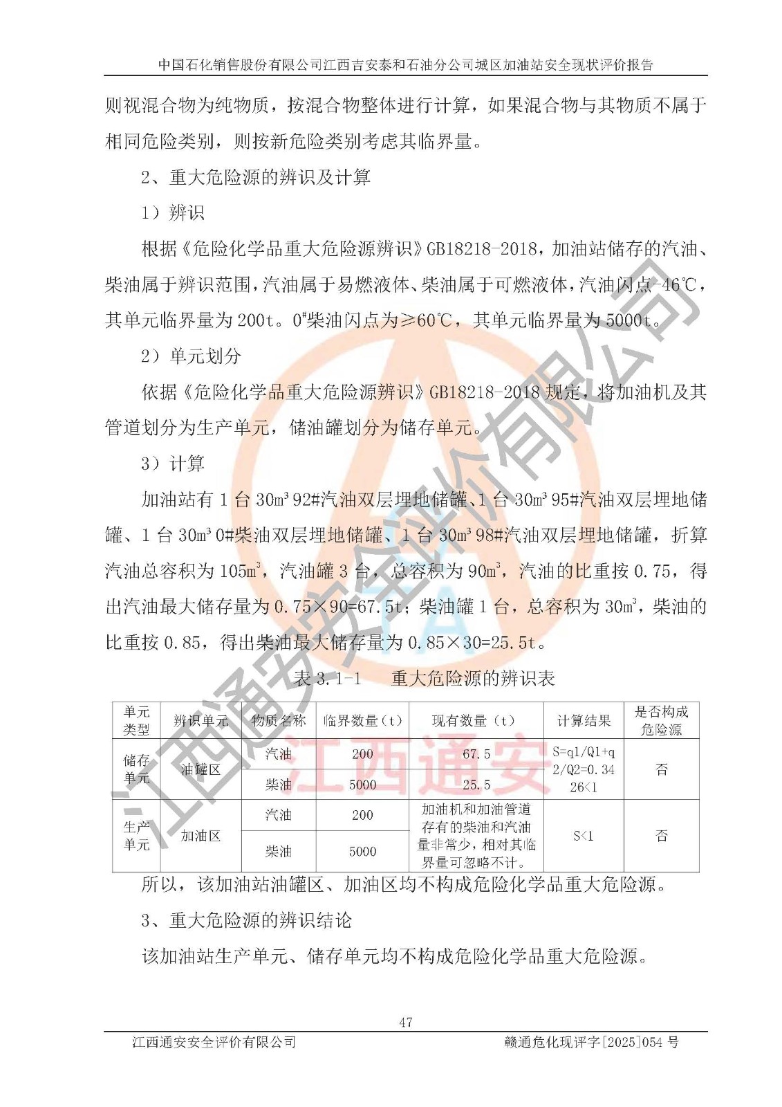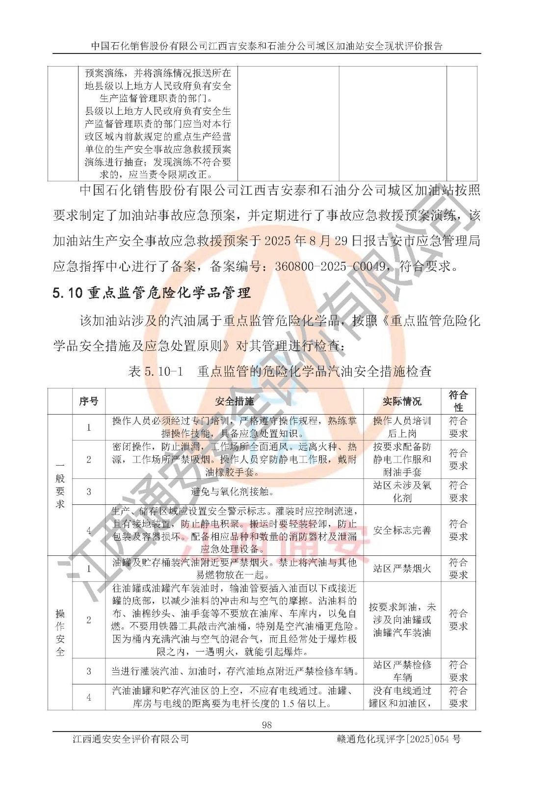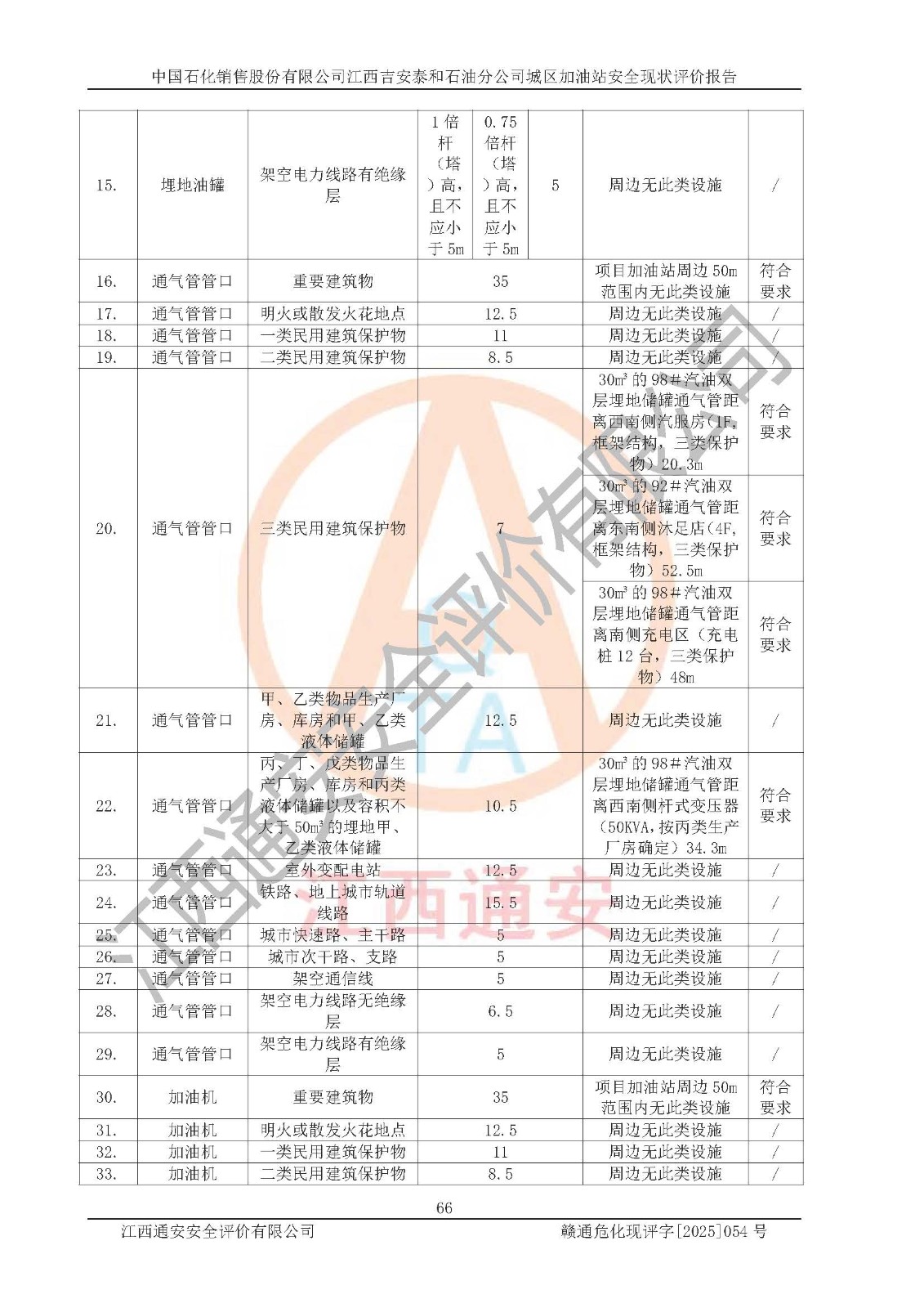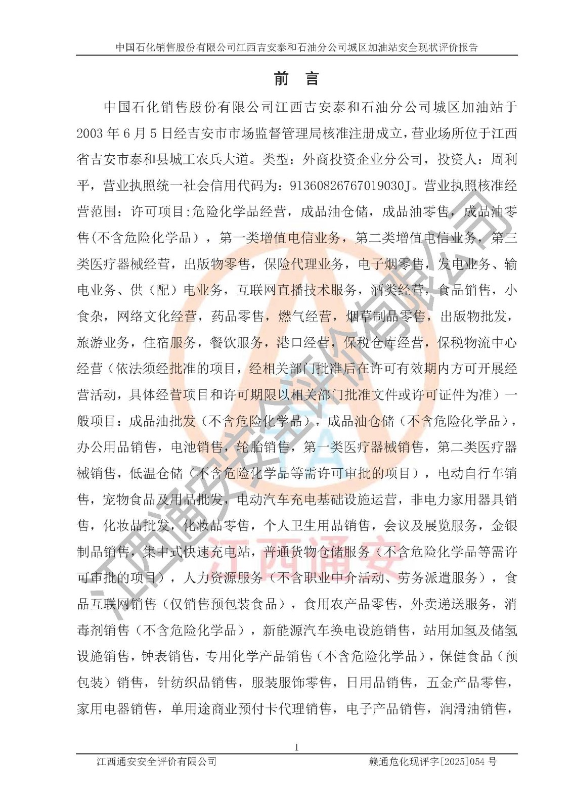 项目名称 | 中国石化销售股份有限公司江西吉安泰和石油分公司城区加油站 安全现状评价报告 | ||||