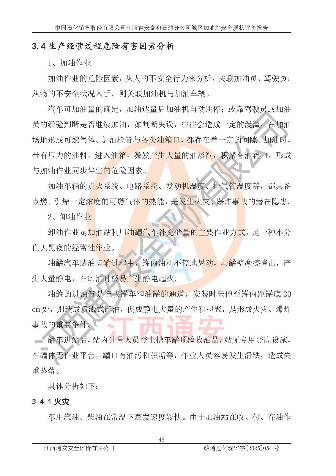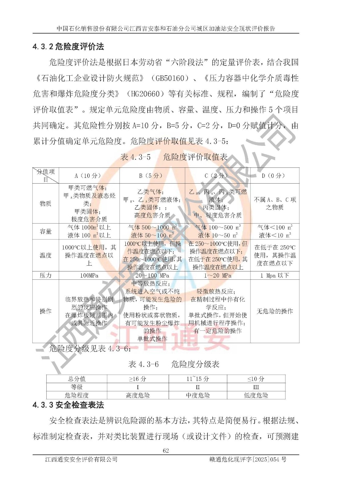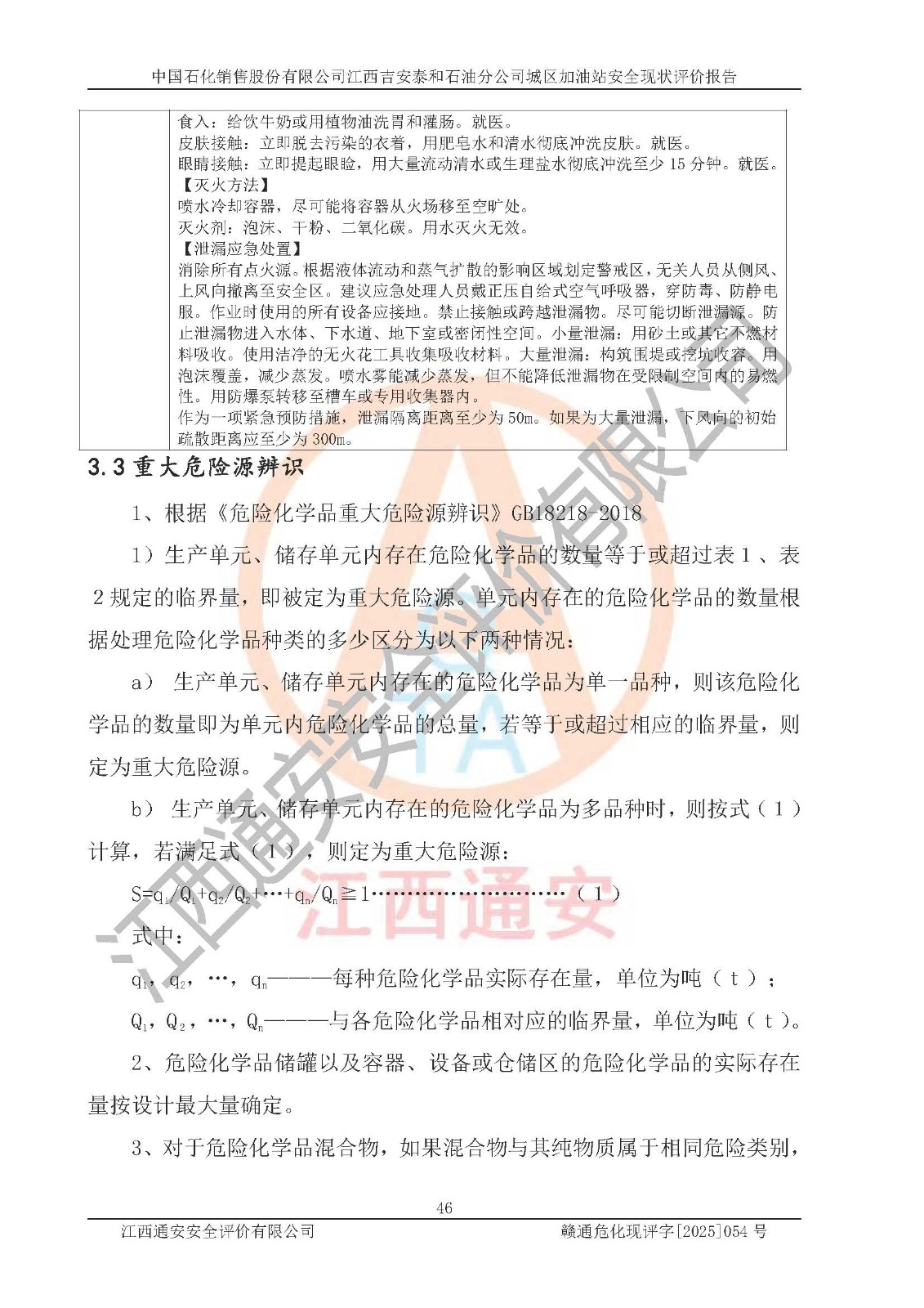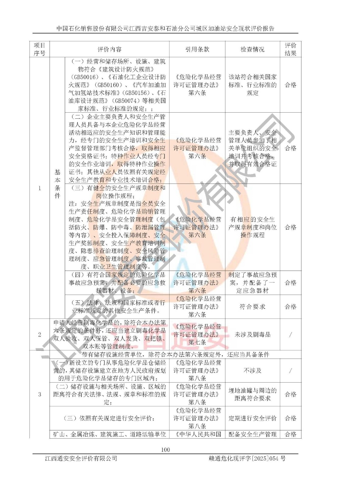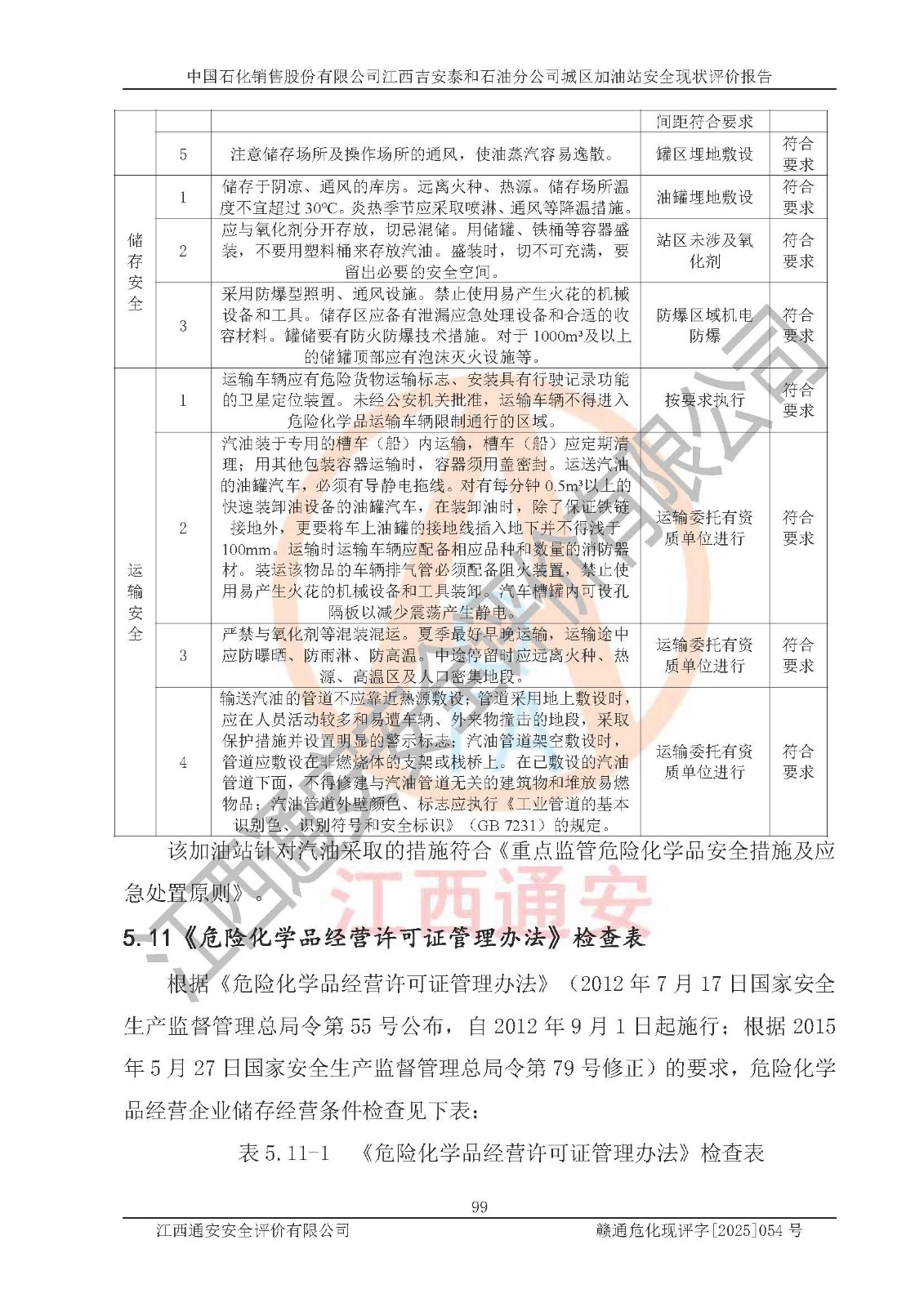 项目名称 | 中国石化销售股份有限公司江西吉安泰和石油分公司城区加油站 安全现状评价报告 | ||||