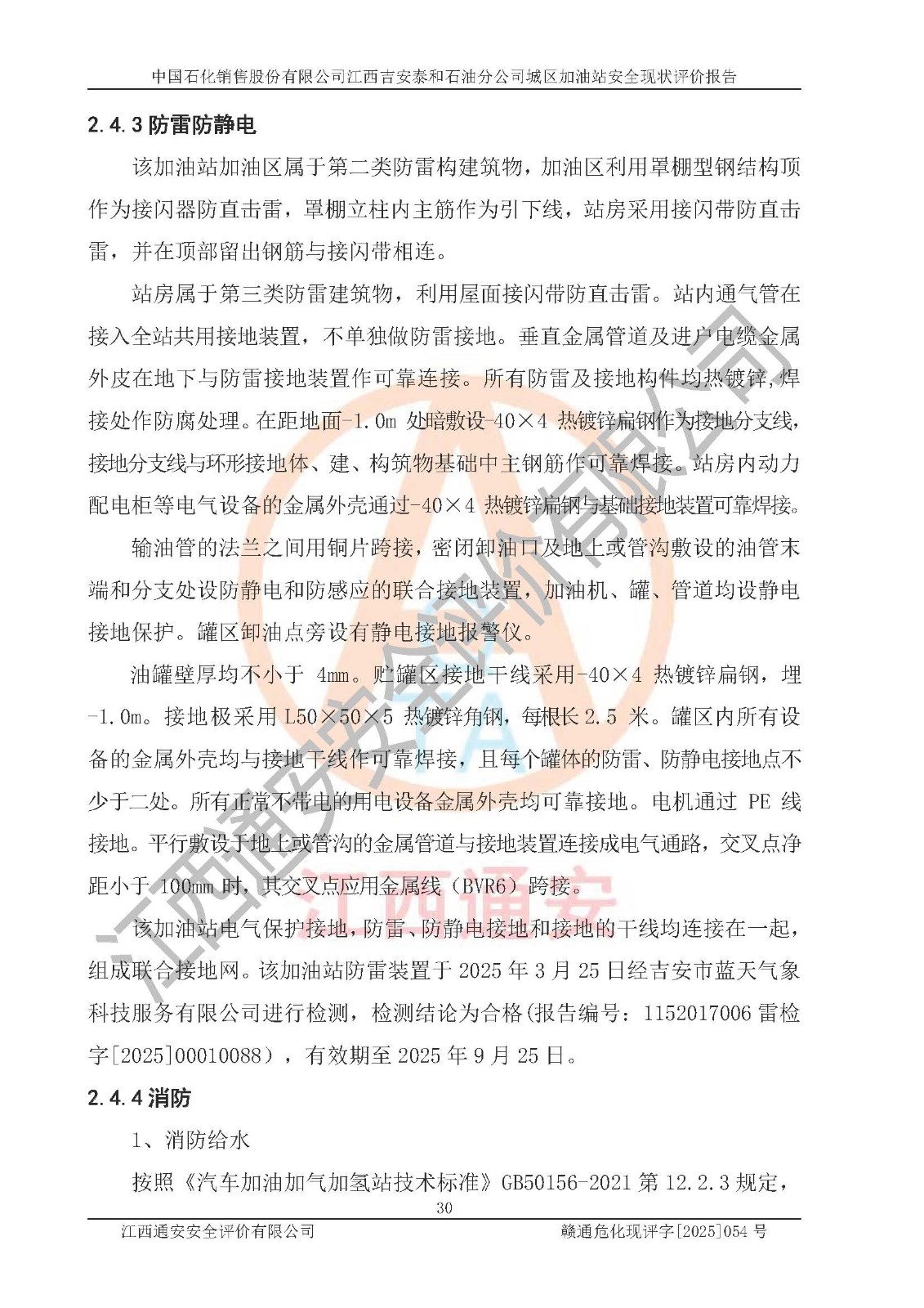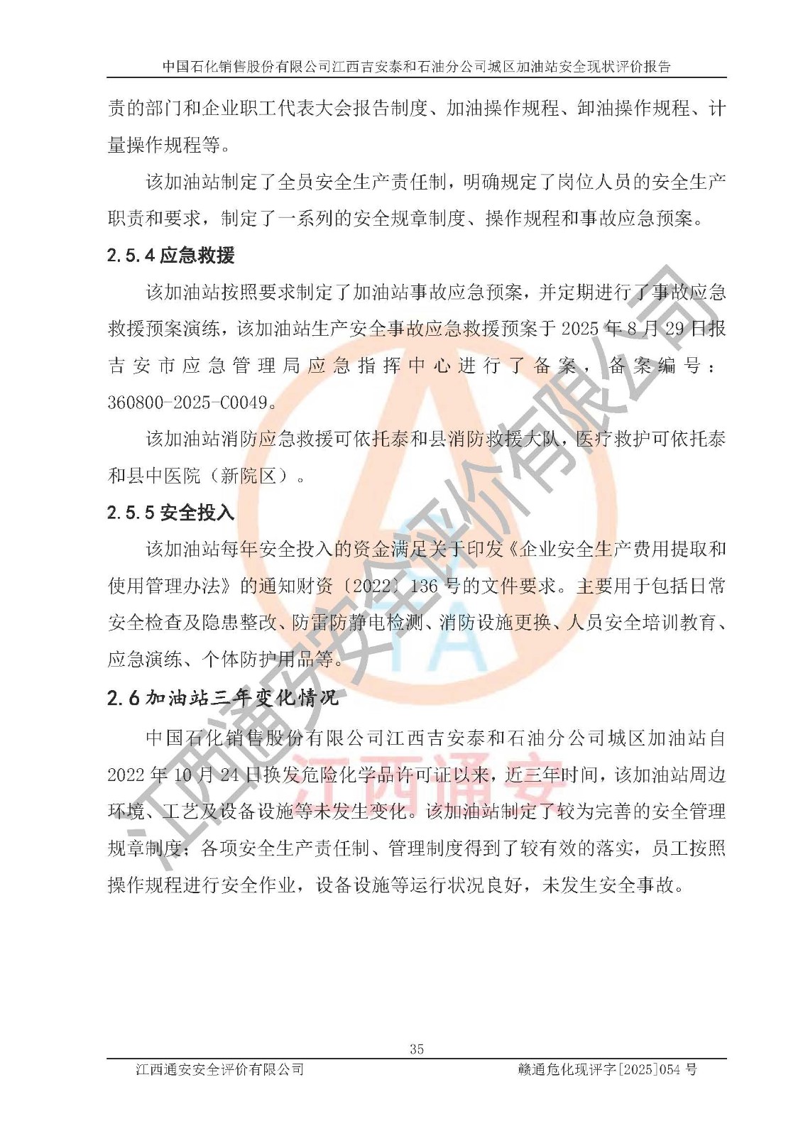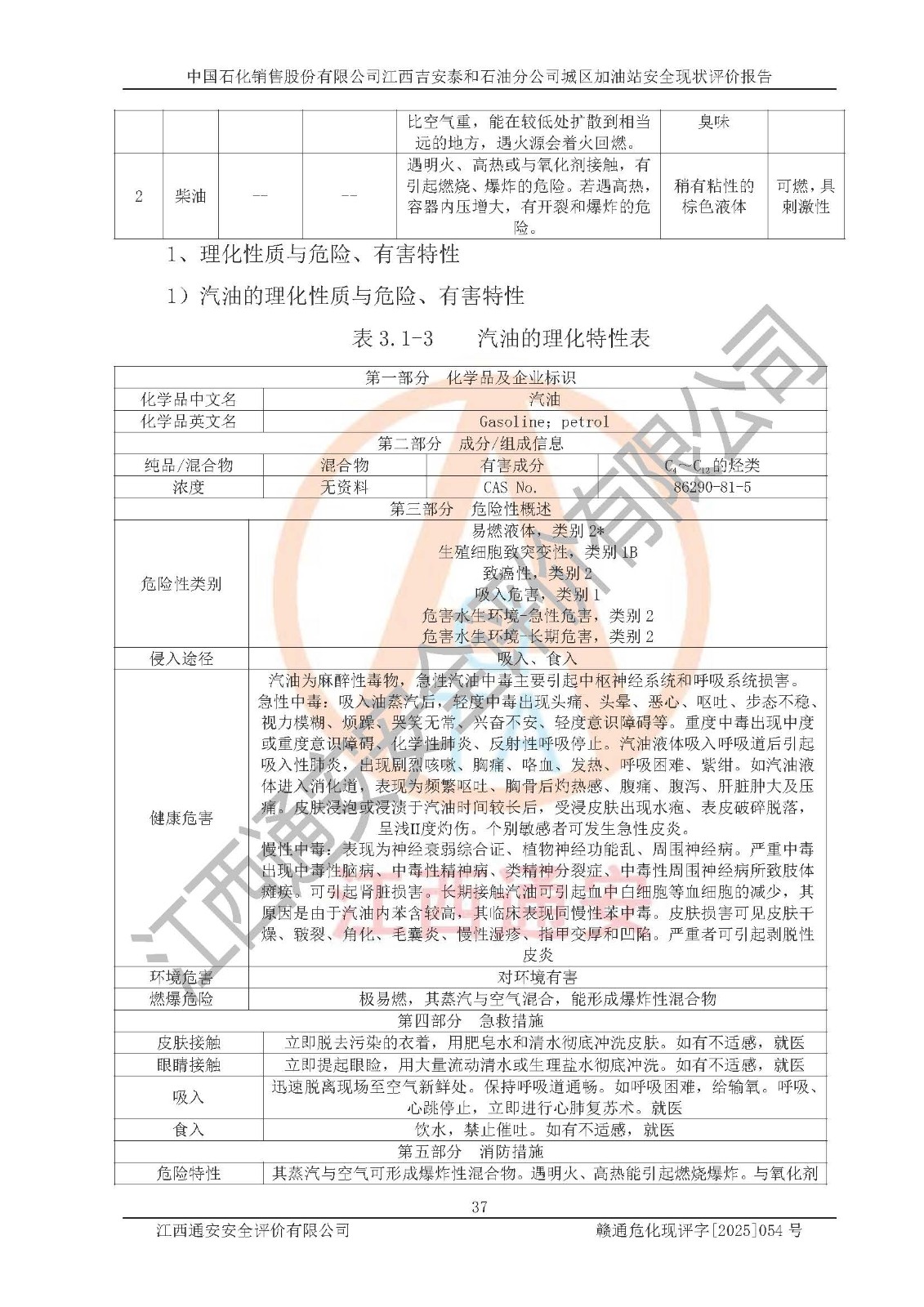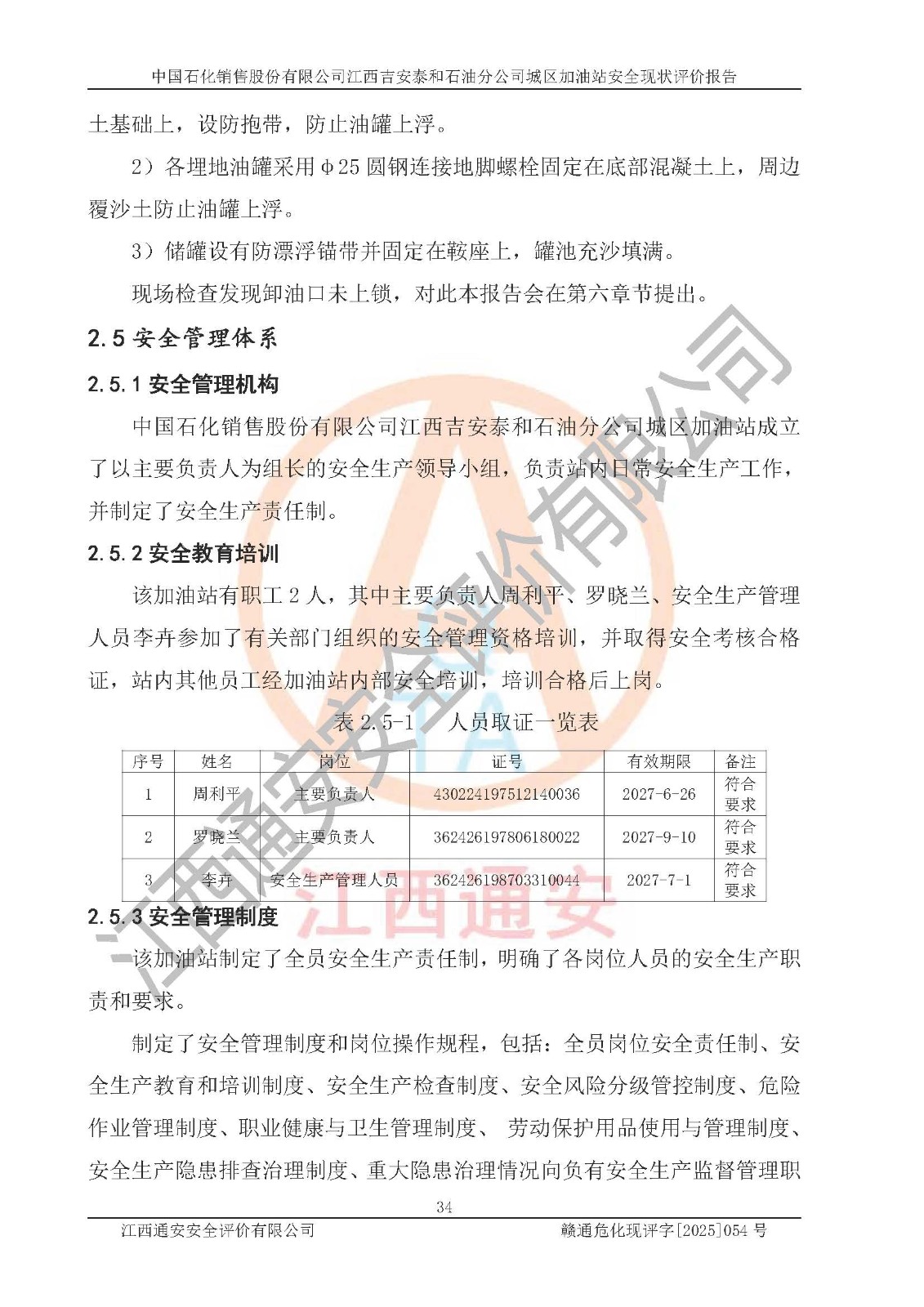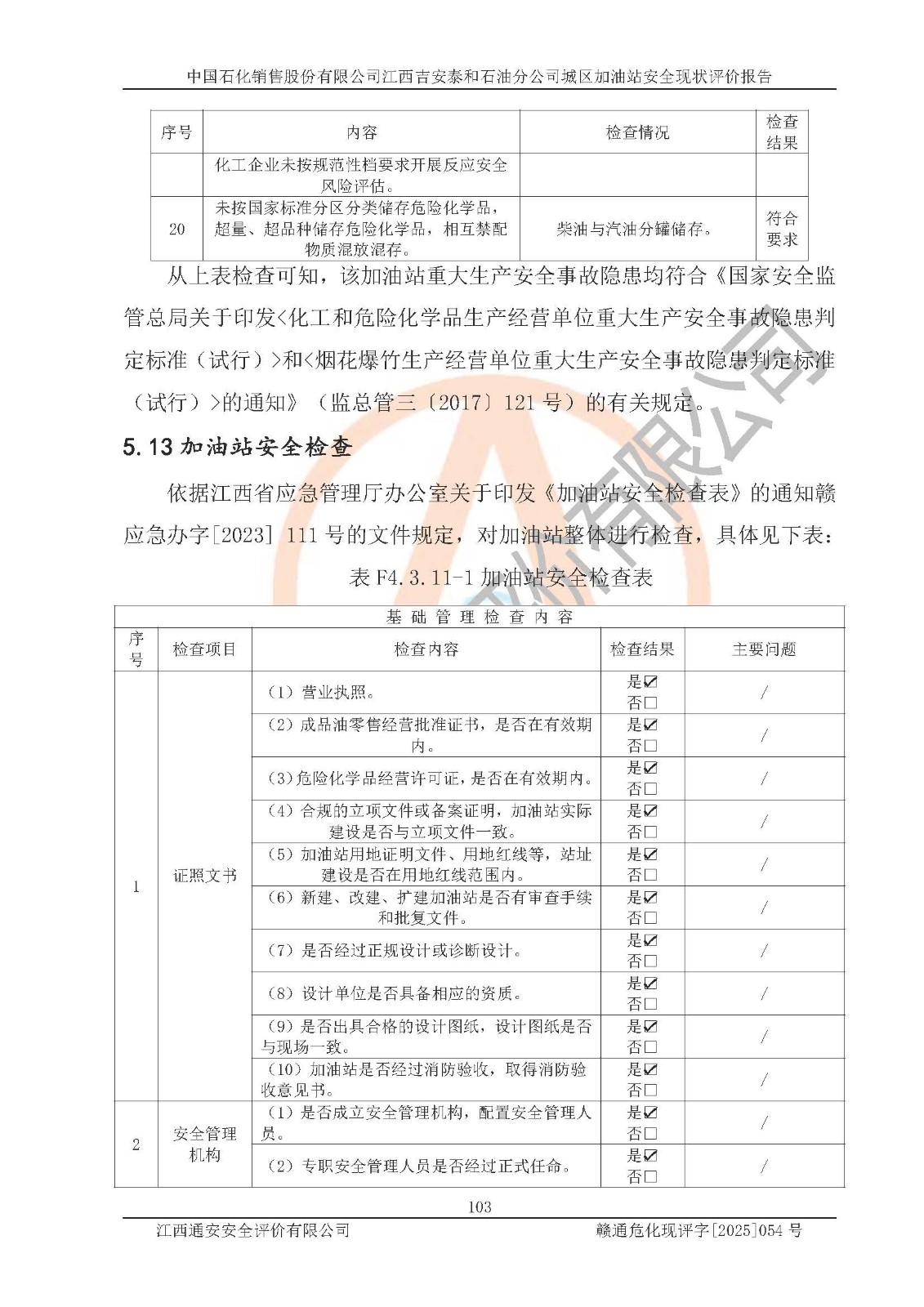 项目名称 | 中国石化销售股份有限公司江西吉安泰和石油分公司城区加油站 安全现状评价报告 | ||||