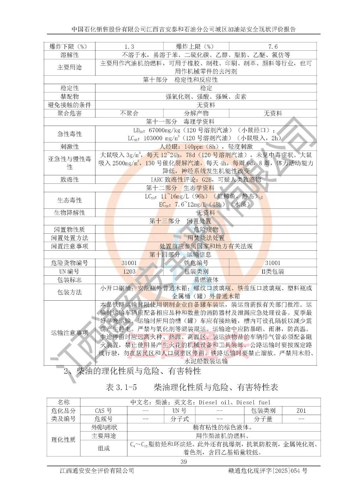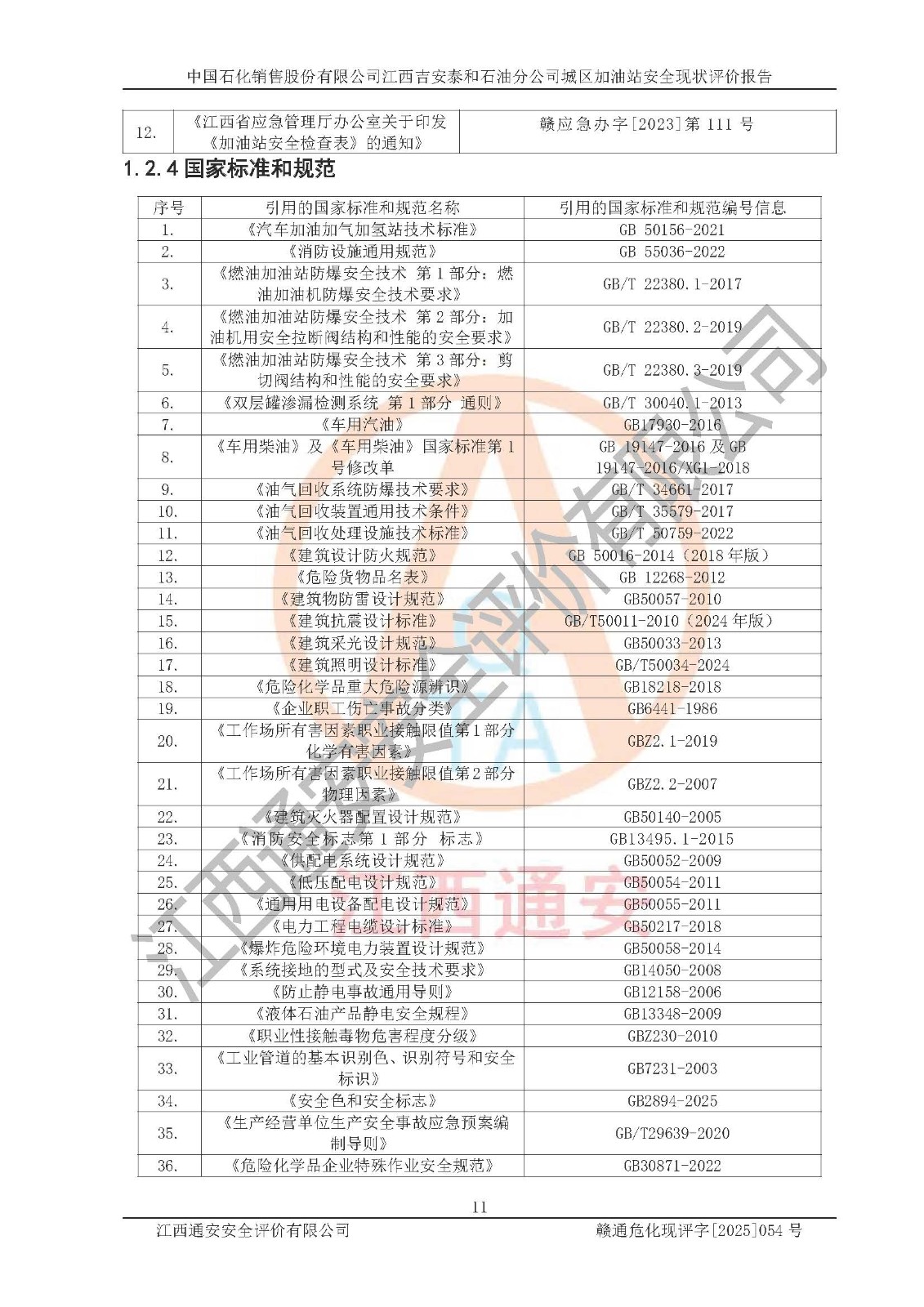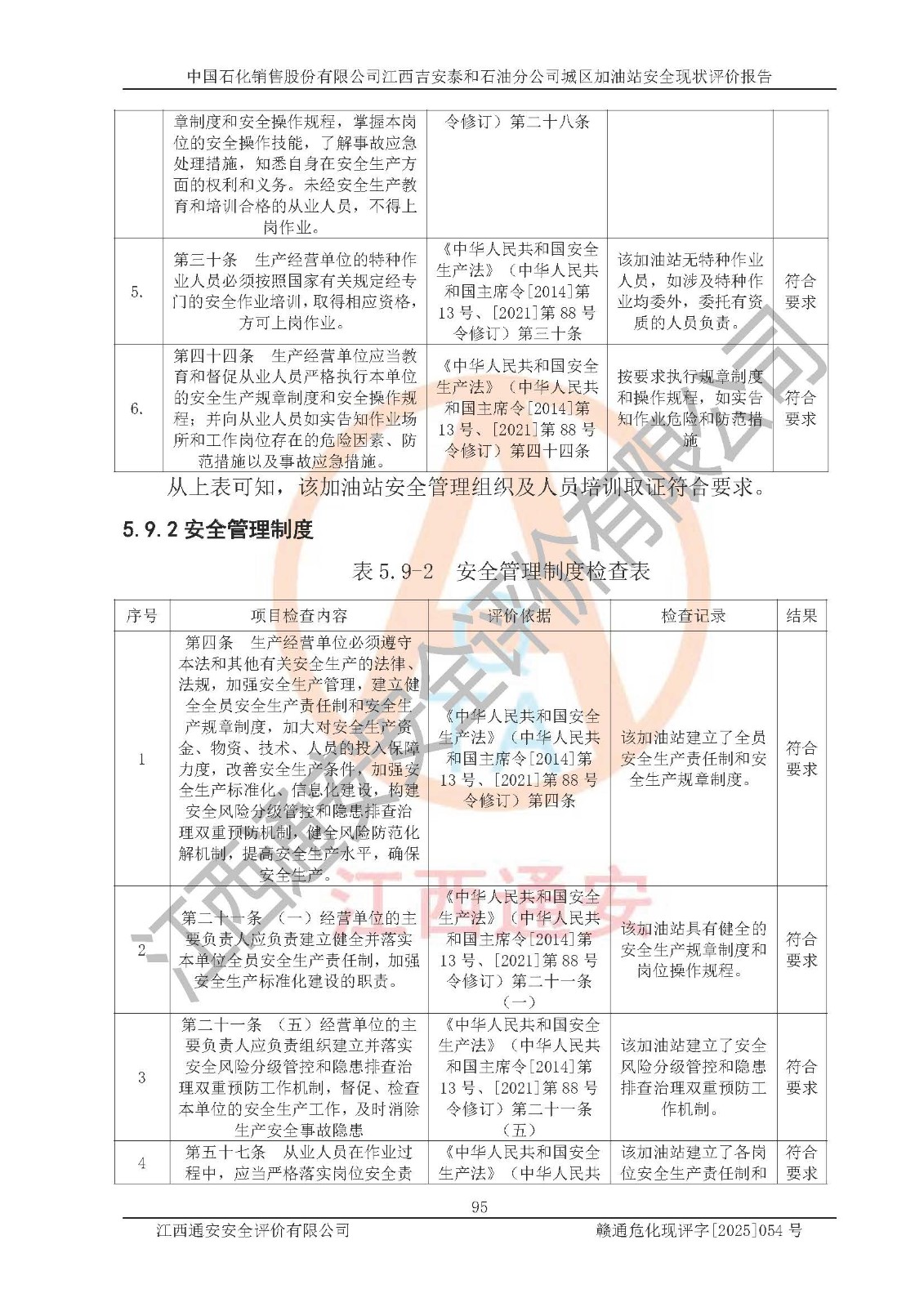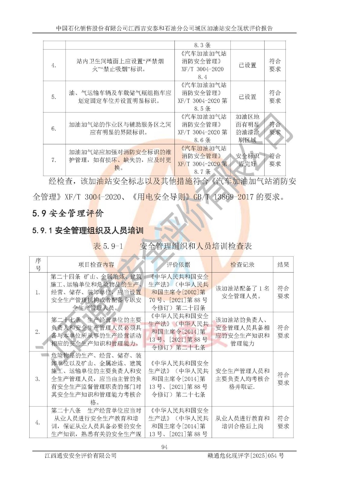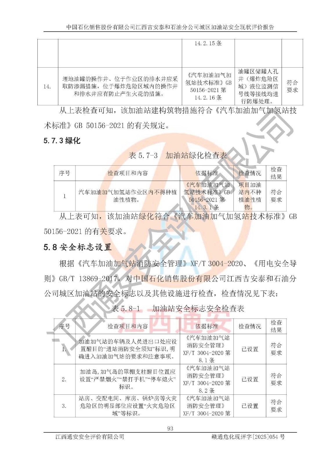 项目名称 | 中国石化销售股份有限公司江西吉安泰和石油分公司城区加油站 安全现状评价报告 | ||||