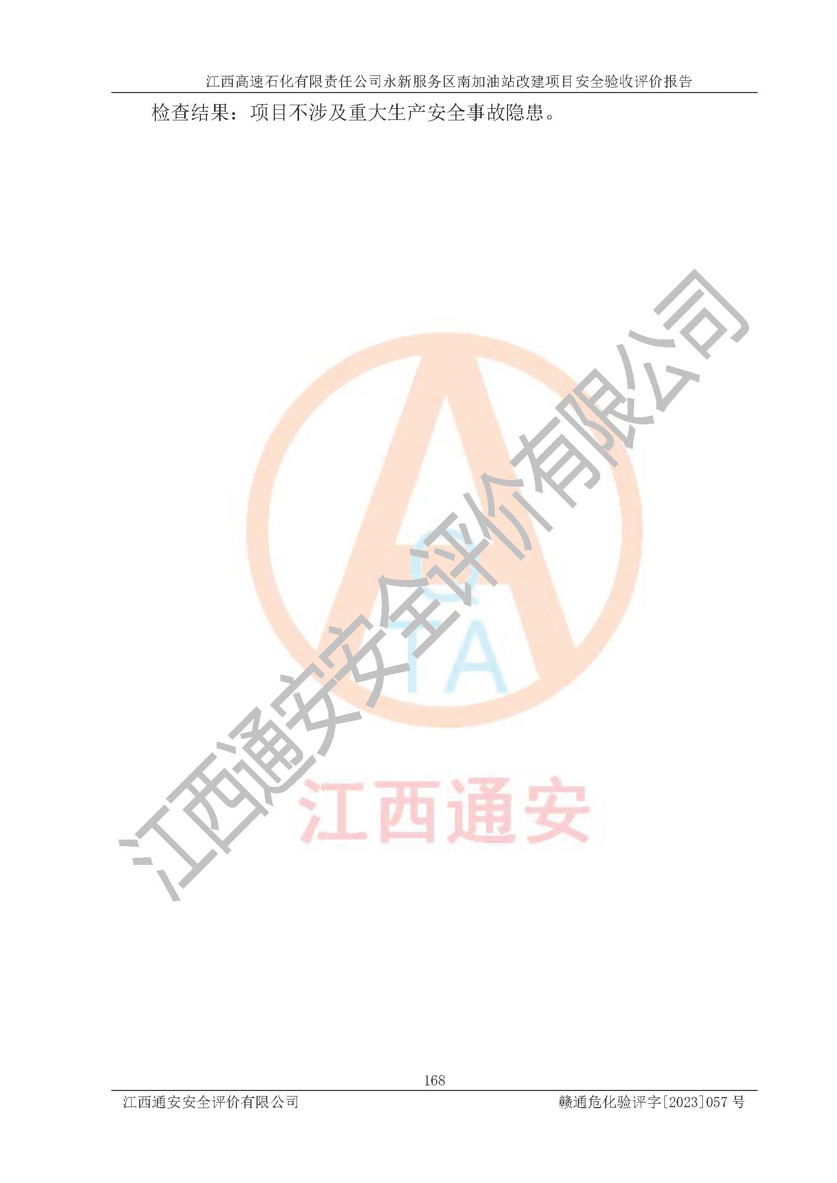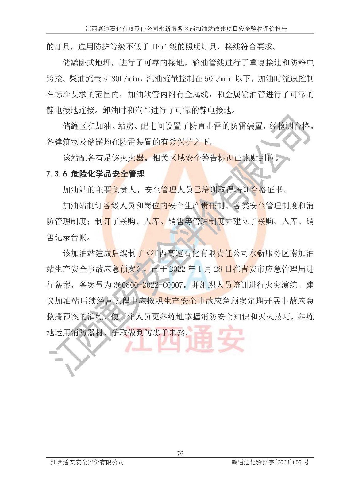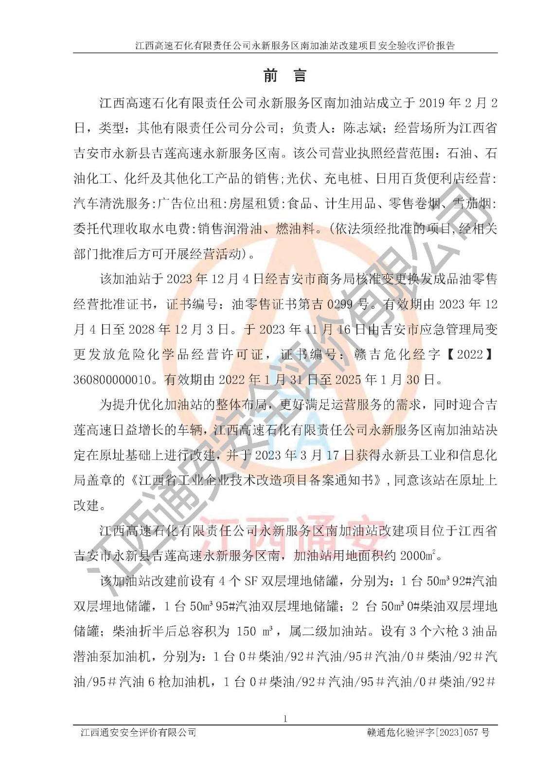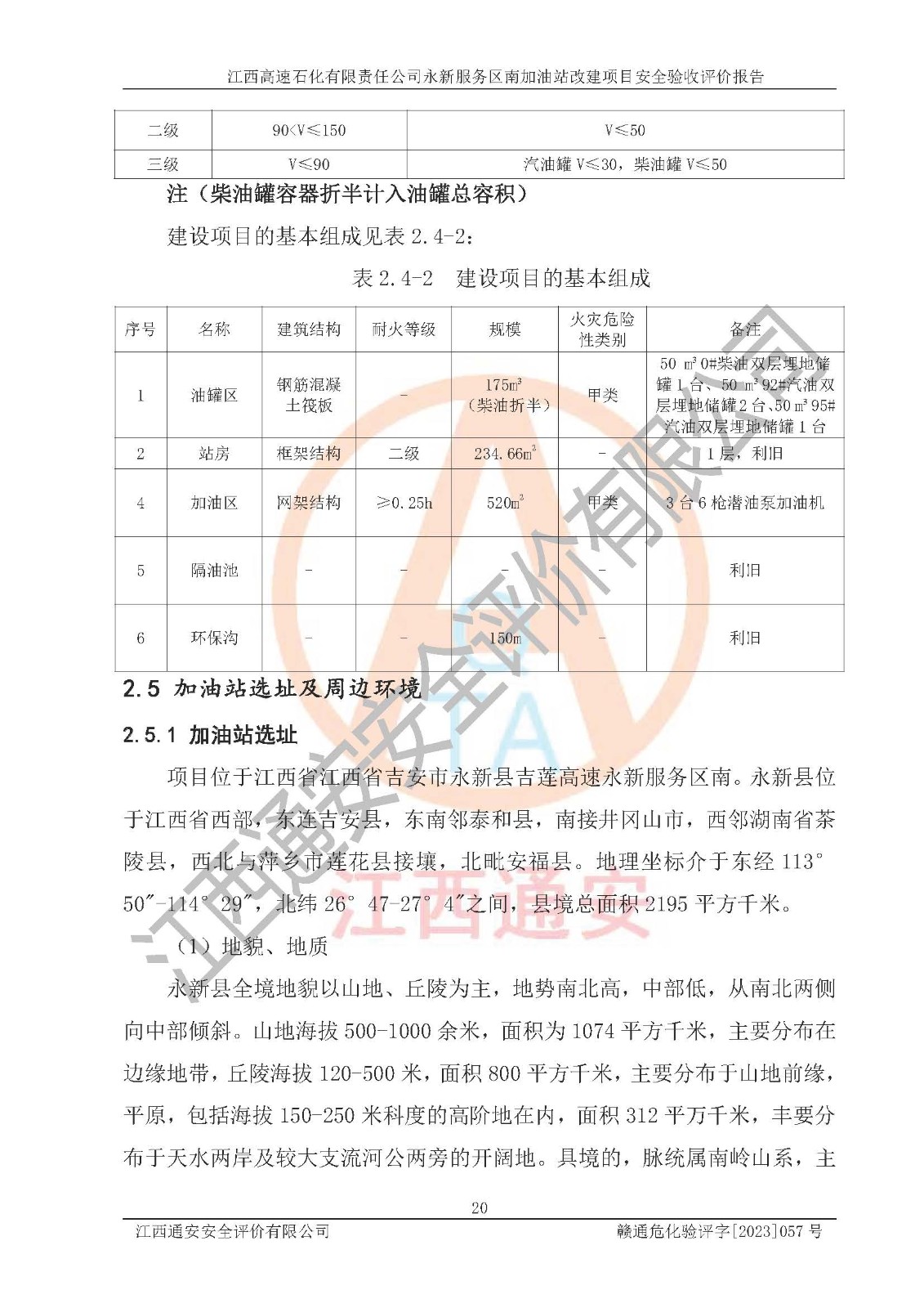 项目名称 | 江西高速石化有限责任公司永新服务区南加油站改建项目安全验收评价报告 | ||||