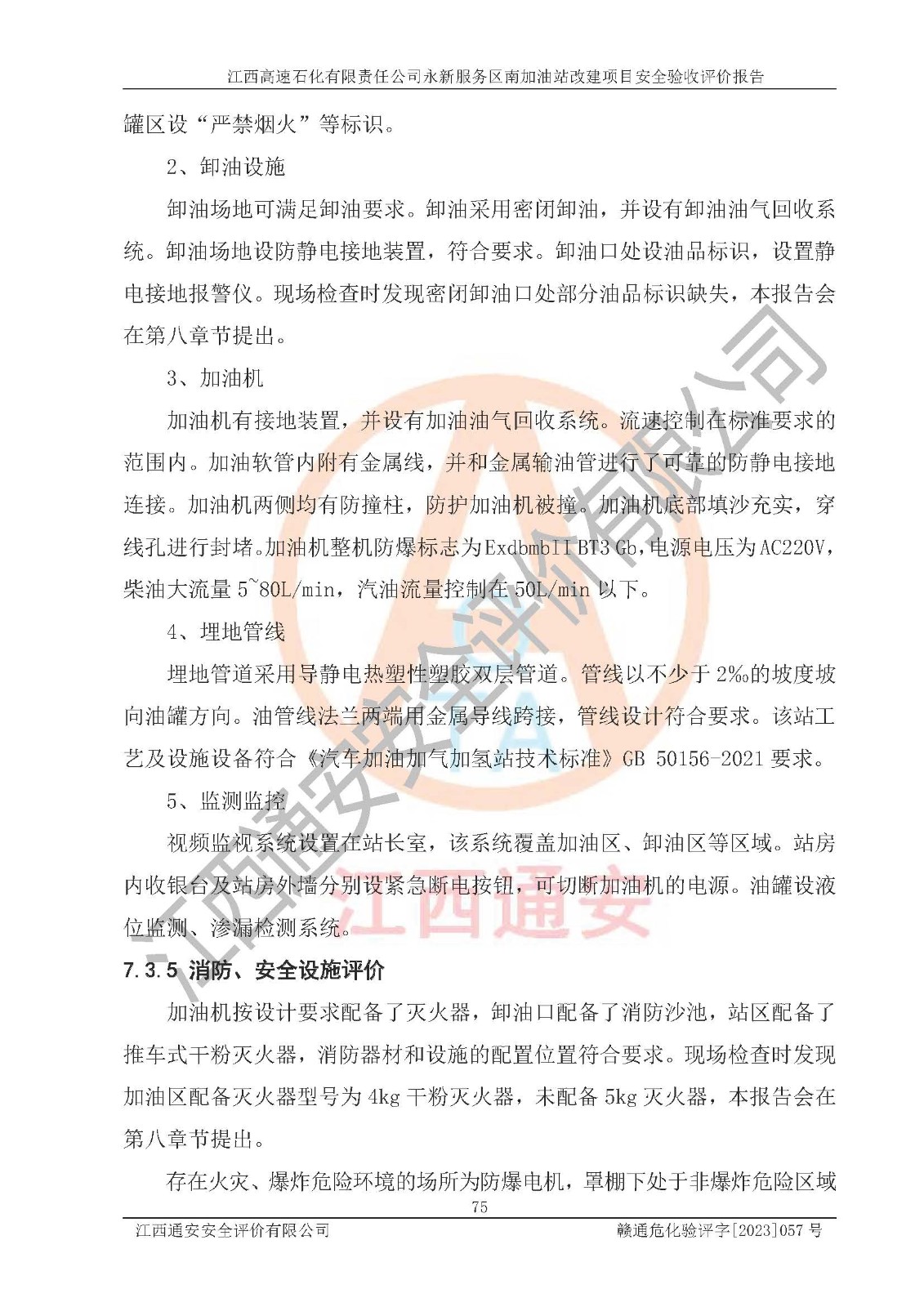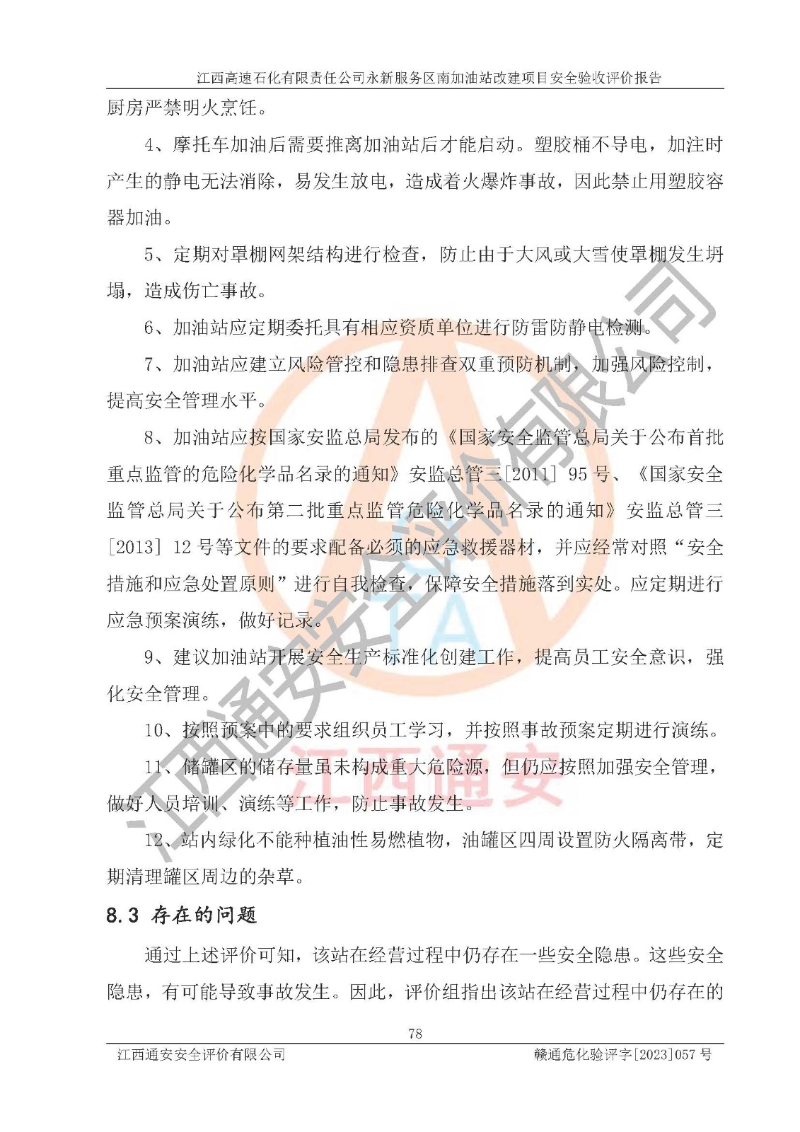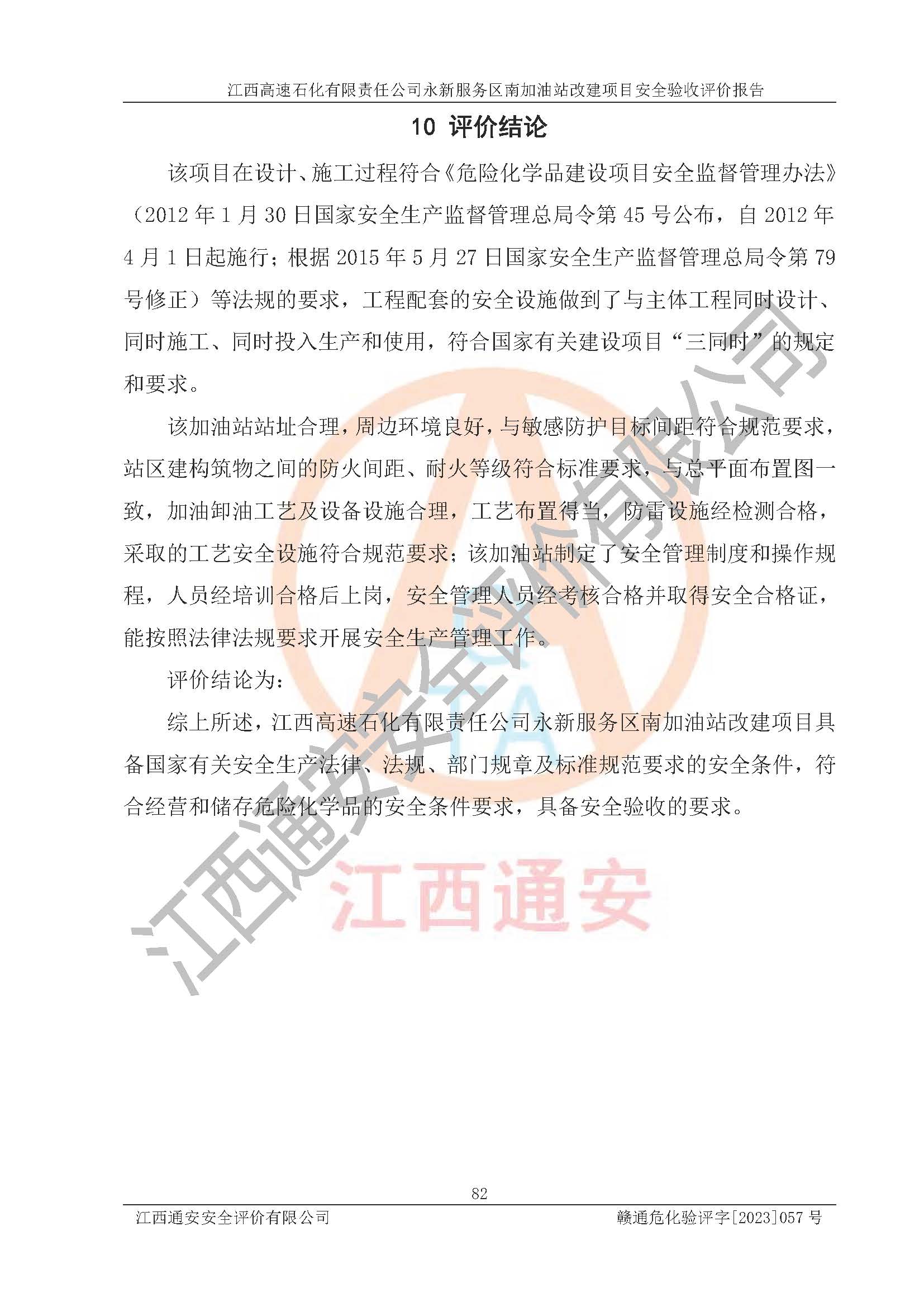 项目名称 | 江西高速石化有限责任公司永新服务区南加油站改建项目安全验收评价报告 | ||||