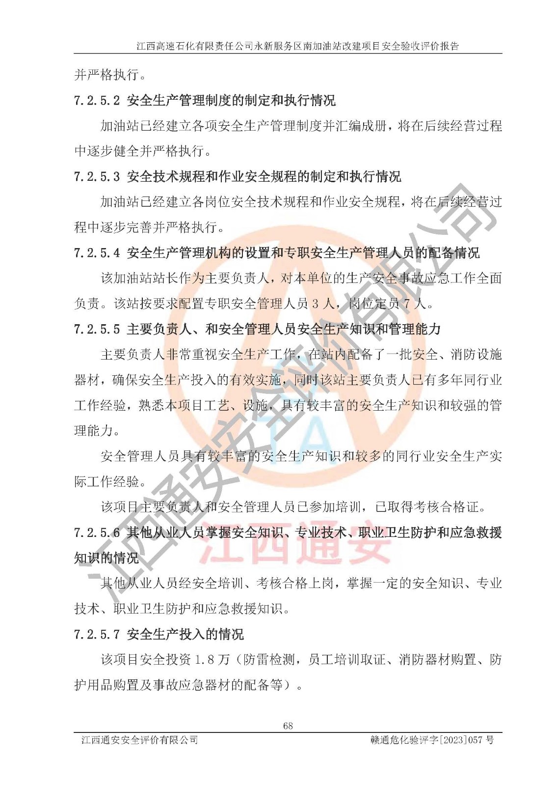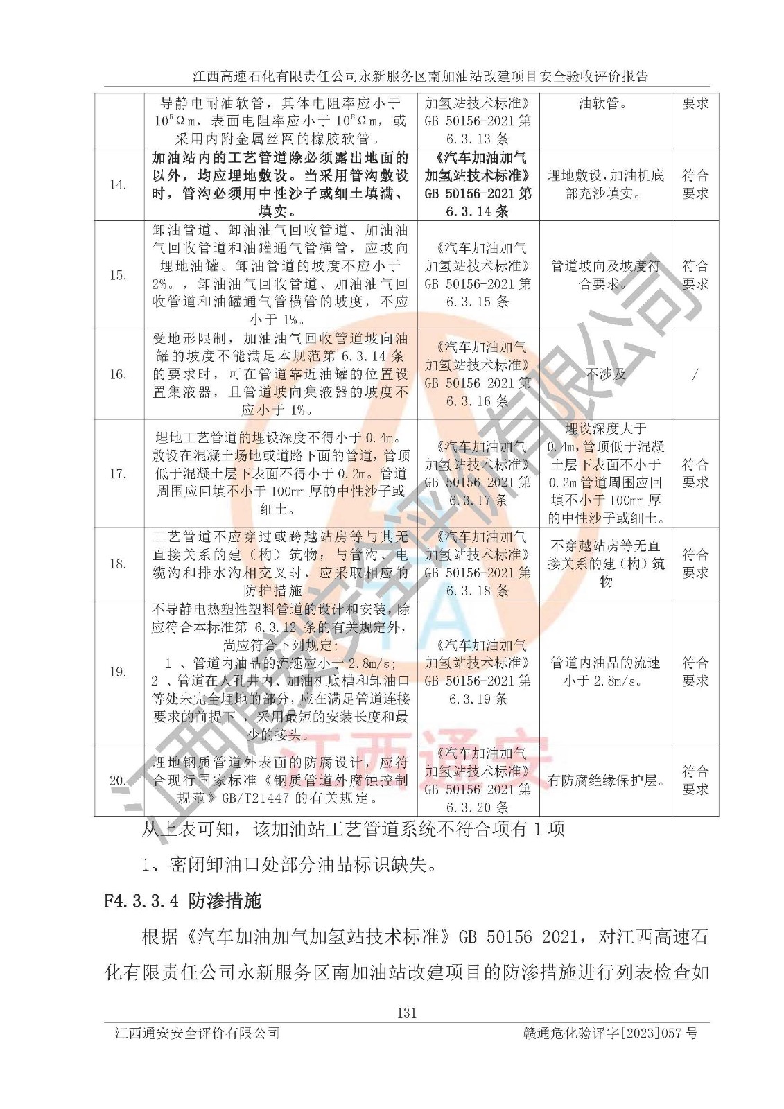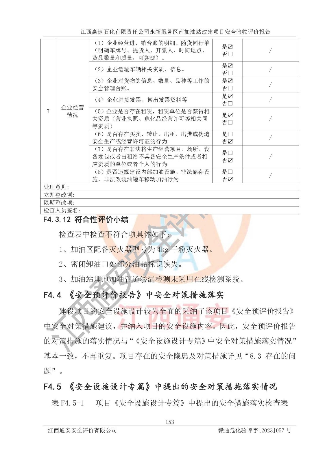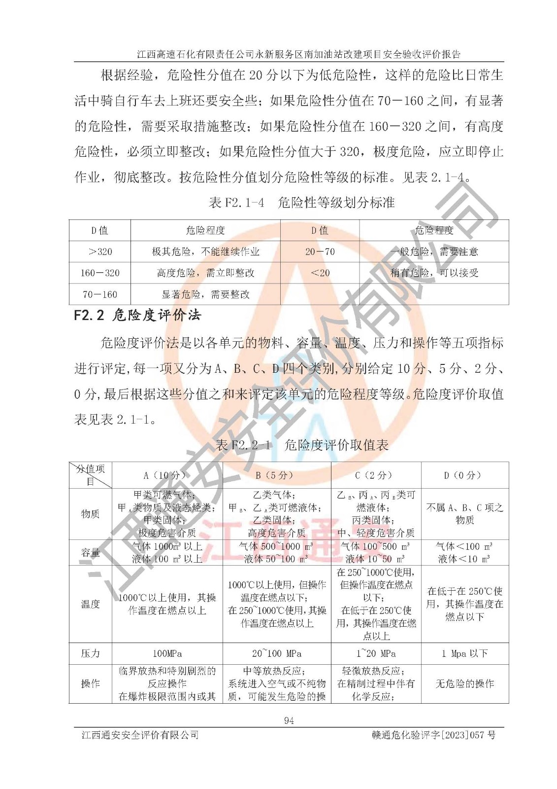 项目名称 | 江西高速石化有限责任公司永新服务区南加油站改建项目安全验收评价报告 | ||||