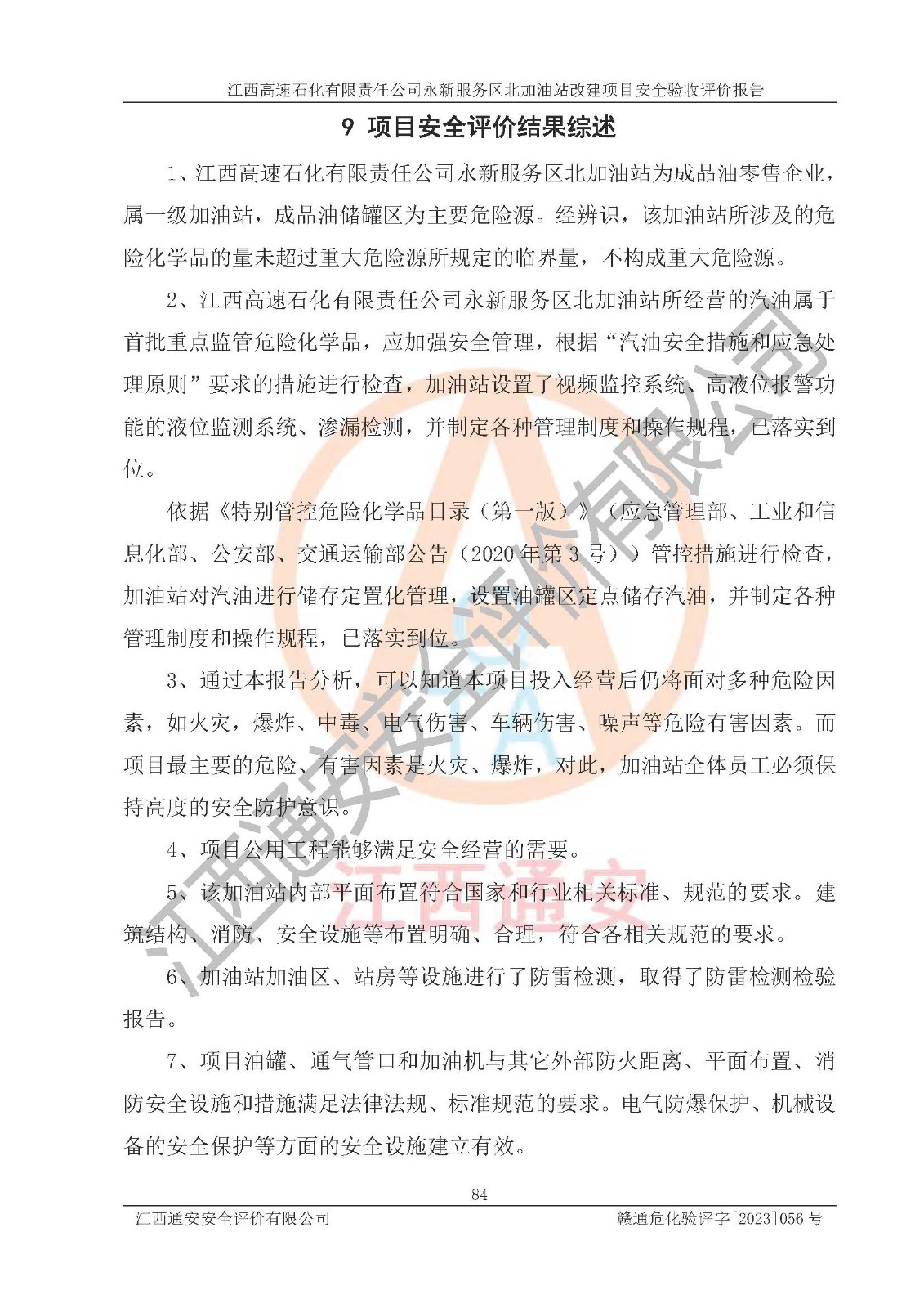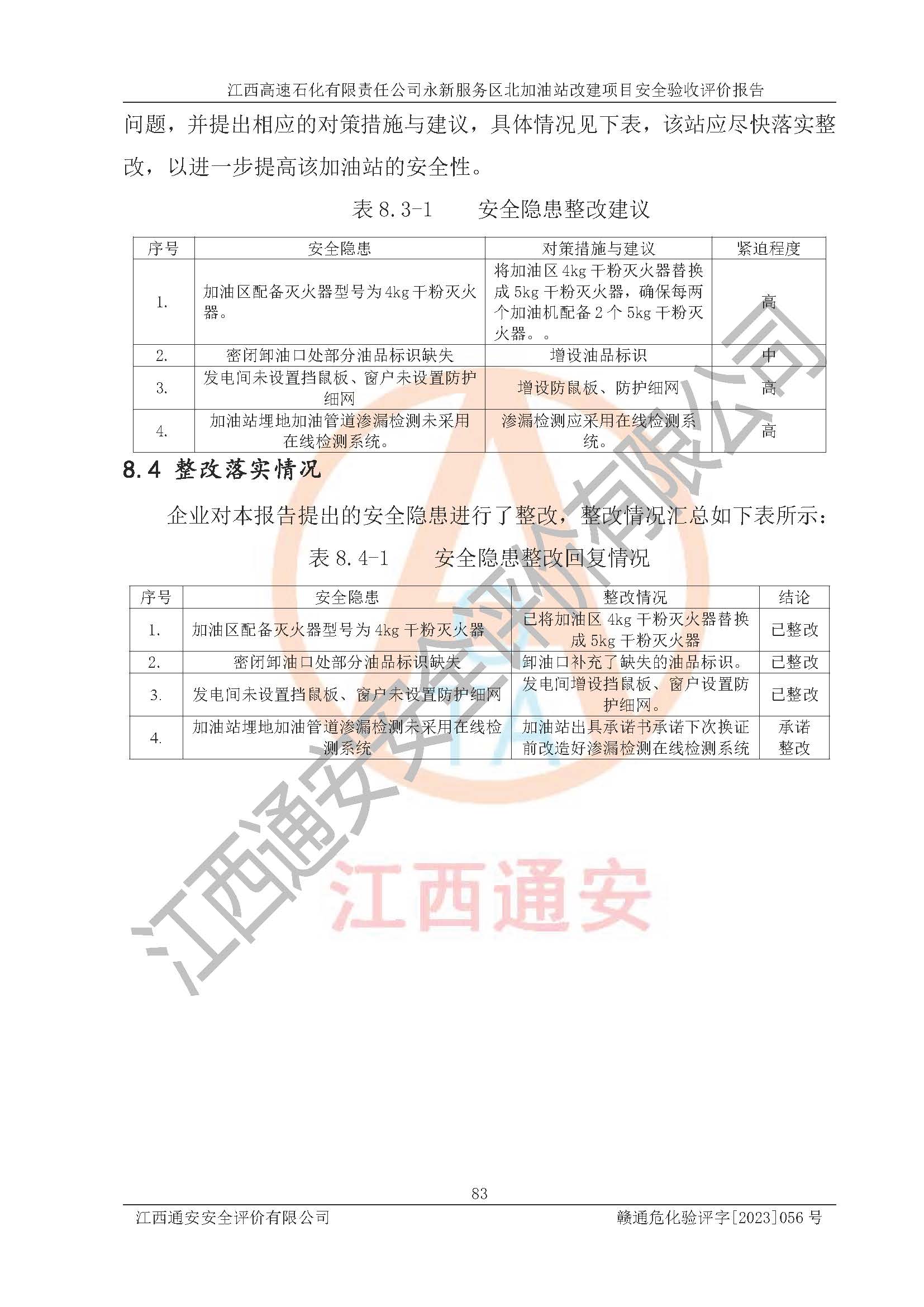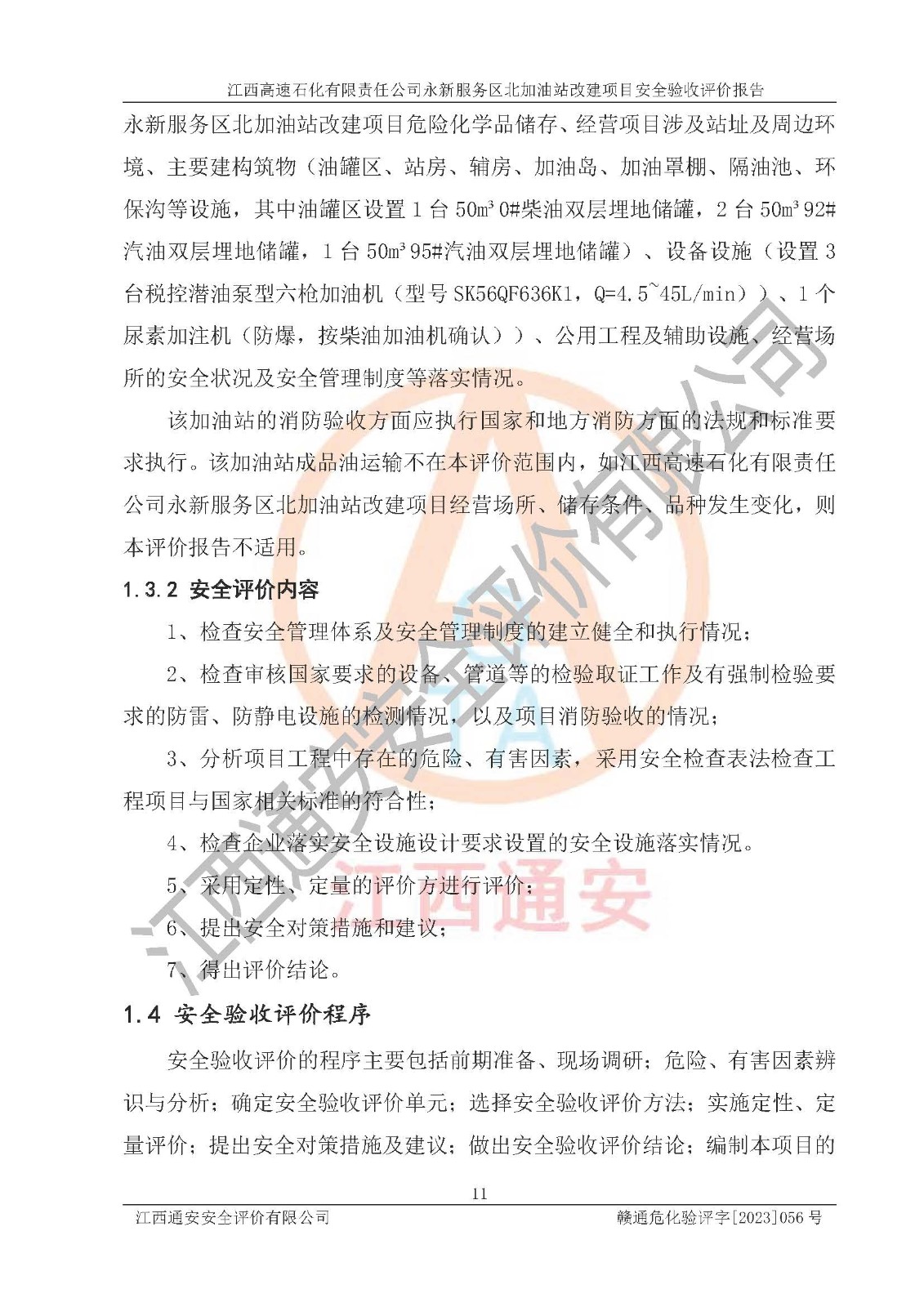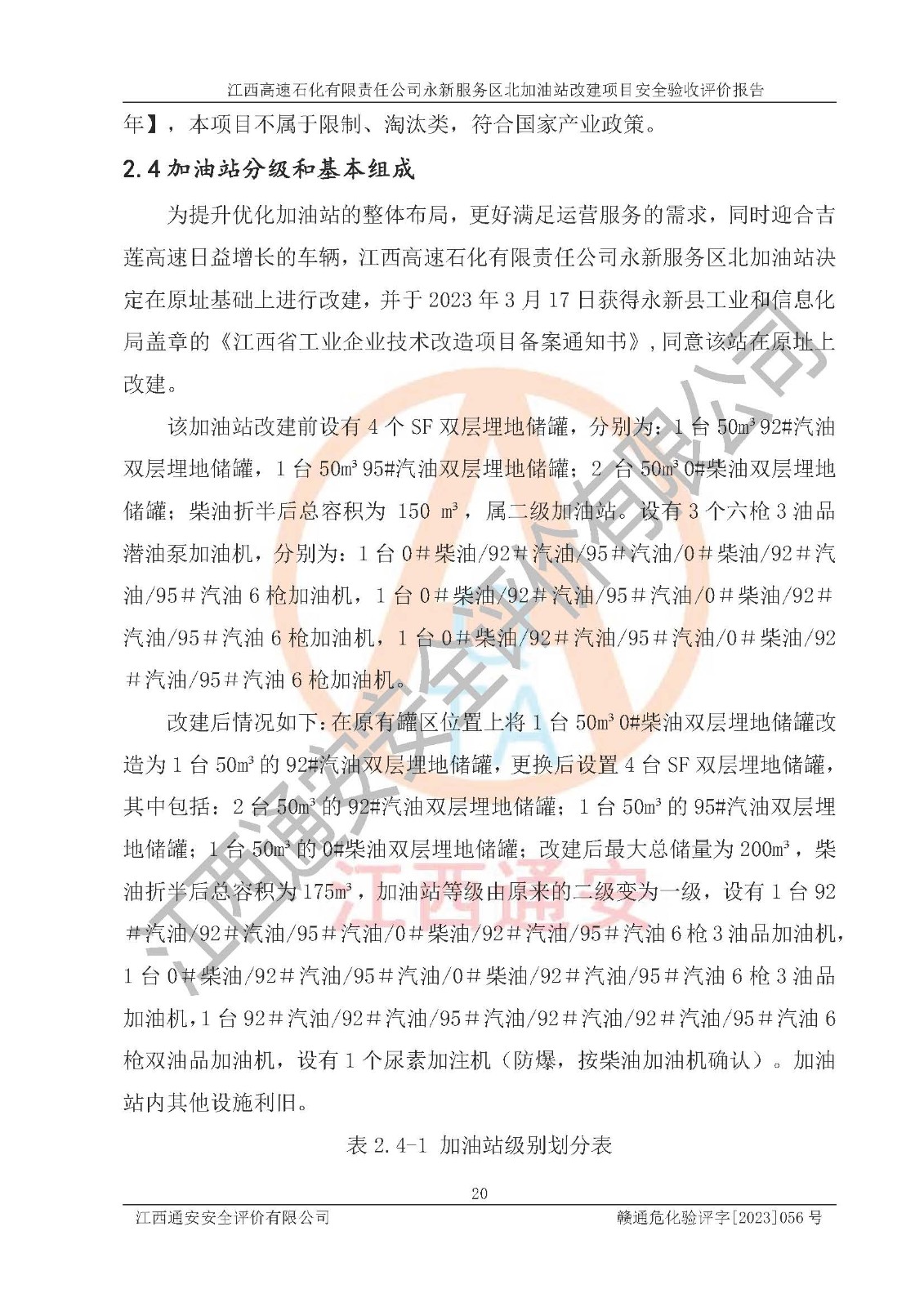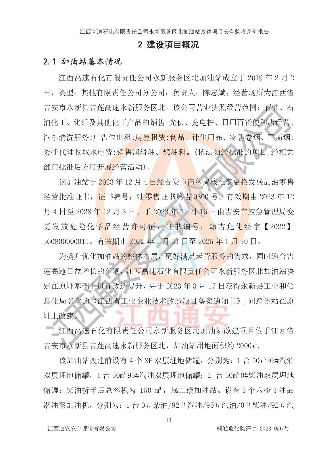 项目名称 | 江西高速石化有限责任公司永新服务区北加油站改建项目安全验收评价报告 | ||||