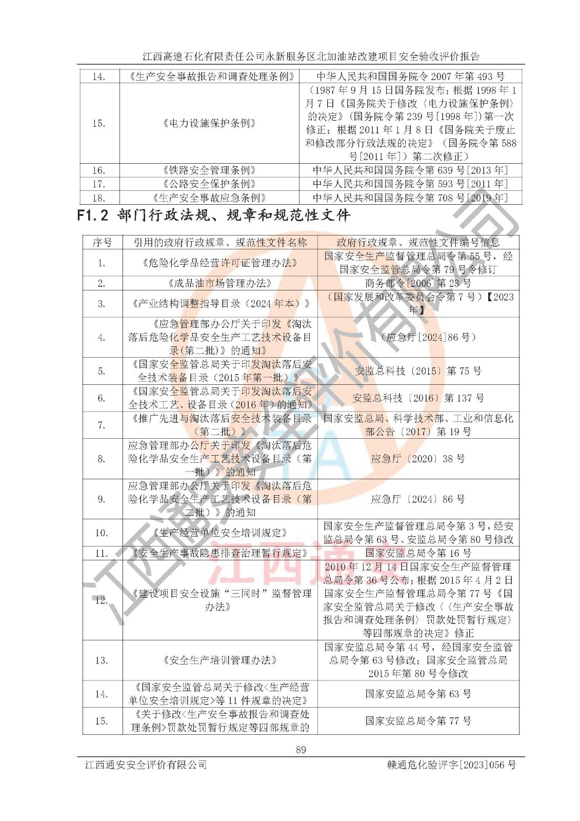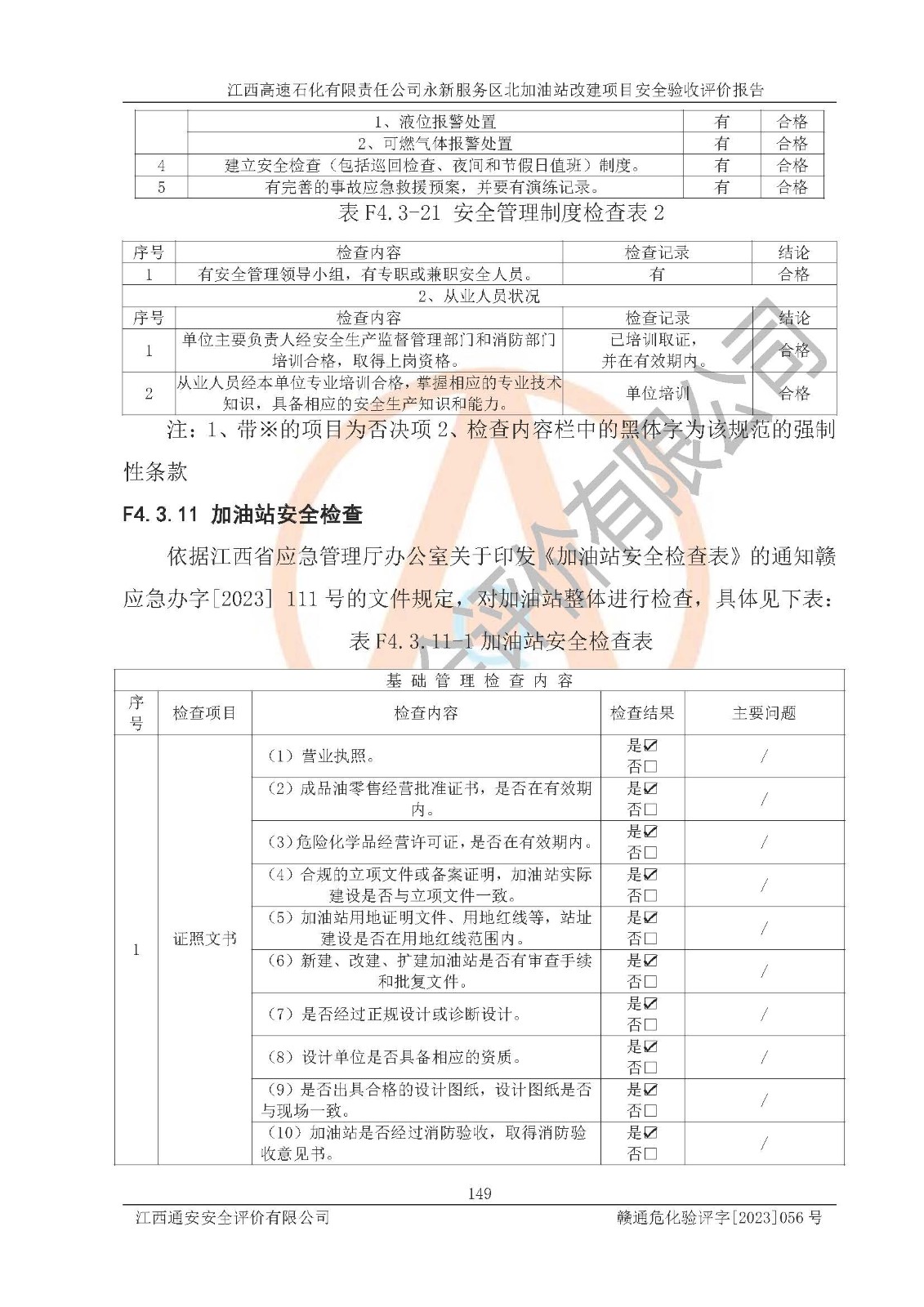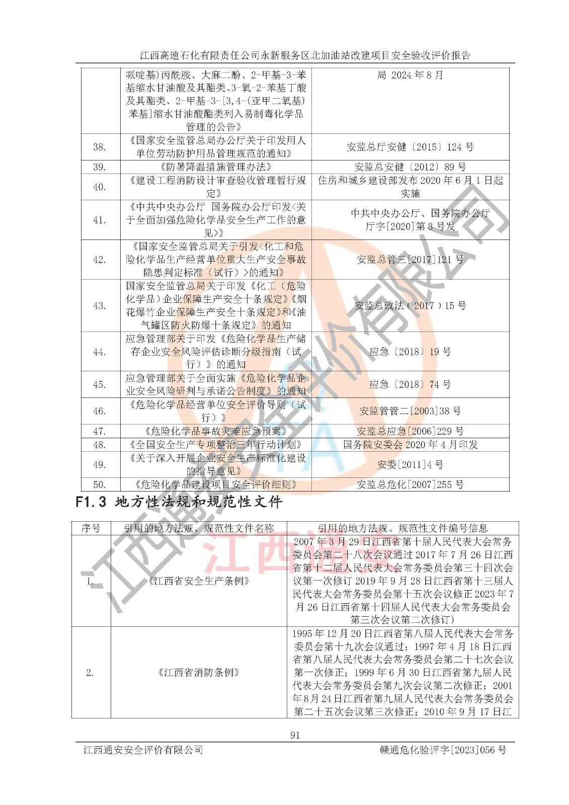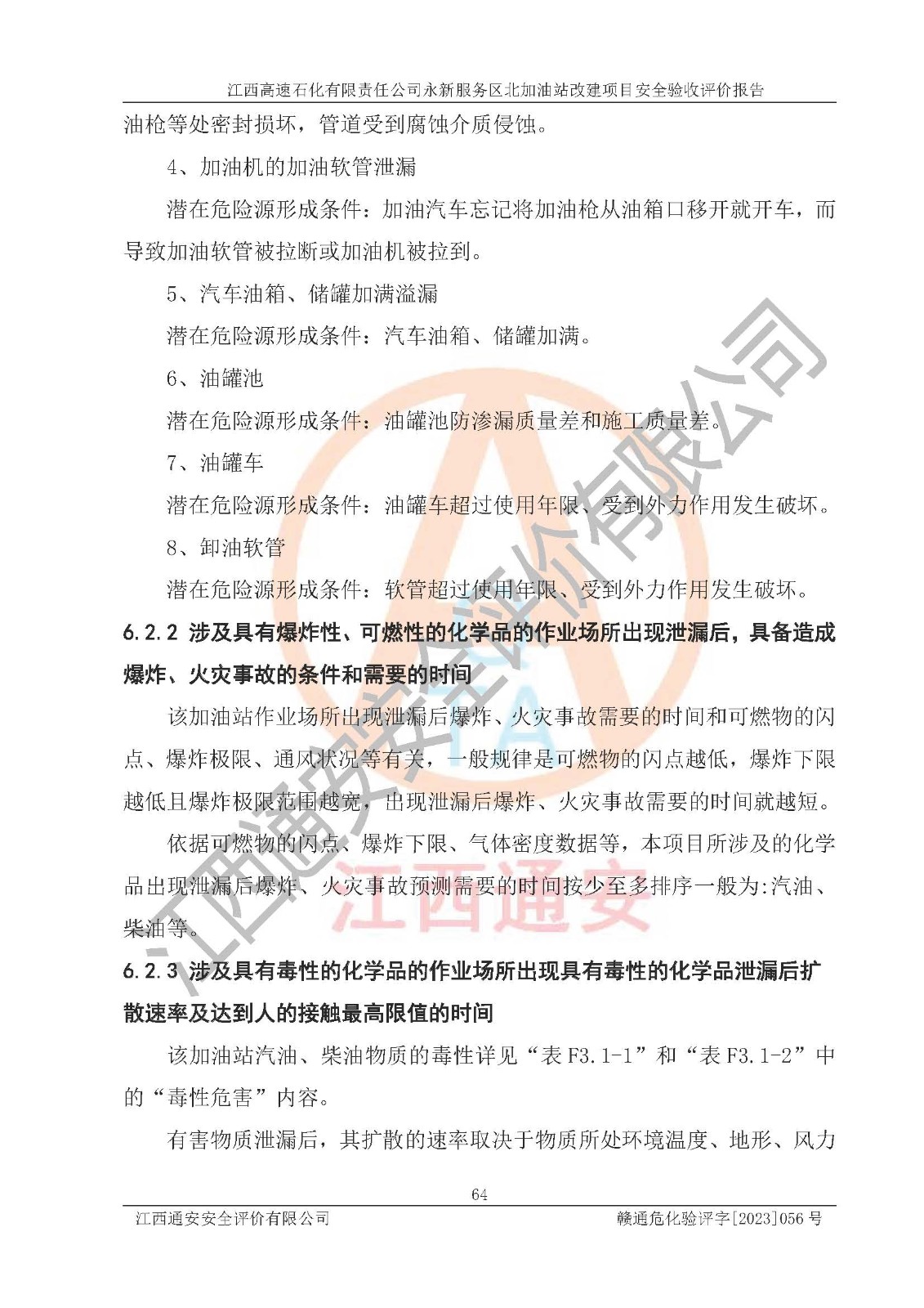 项目名称 | 江西高速石化有限责任公司永新服务区北加油站改建项目安全验收评价报告 | ||||