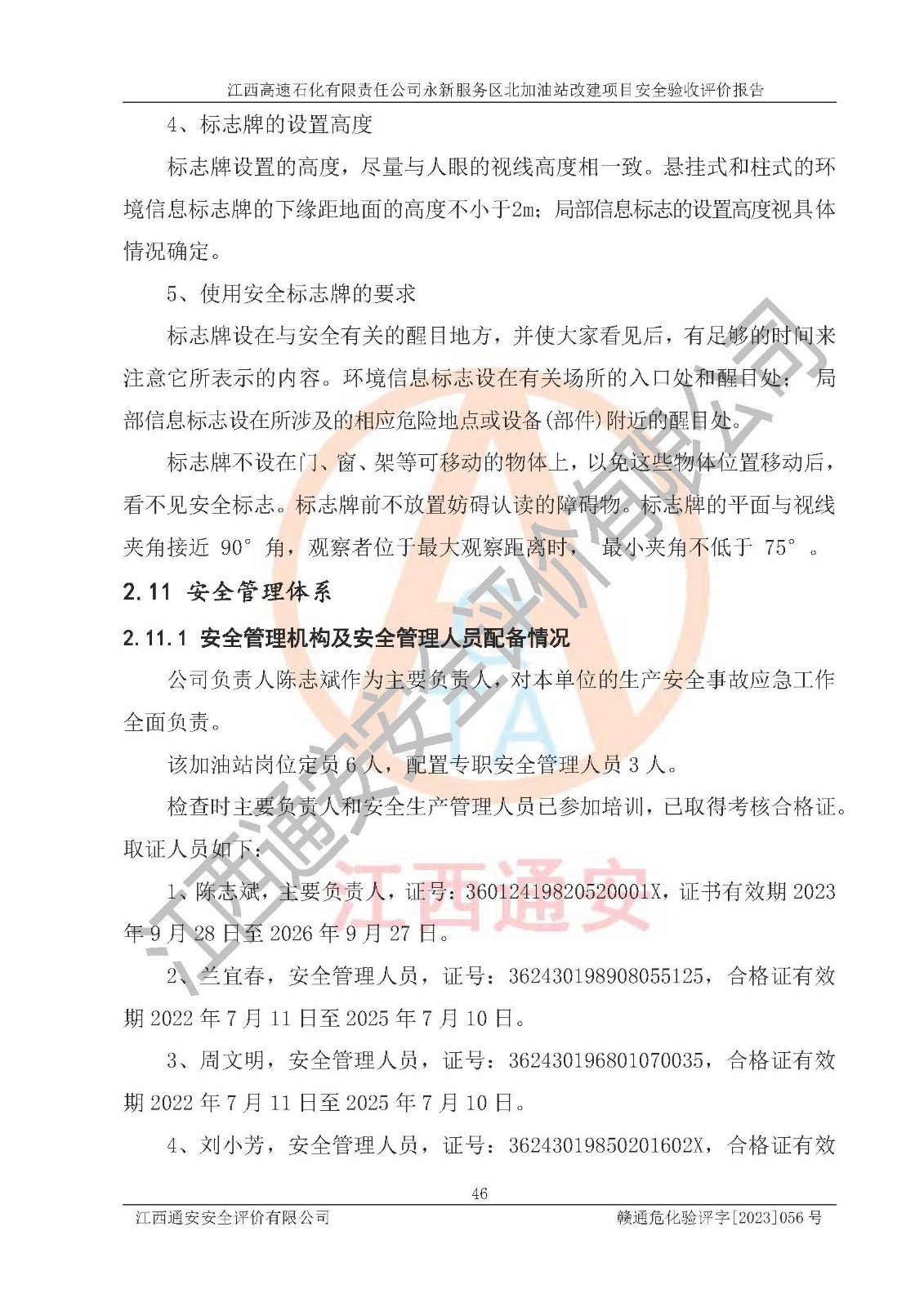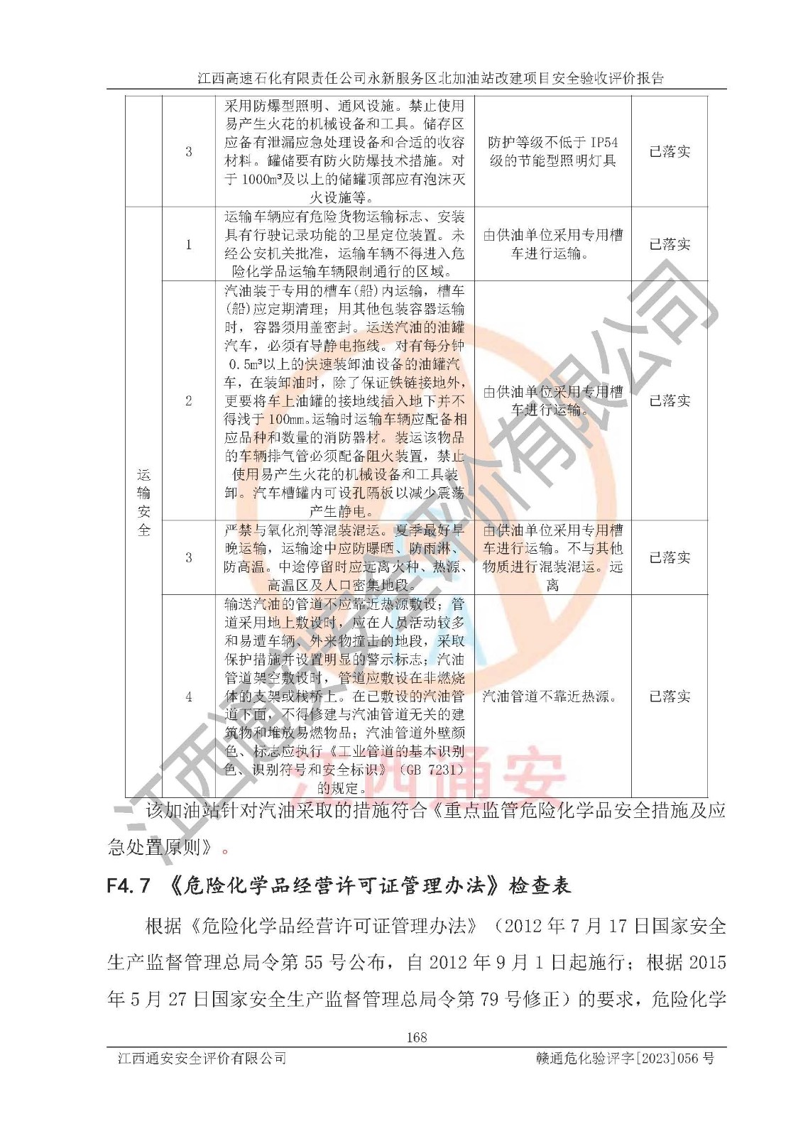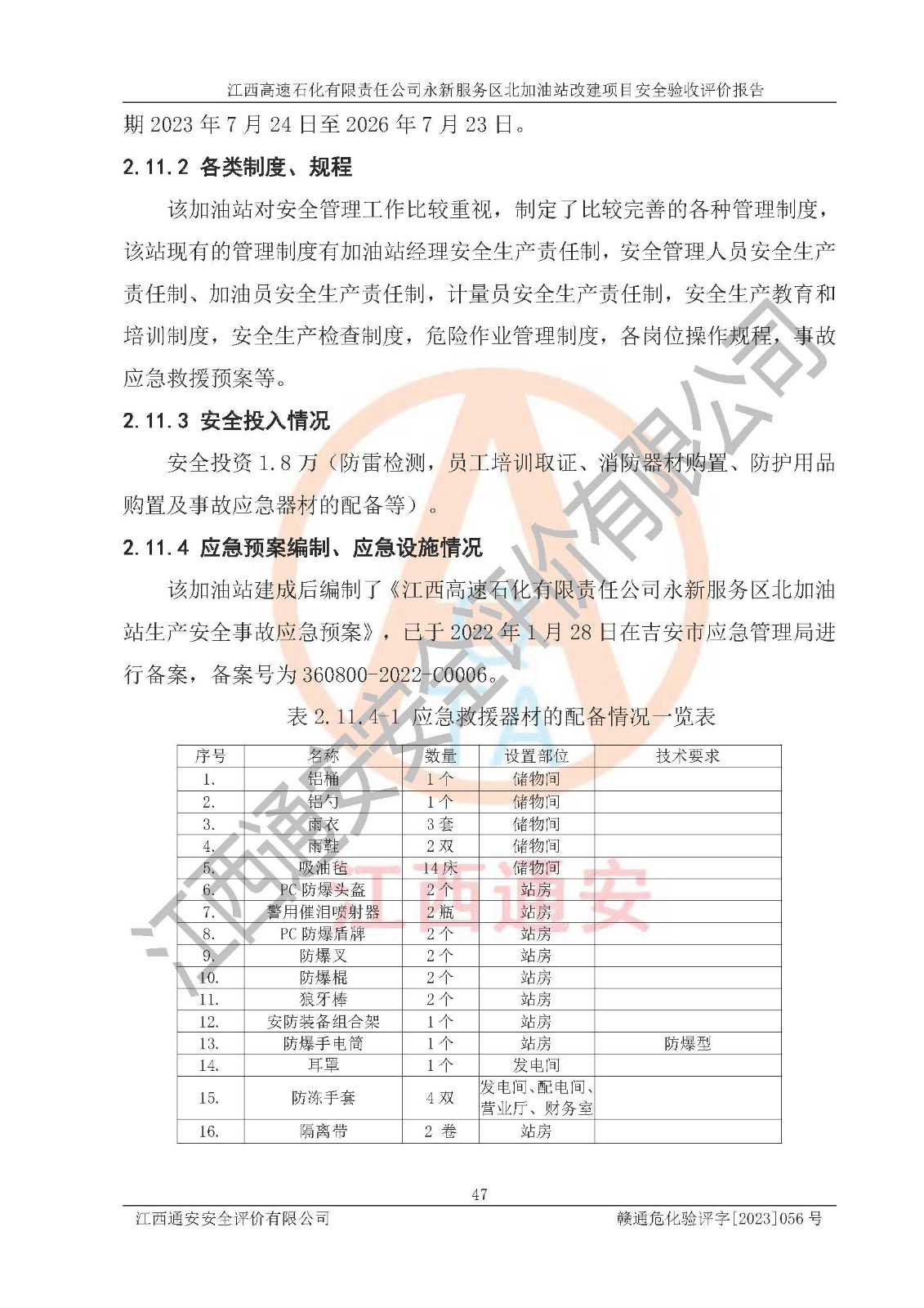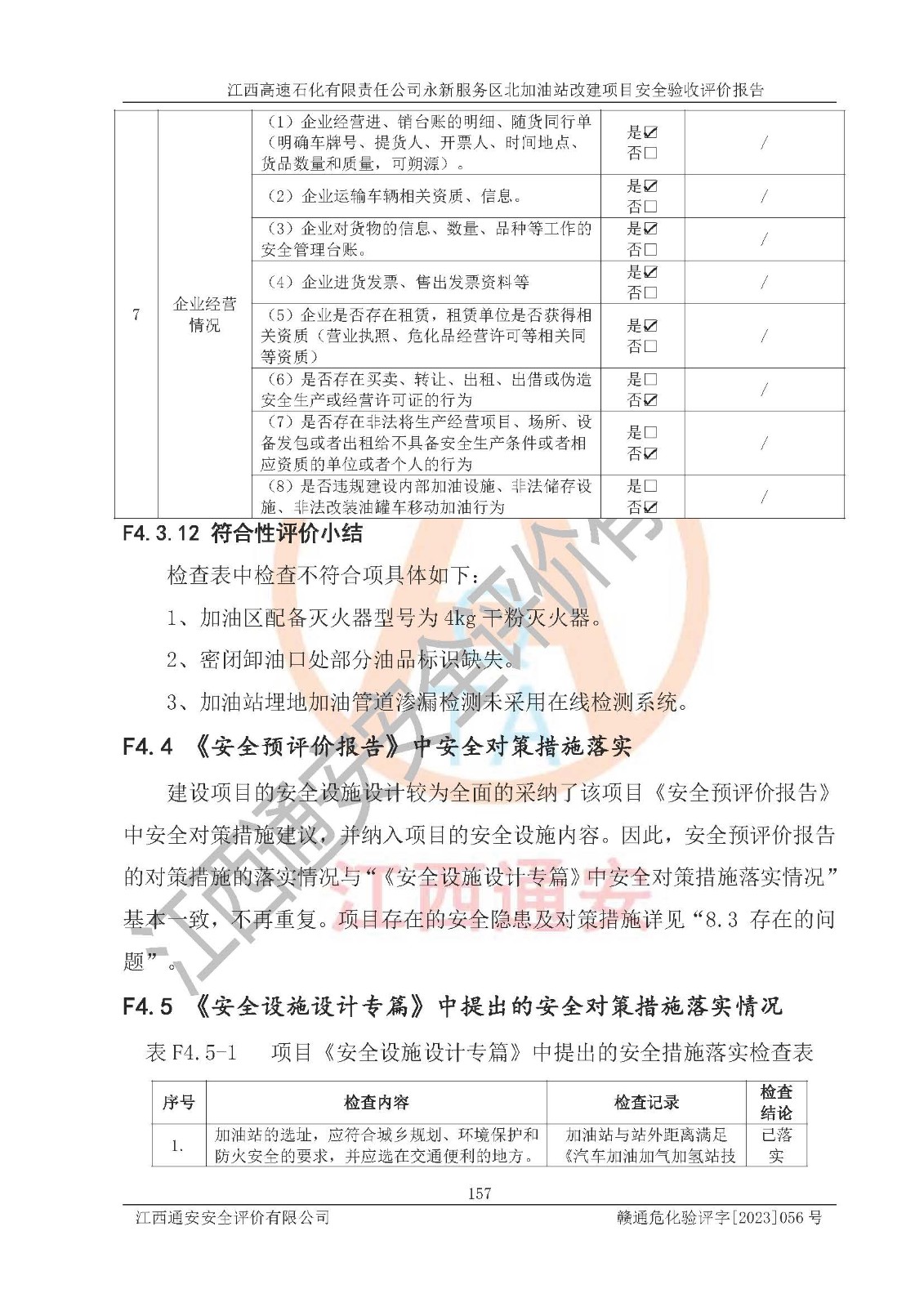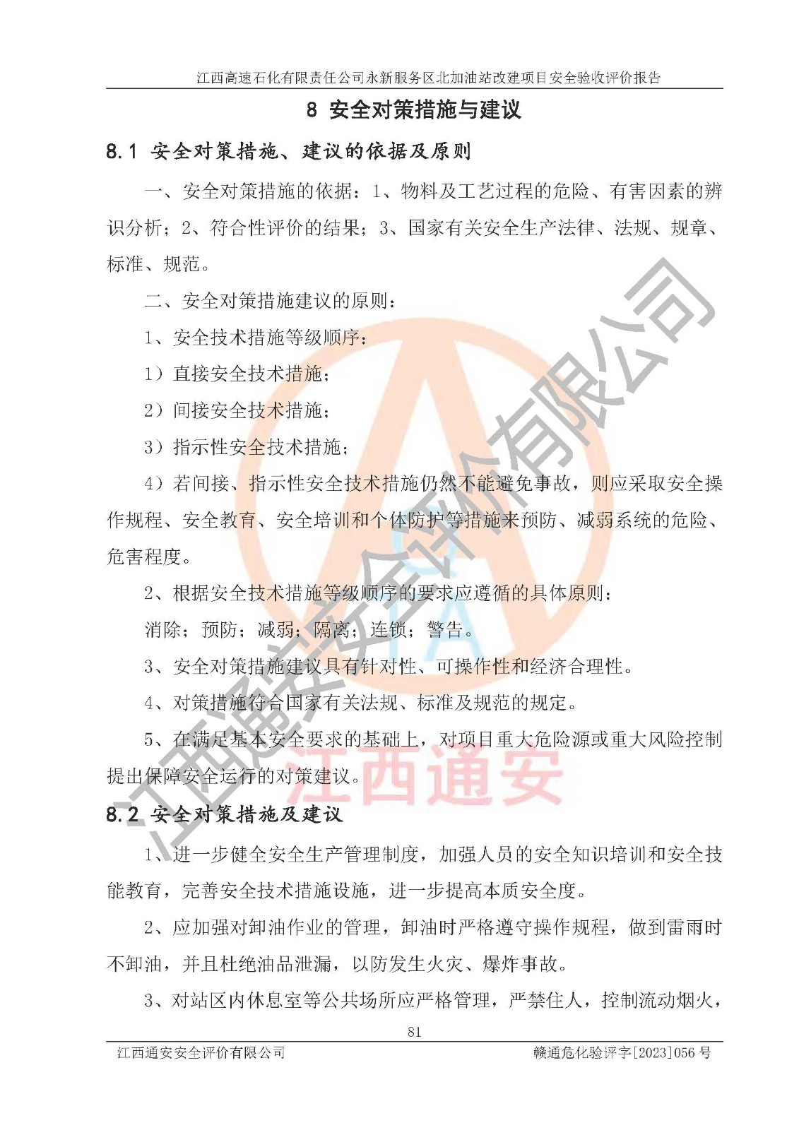 项目名称 | 江西高速石化有限责任公司永新服务区北加油站改建项目安全验收评价报告 | ||||