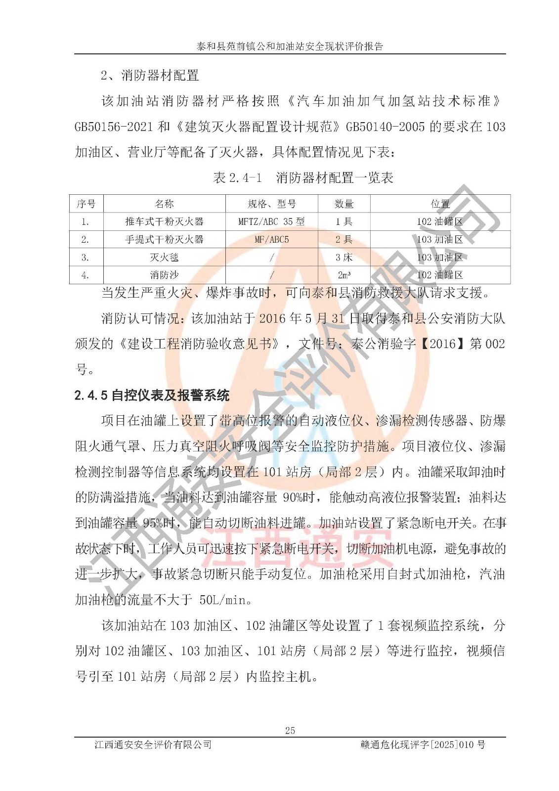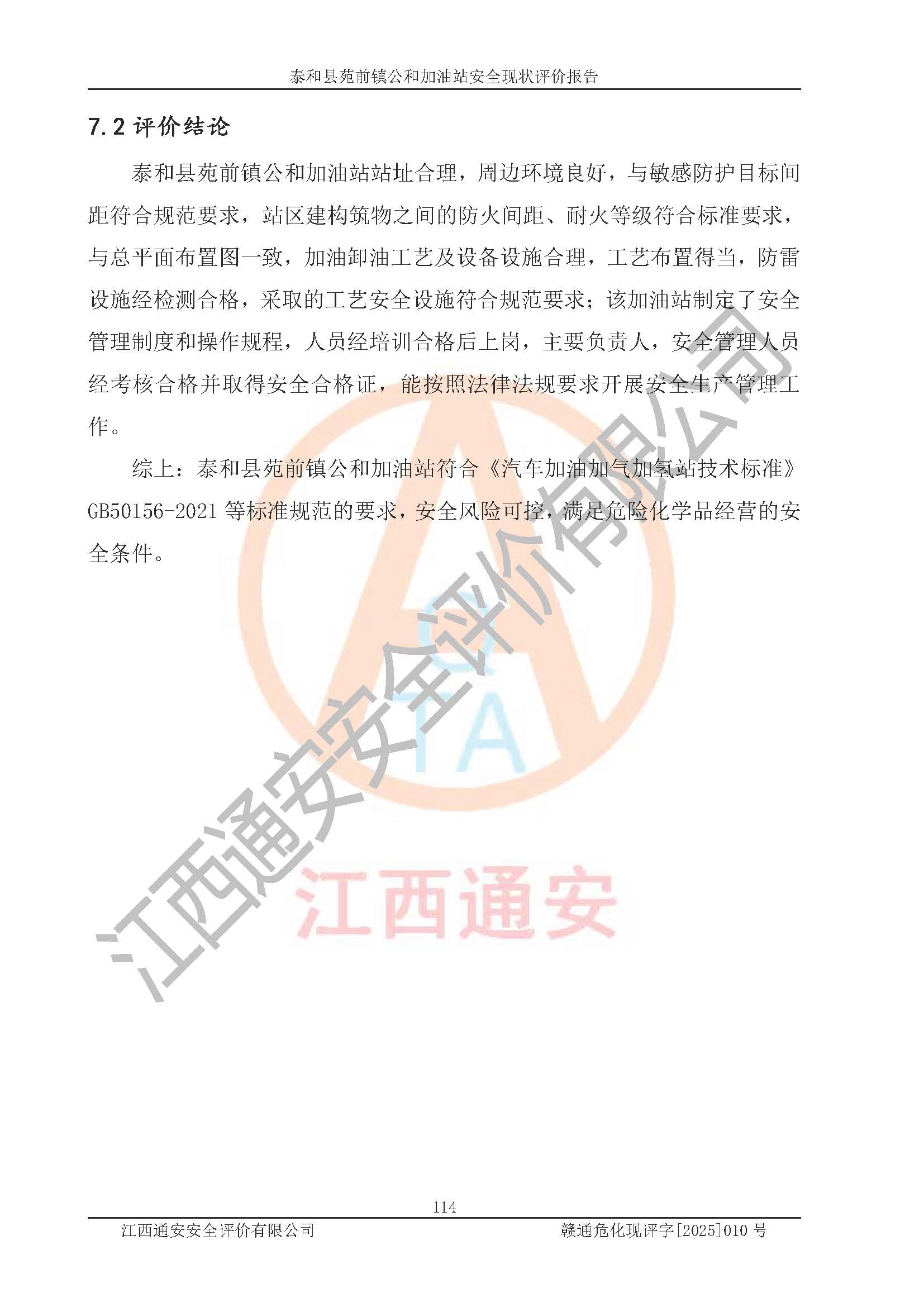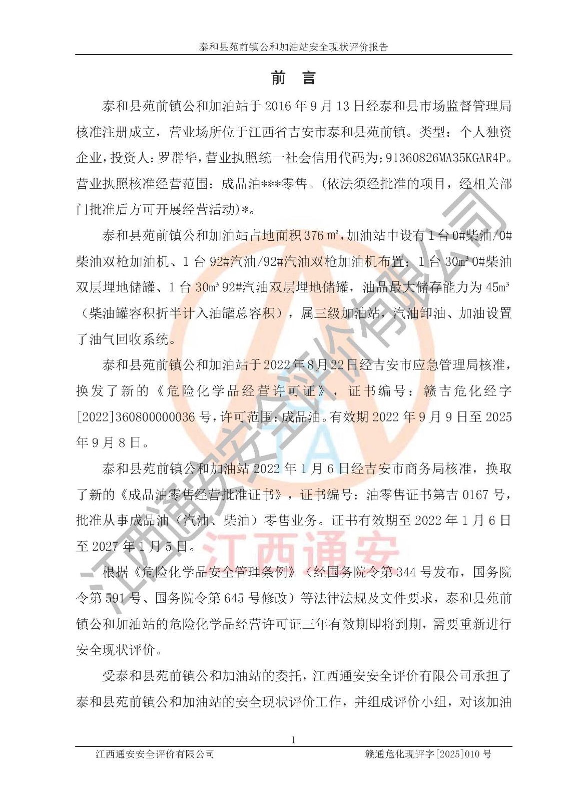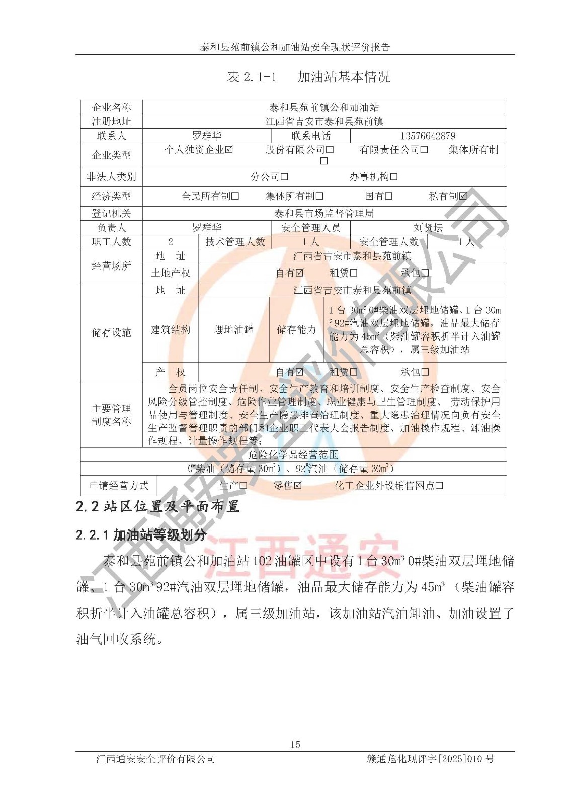 项目名称 | 泰和县苑前镇公和加油站安全现状评价报告 | ||||