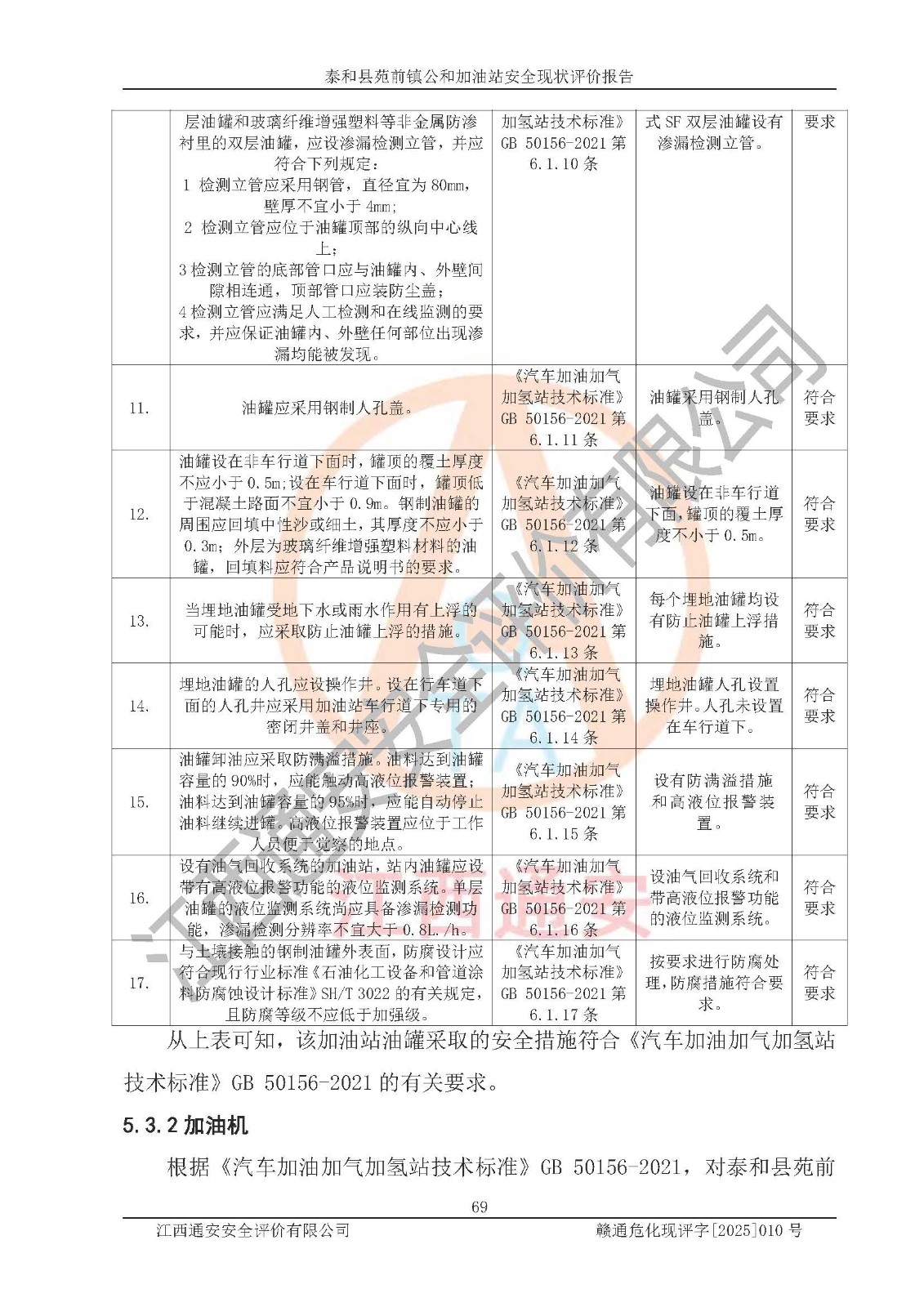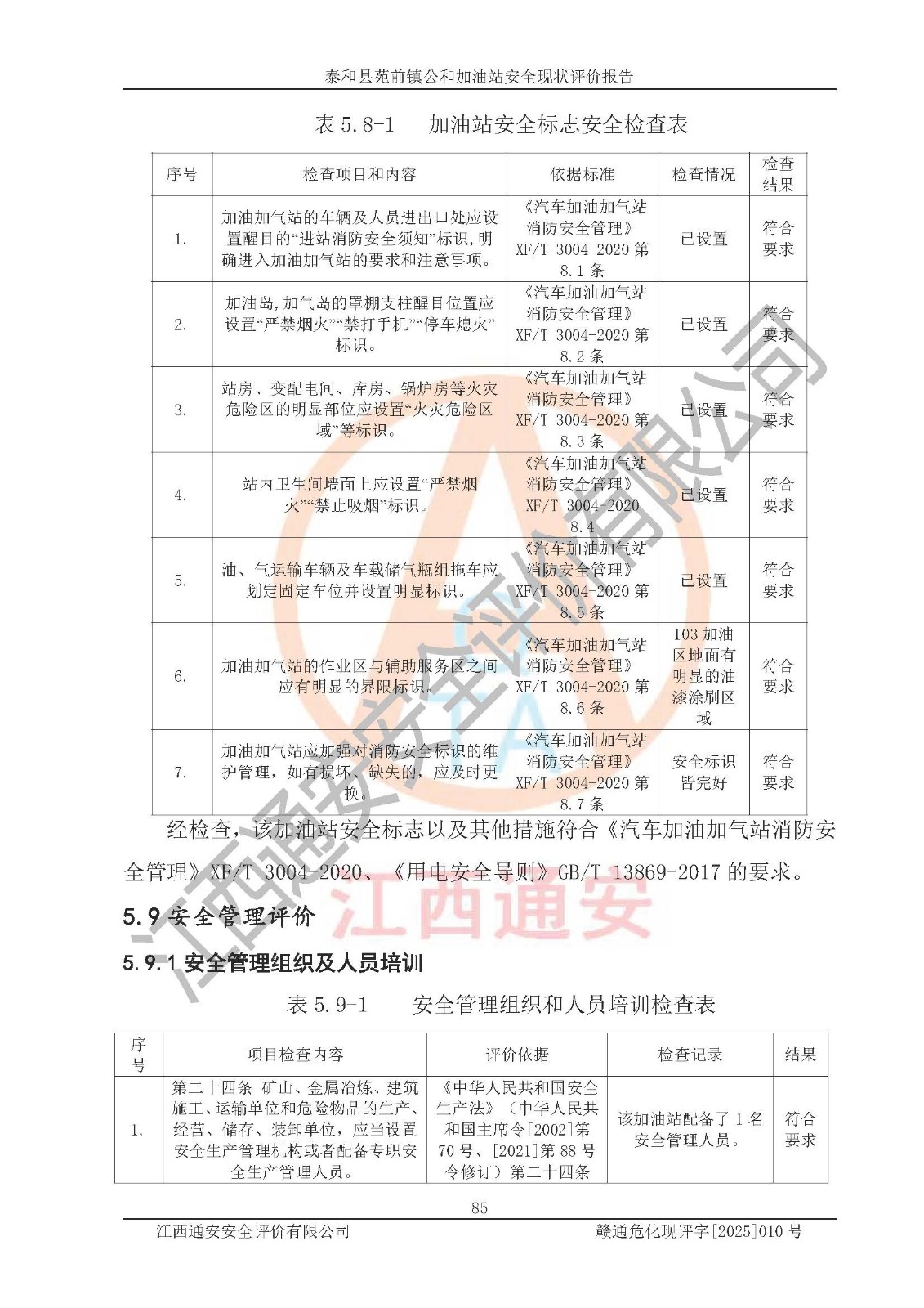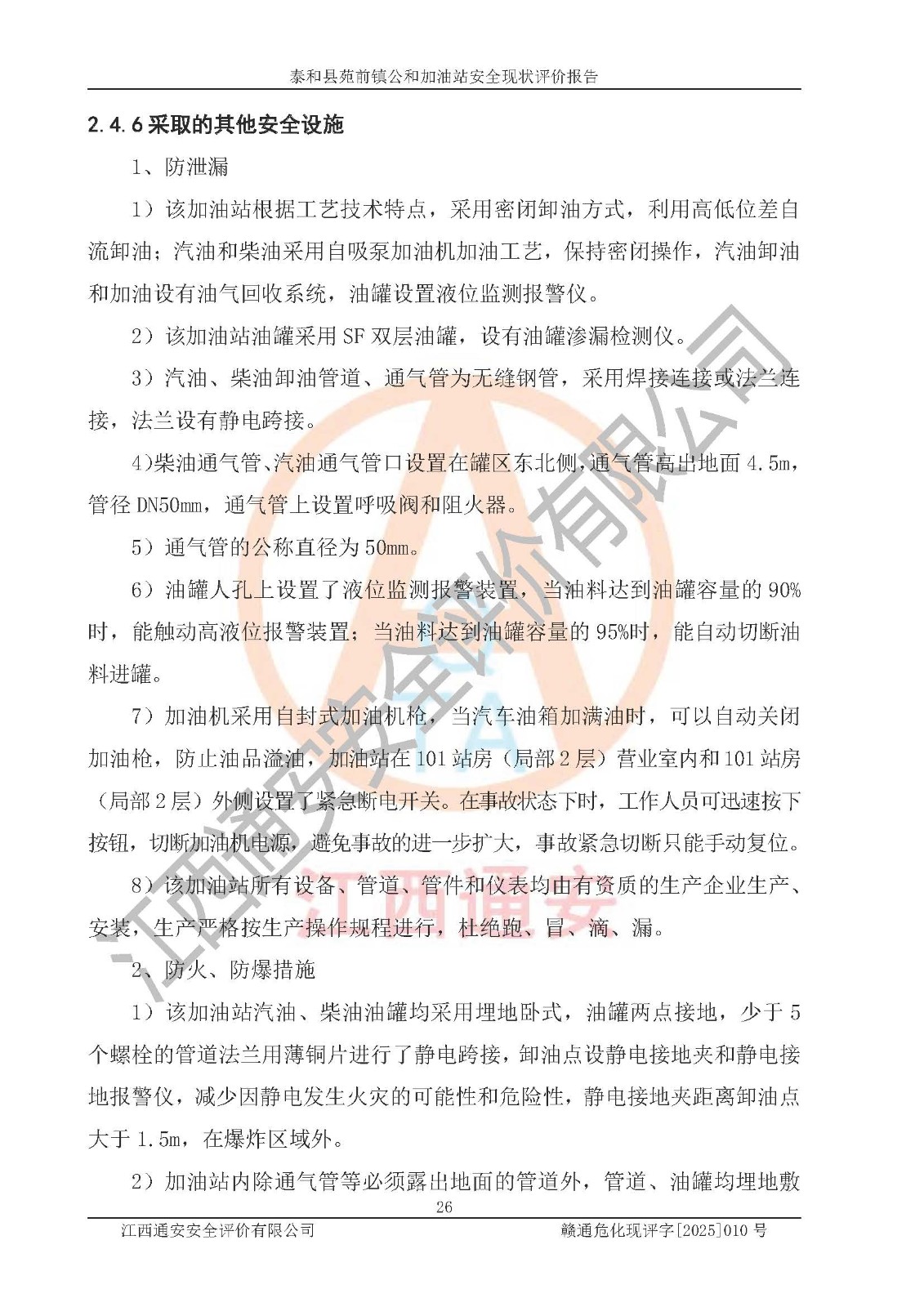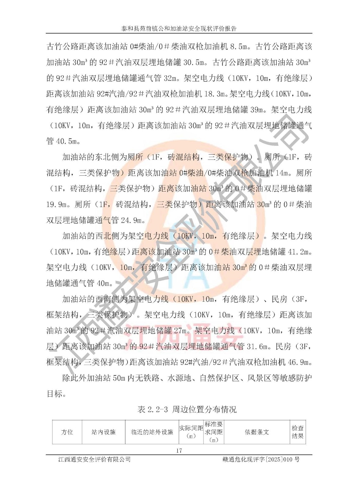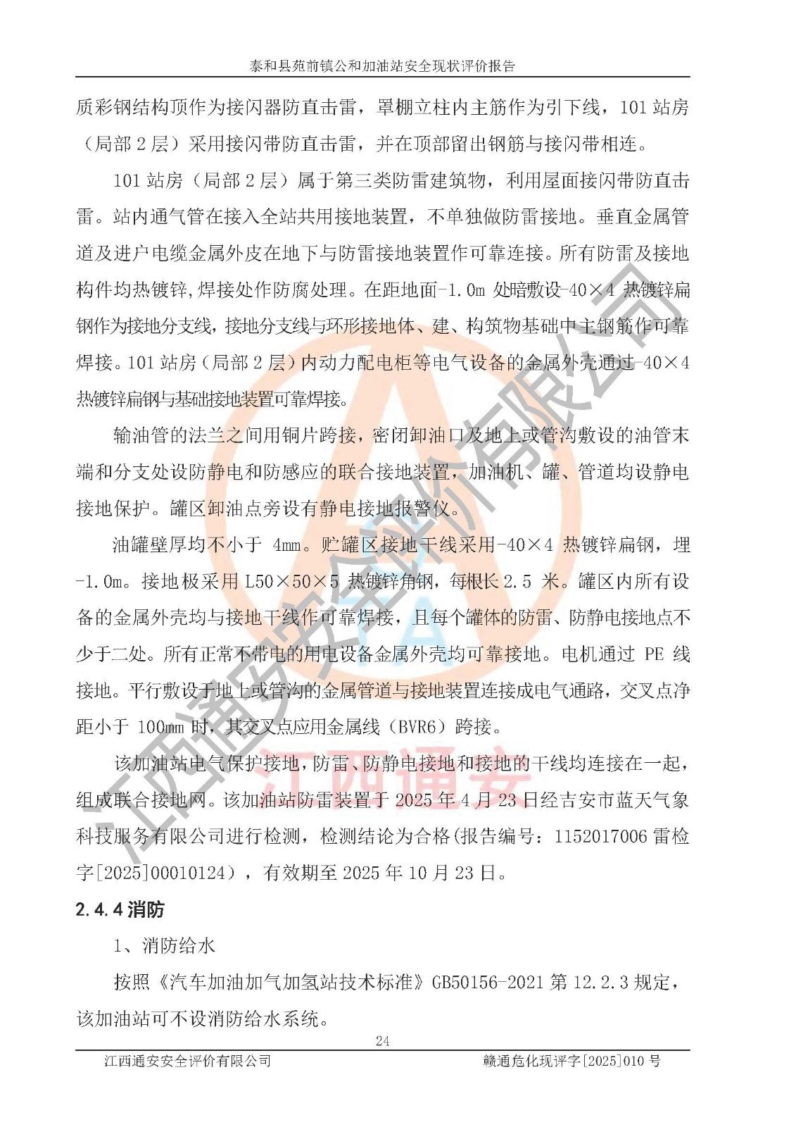 项目名称 | 泰和县苑前镇公和加油站安全现状评价报告 | ||||
