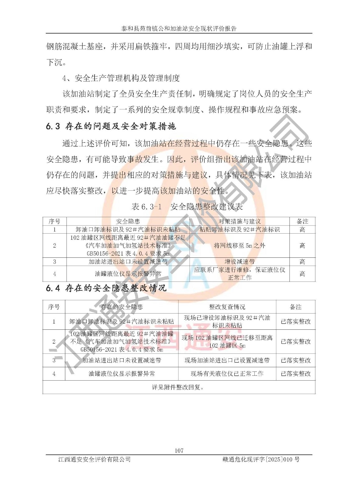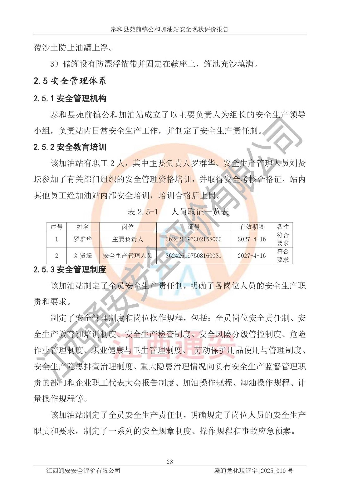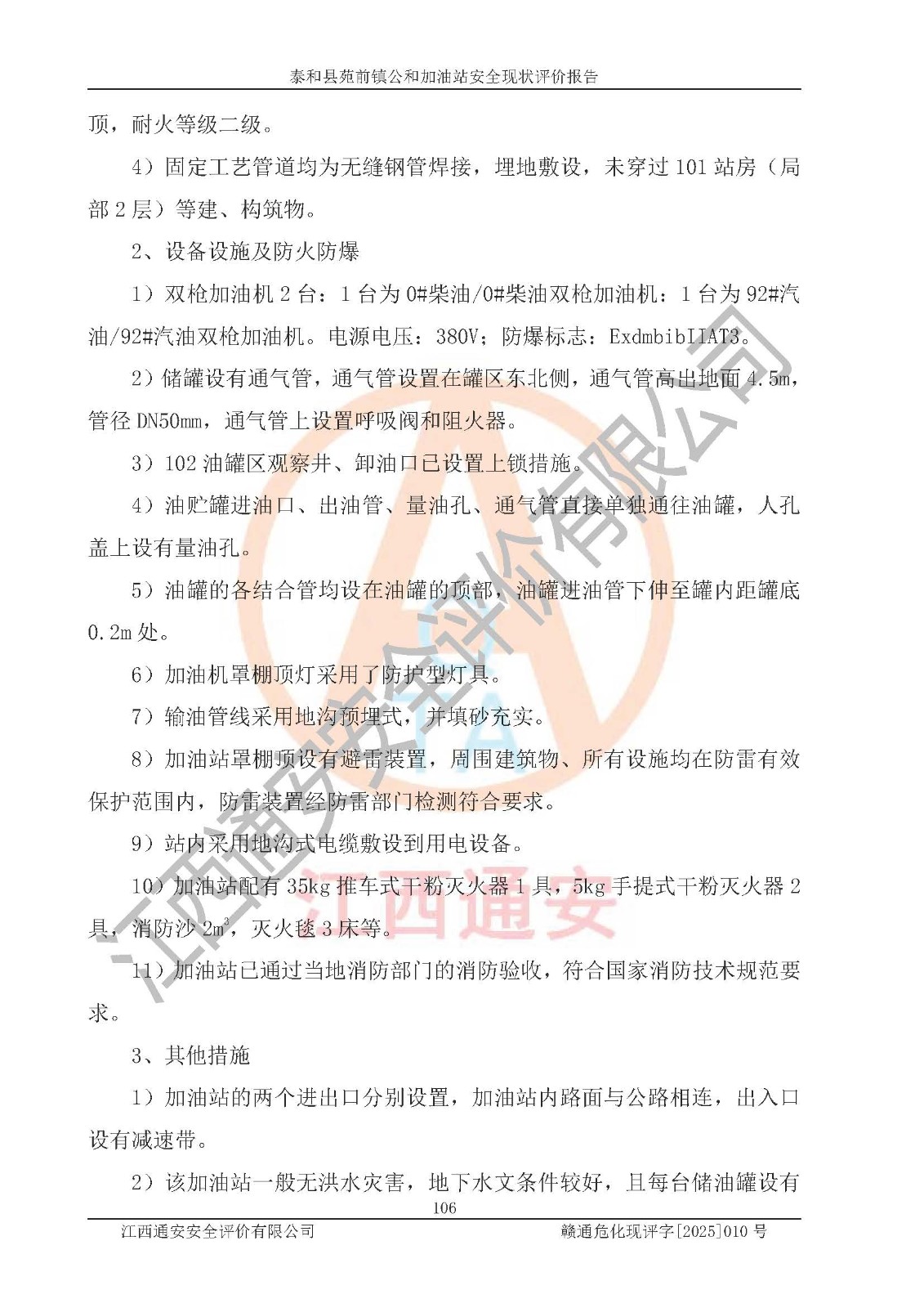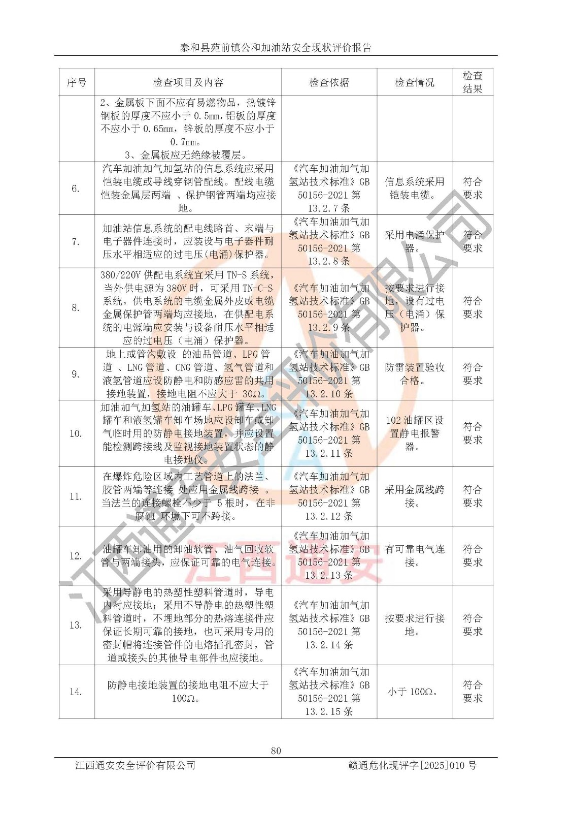 项目名称 | 泰和县苑前镇公和加油站安全现状评价报告 | ||||