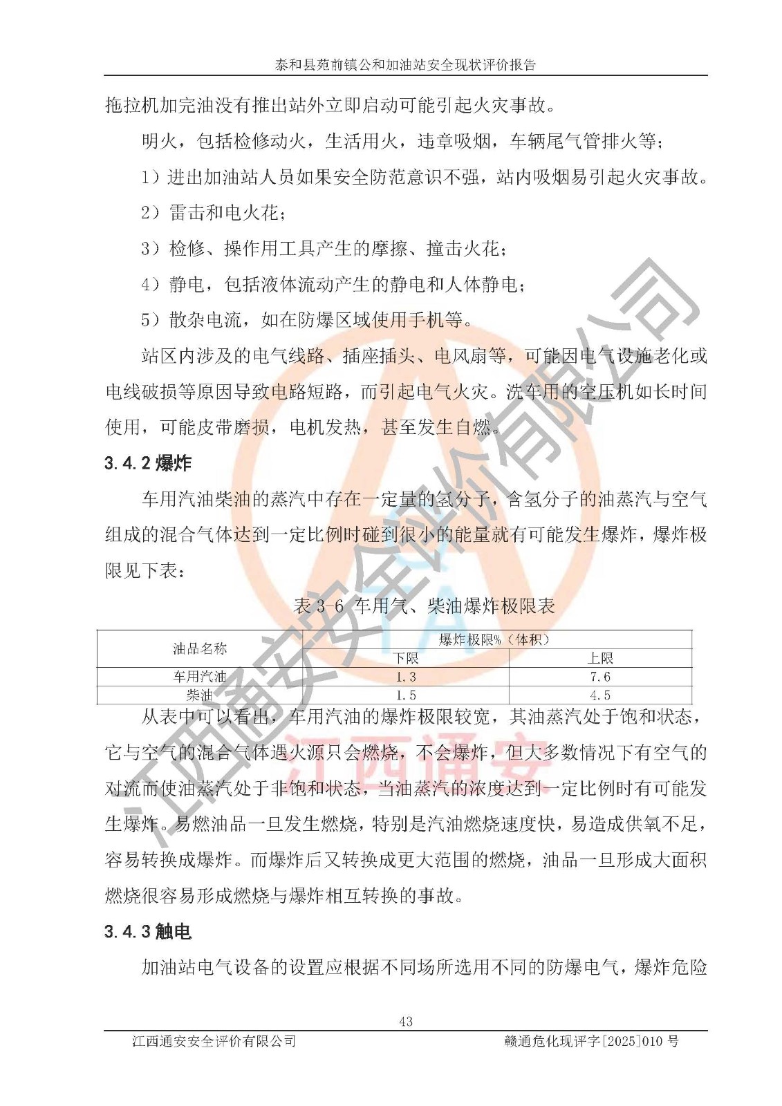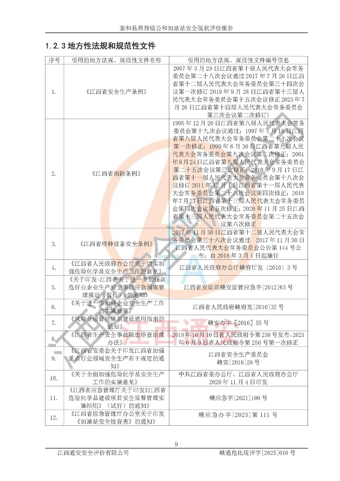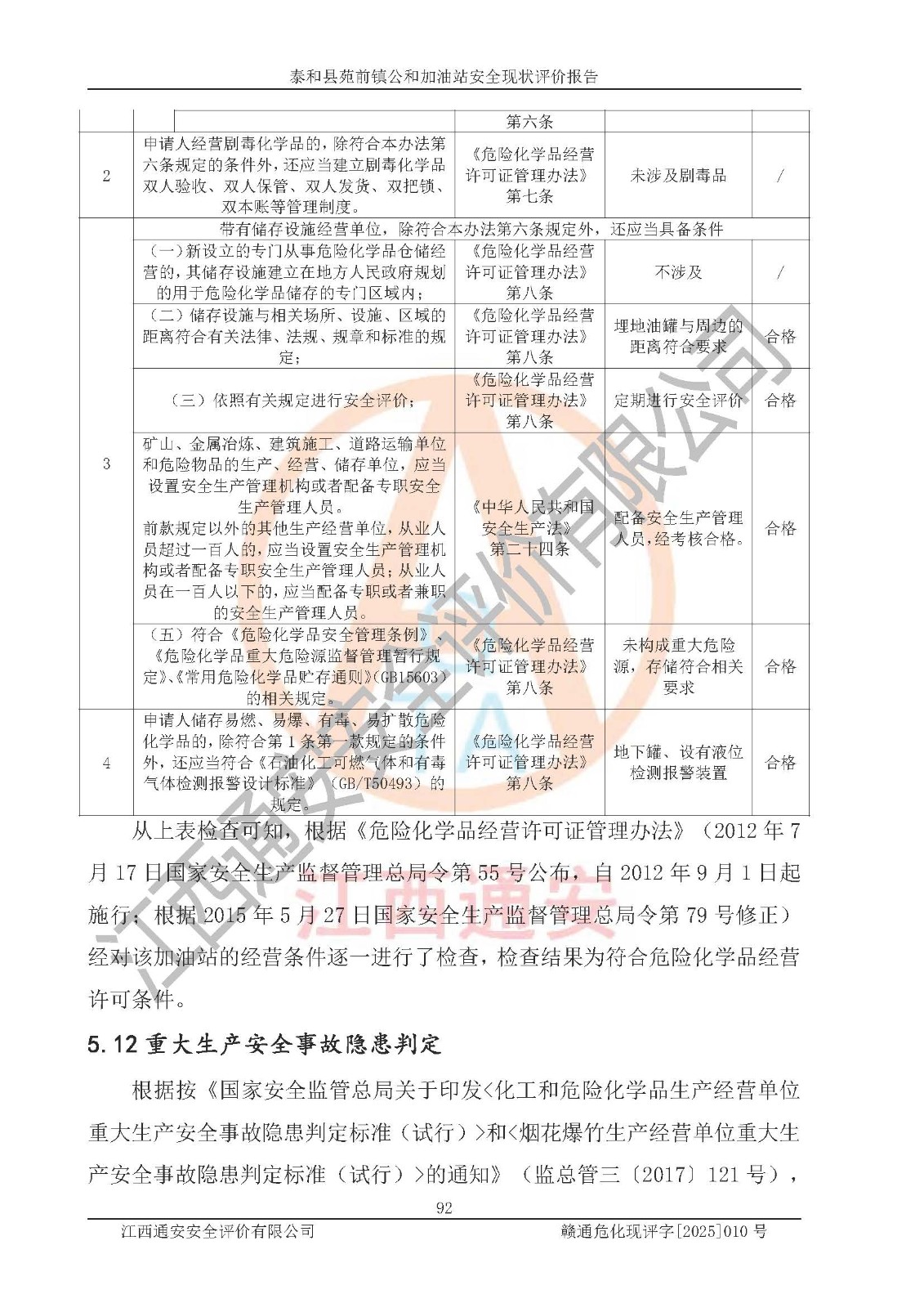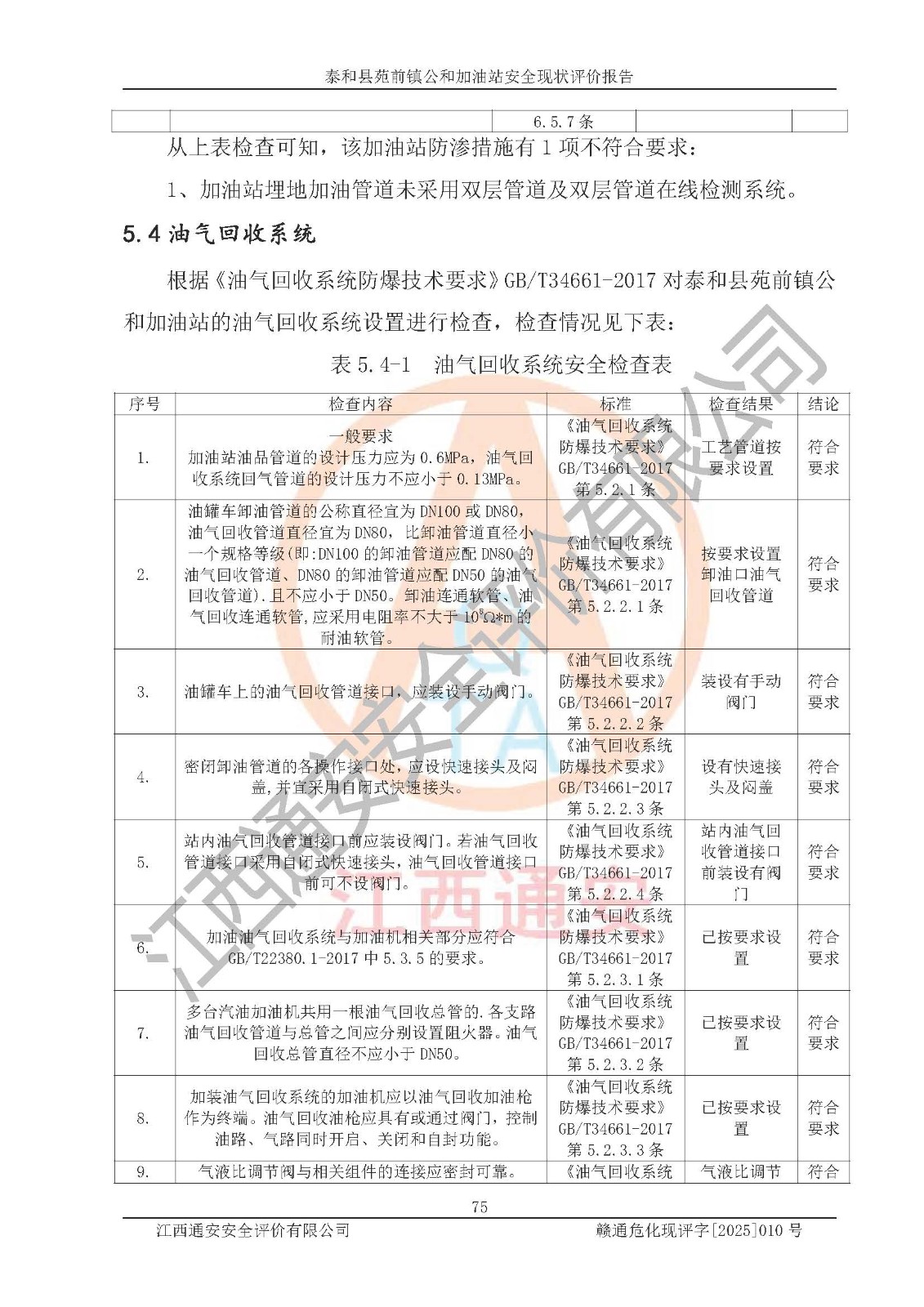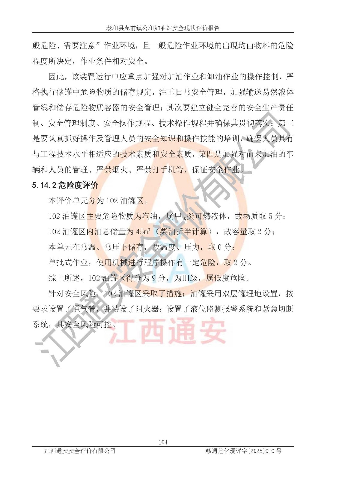 项目名称 | 泰和县苑前镇公和加油站安全现状评价报告 | ||||