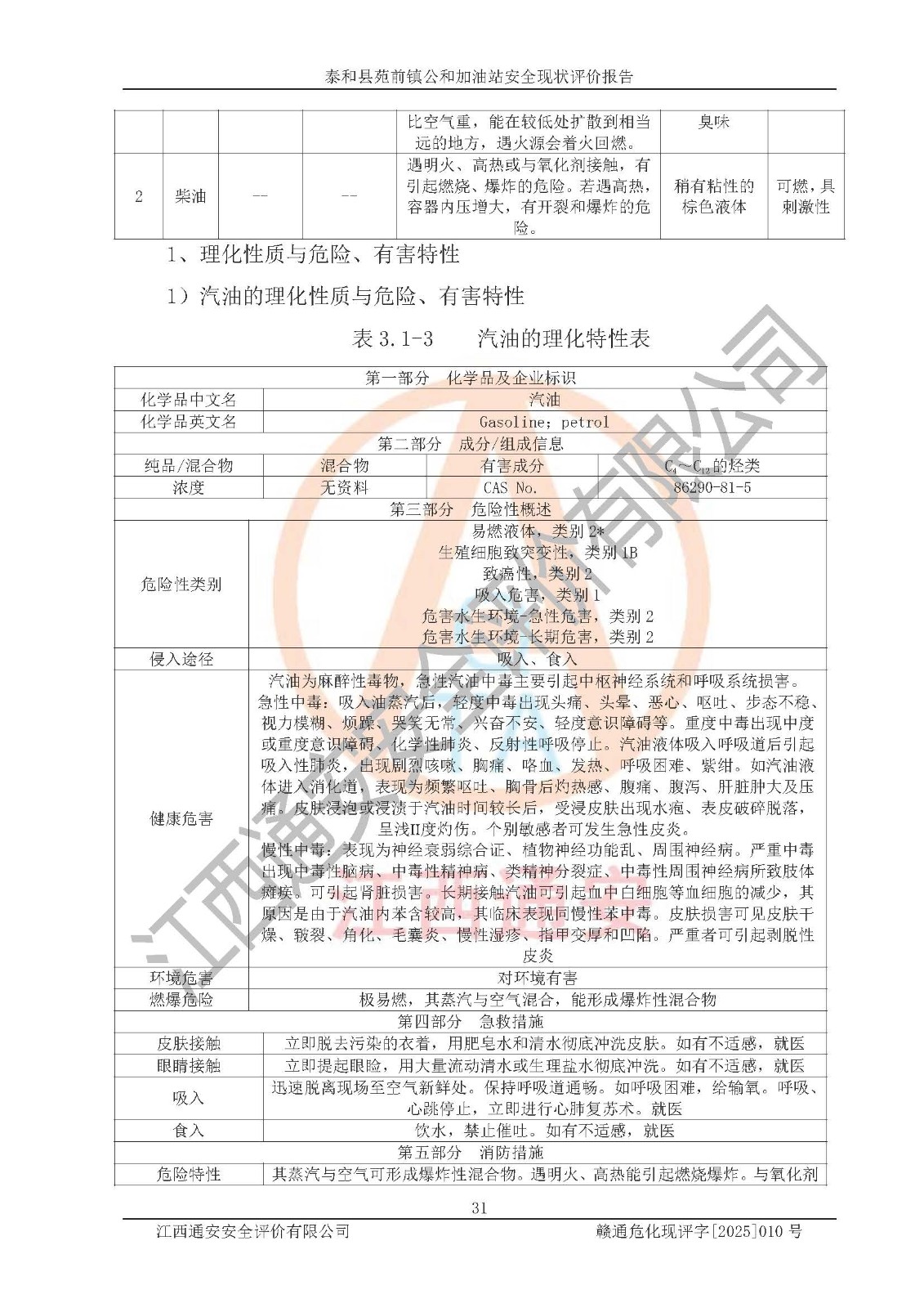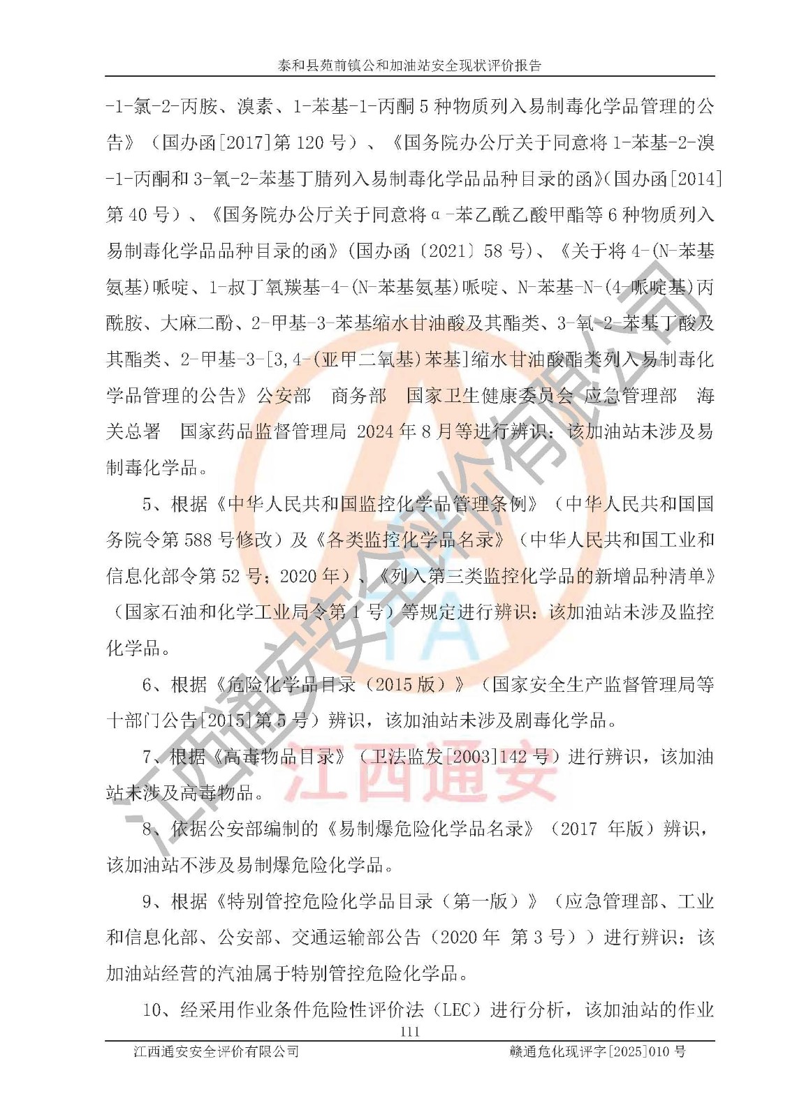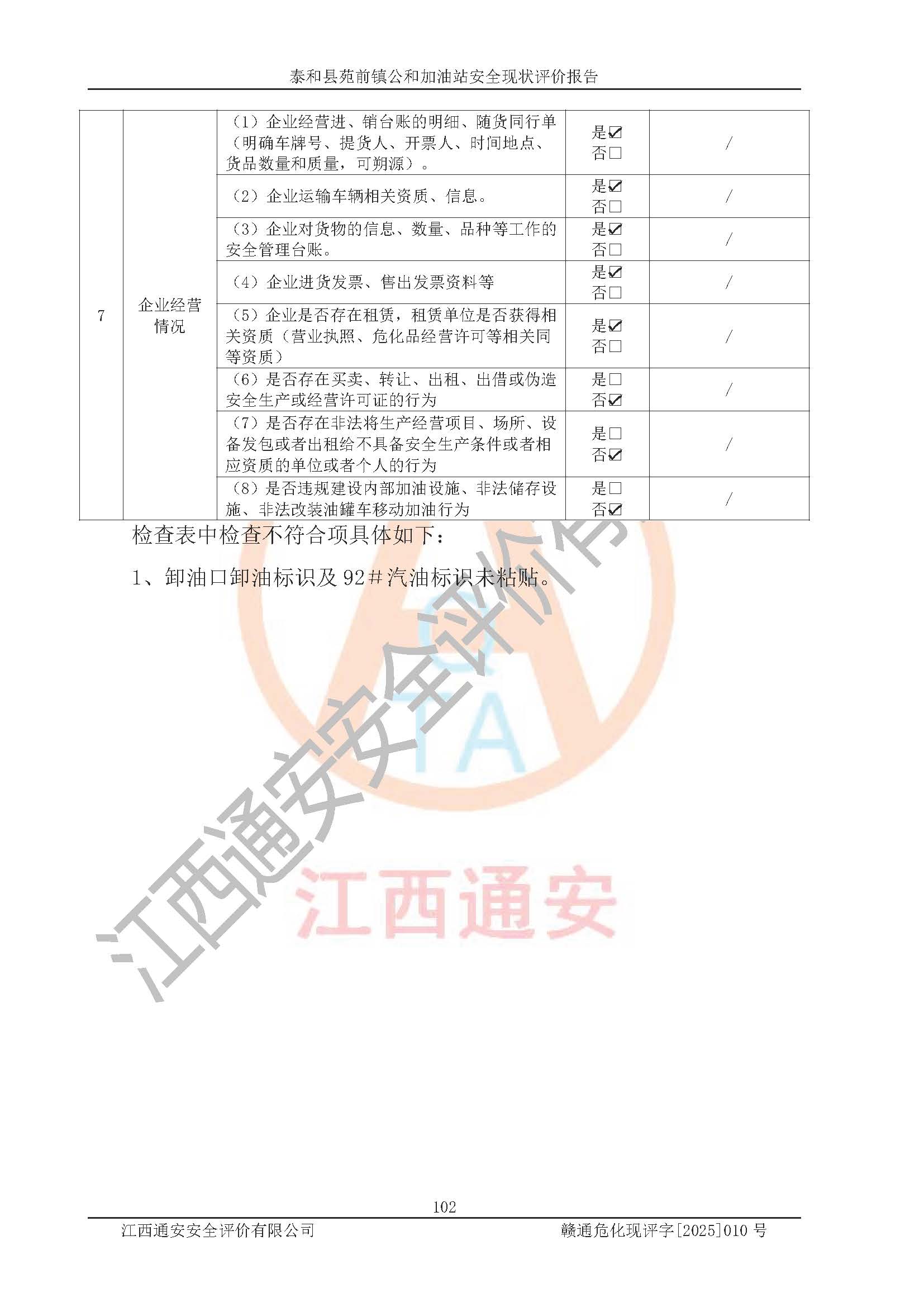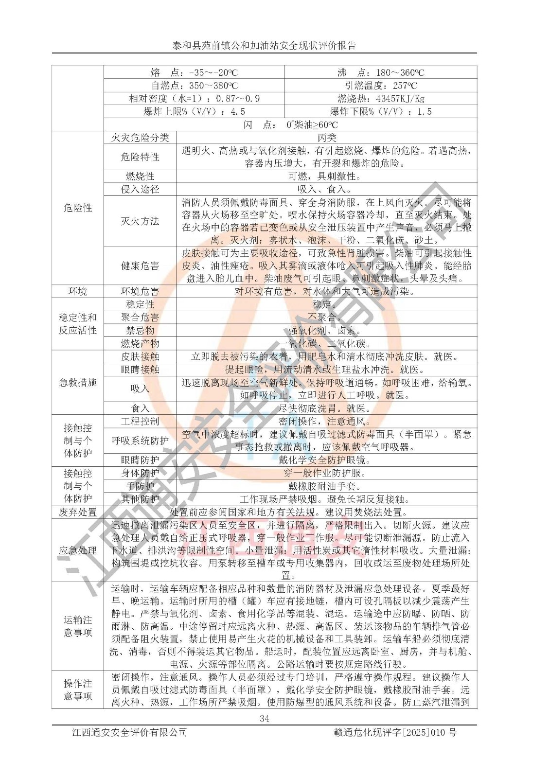 项目名称 | 泰和县苑前镇公和加油站安全现状评价报告 | ||||