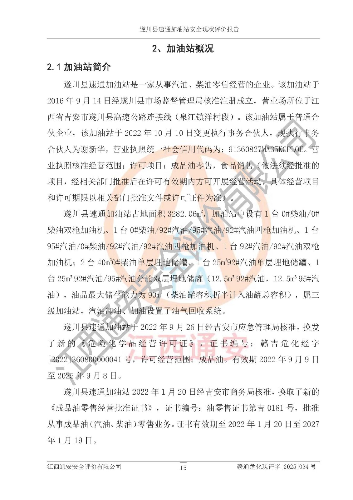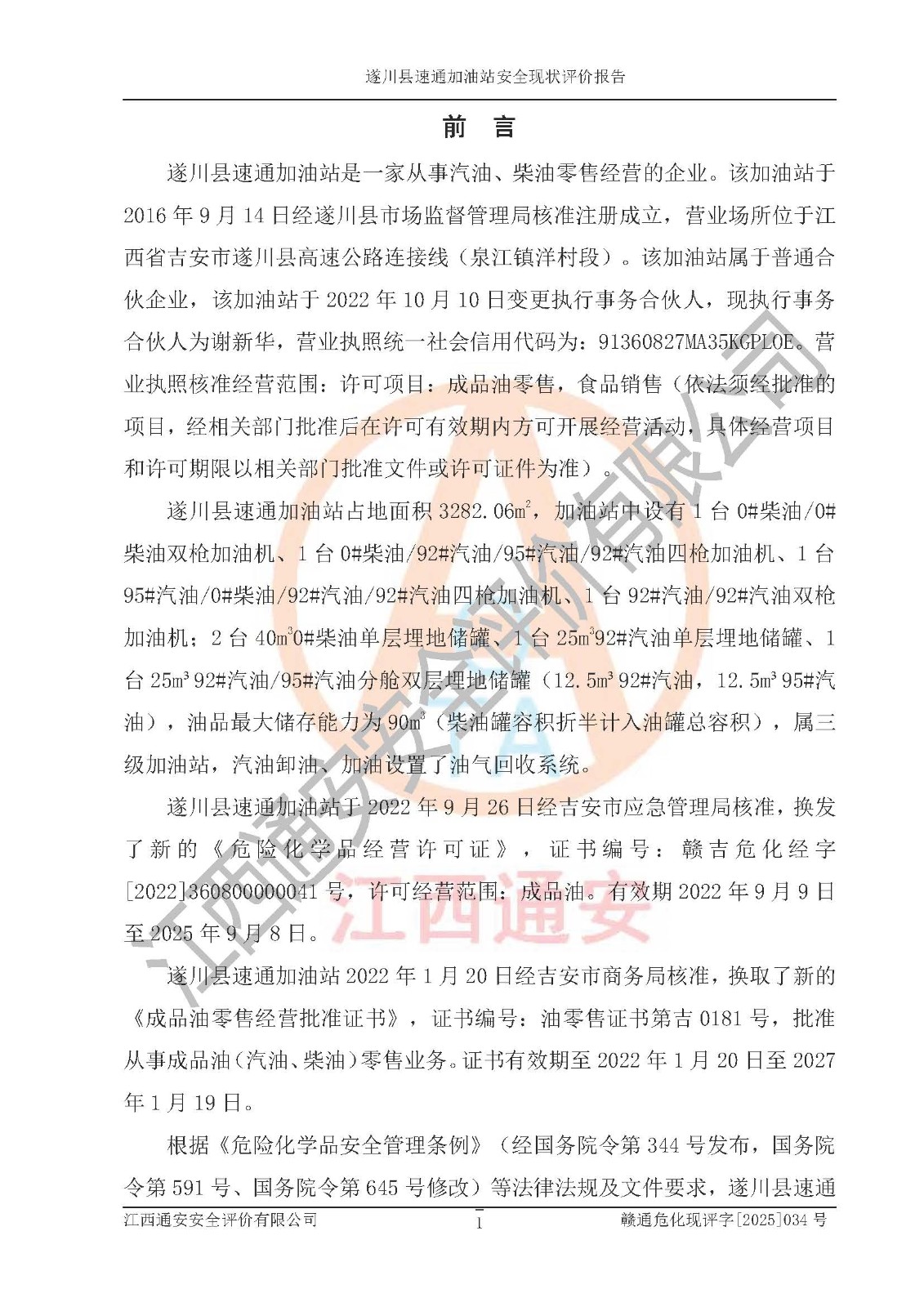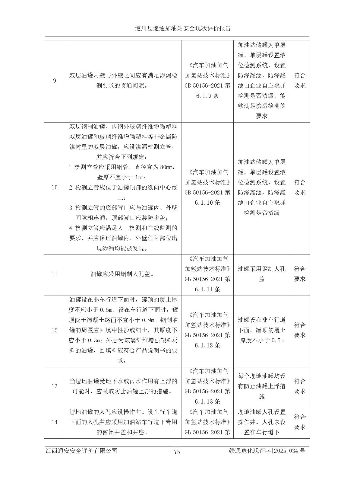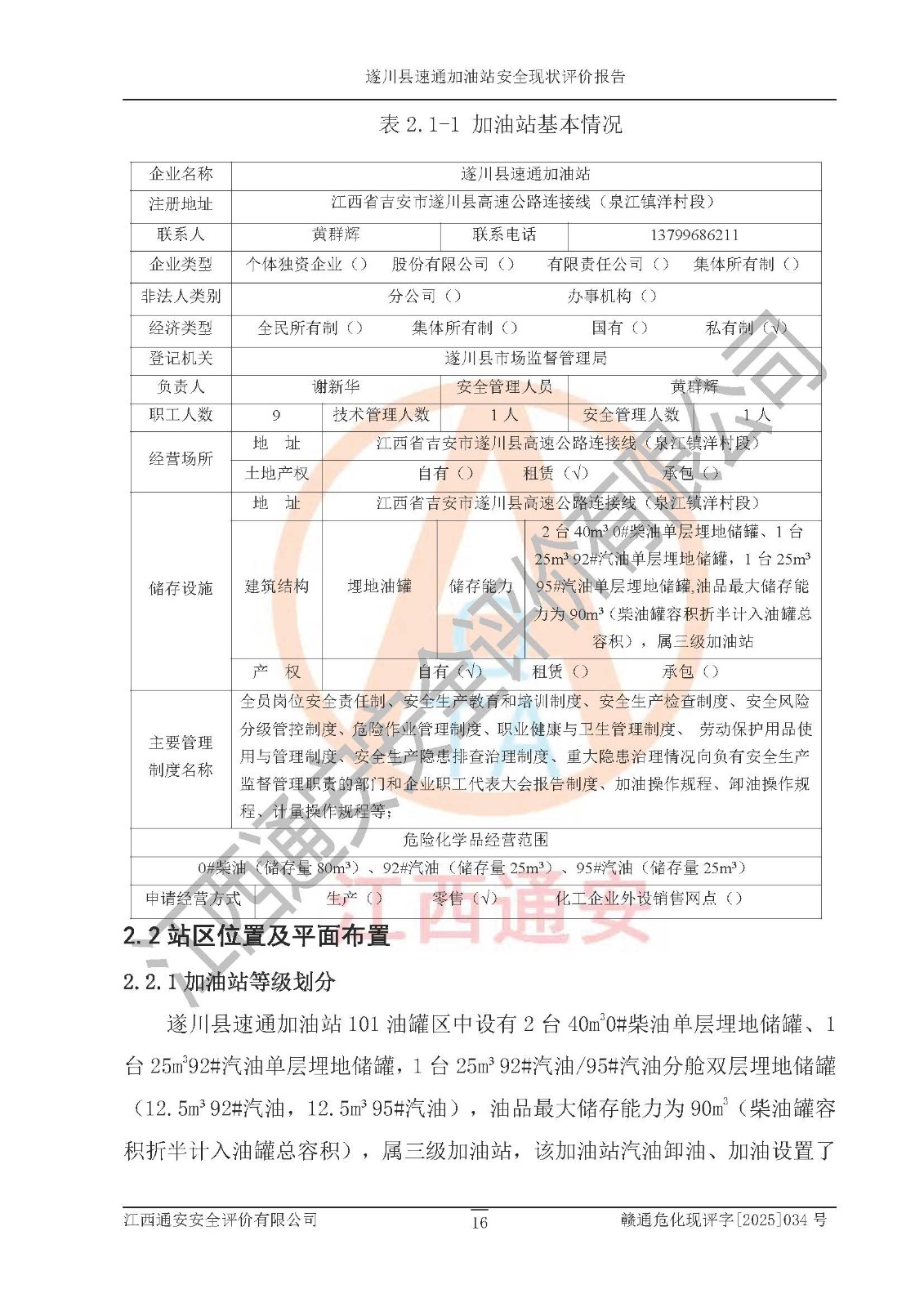 项目名称 | 遂川县速通加油站安全现状评价报告 | ||||