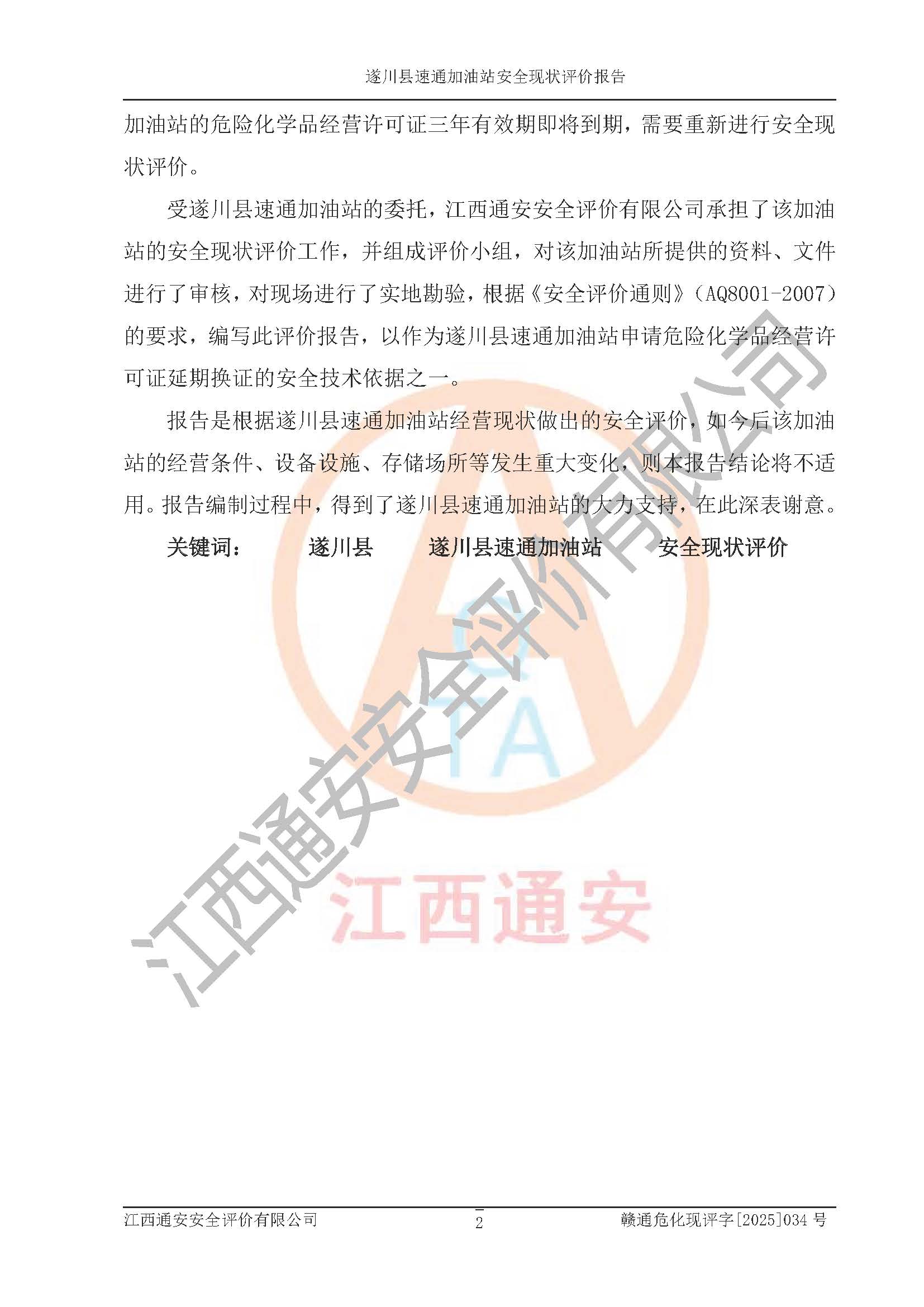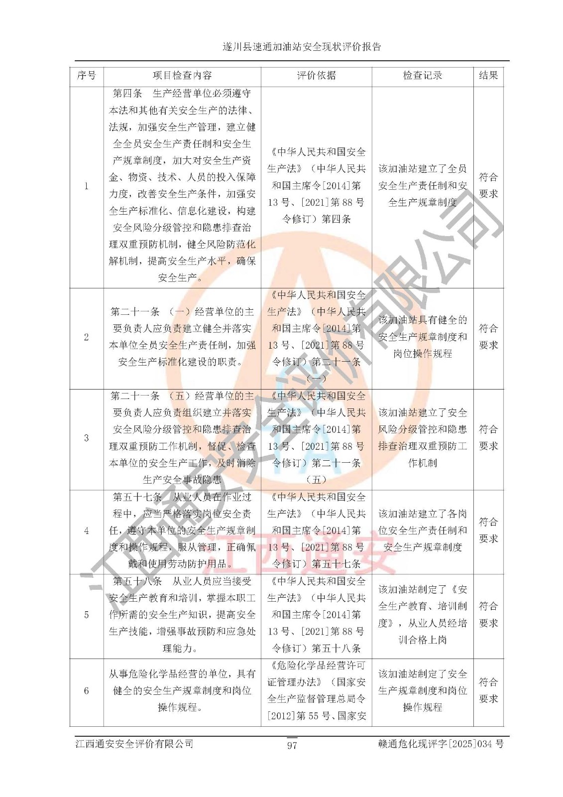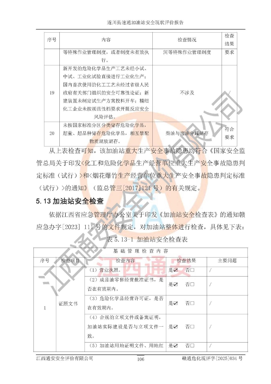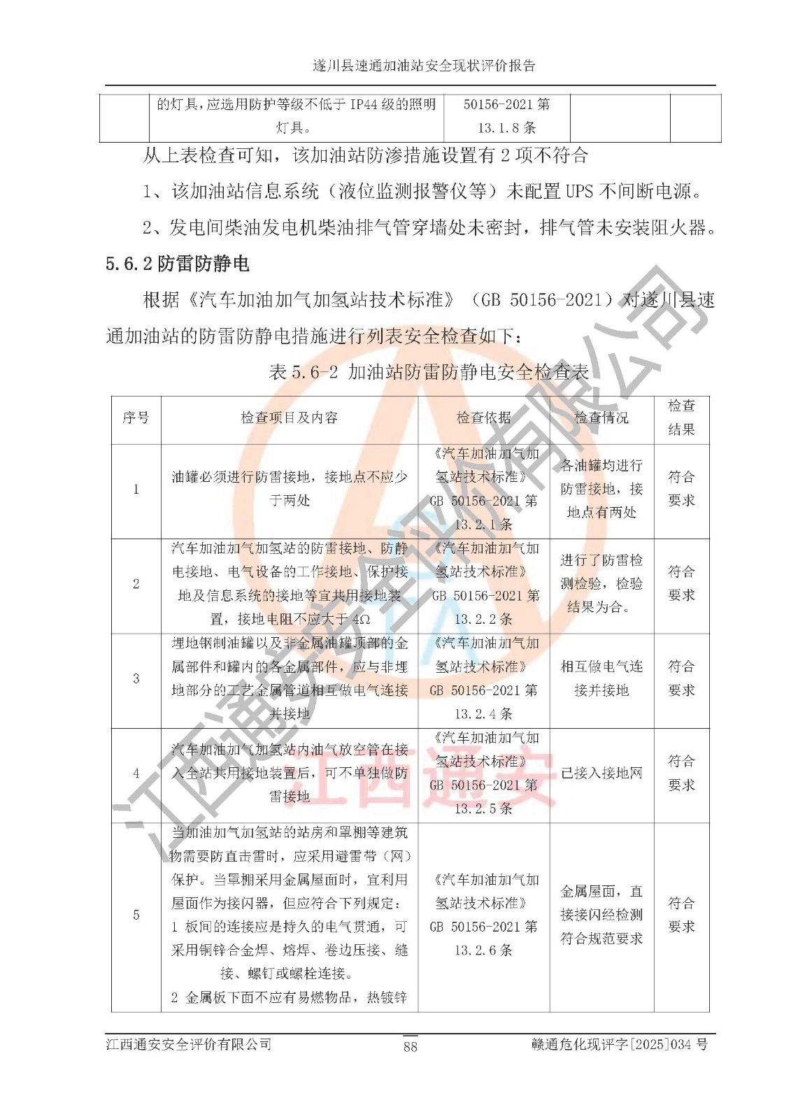 项目名称 | 遂川县速通加油站安全现状评价报告 | ||||