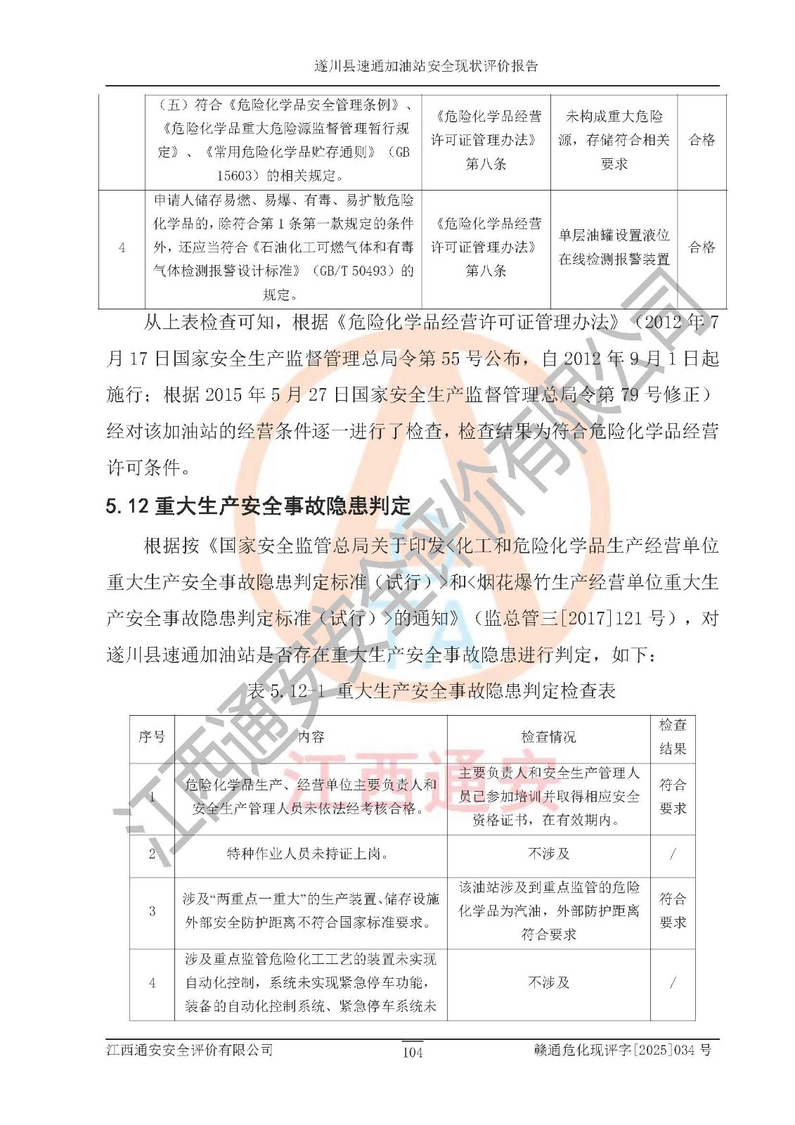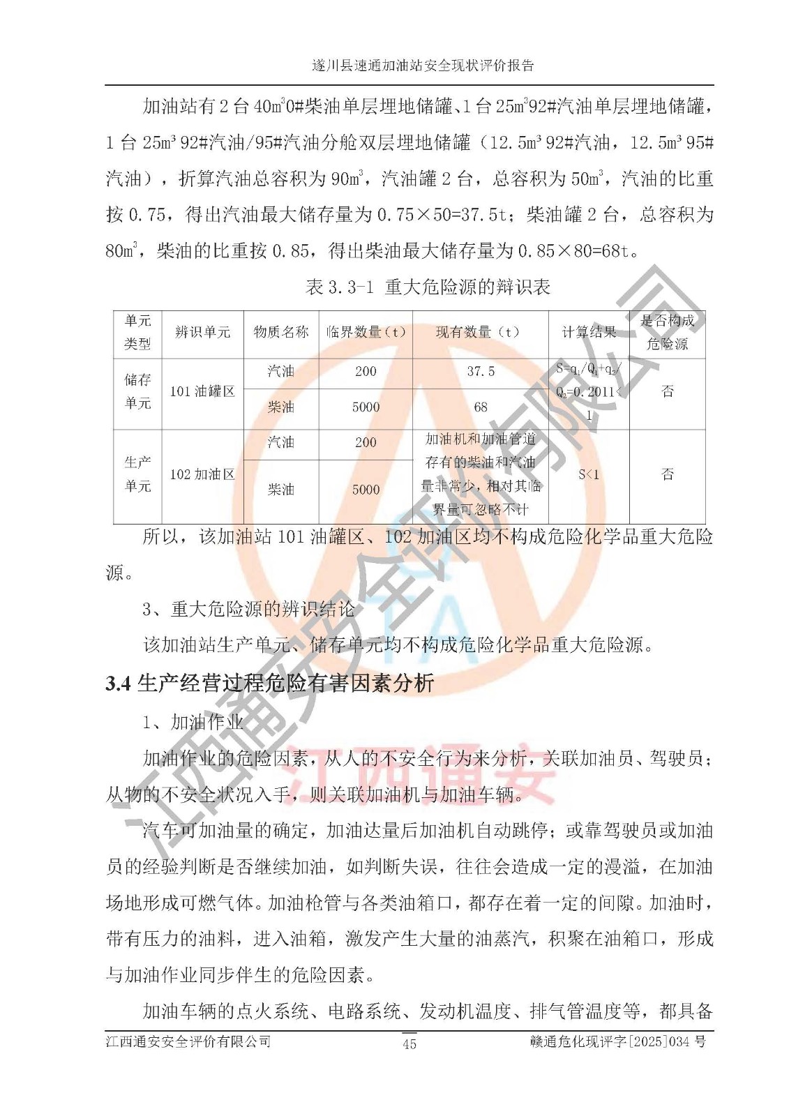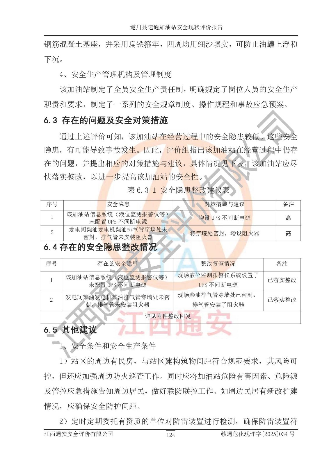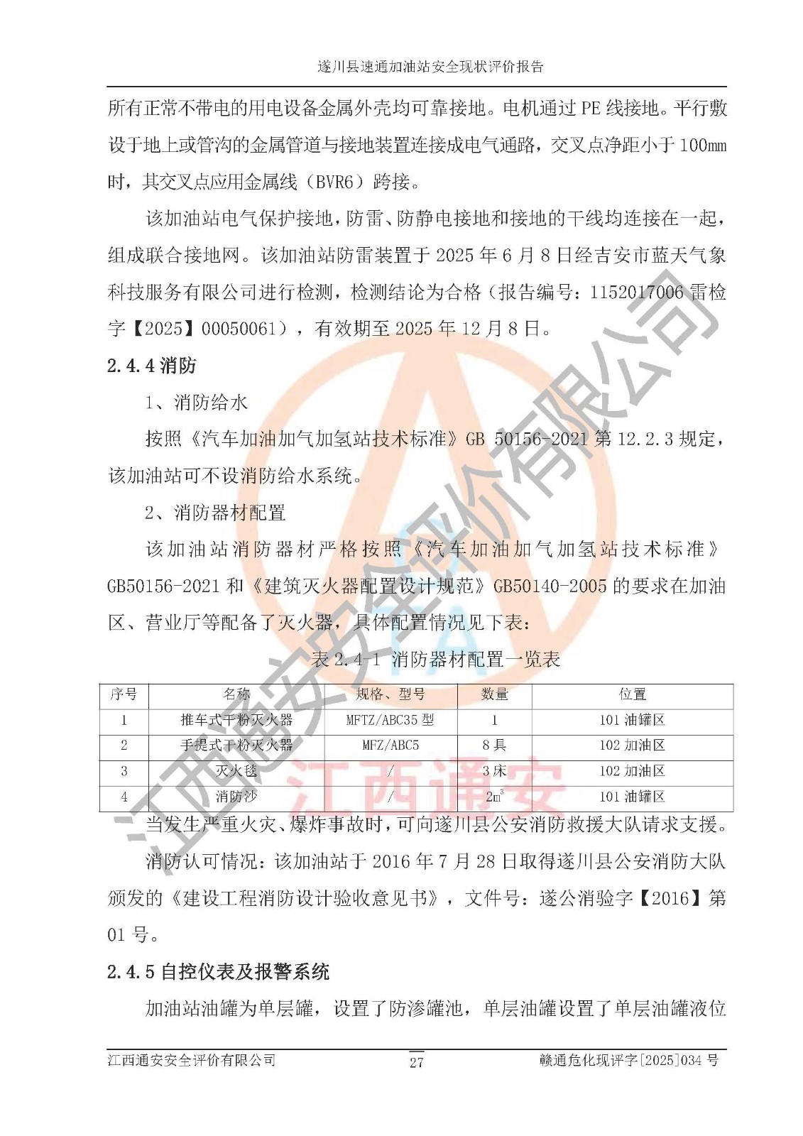 项目名称 | 遂川县速通加油站安全现状评价报告 | ||||