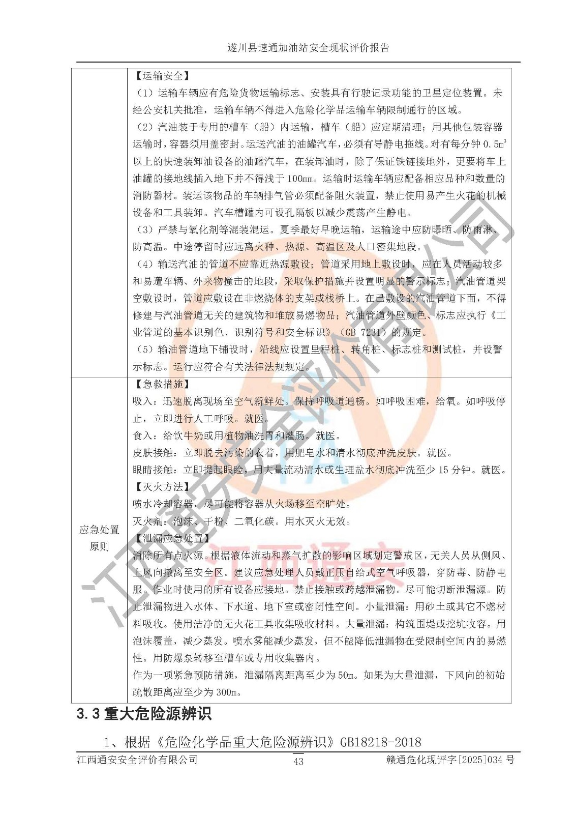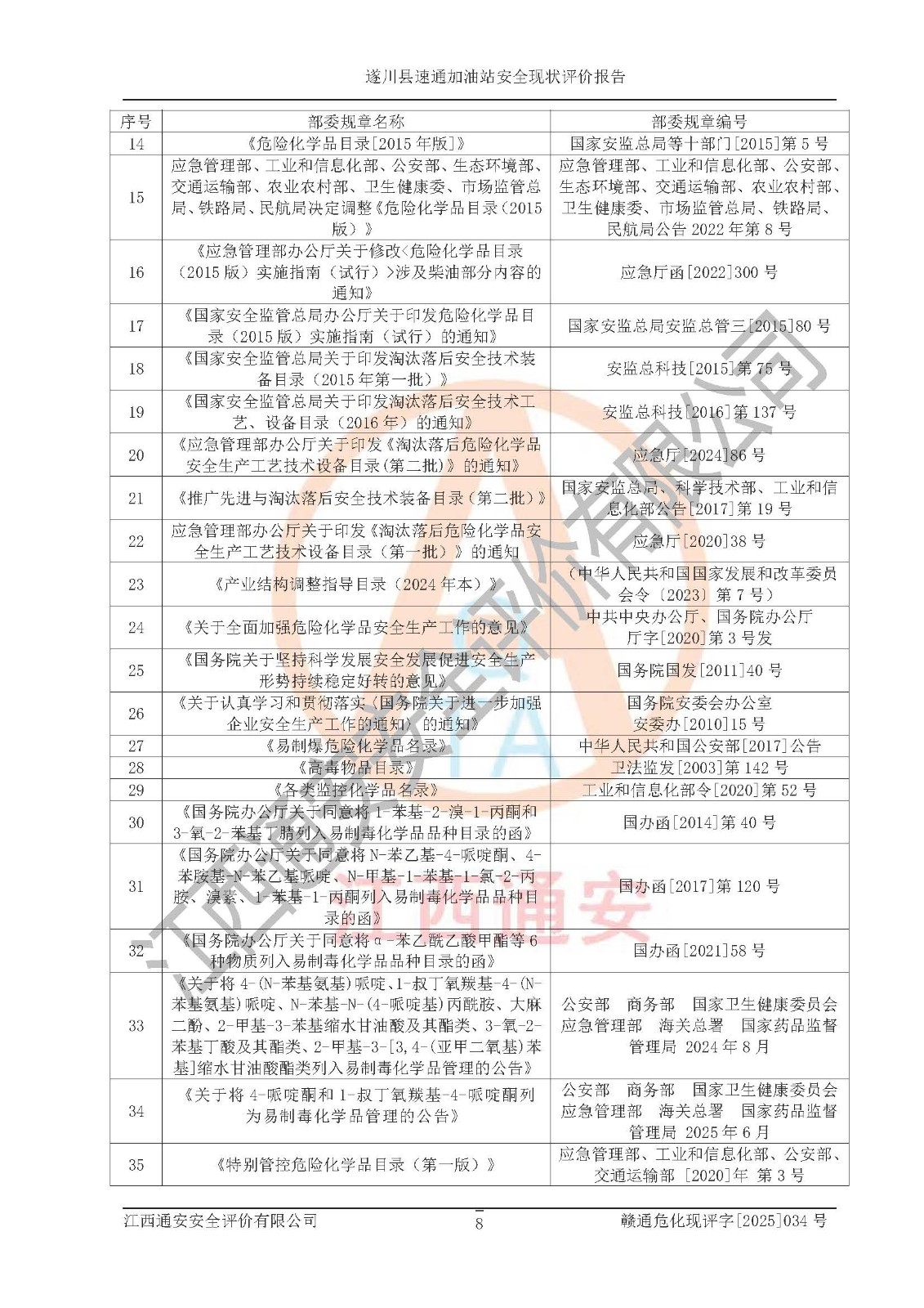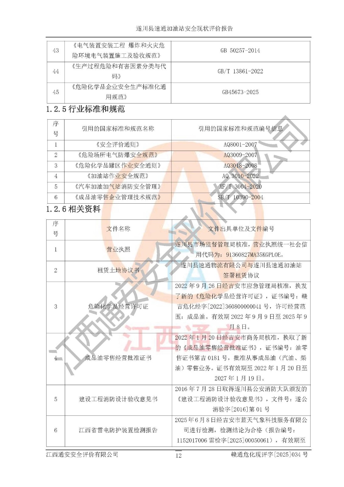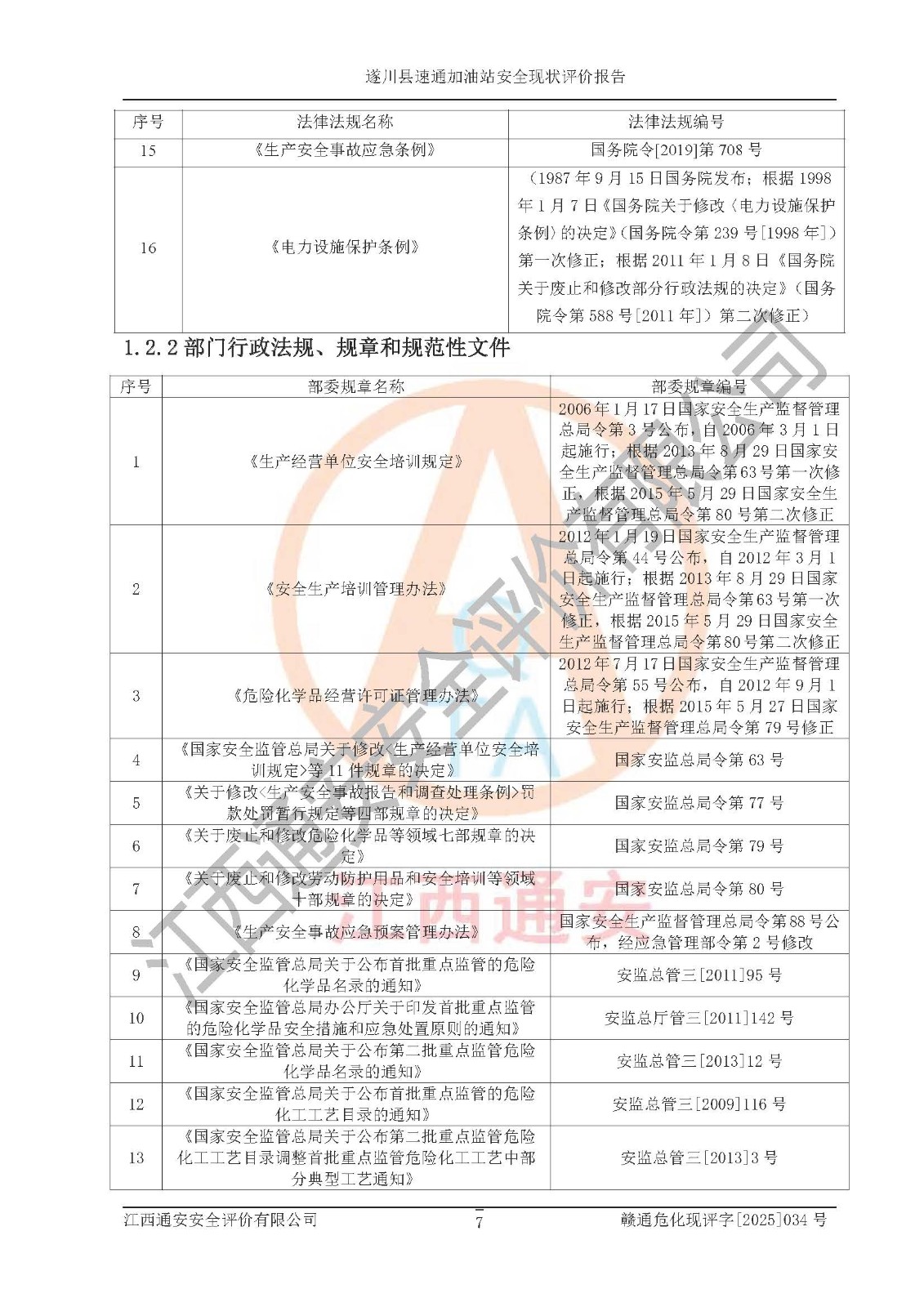 项目名称 | 遂川县速通加油站安全现状评价报告 | ||||