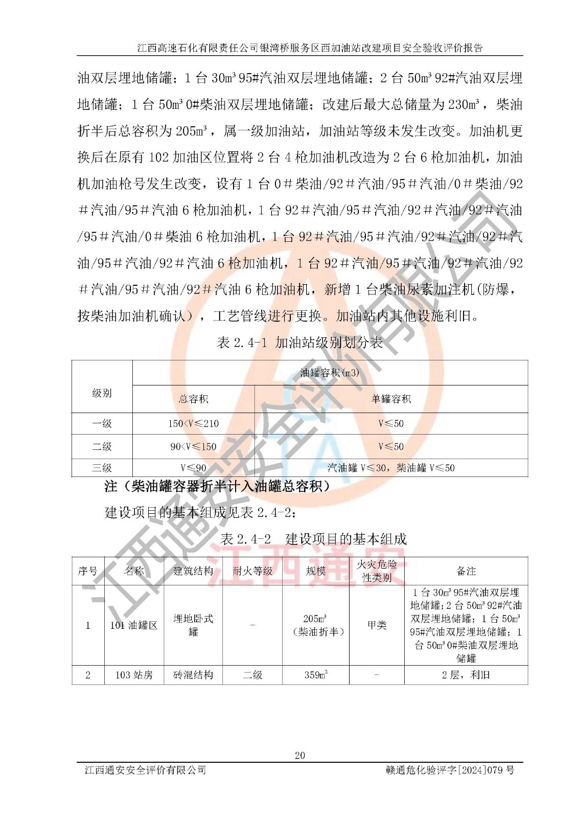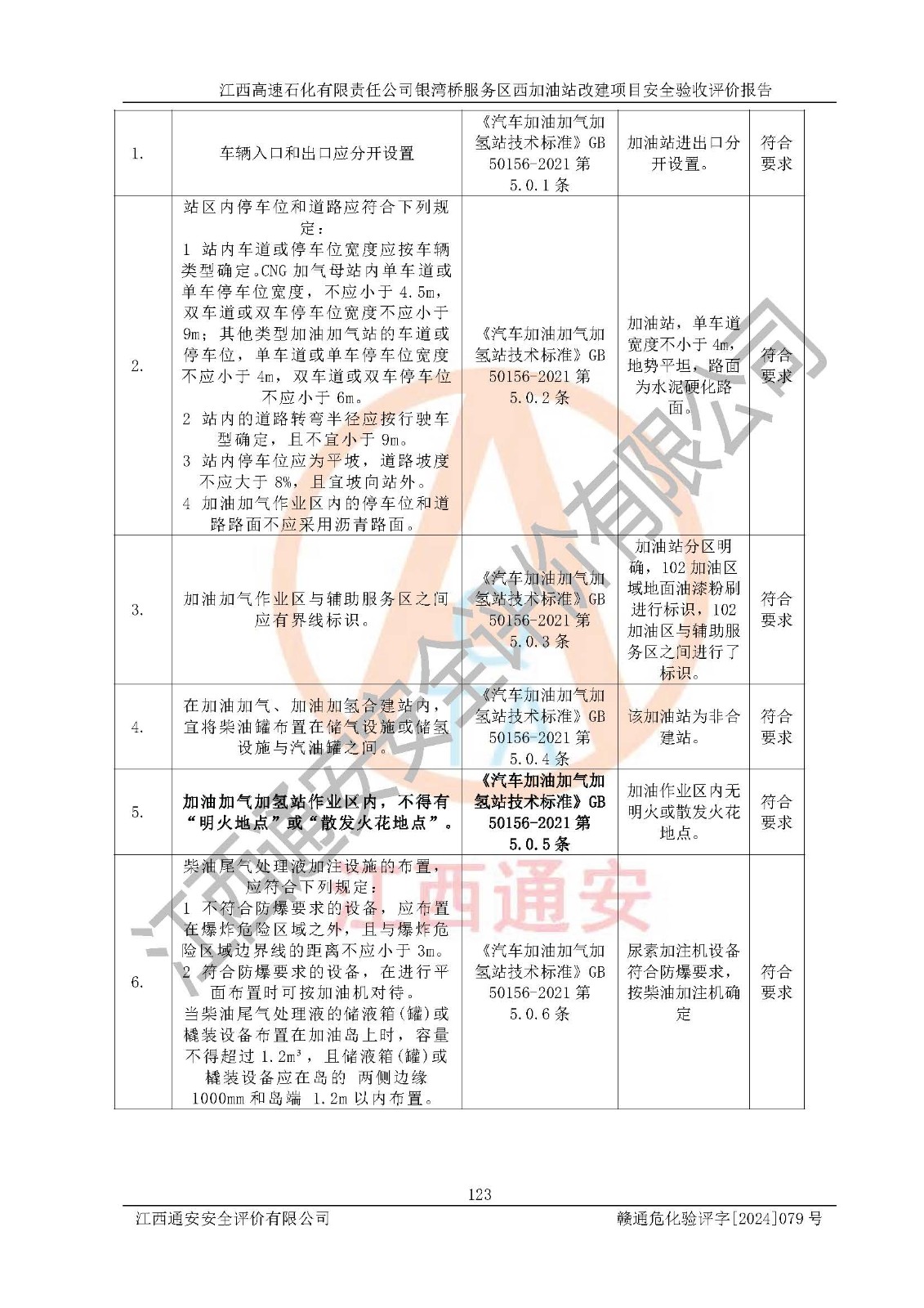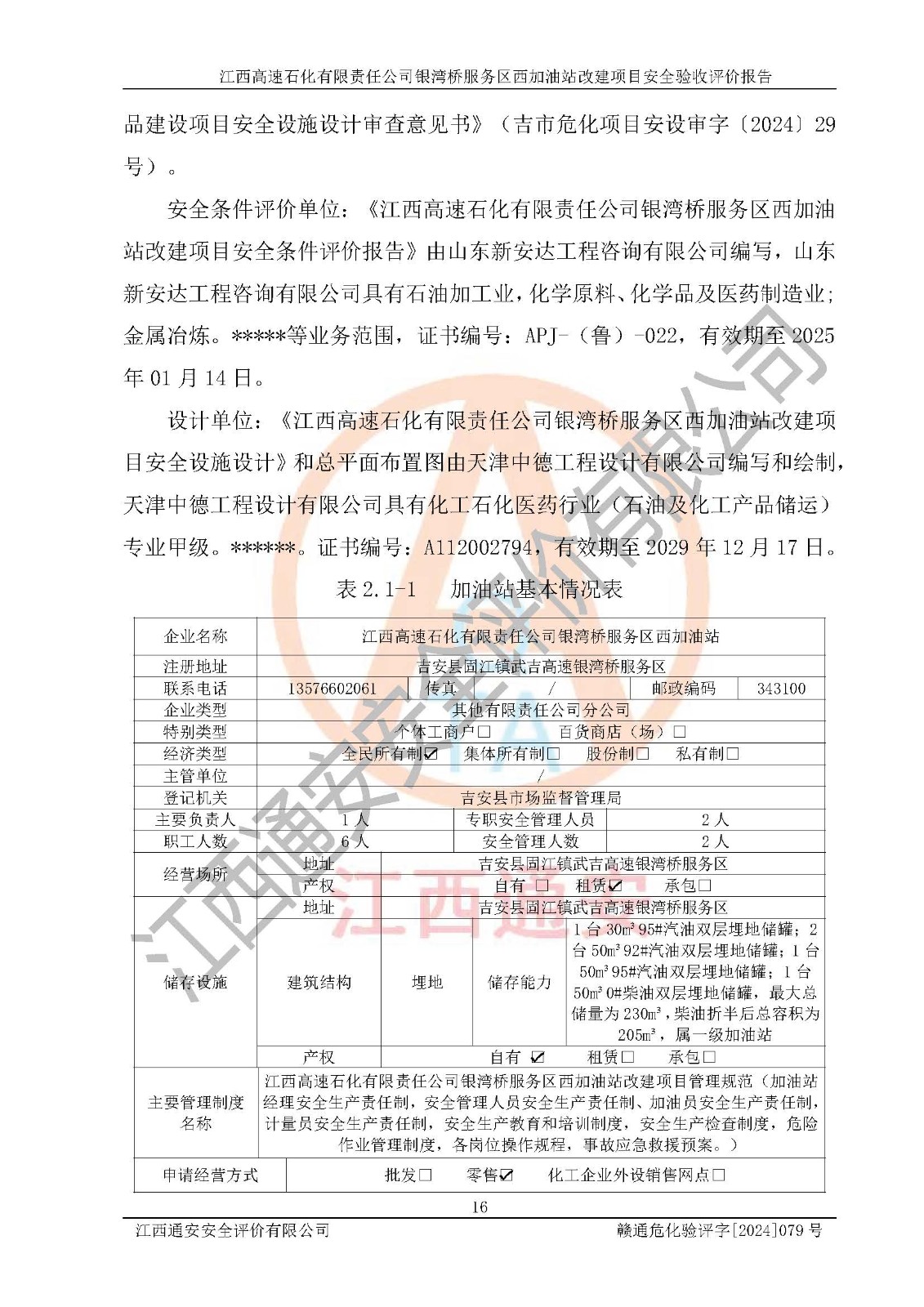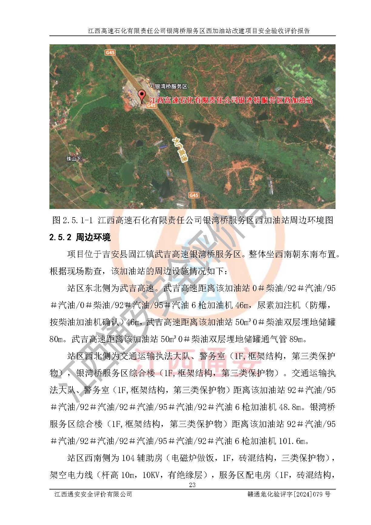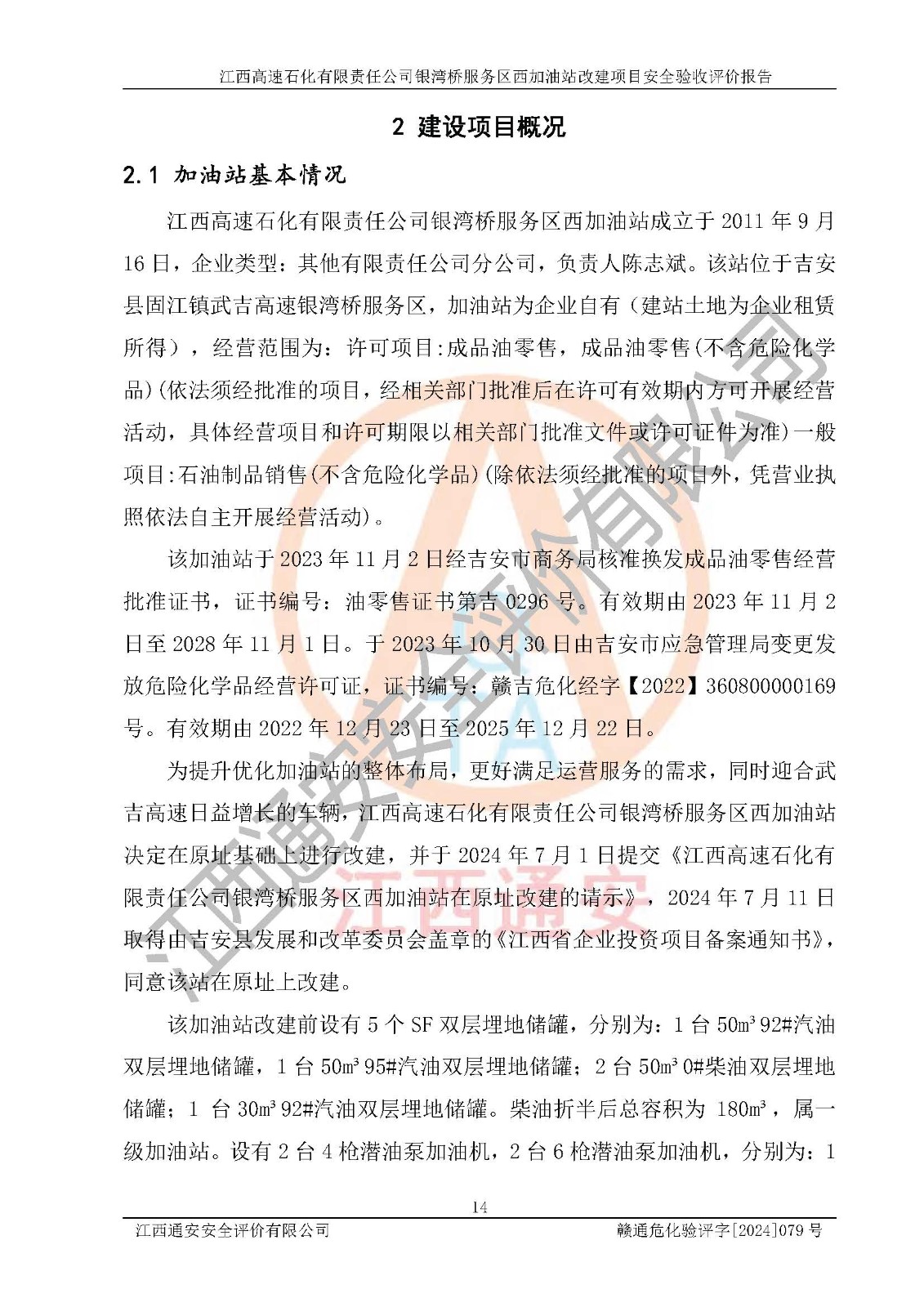 项目名称 | 江西高速石化有限责任公司银湾桥服务区西加油站改建项目安全验收评价报告 | ||||